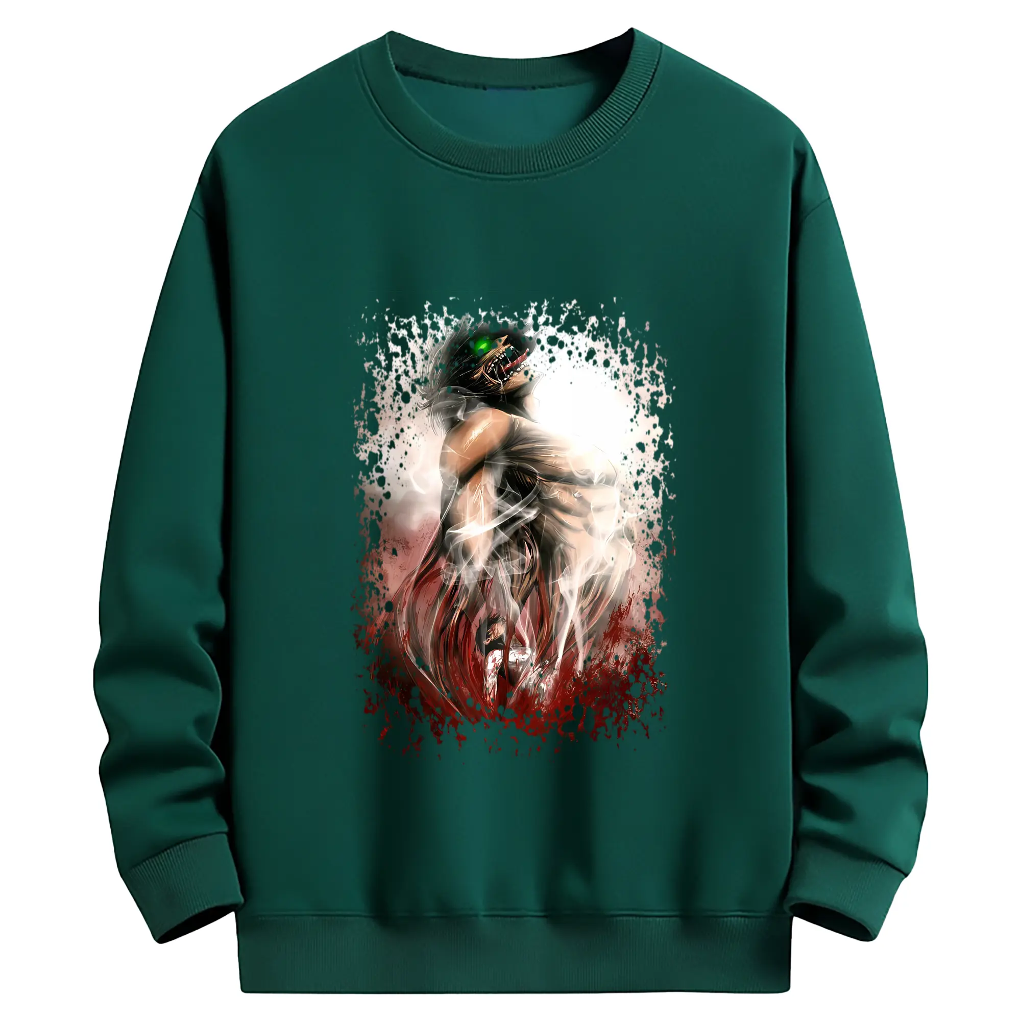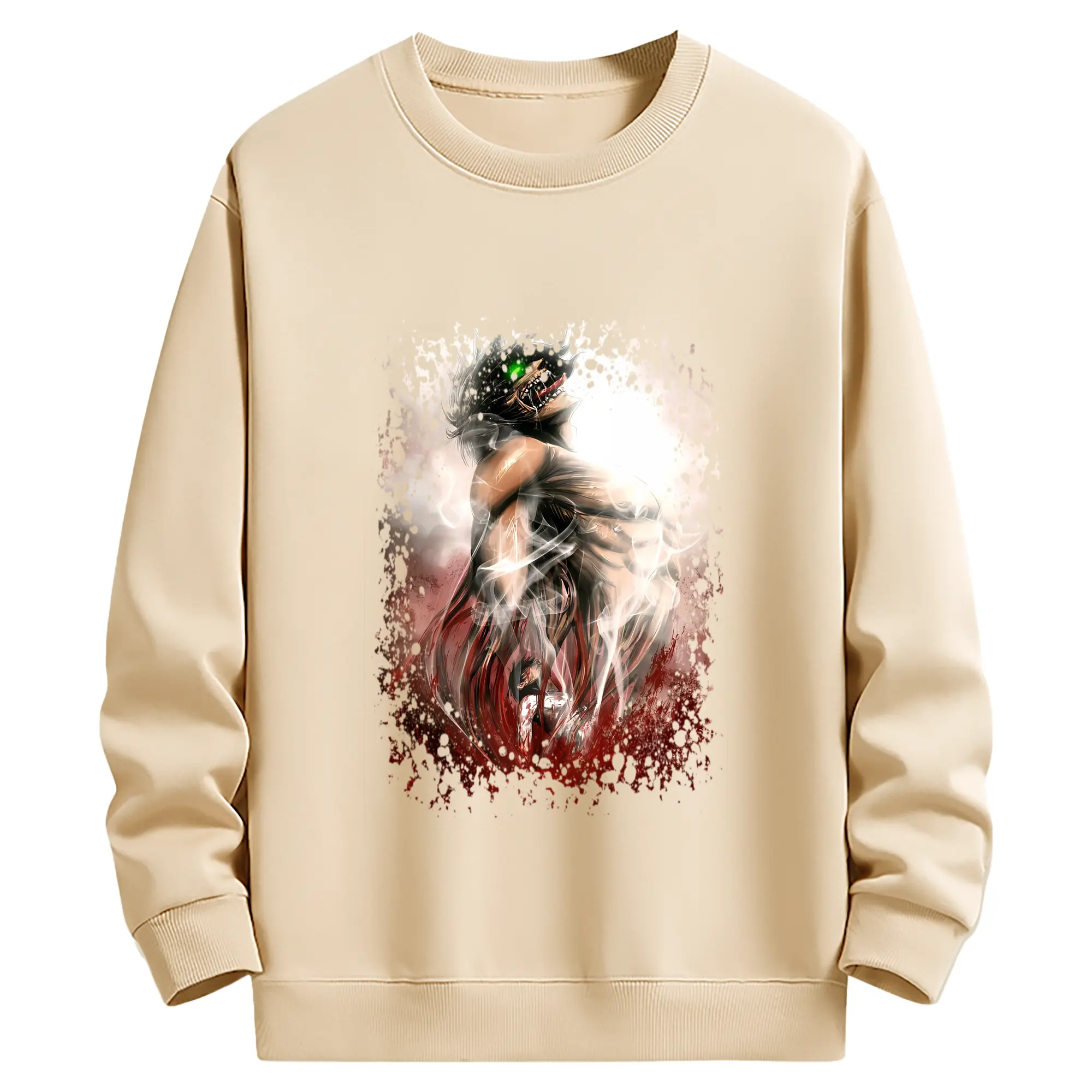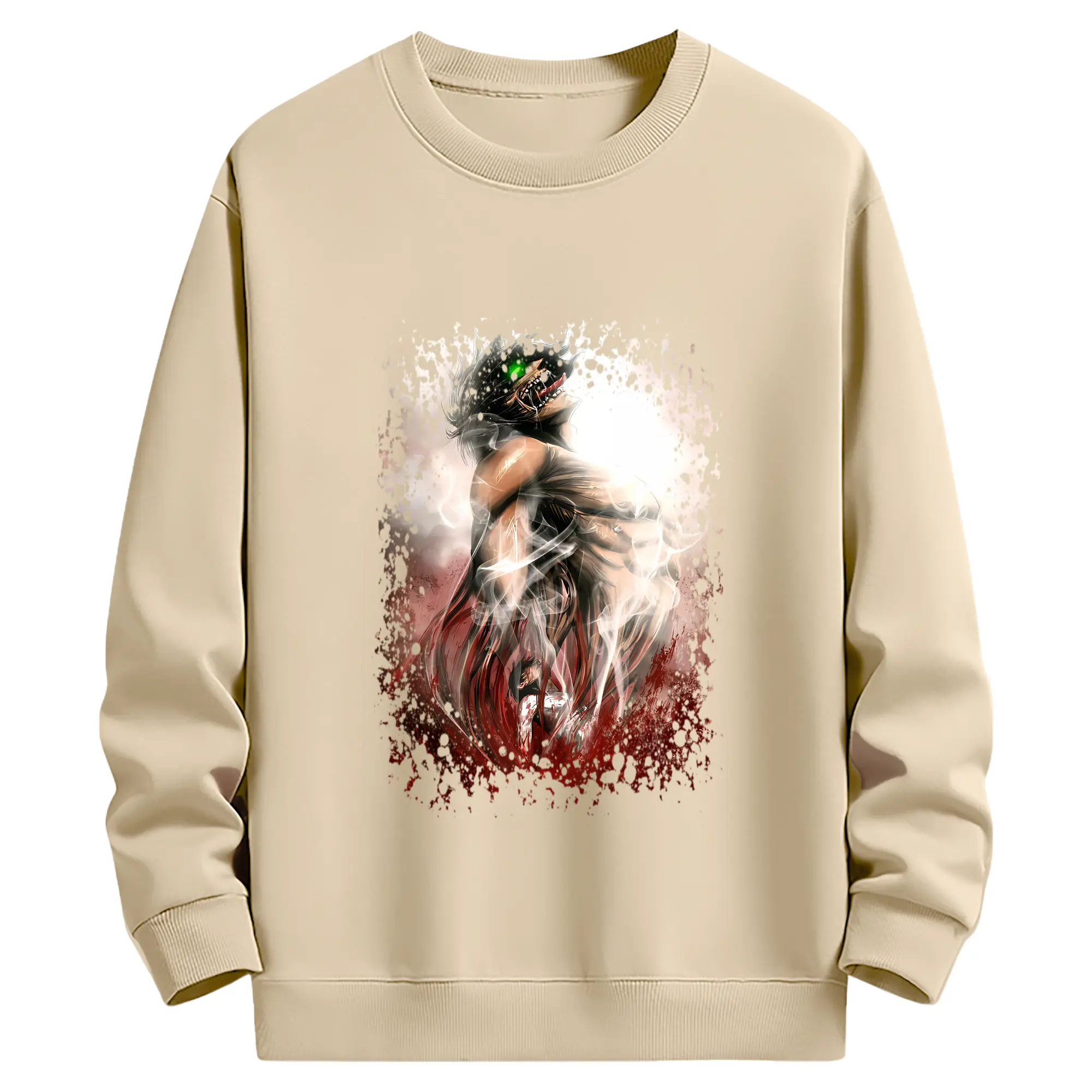 進撃の巨人 グッズ エレン・イェーガー - 薄手 クルーネック スウェット 裏毛260g · ポリエステル 春秋向け カジュアル 男女兼用 · トレーナー デイリー スポーツ 散歩に最適