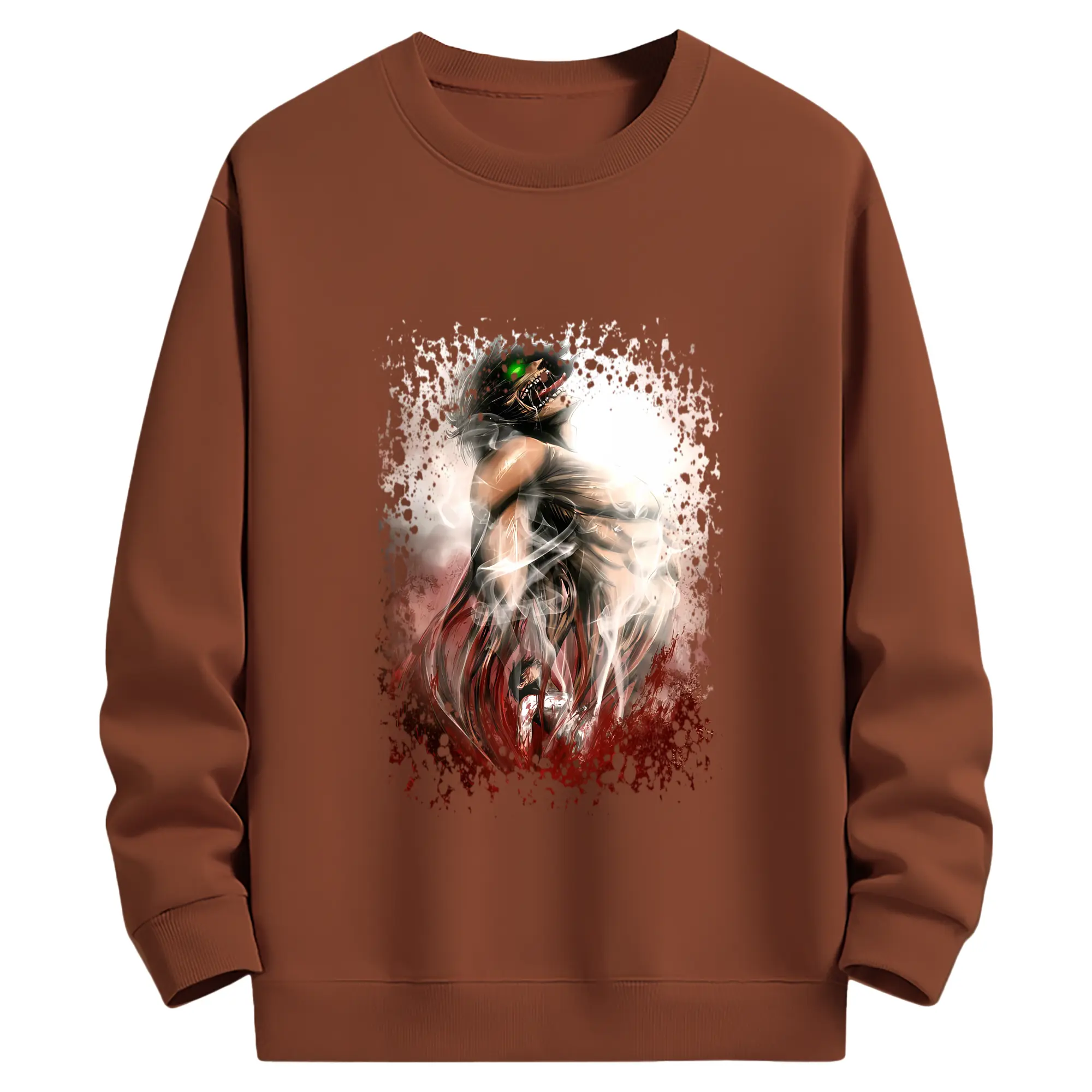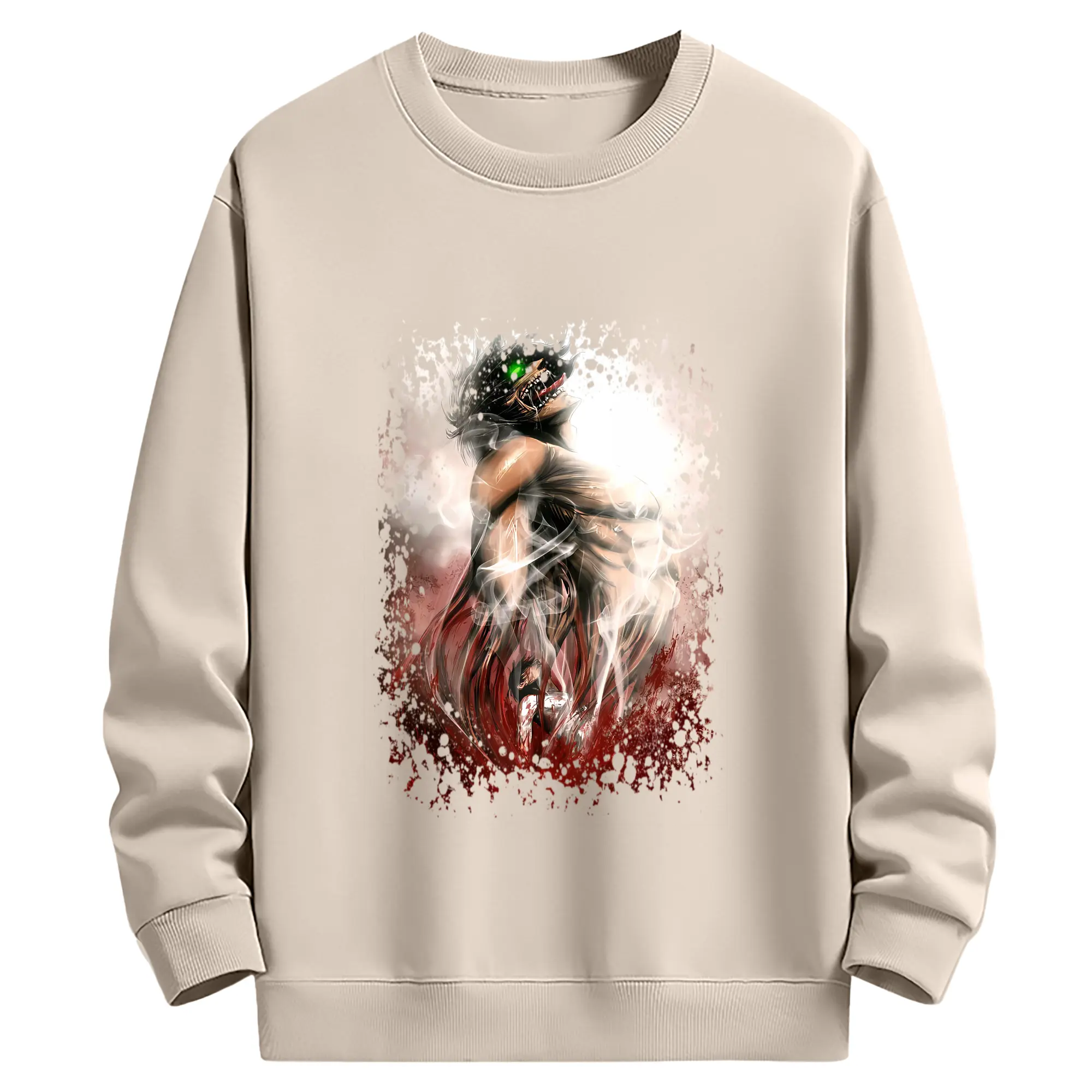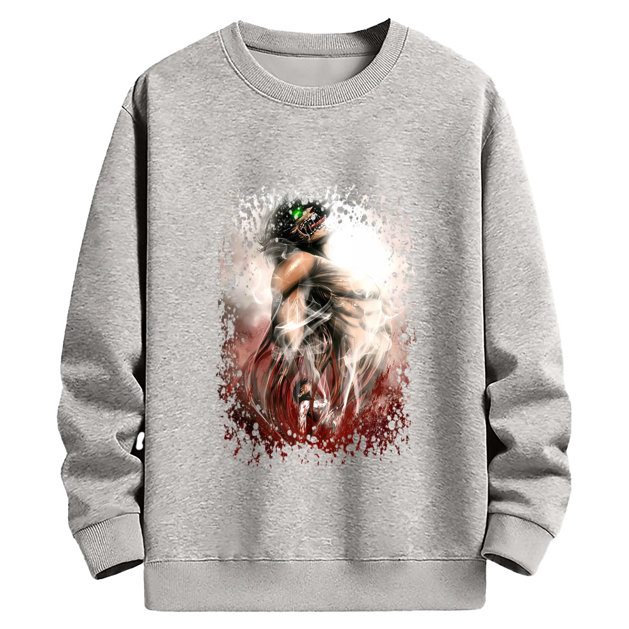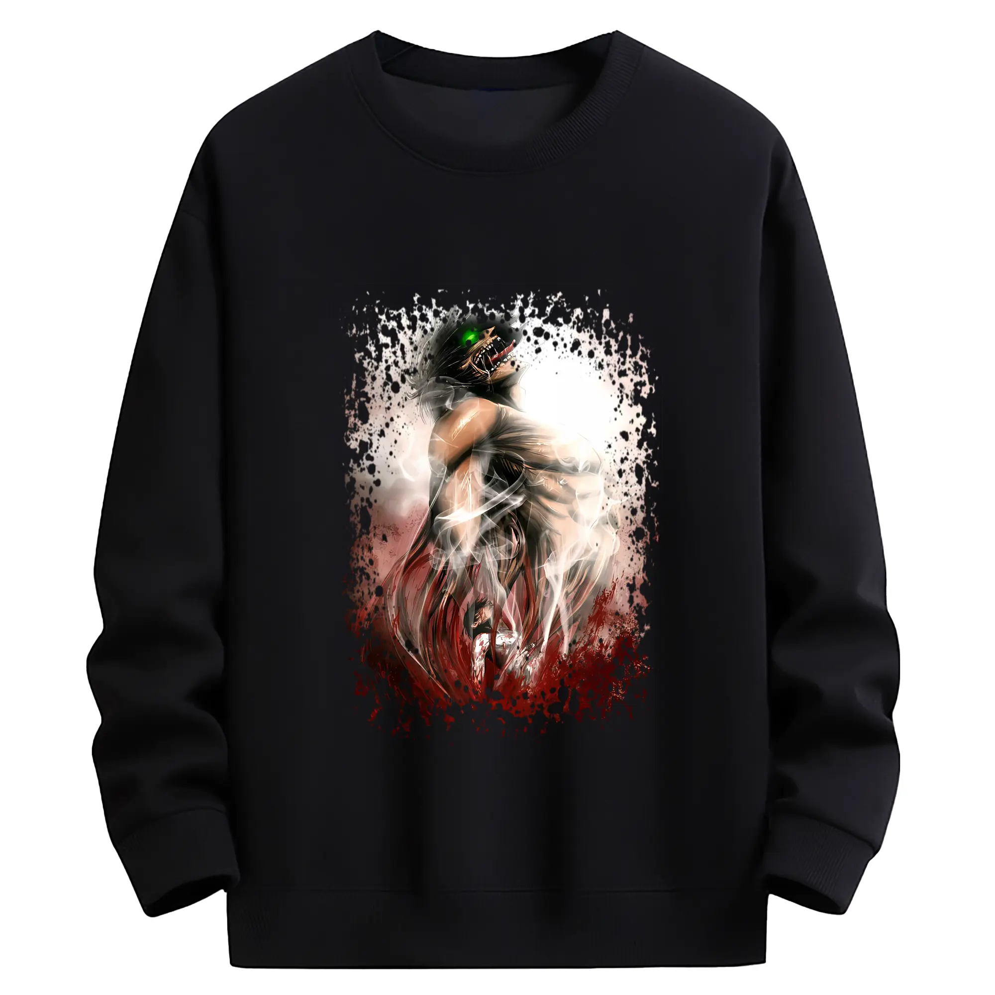 進撃の巨人 グッズ エレン・イェーガー - 薄手 クルーネック スウェット 裏毛260g · ポリエステル 春秋向け カジュアル 男女兼用 · トレーナー デイリー スポーツ 散歩に最適