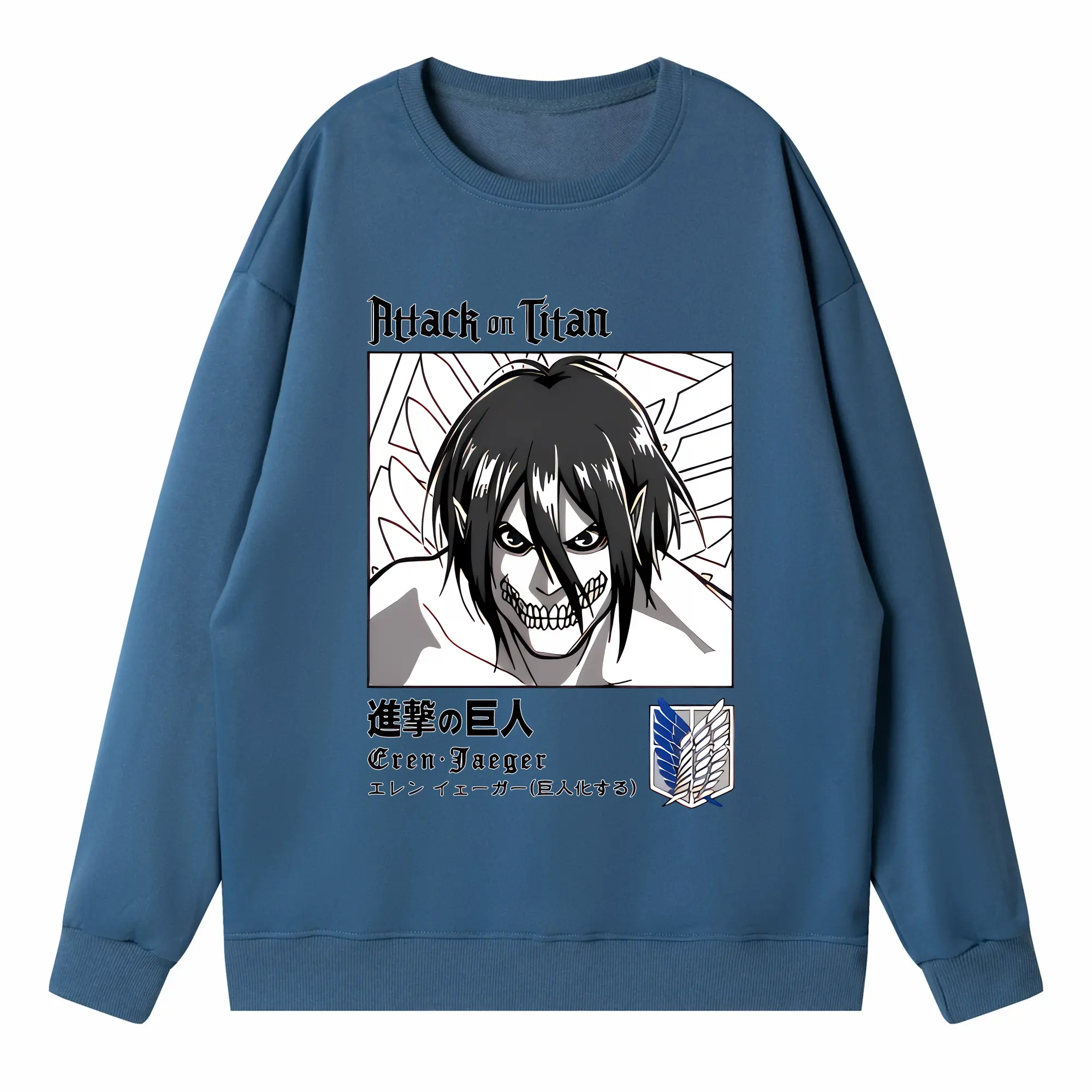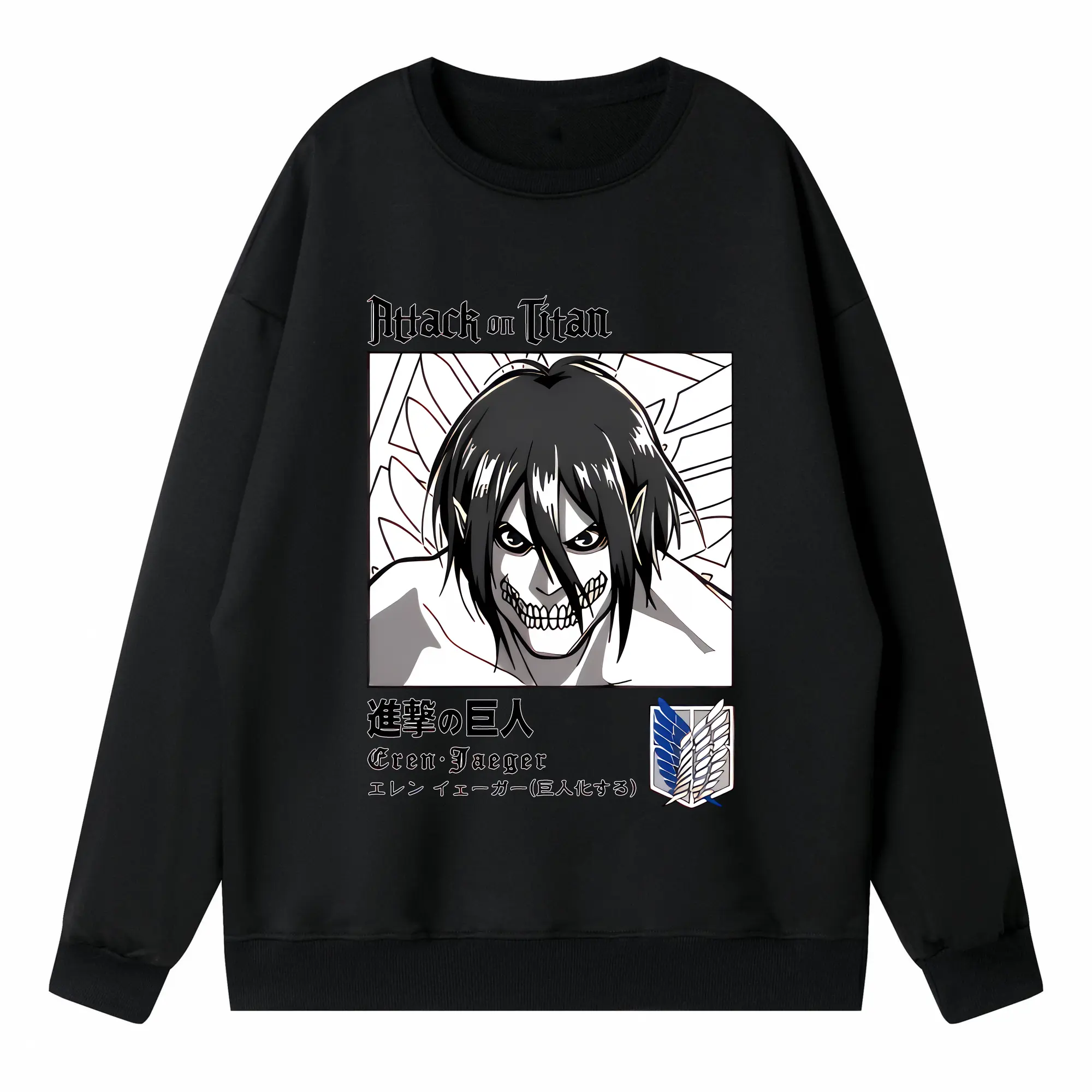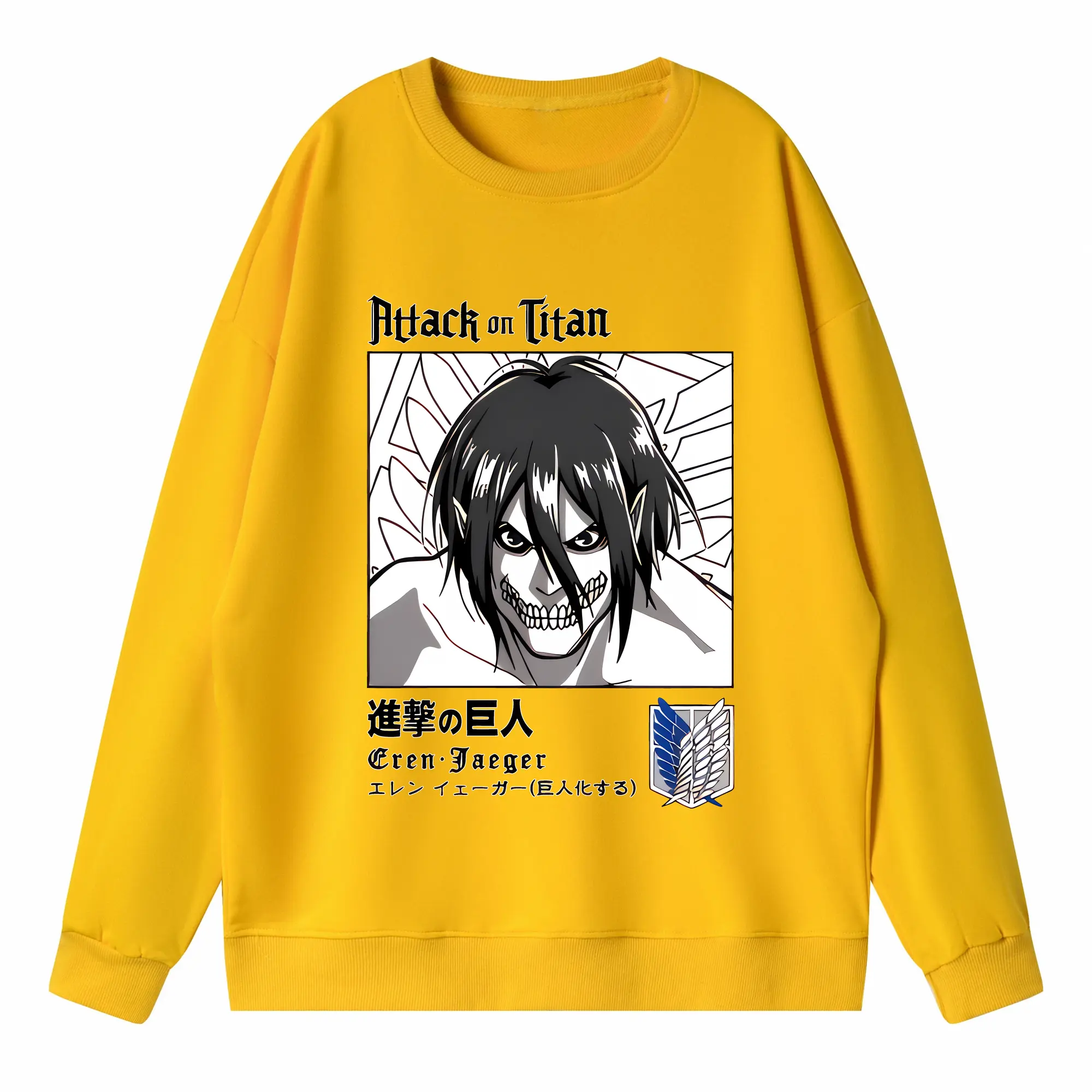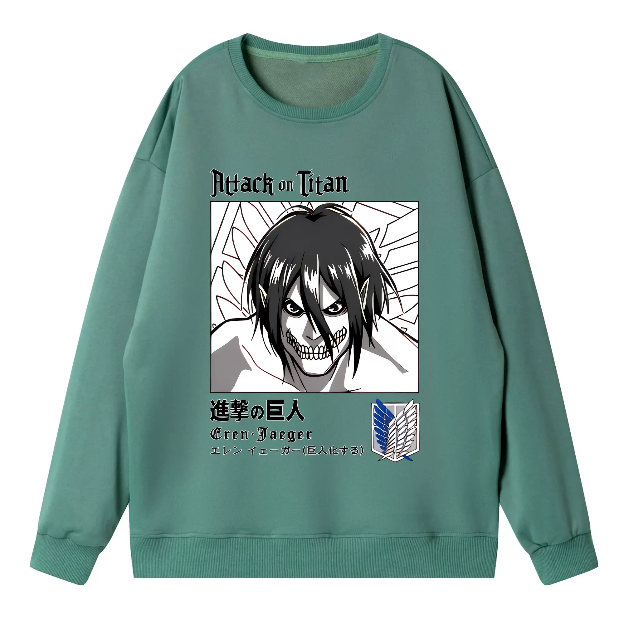進撃の巨人 グッズ エレン・イェーガー - 高品質 クルーネック スウェット ・ コットン59% ポリエステル41% ・ ユニセックス 長袖 トレーナー ・ カジュアル デイリー スポーツ 散歩用