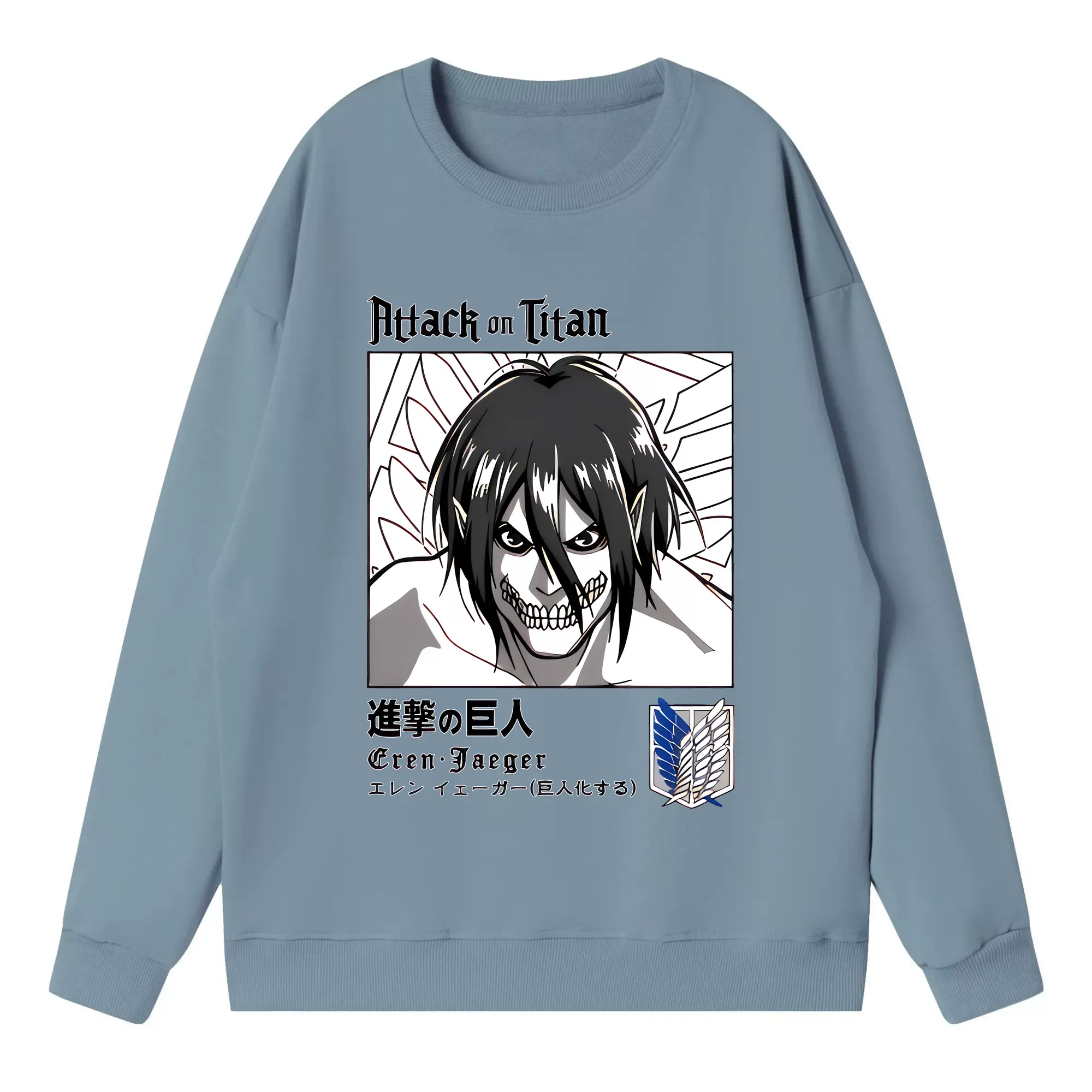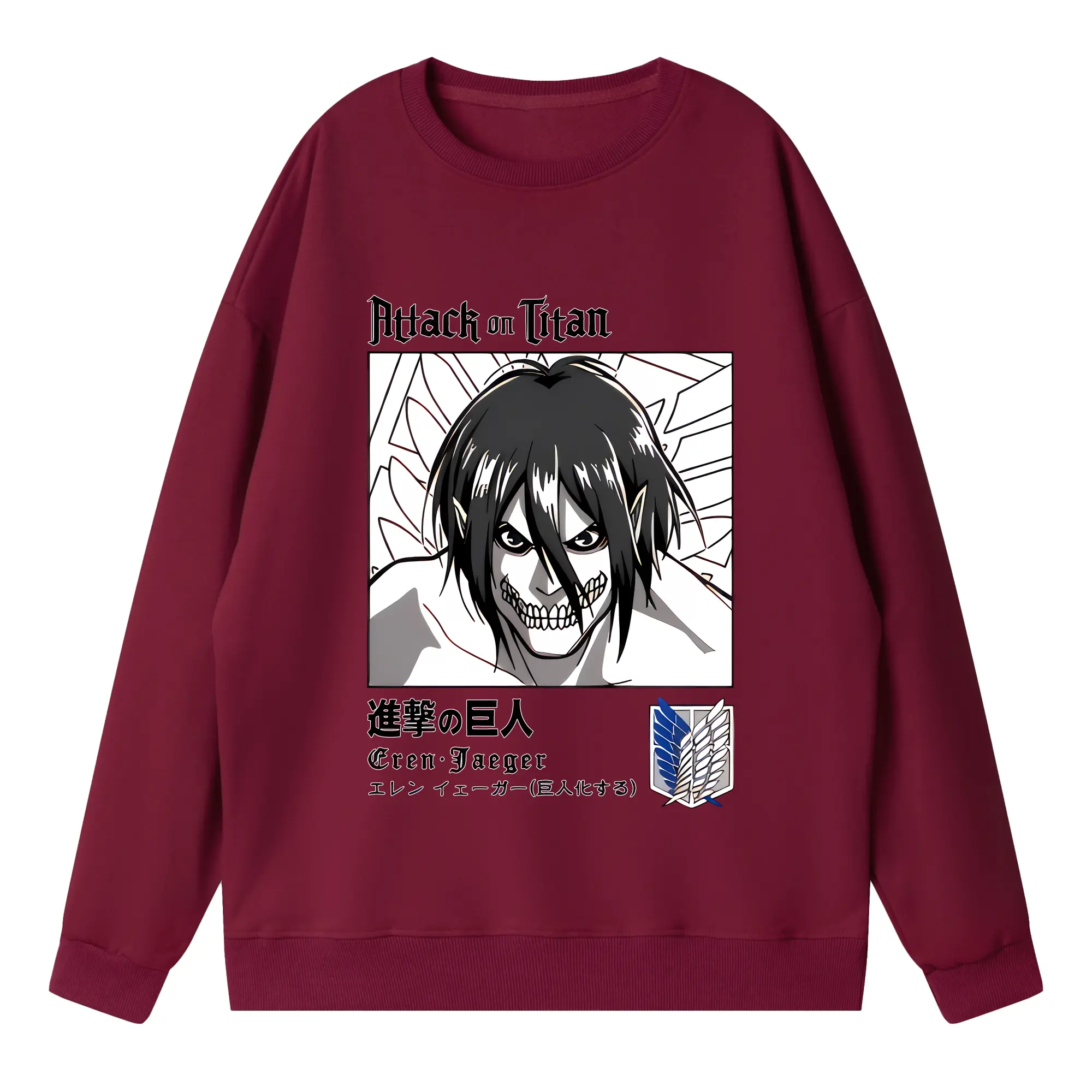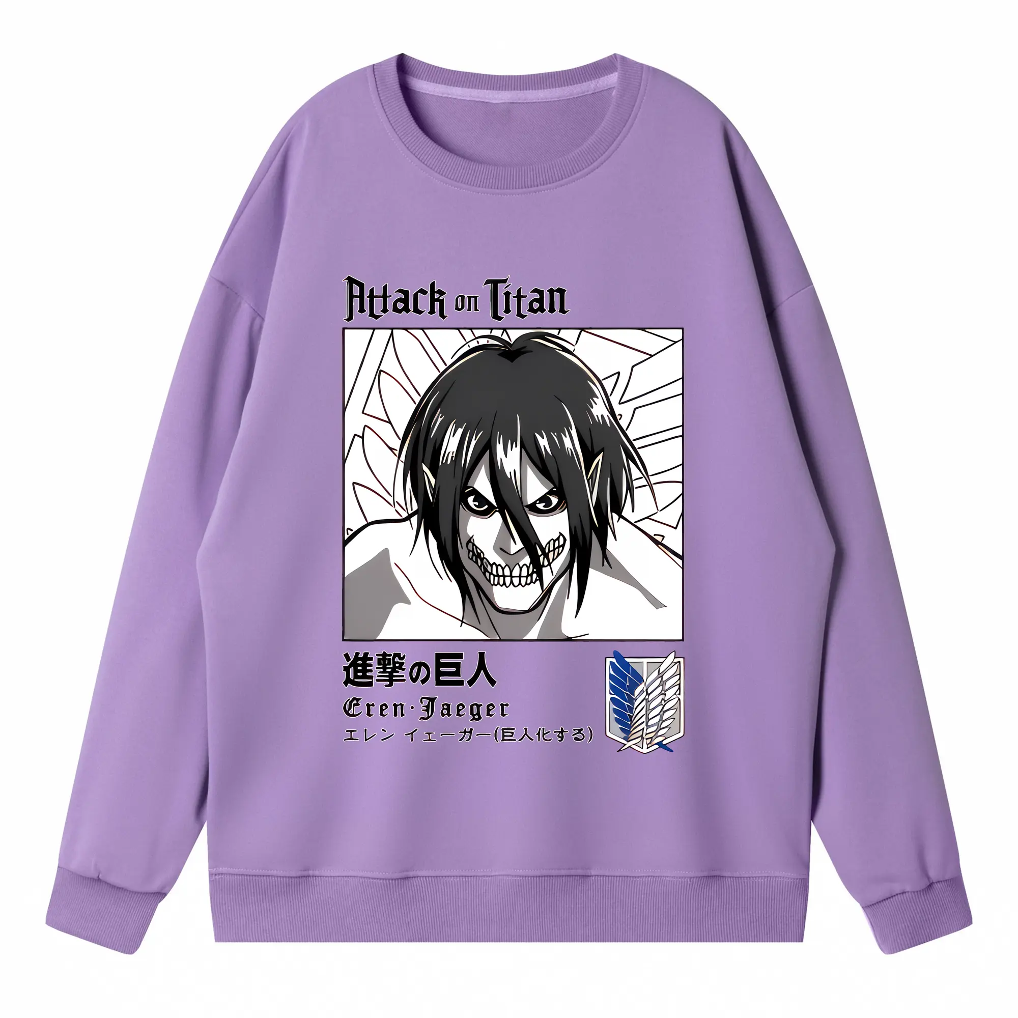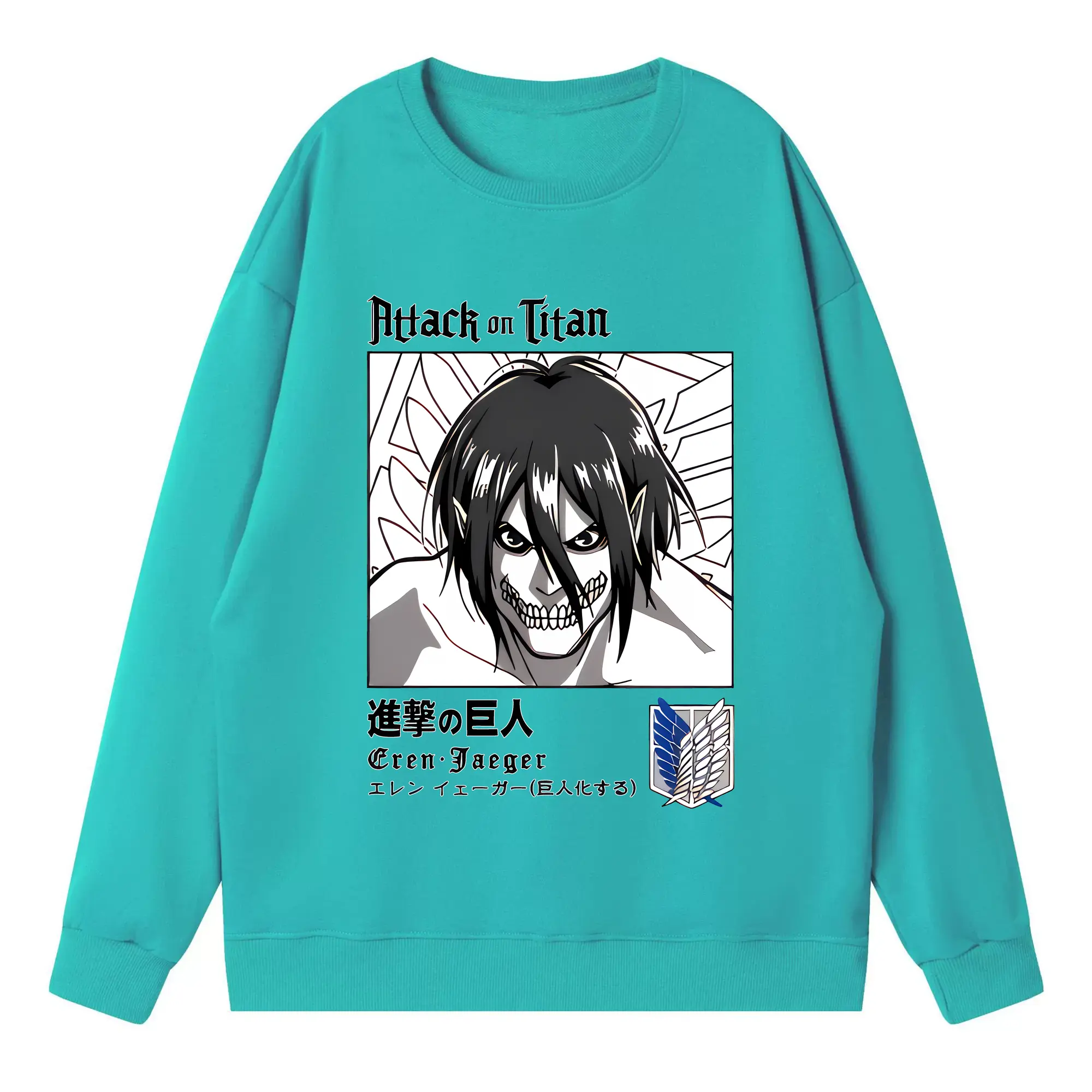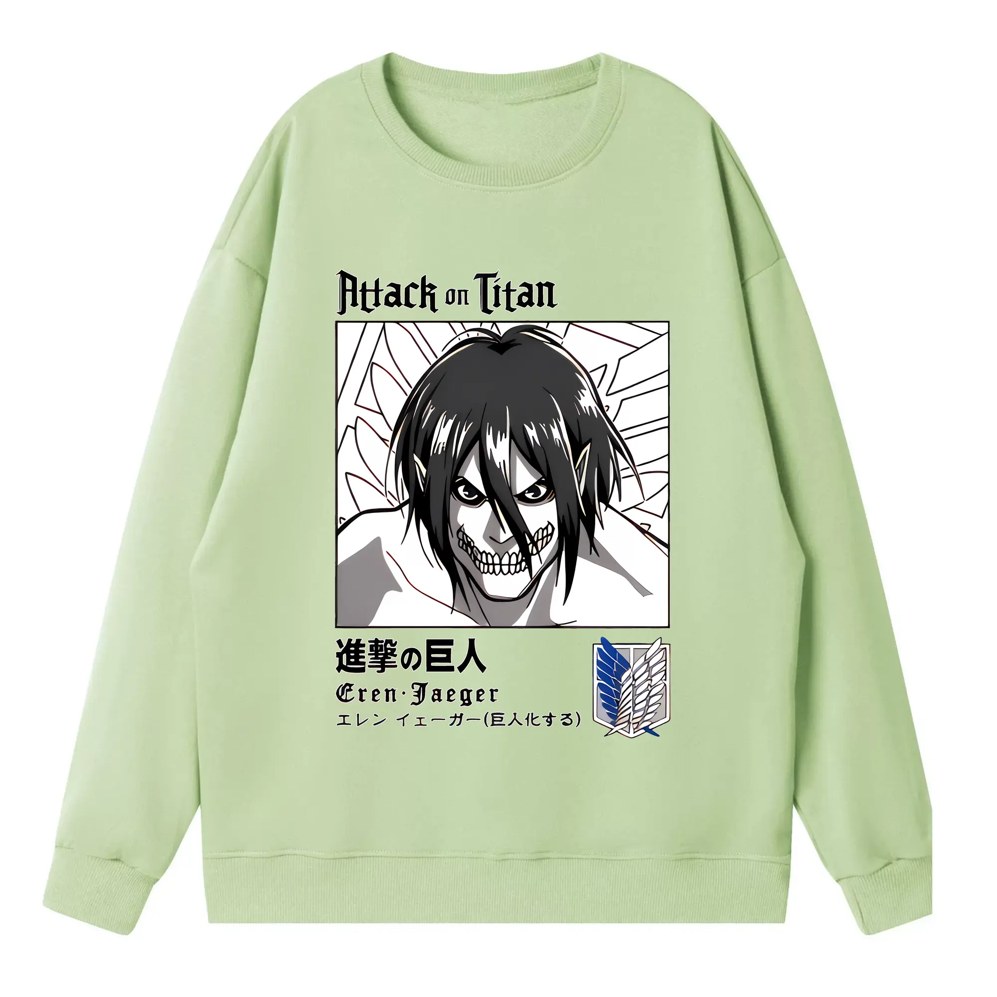 進撃の巨人 グッズ エレン・イェーガー - 高品質 クルーネック スウェット ・ コットン59% ポリエステル41% ・ ユニセックス 長袖 トレーナー ・ カジュアル デイリー スポーツ 散歩用