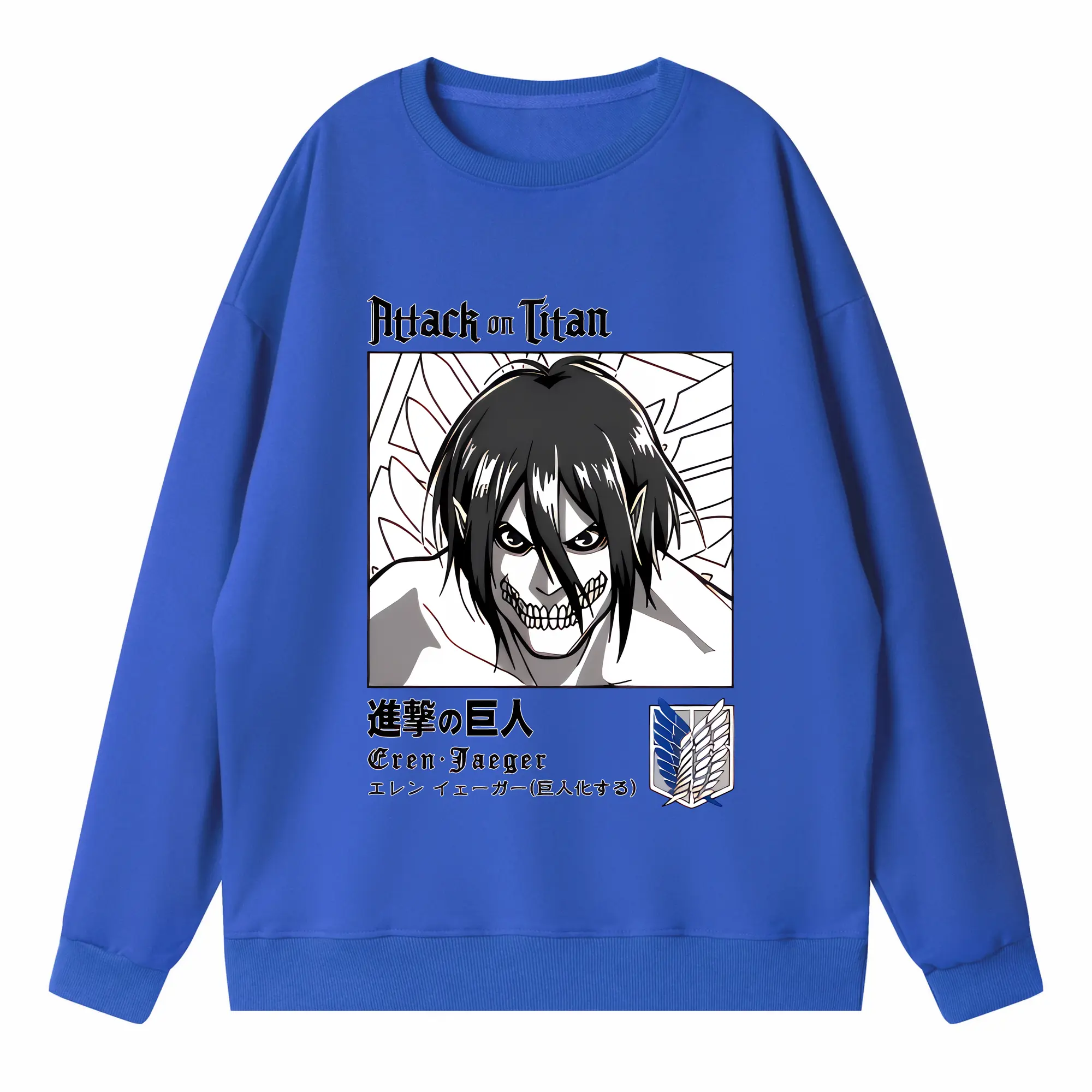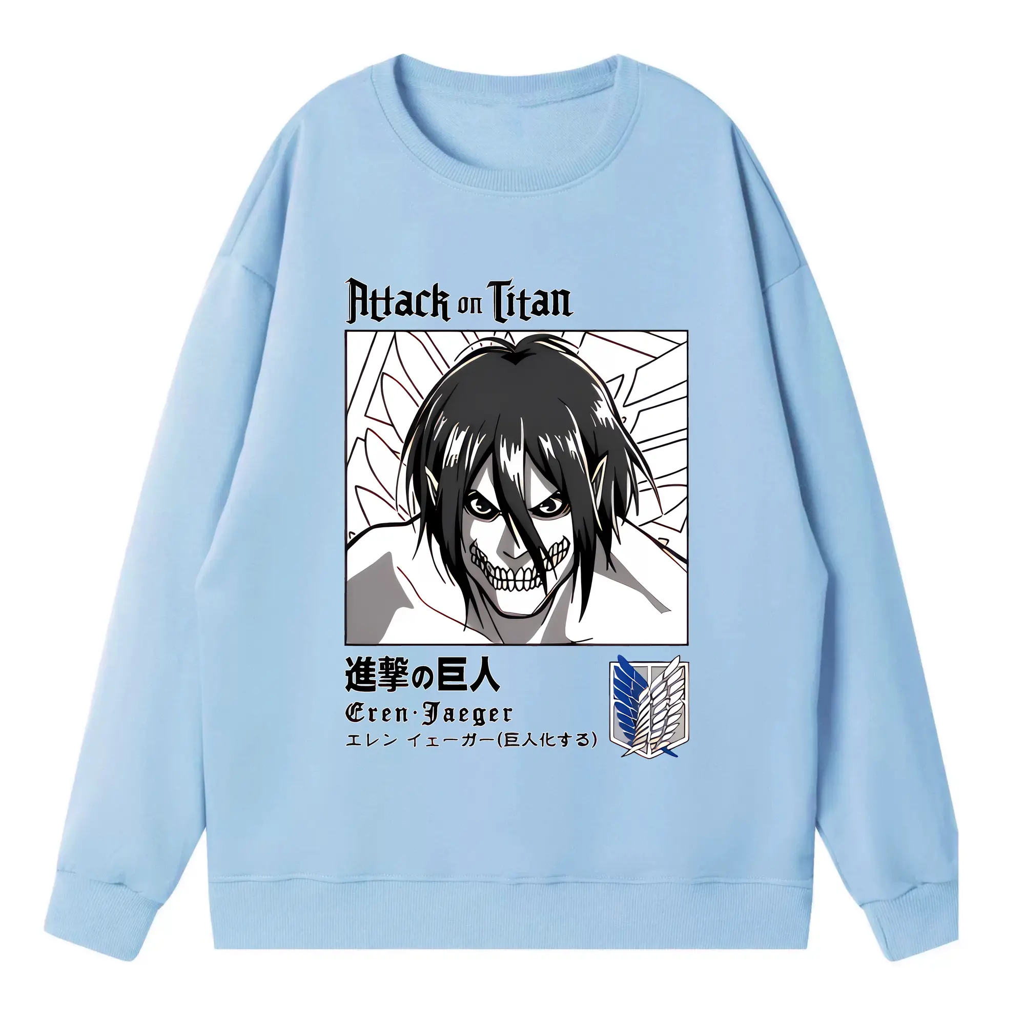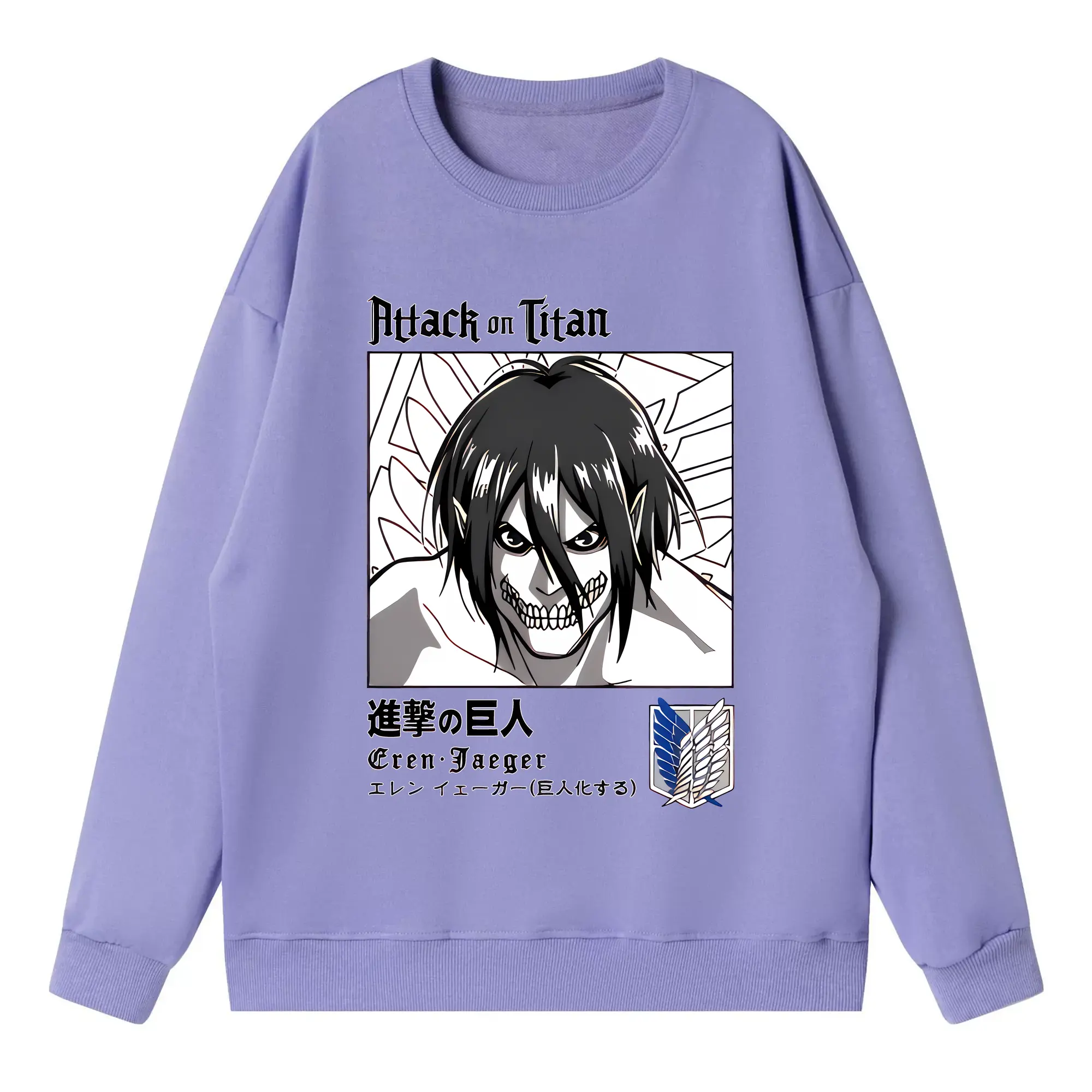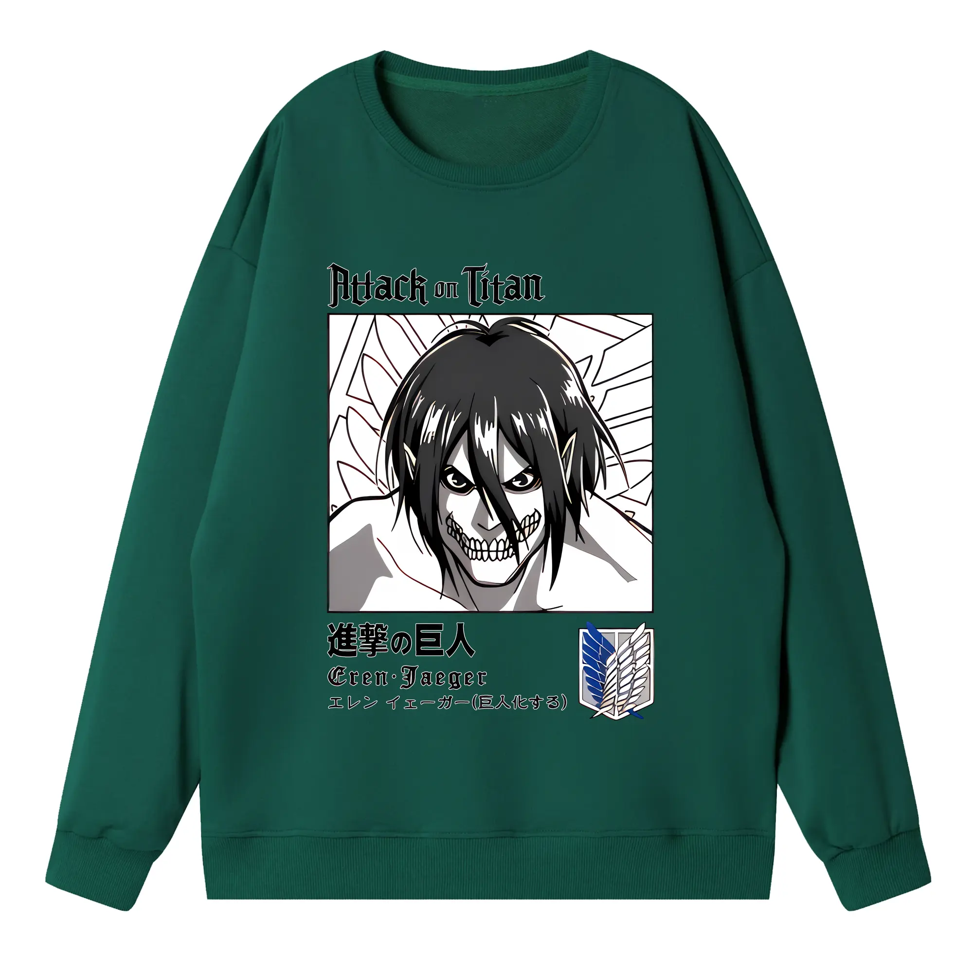 進撃の巨人 グッズ エレン・イェーガー - 高品質 クルーネック スウェット ・ コットン59% ポリエステル41% ・ ユニセックス 長袖 トレーナー ・ カジュアル デイリー スポーツ 散歩用