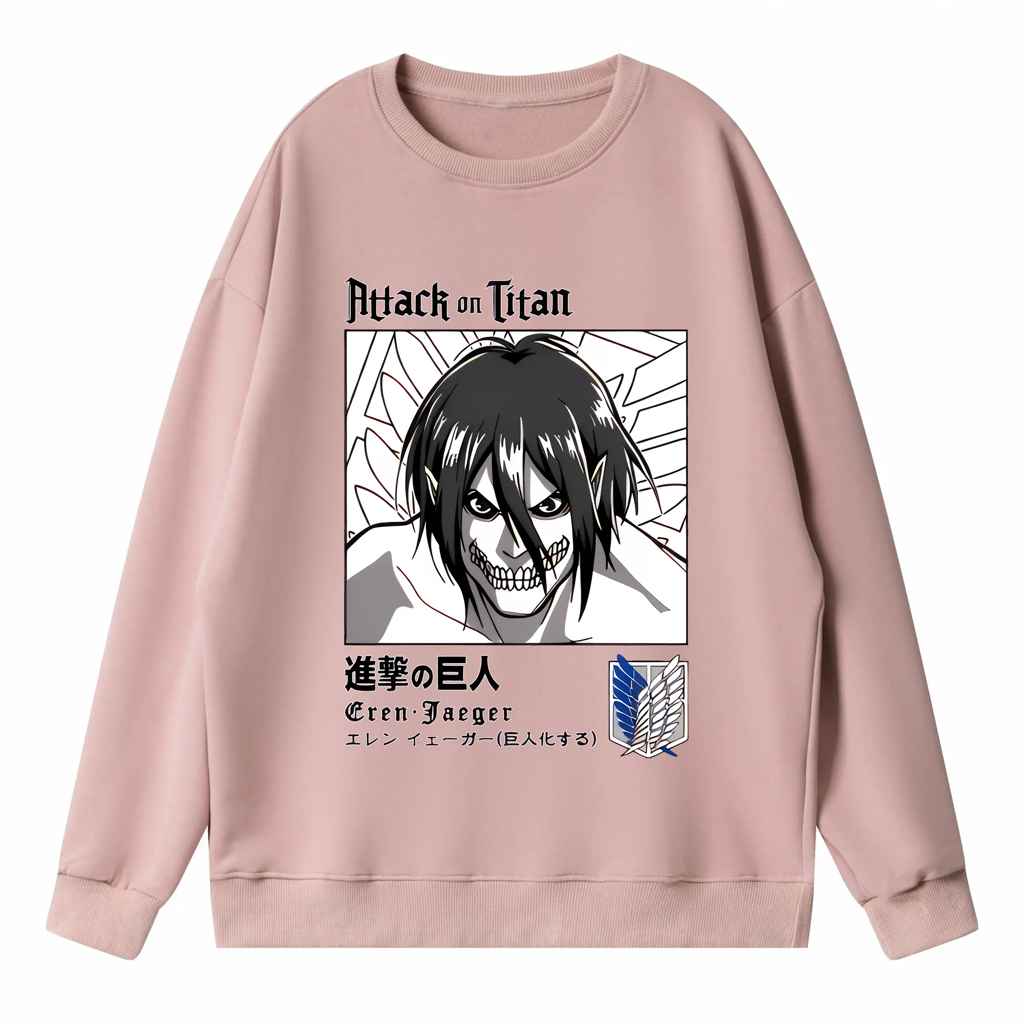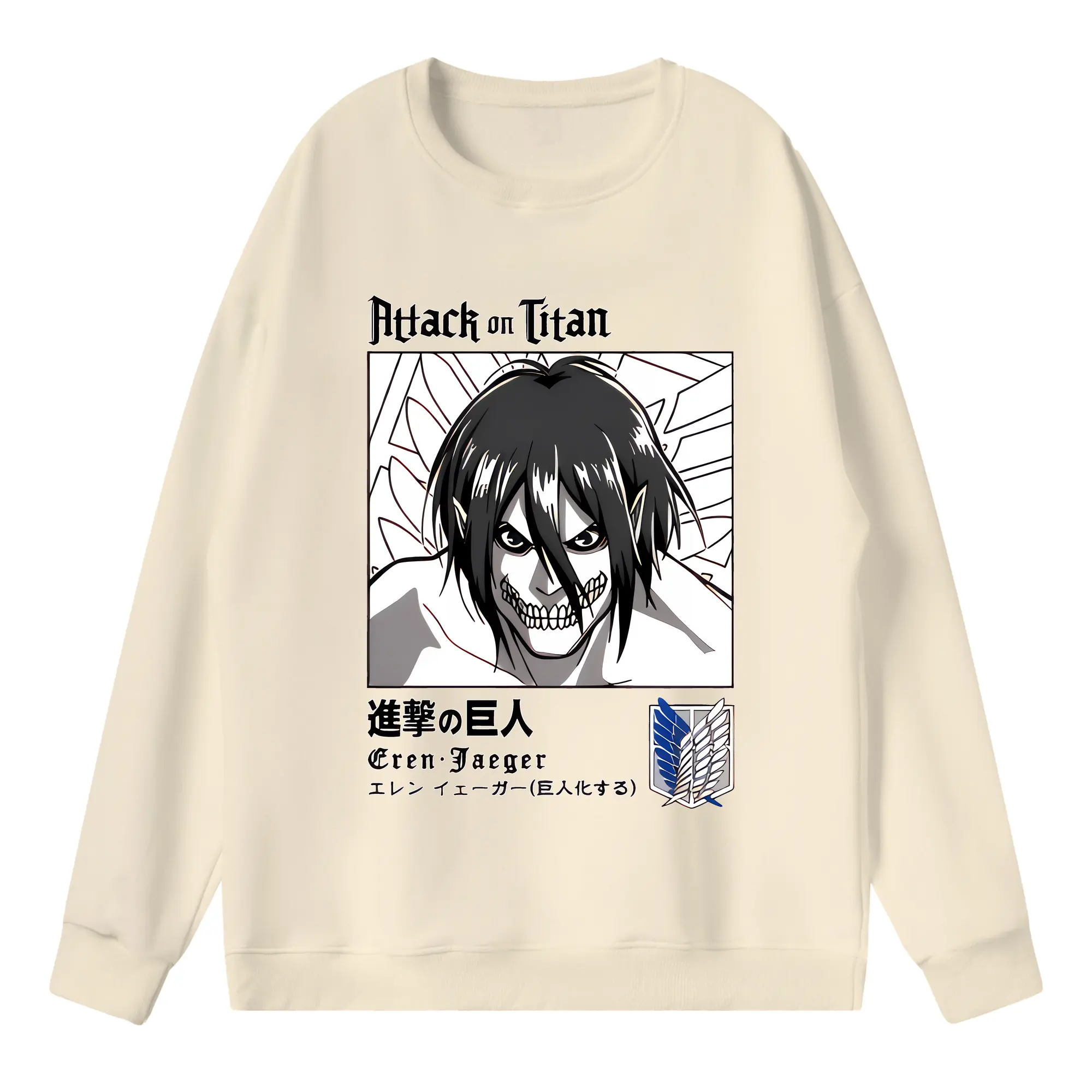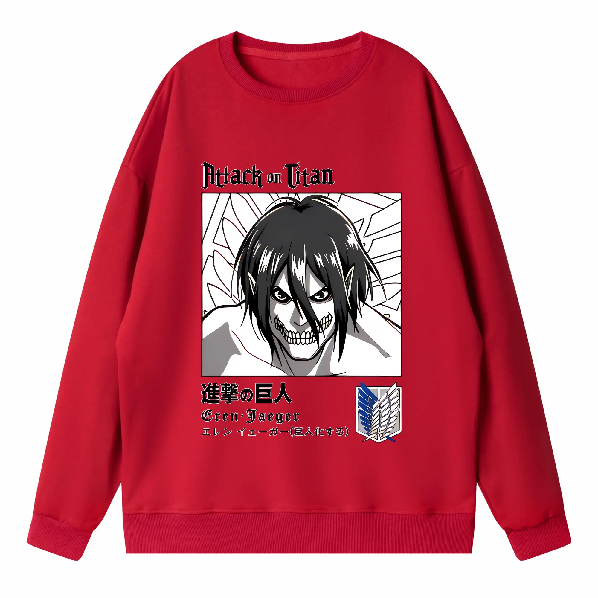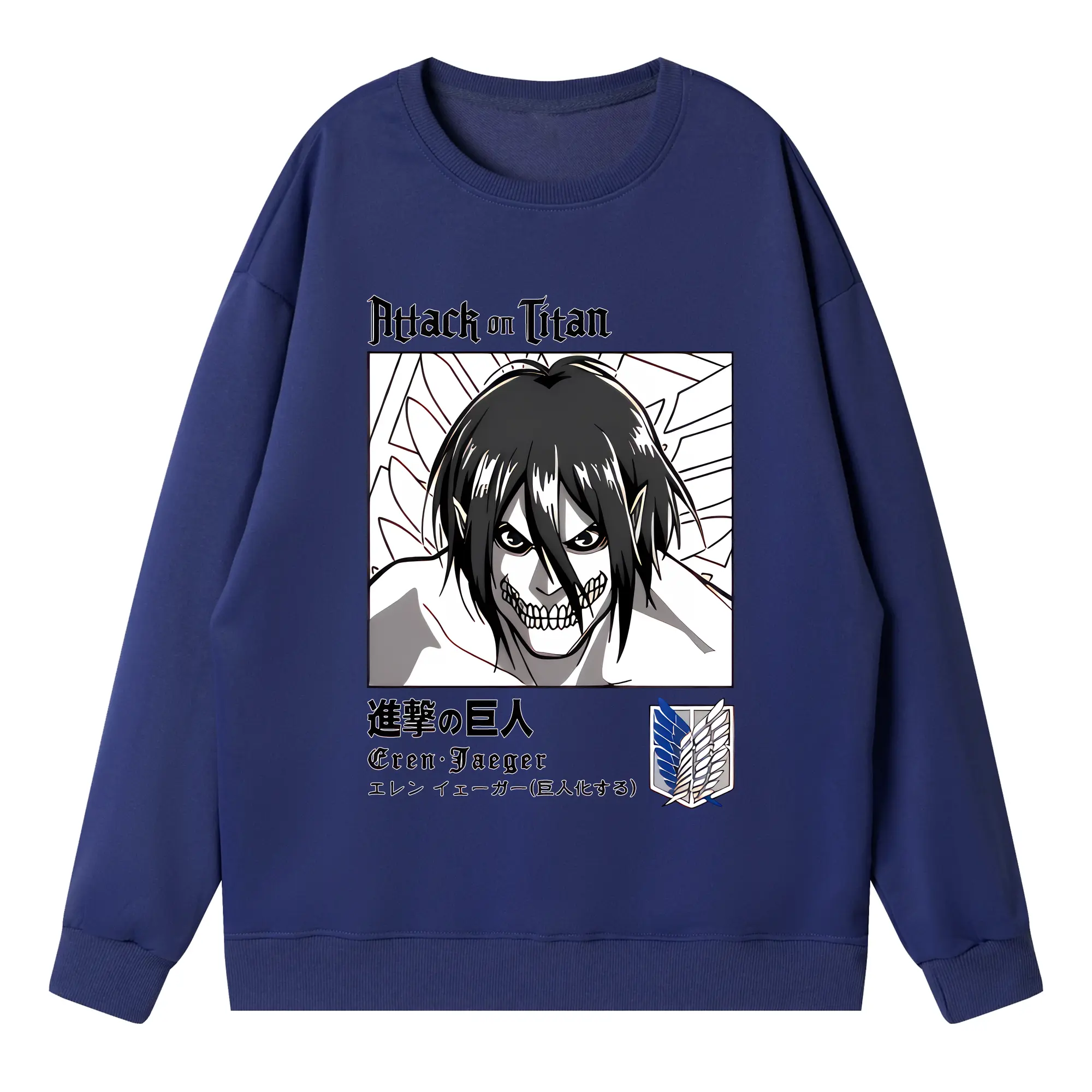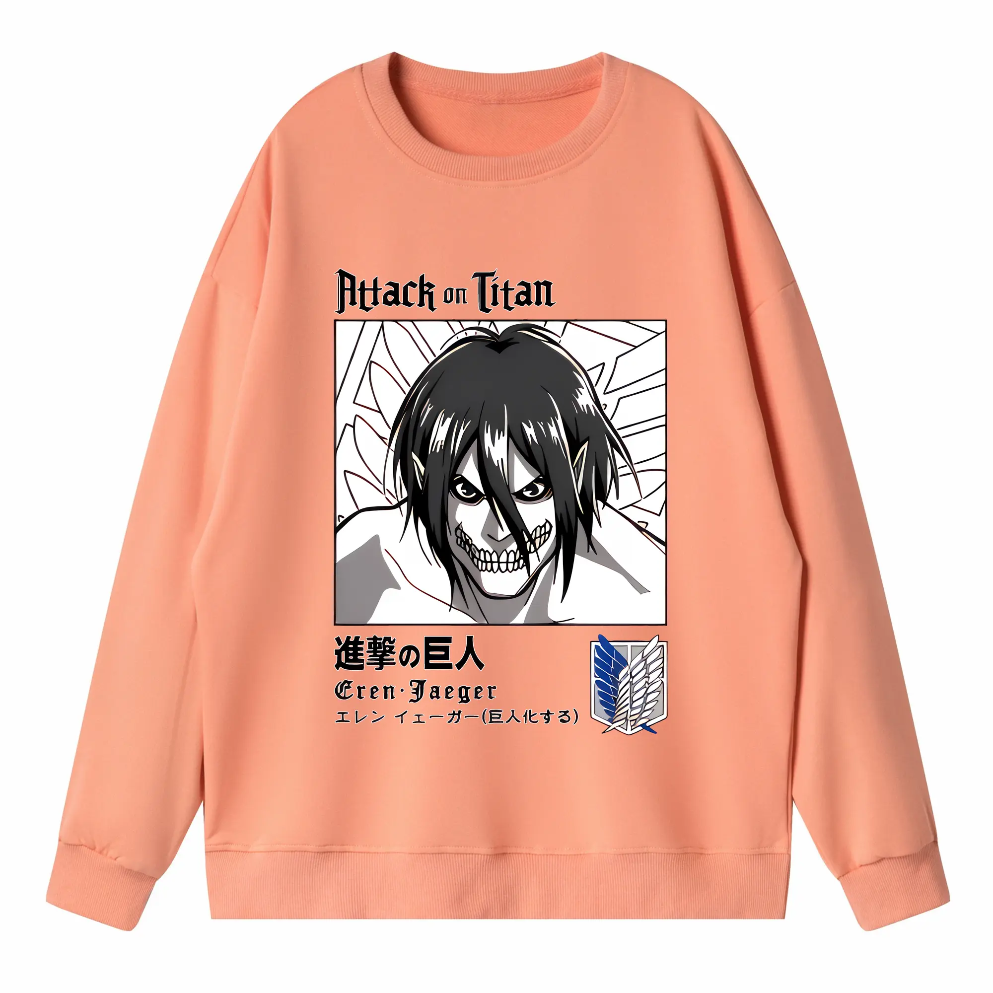 進撃の巨人 グッズ エレン・イェーガー - 高品質 クルーネック スウェット ・ コットン59% ポリエステル41% ・ ユニセックス 長袖 トレーナー ・ カジュアル デイリー スポーツ 散歩用