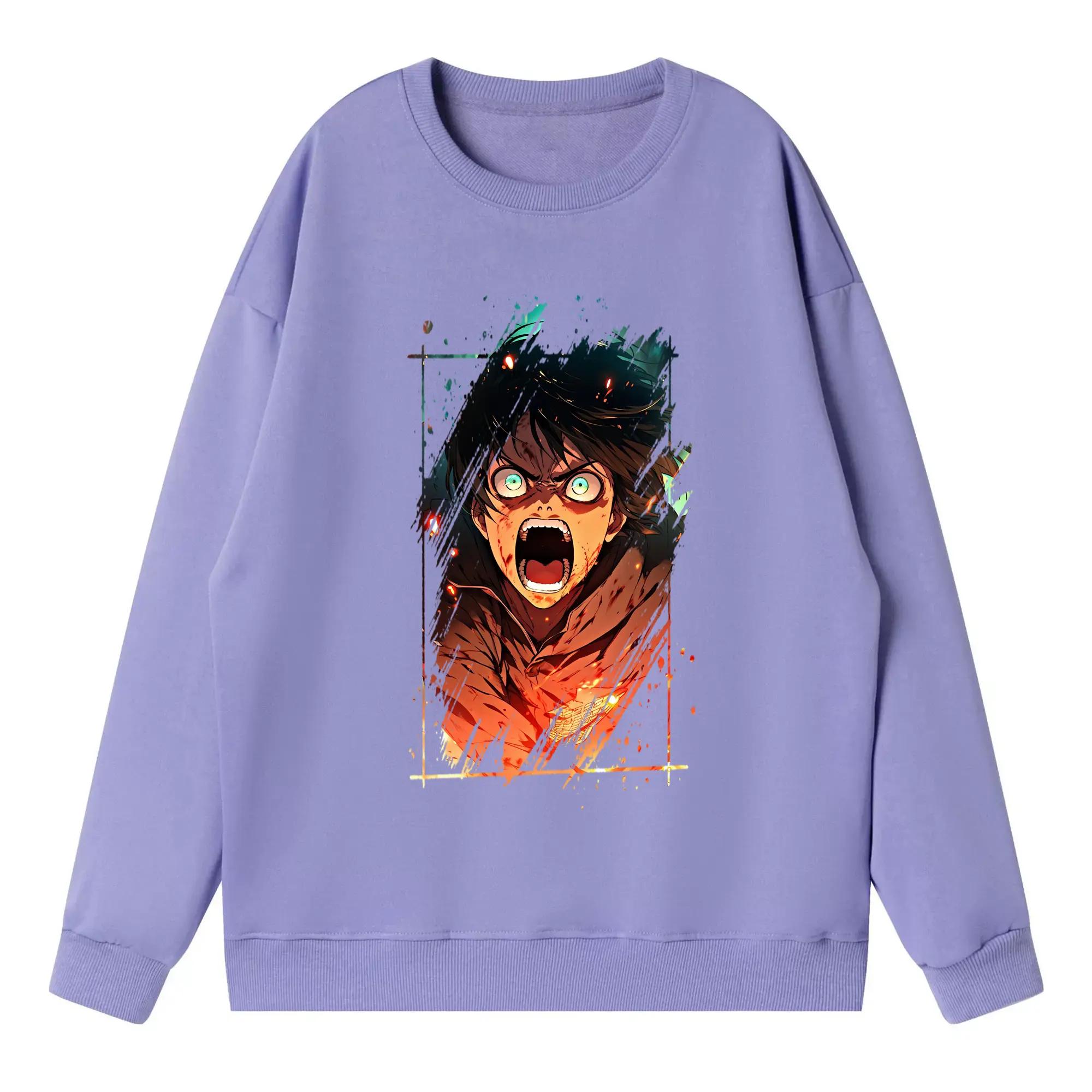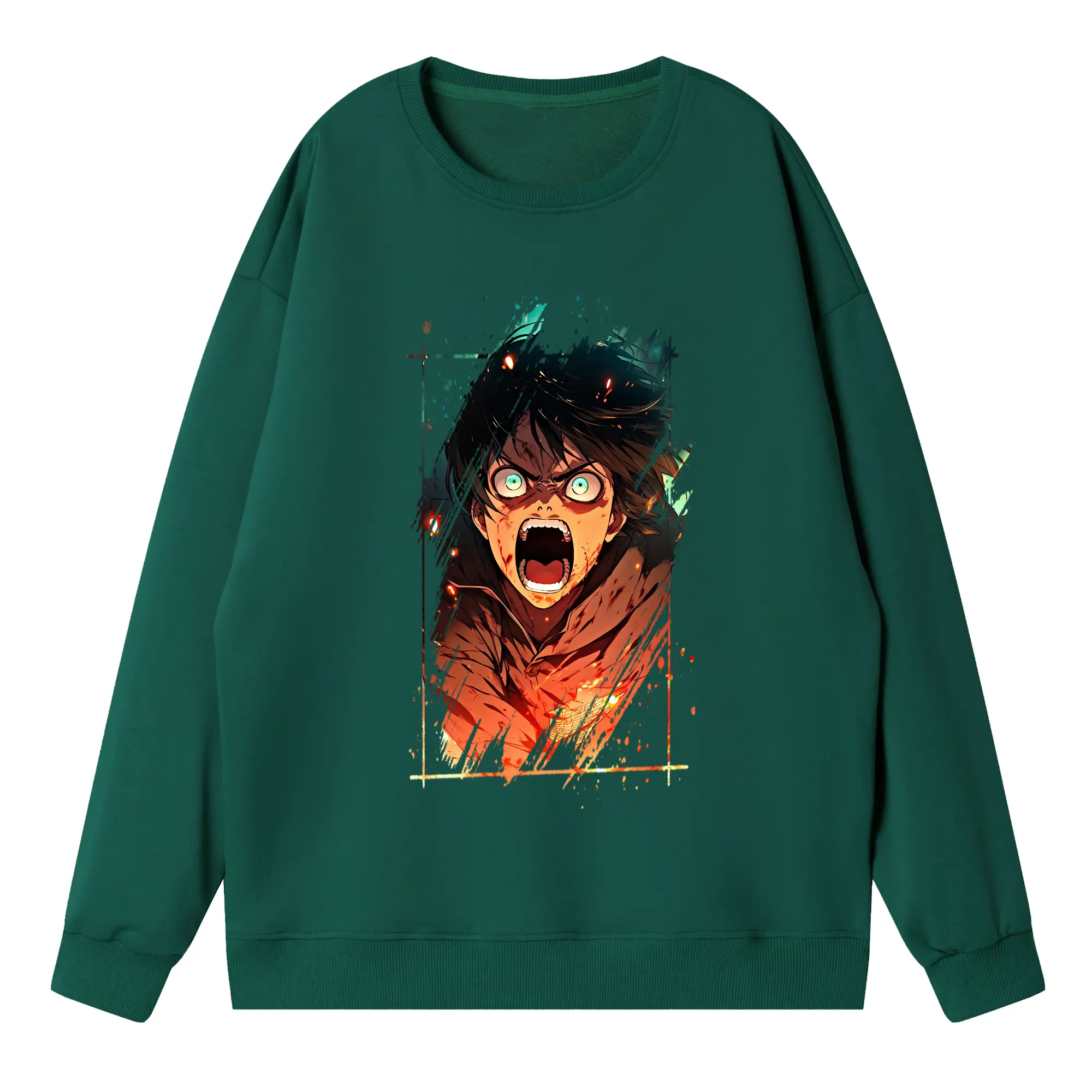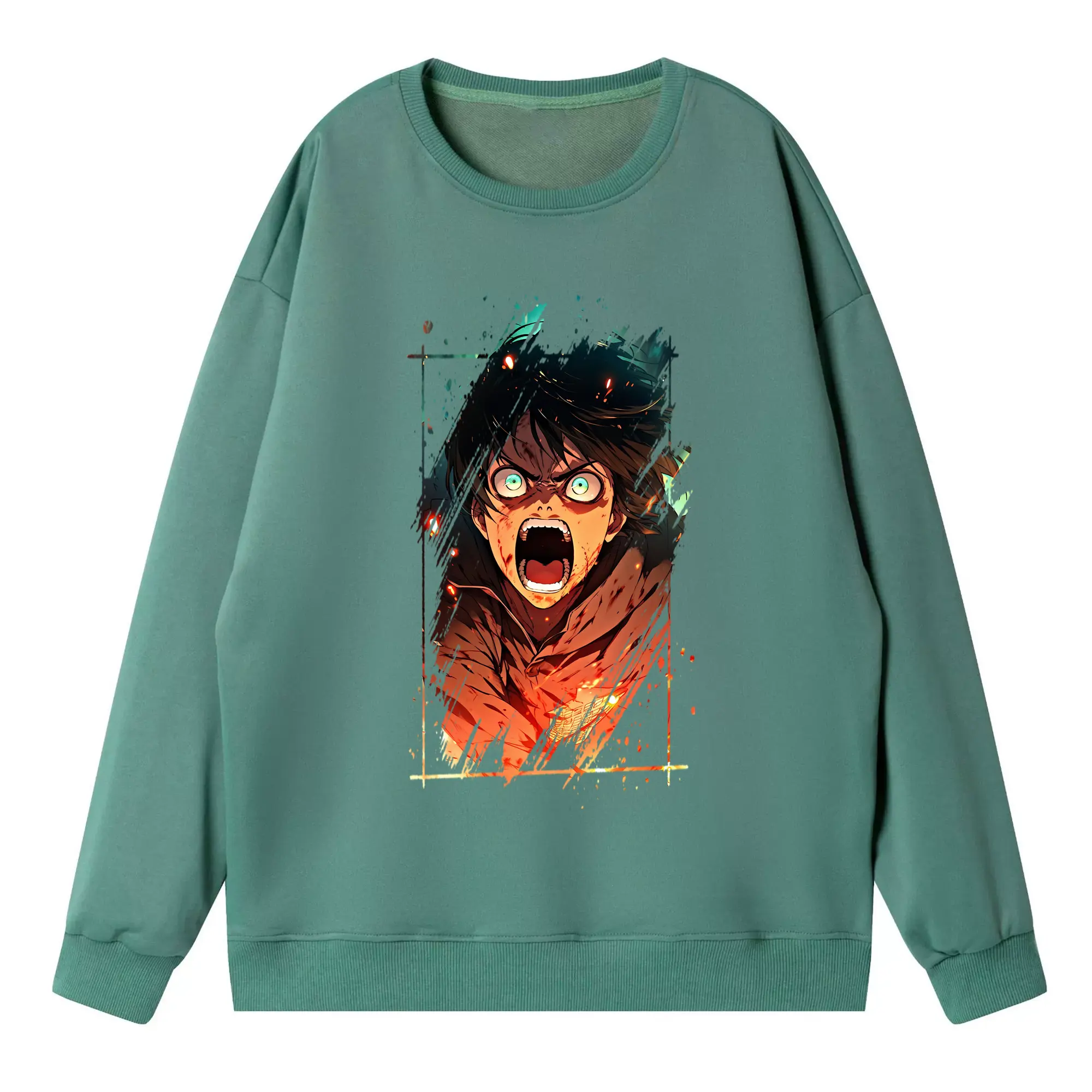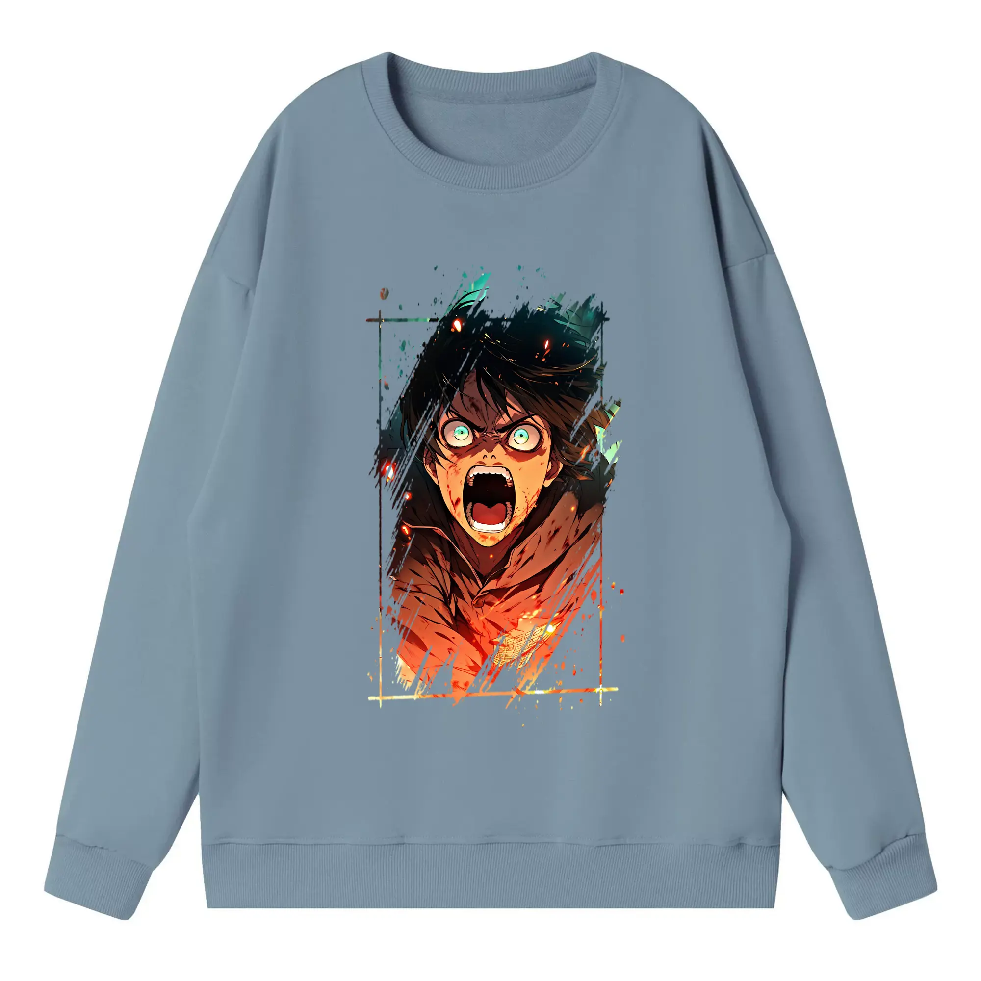 進撃の巨人 グッズ エレン・イェーガー - 高品質 クルーネック スウェット ・ コットン59% ポリエステル41% ・ ユニセックス 長袖 トレーナー ・ カジュアル デイリー スポーツ 散歩用