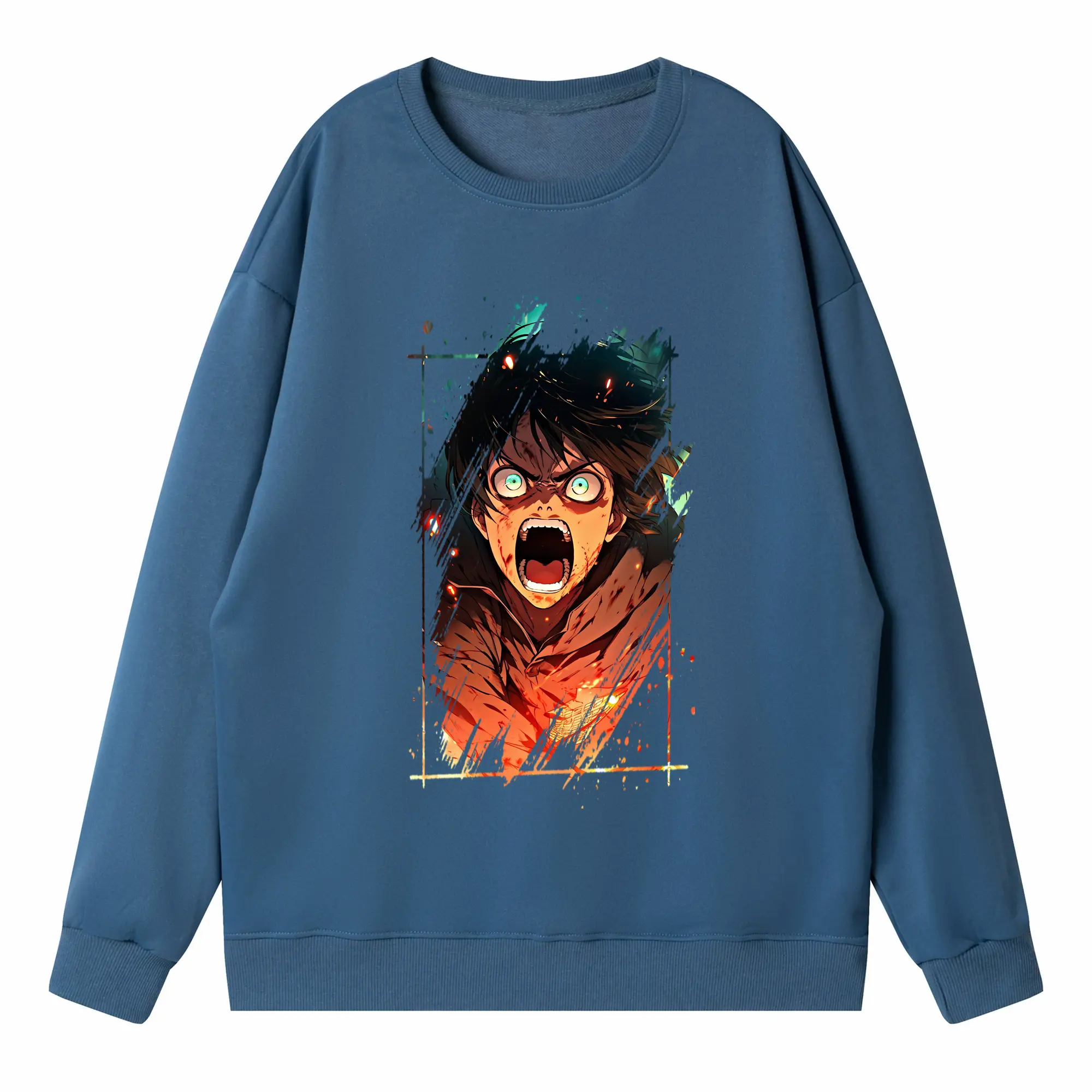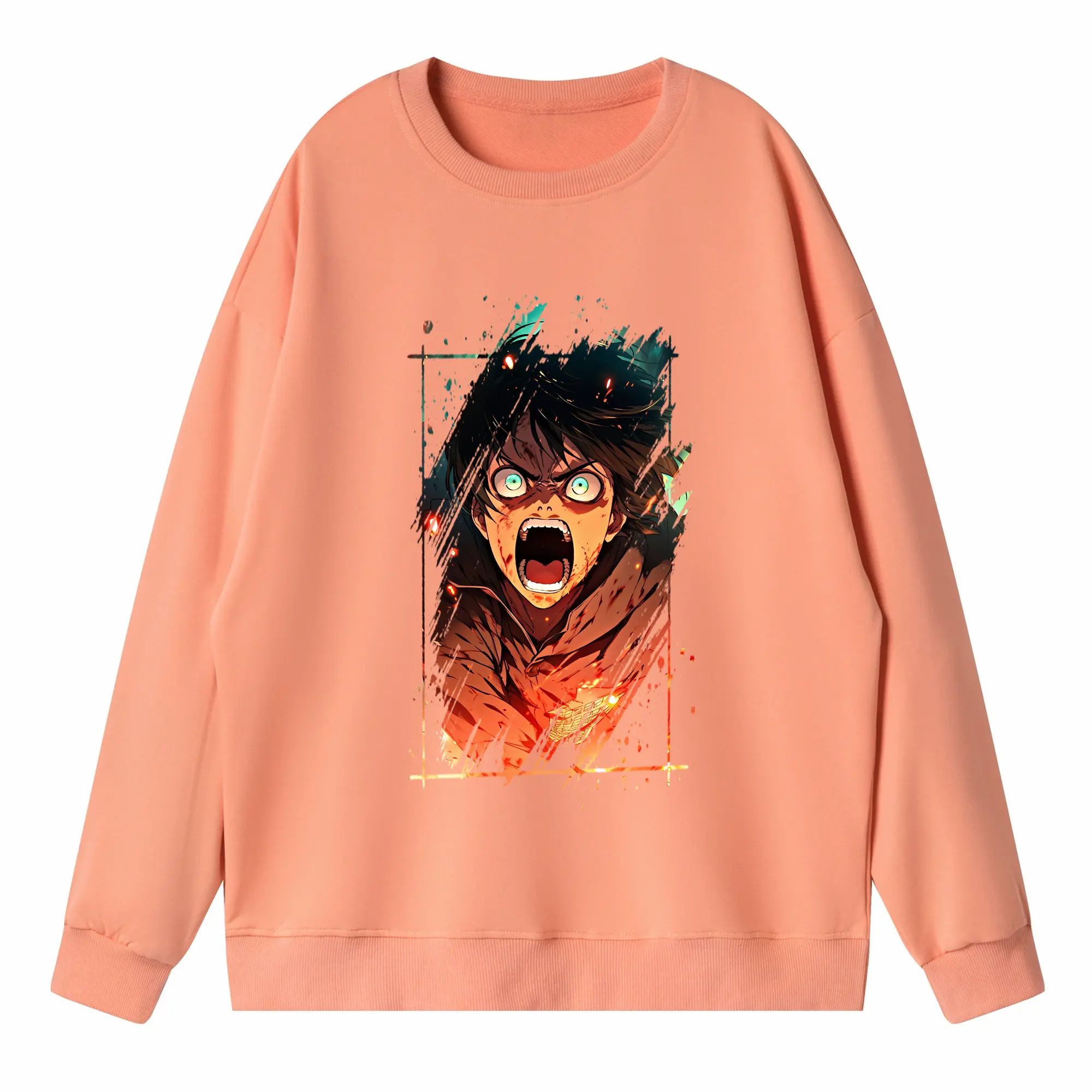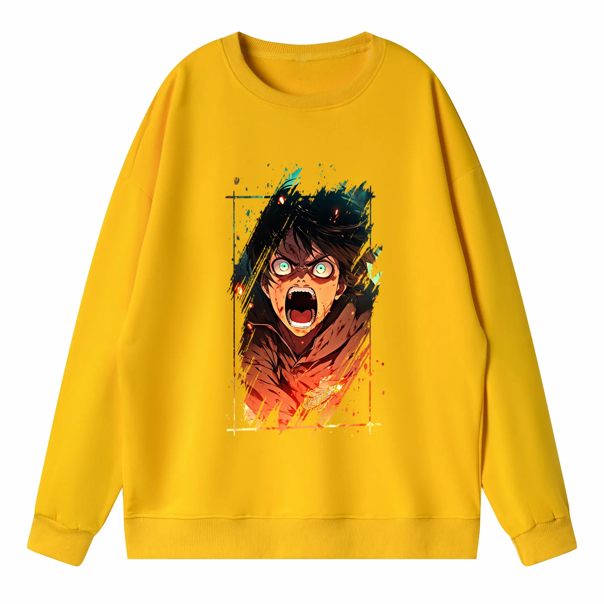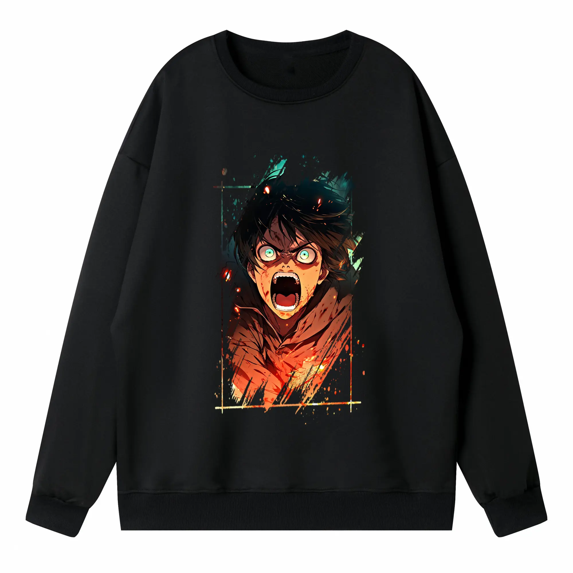 進撃の巨人 グッズ エレン・イェーガー - 高品質 クルーネック スウェット ・ コットン59% ポリエステル41% ・ ユニセックス 長袖 トレーナー ・ カジュアル デイリー スポーツ 散歩用