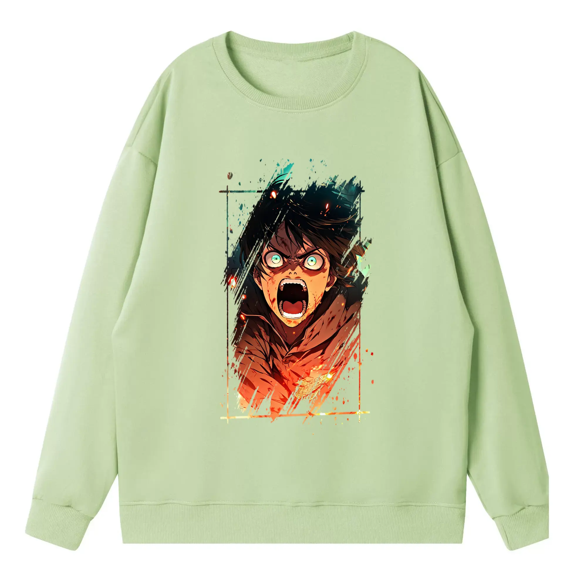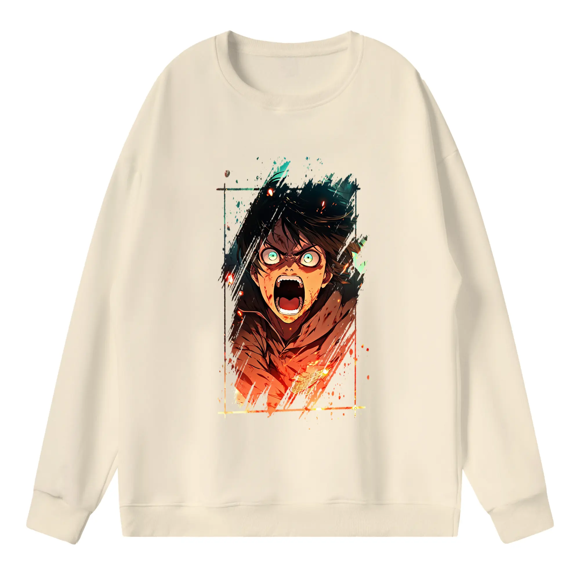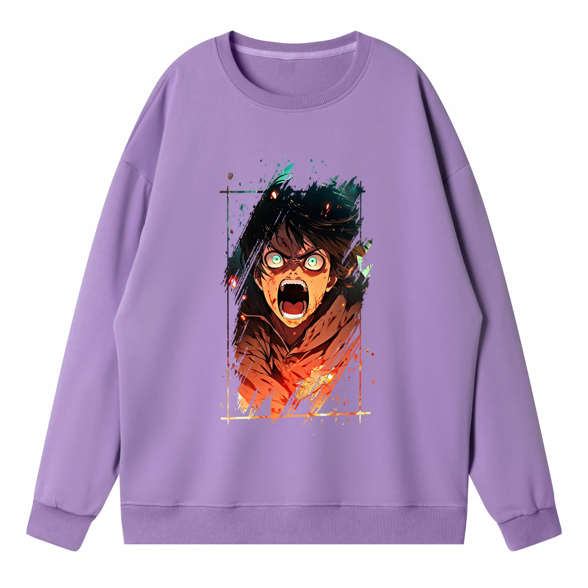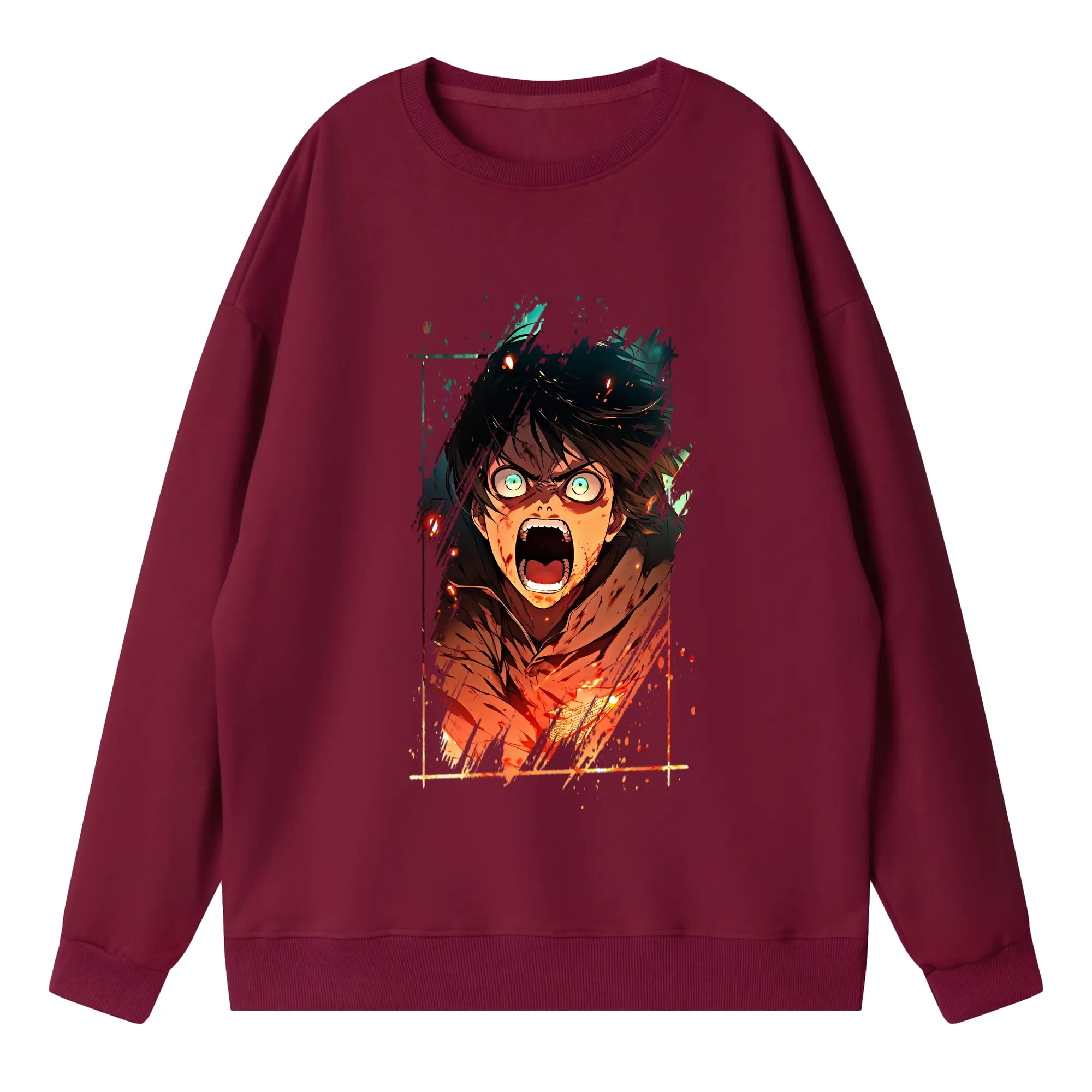 進撃の巨人 グッズ エレン・イェーガー - 高品質 クルーネック スウェット ・ コットン59% ポリエステル41% ・ ユニセックス 長袖 トレーナー ・ カジュアル デイリー スポーツ 散歩用