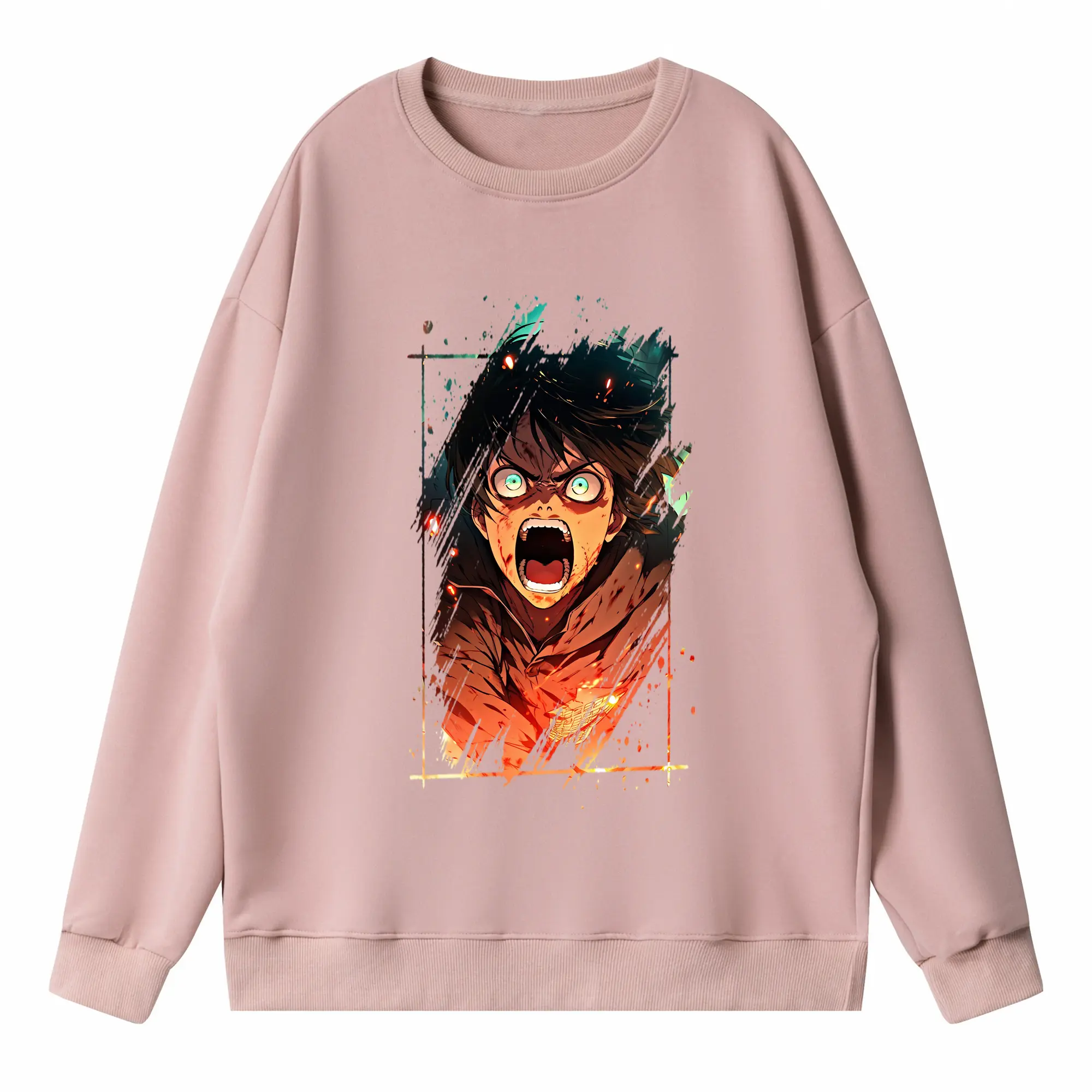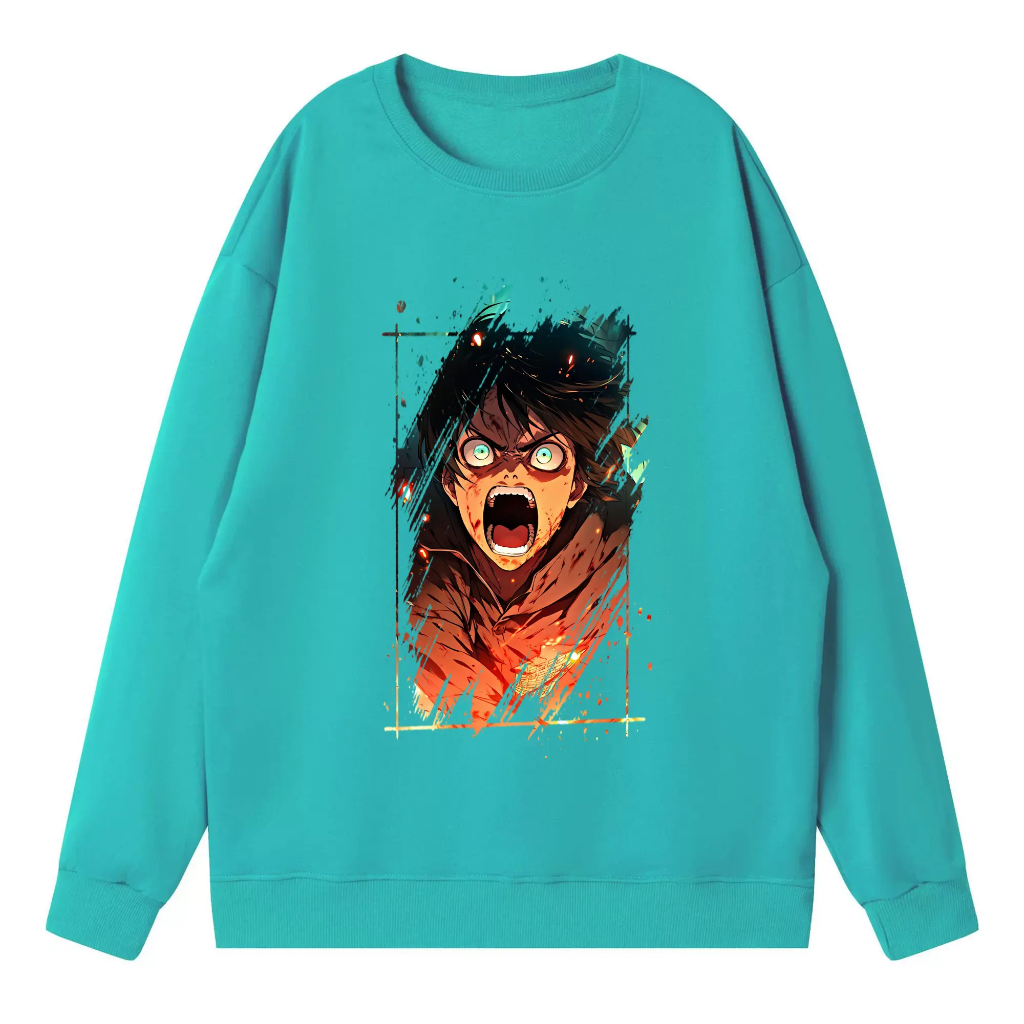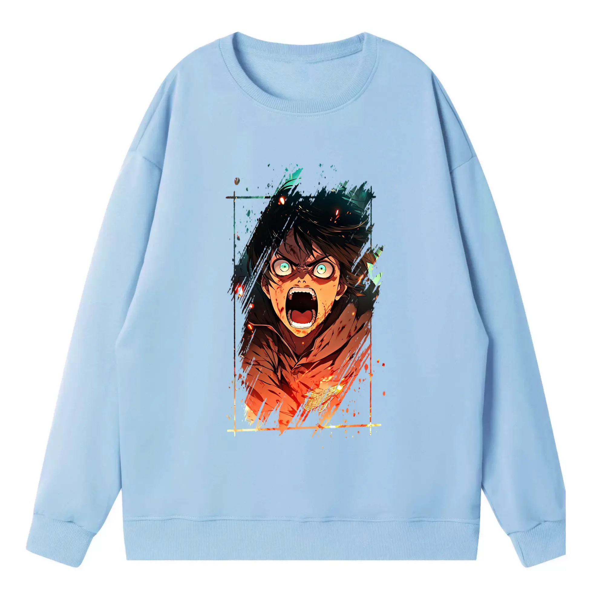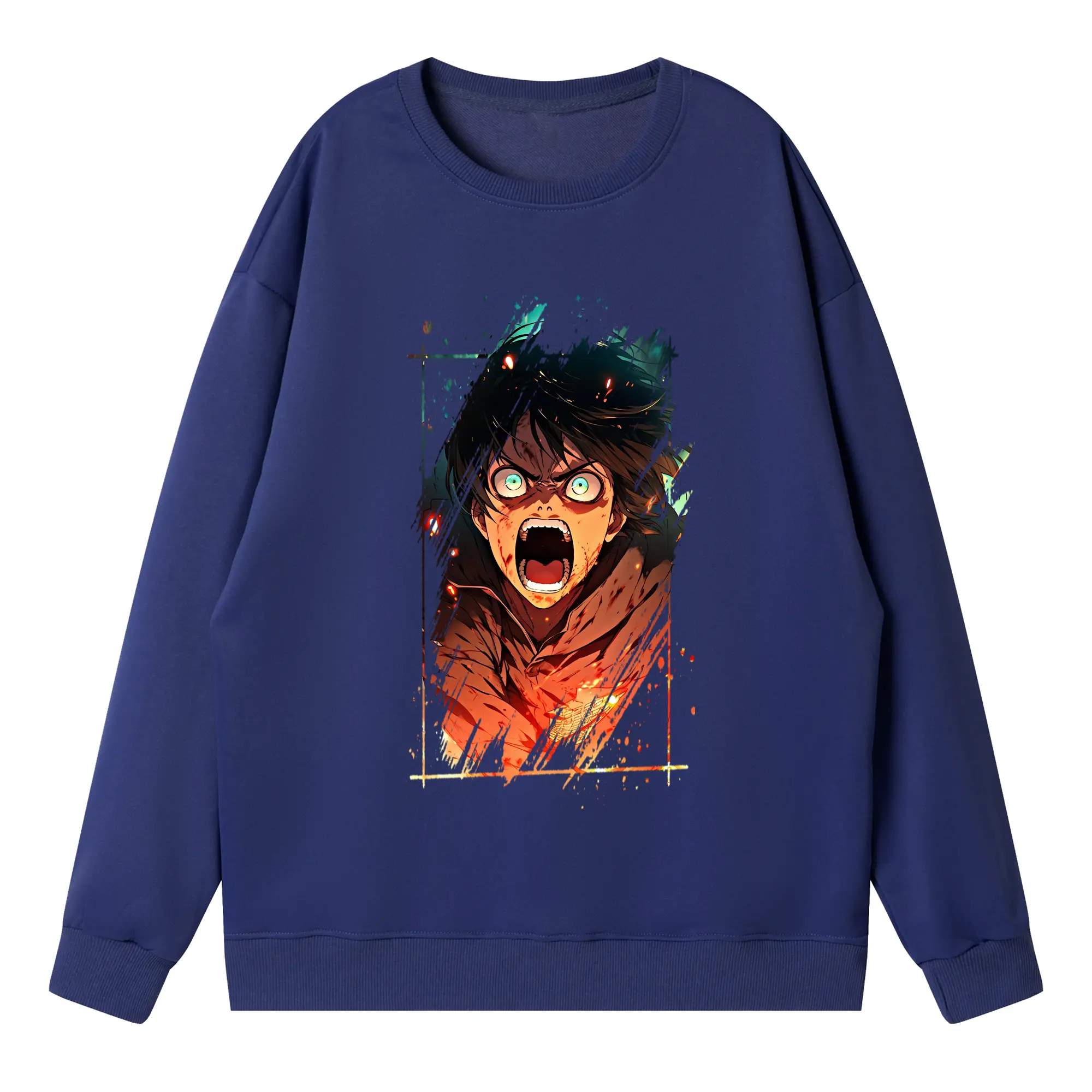 進撃の巨人 グッズ エレン・イェーガー - 高品質 クルーネック スウェット ・ コットン59% ポリエステル41% ・ ユニセックス 長袖 トレーナー ・ カジュアル デイリー スポーツ 散歩用