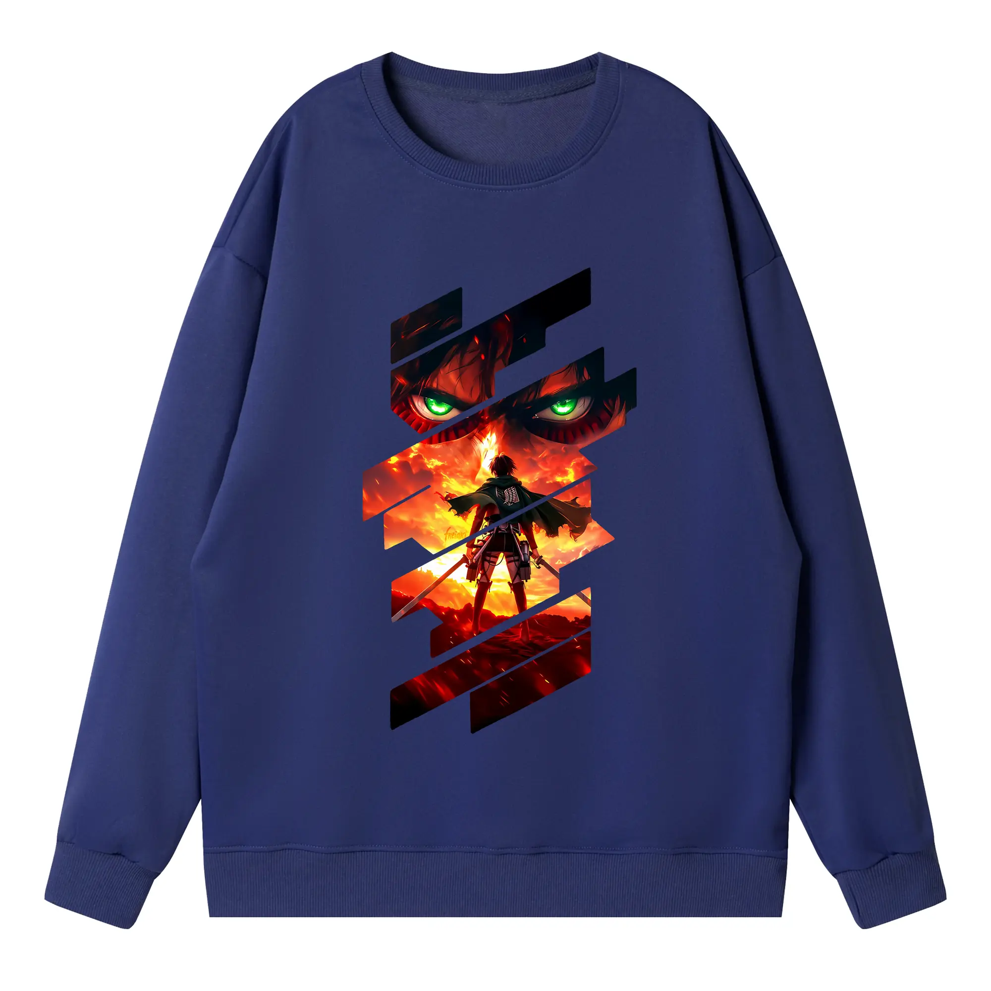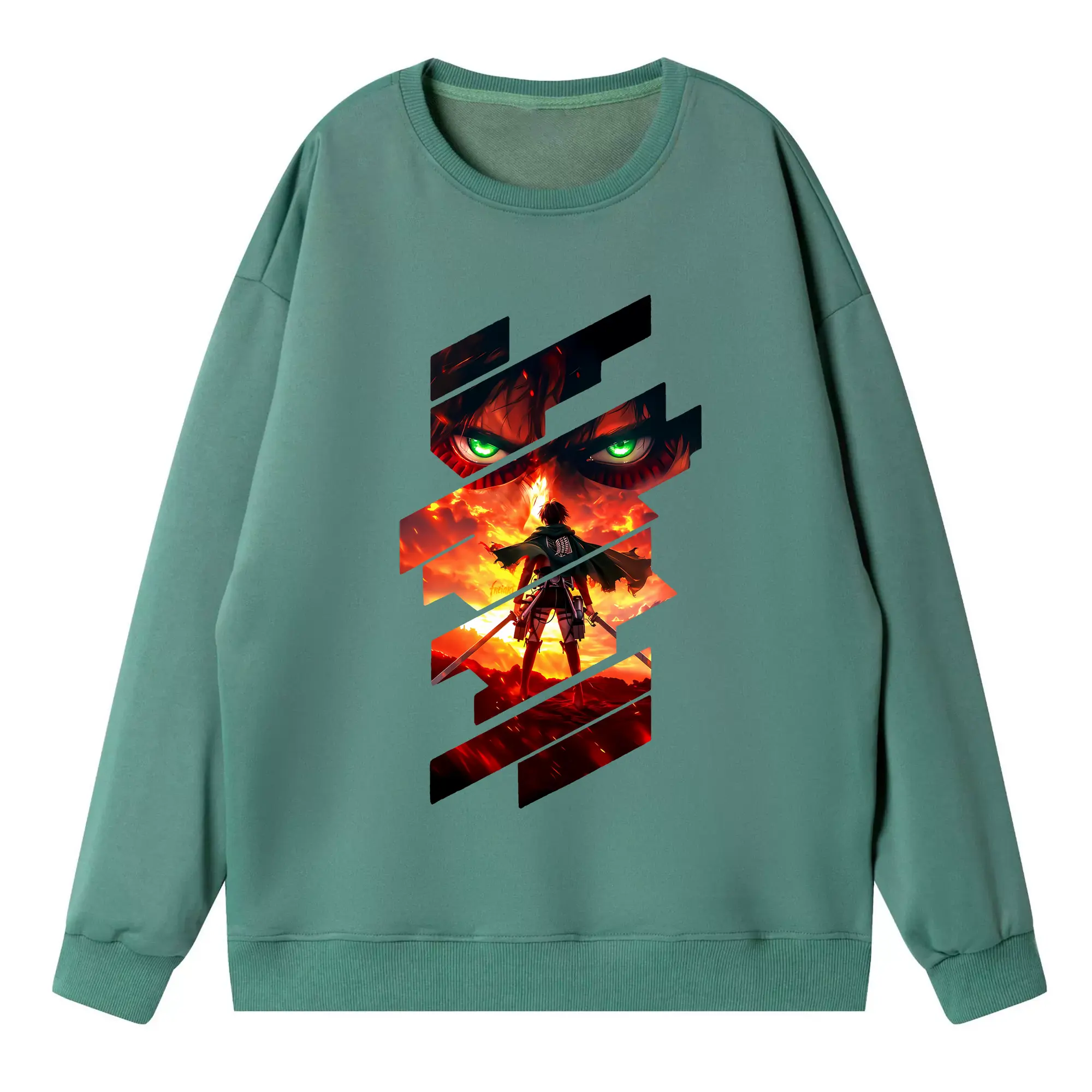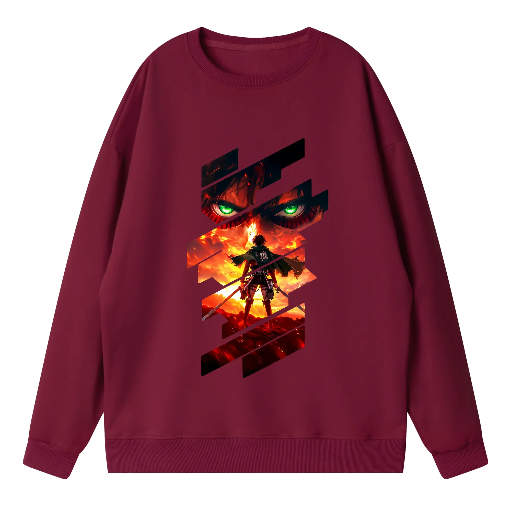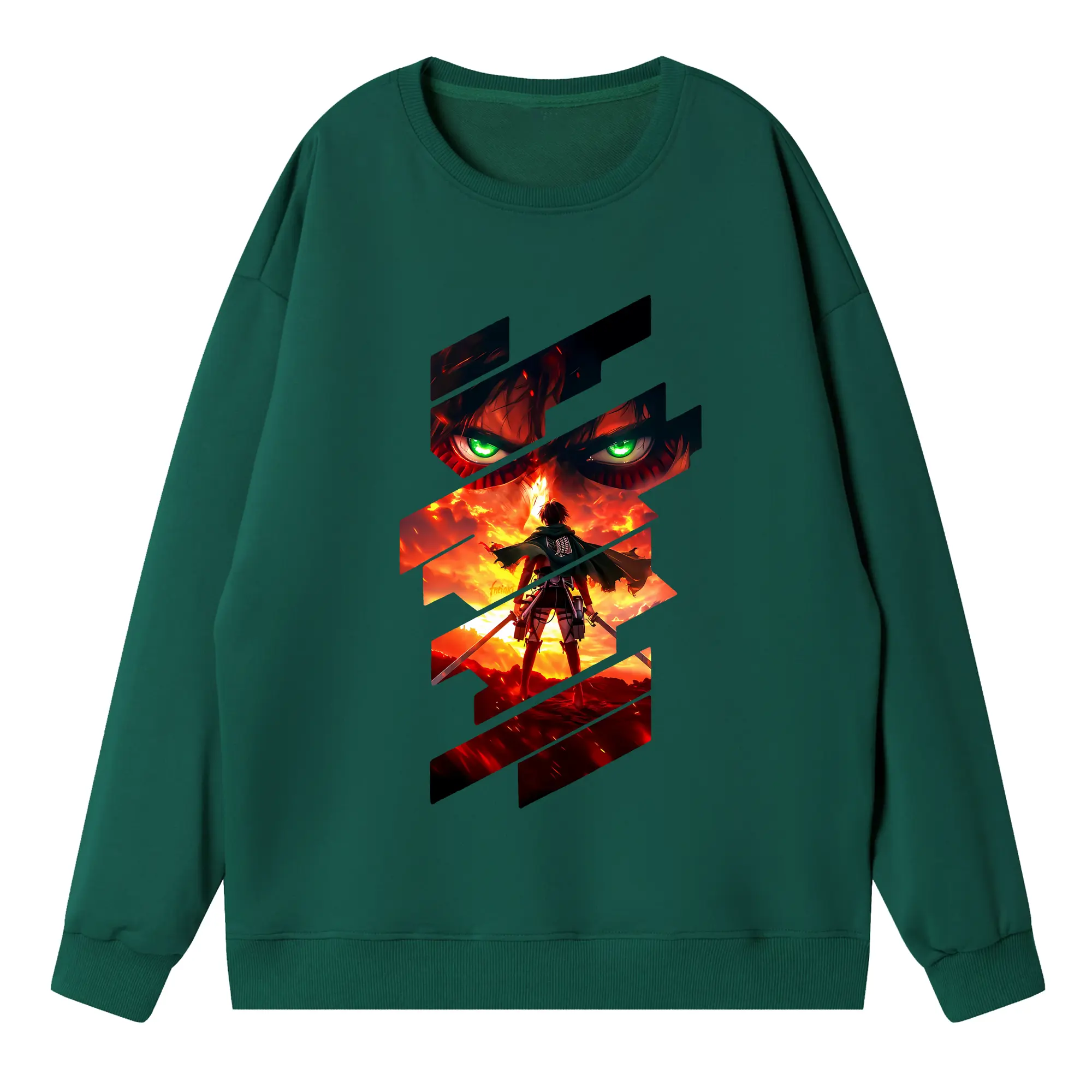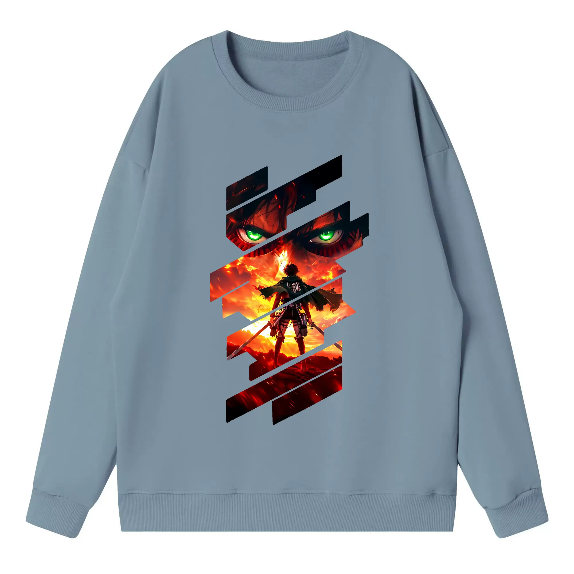 進撃の巨人 グッズ エレン・イェーガー - 高品質 クルーネック スウェット ・ コットン59% ポリエステル41% ・ ユニセックス 長袖 トレーナー ・ カジュアル デイリー スポーツ 散歩用
