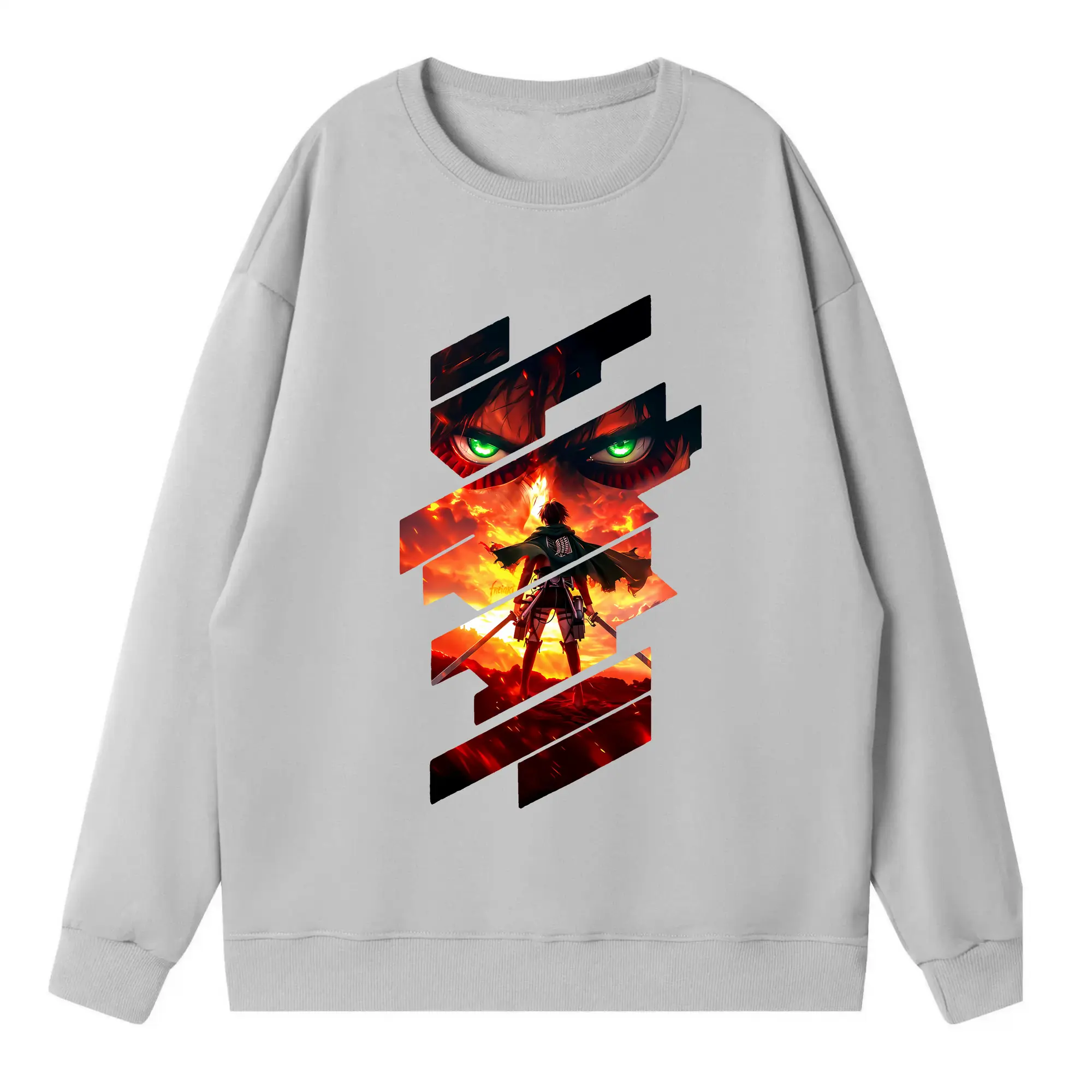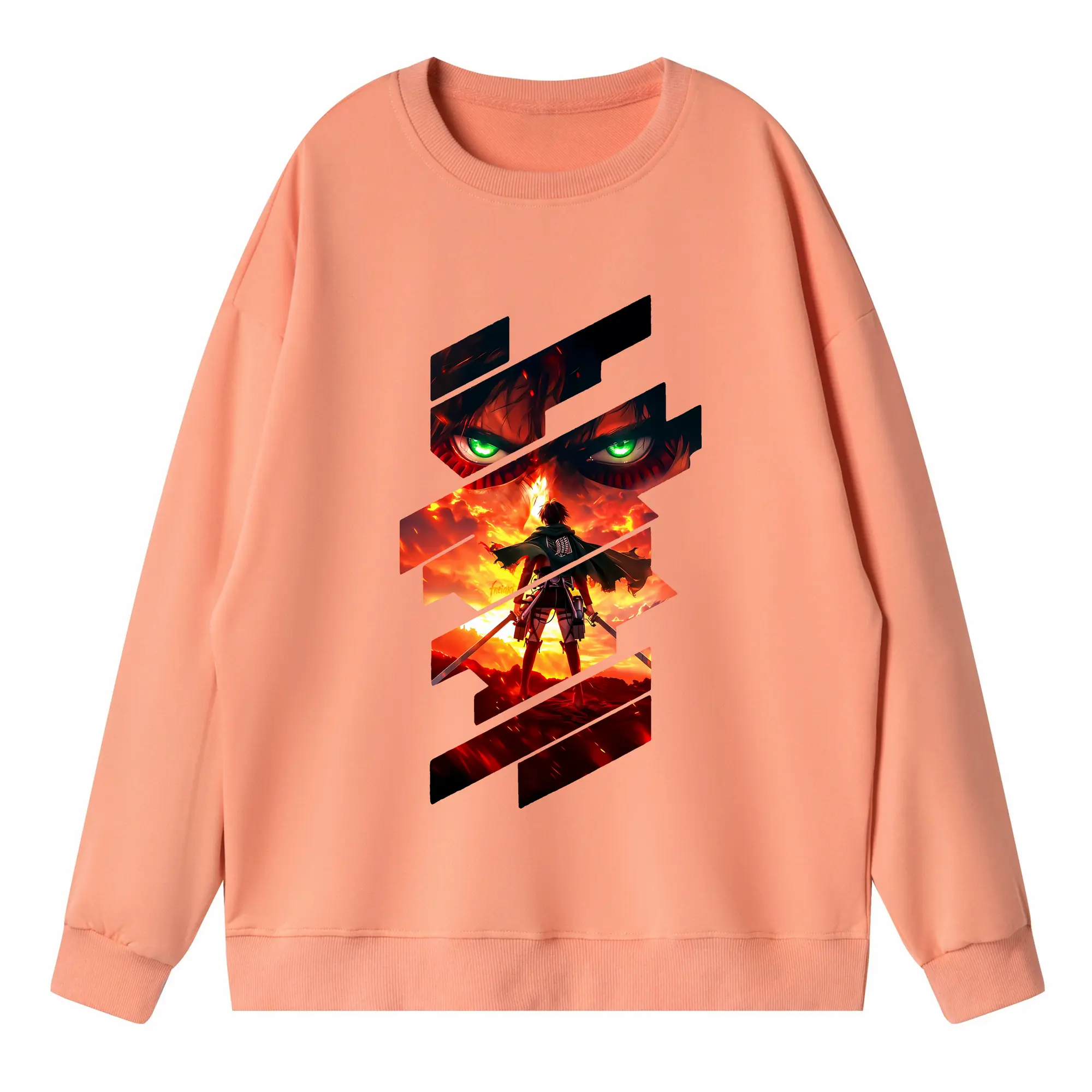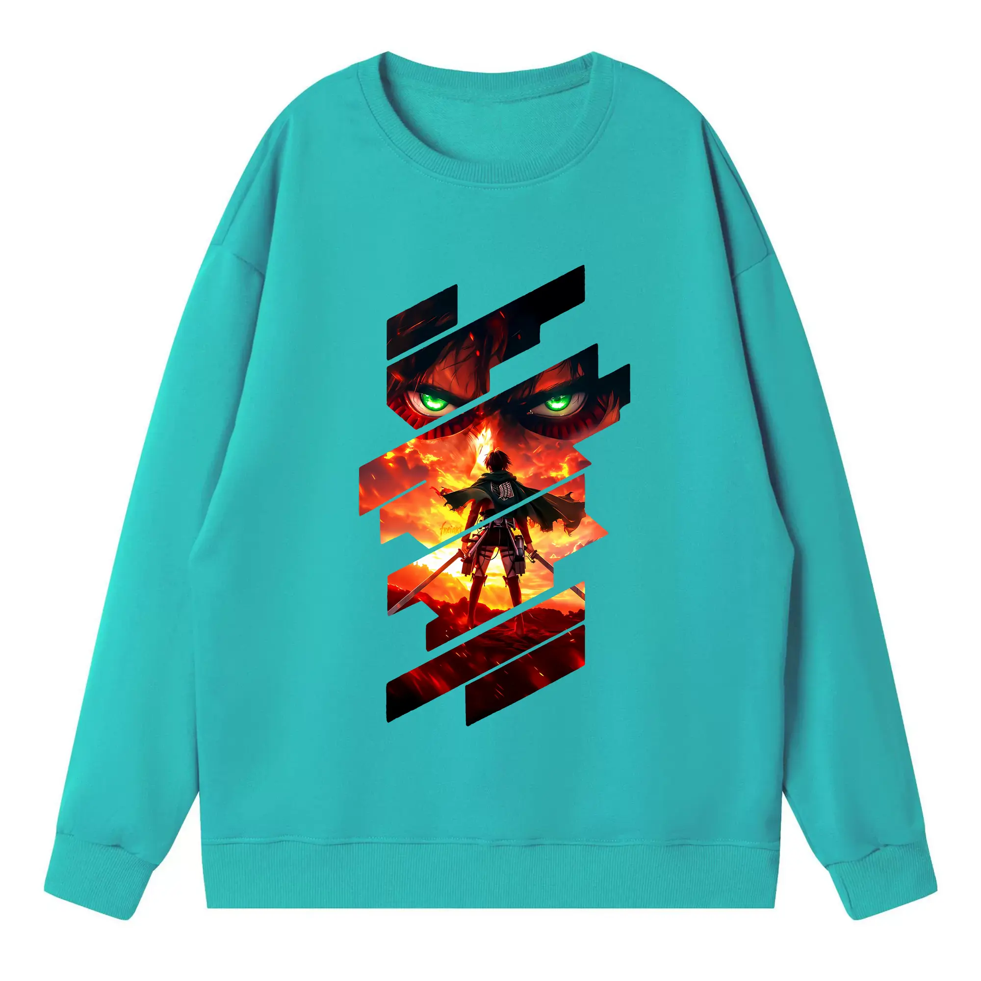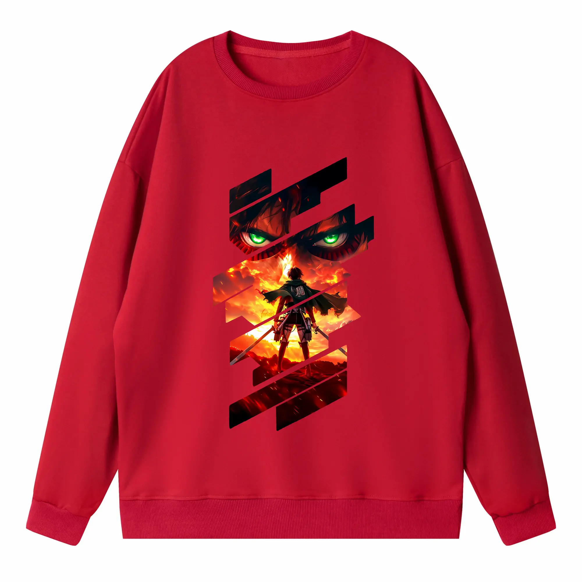 進撃の巨人 グッズ エレン・イェーガー - 高品質 クルーネック スウェット ・ コットン59% ポリエステル41% ・ ユニセックス 長袖 トレーナー ・ カジュアル デイリー スポーツ 散歩用
