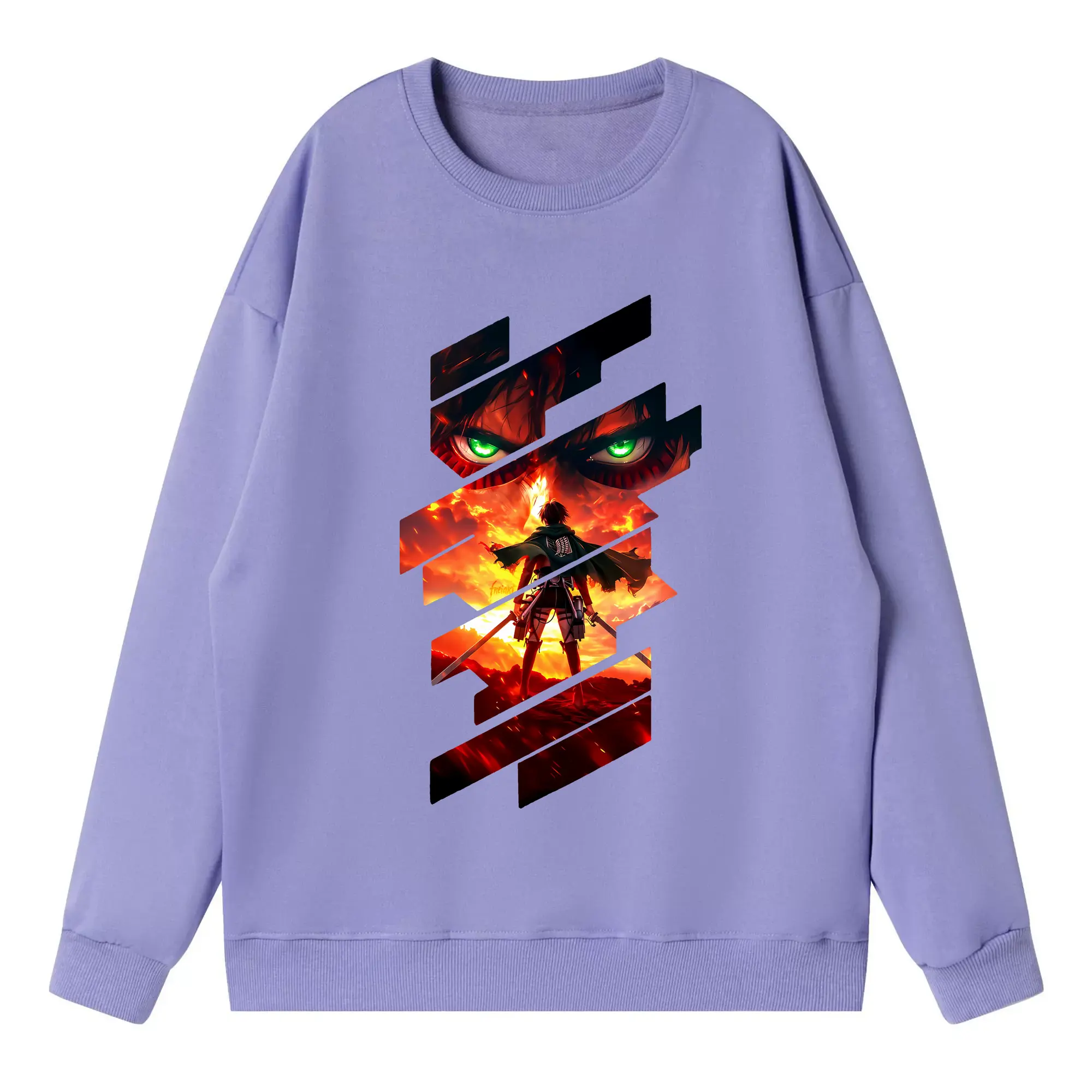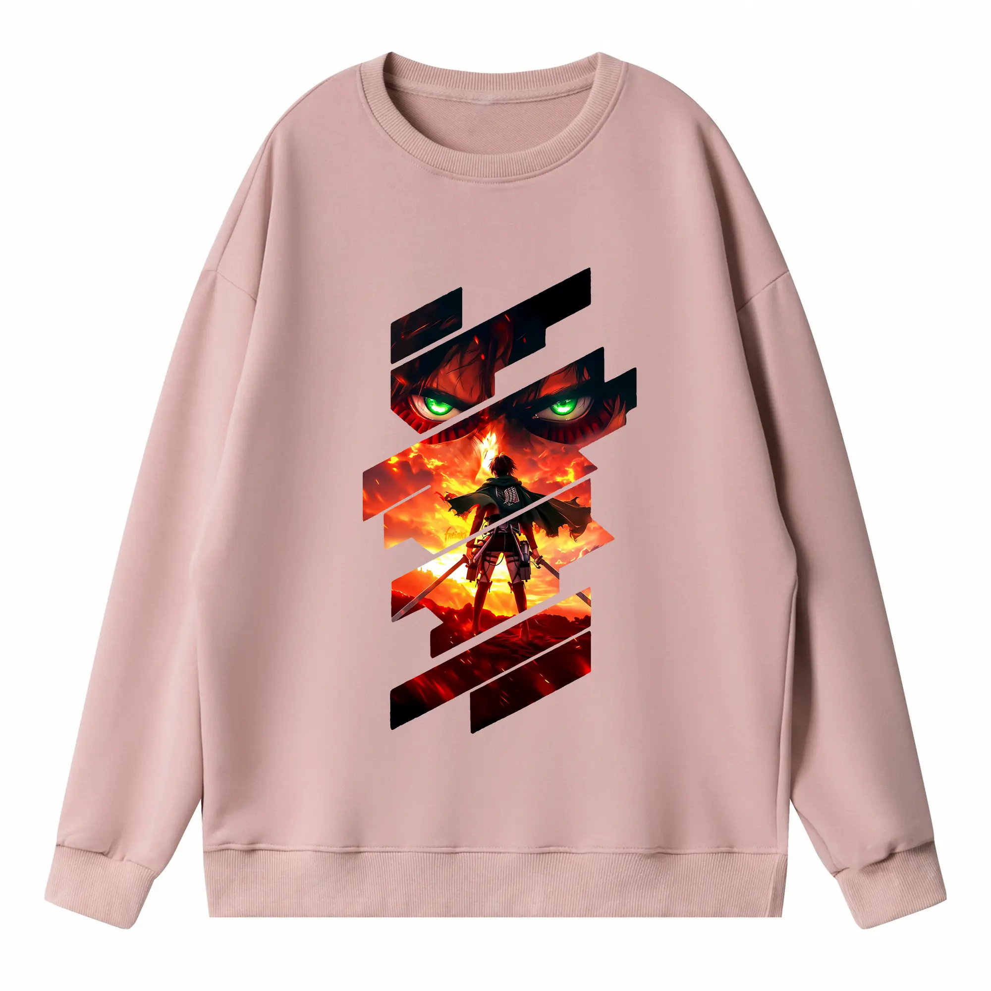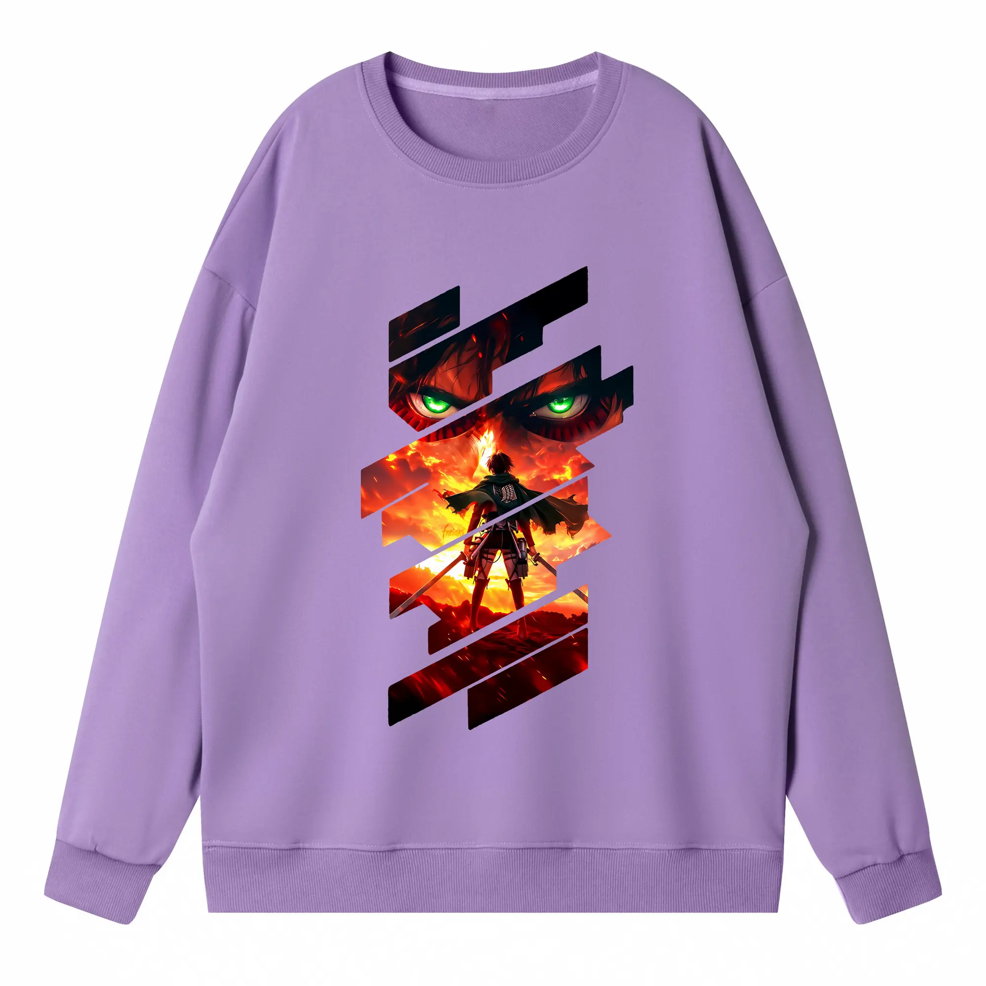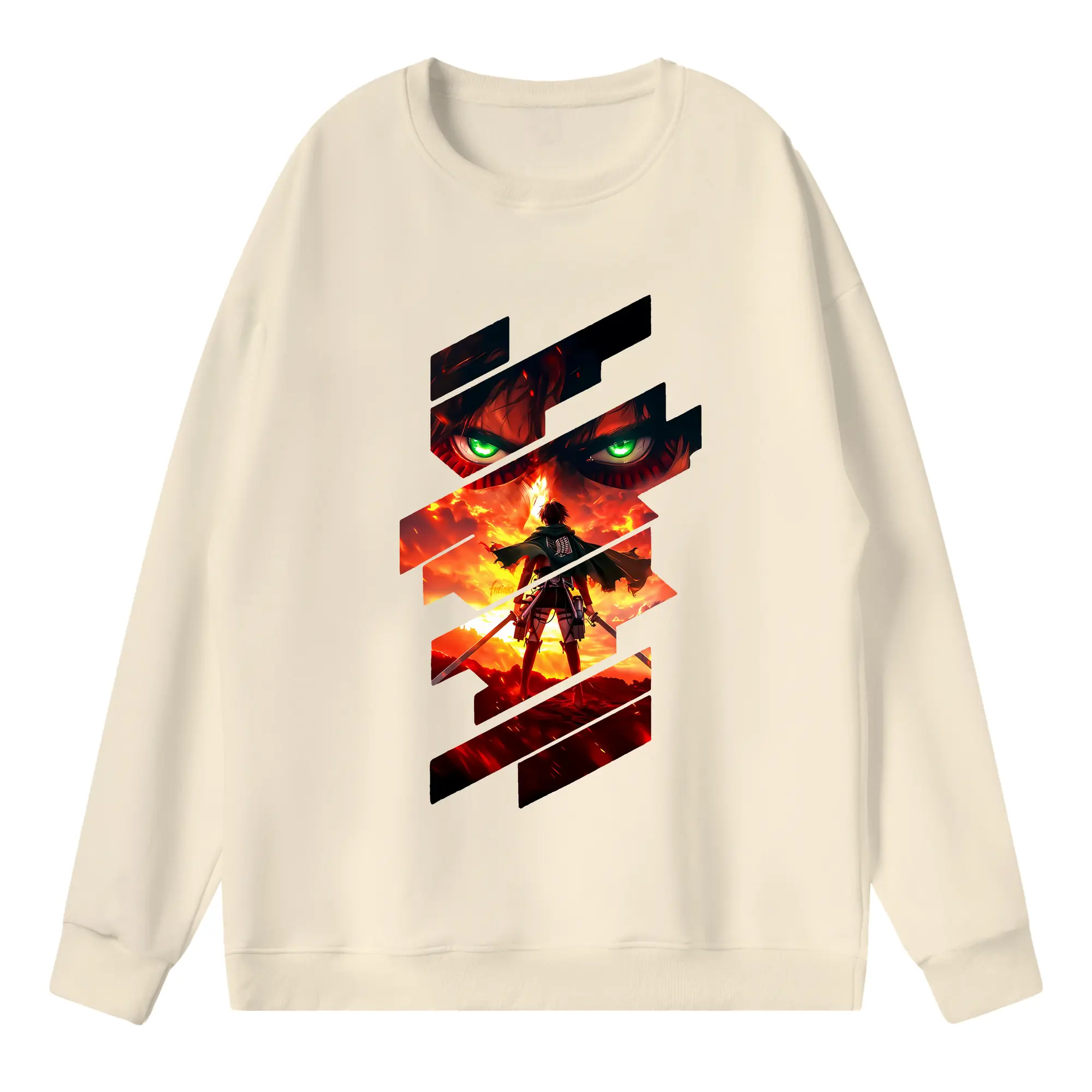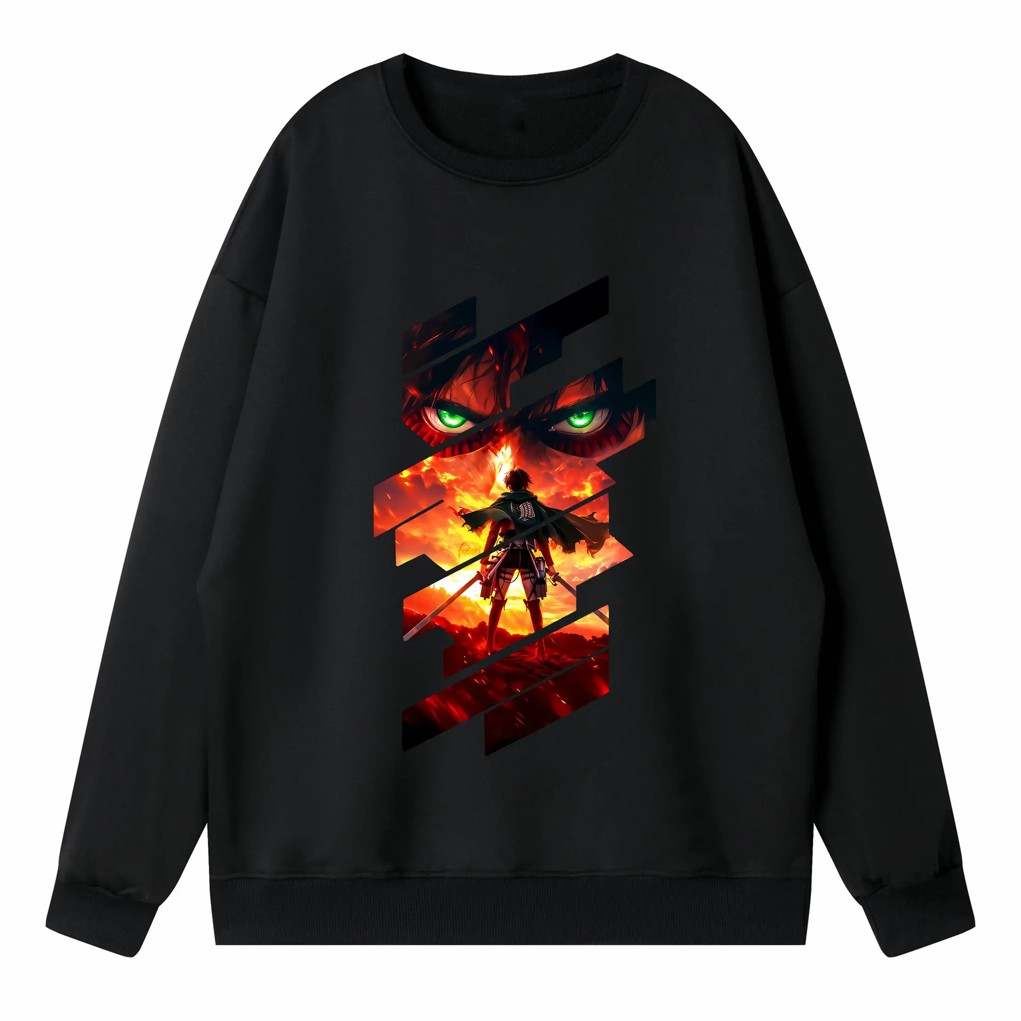 進撃の巨人 グッズ エレン・イェーガー - 高品質 クルーネック スウェット ・ コットン59% ポリエステル41% ・ ユニセックス 長袖 トレーナー ・ カジュアル デイリー スポーツ 散歩用