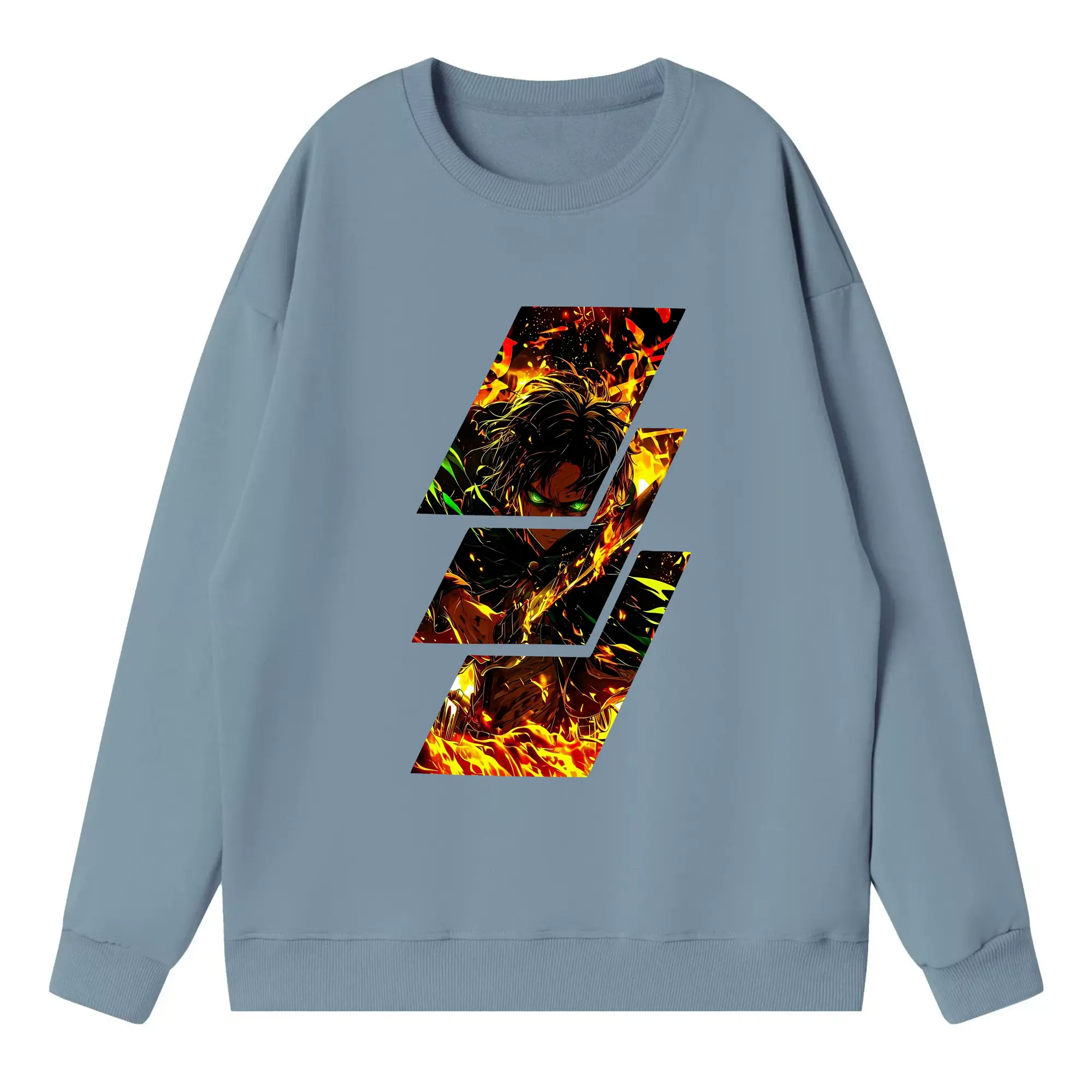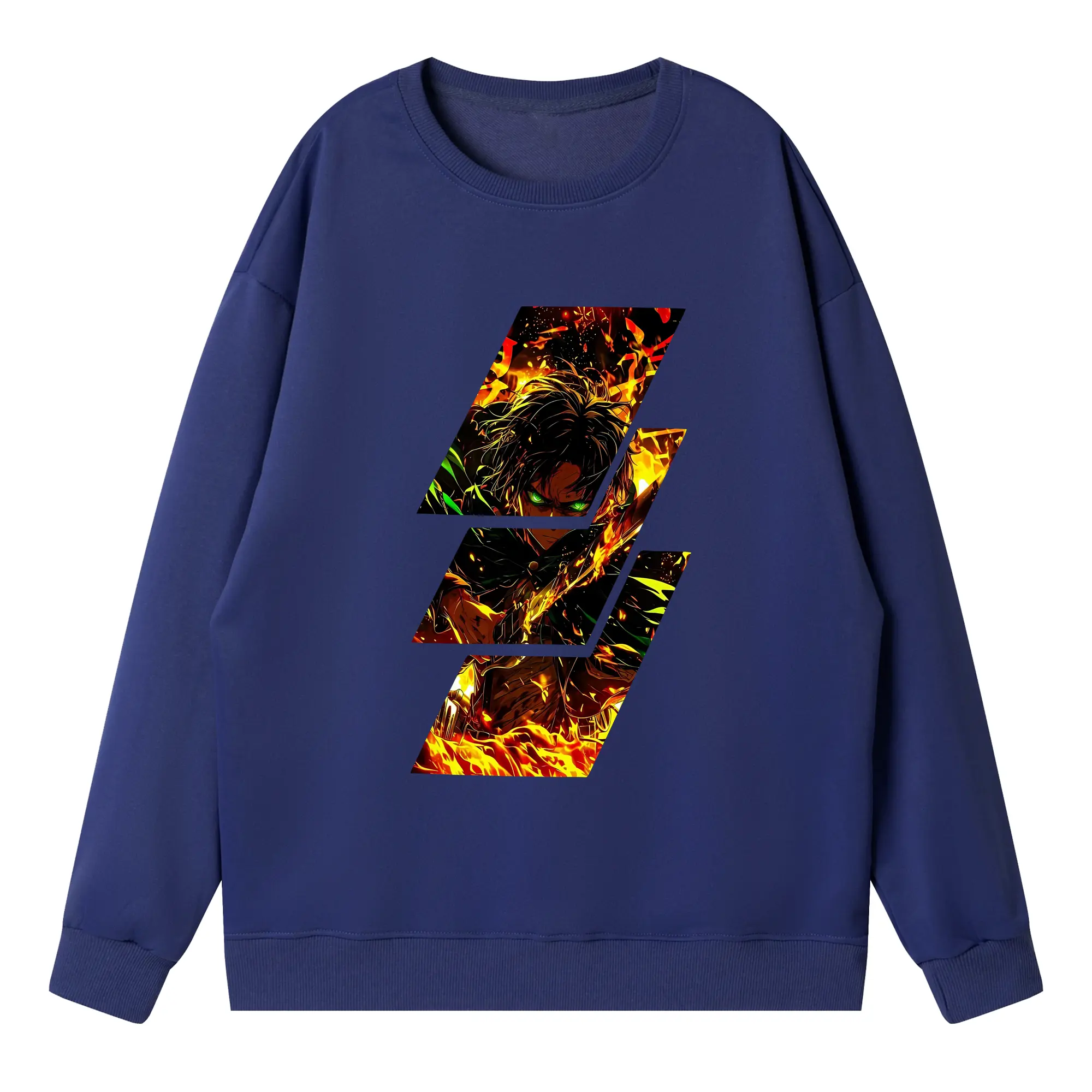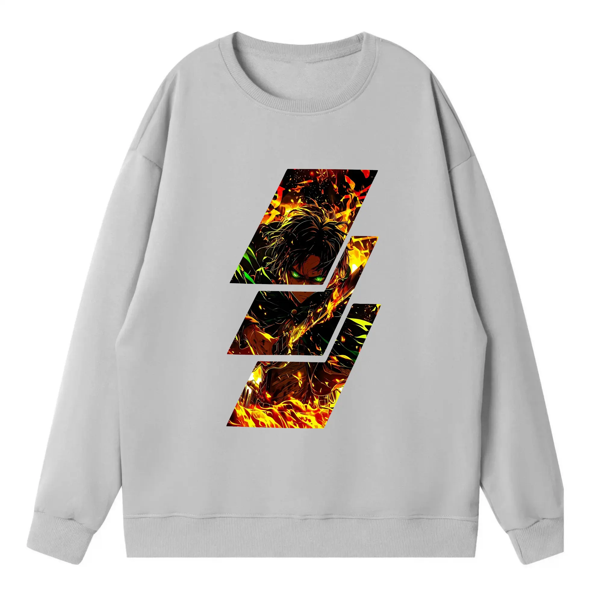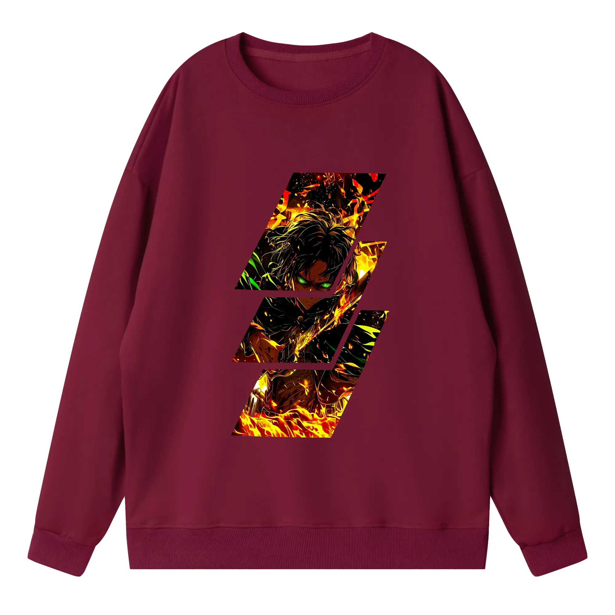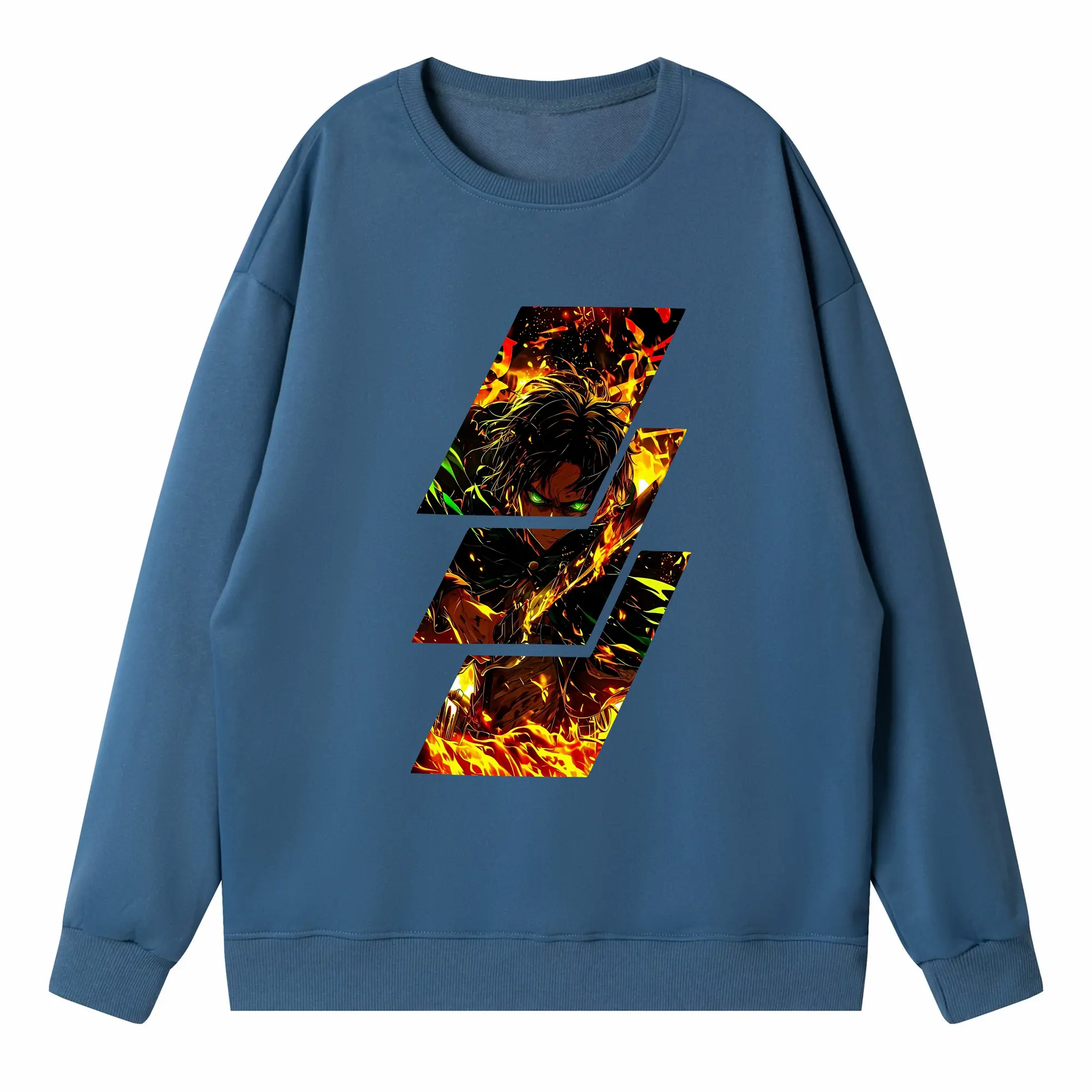 進撃の巨人 グッズ エレン・イェーガー - 高品質 クルーネック スウェット ・ コットン59% ポリエステル41% ・ ユニセックス 長袖 トレーナー ・ カジュアル デイリー スポーツ 散歩用