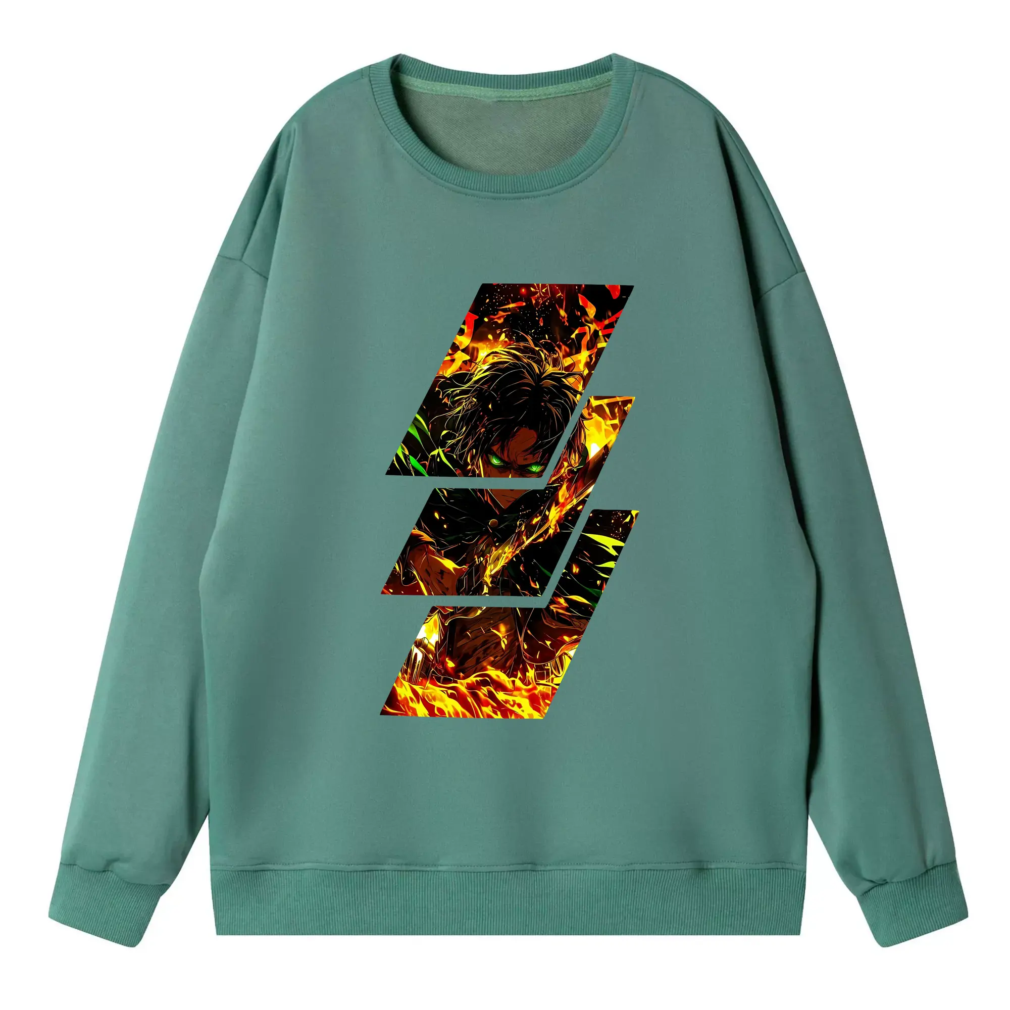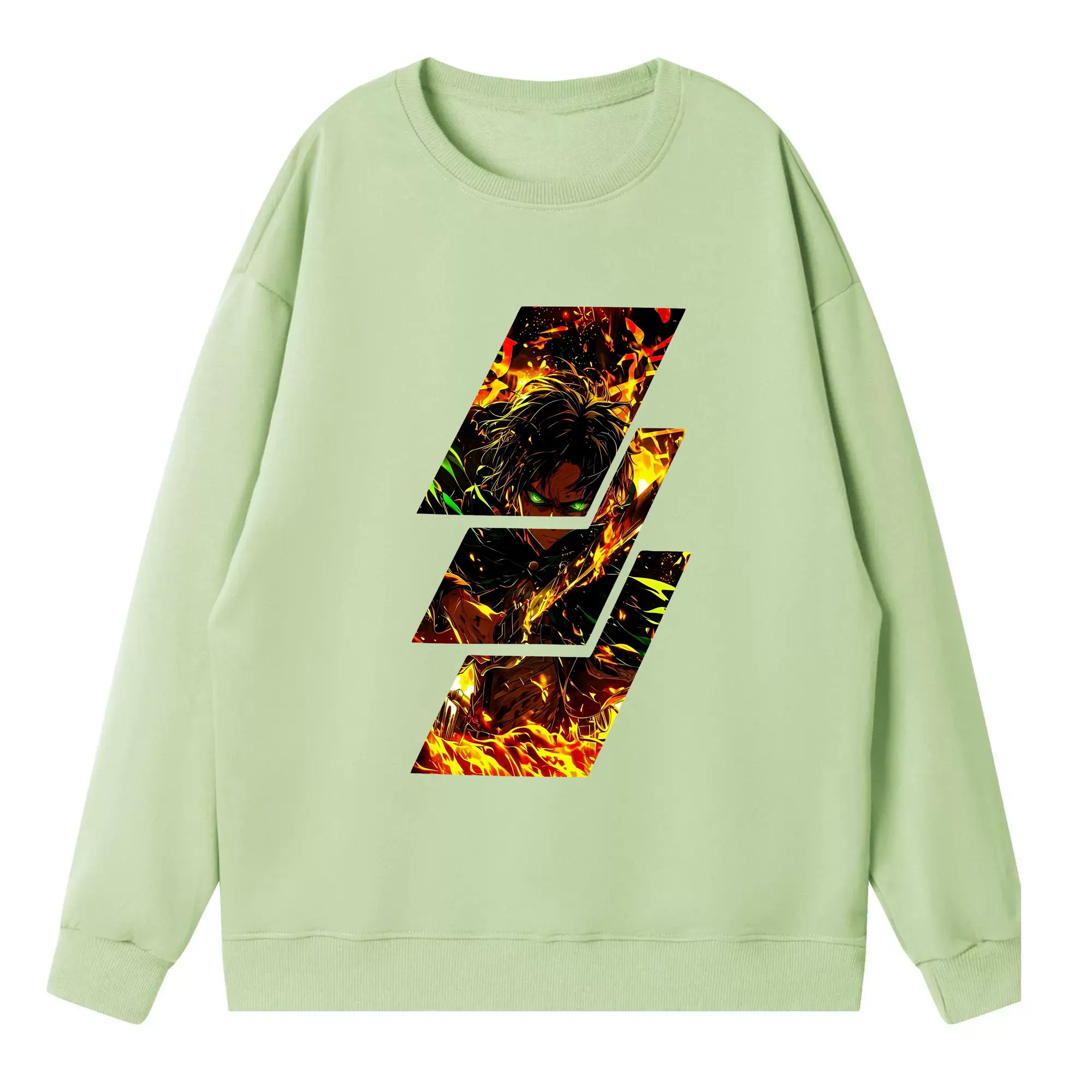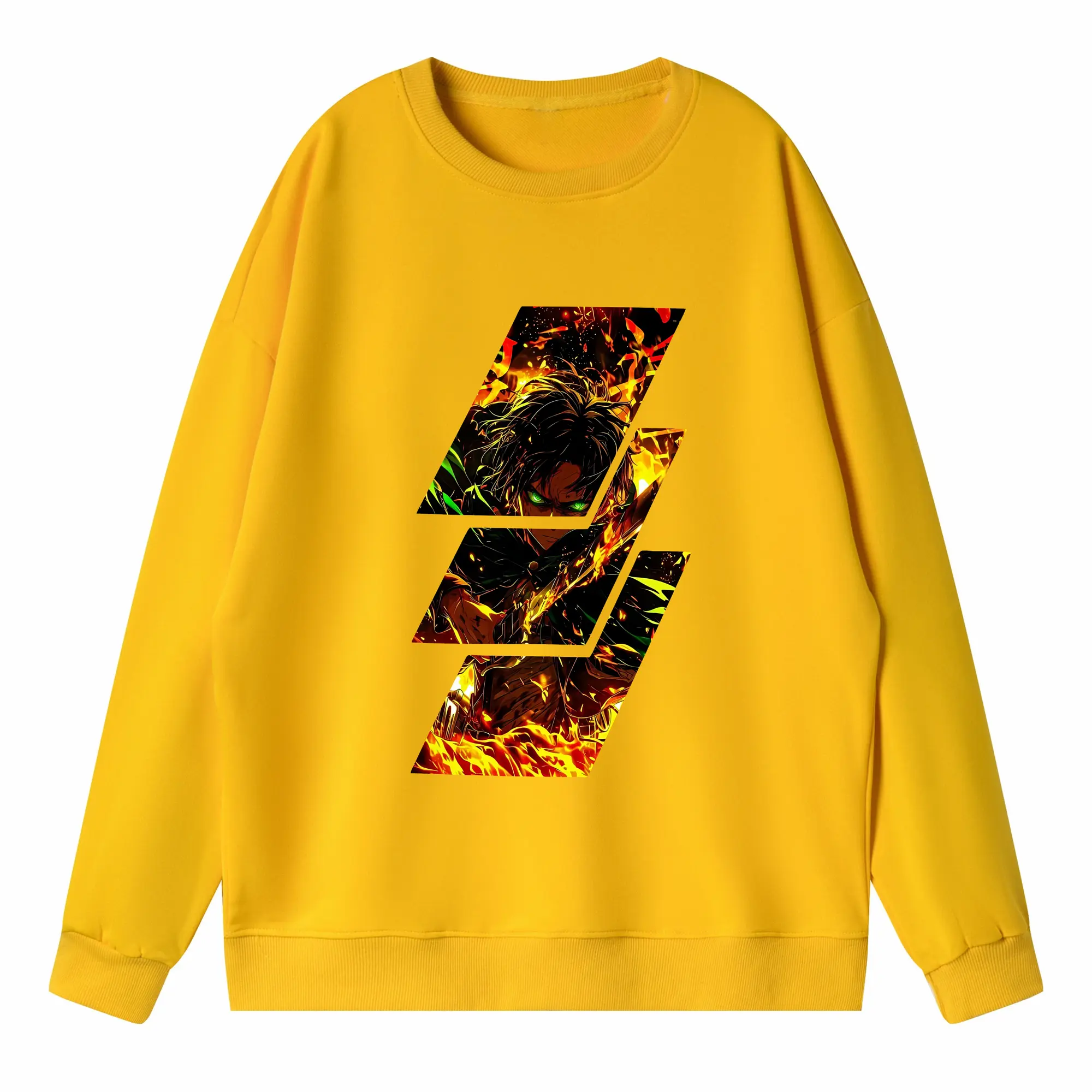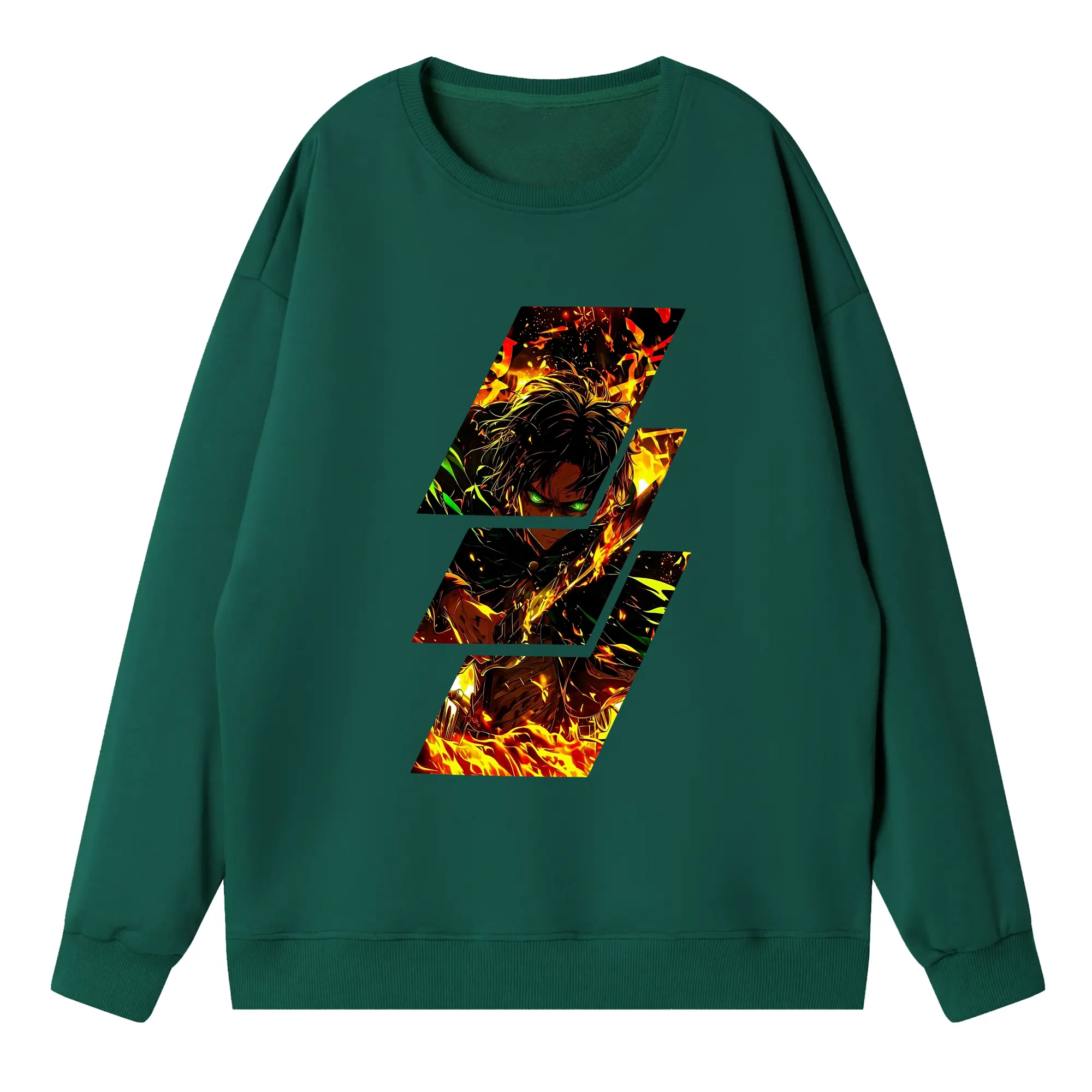 進撃の巨人 グッズ エレン・イェーガー - 高品質 クルーネック スウェット ・ コットン59% ポリエステル41% ・ ユニセックス 長袖 トレーナー ・ カジュアル デイリー スポーツ 散歩用