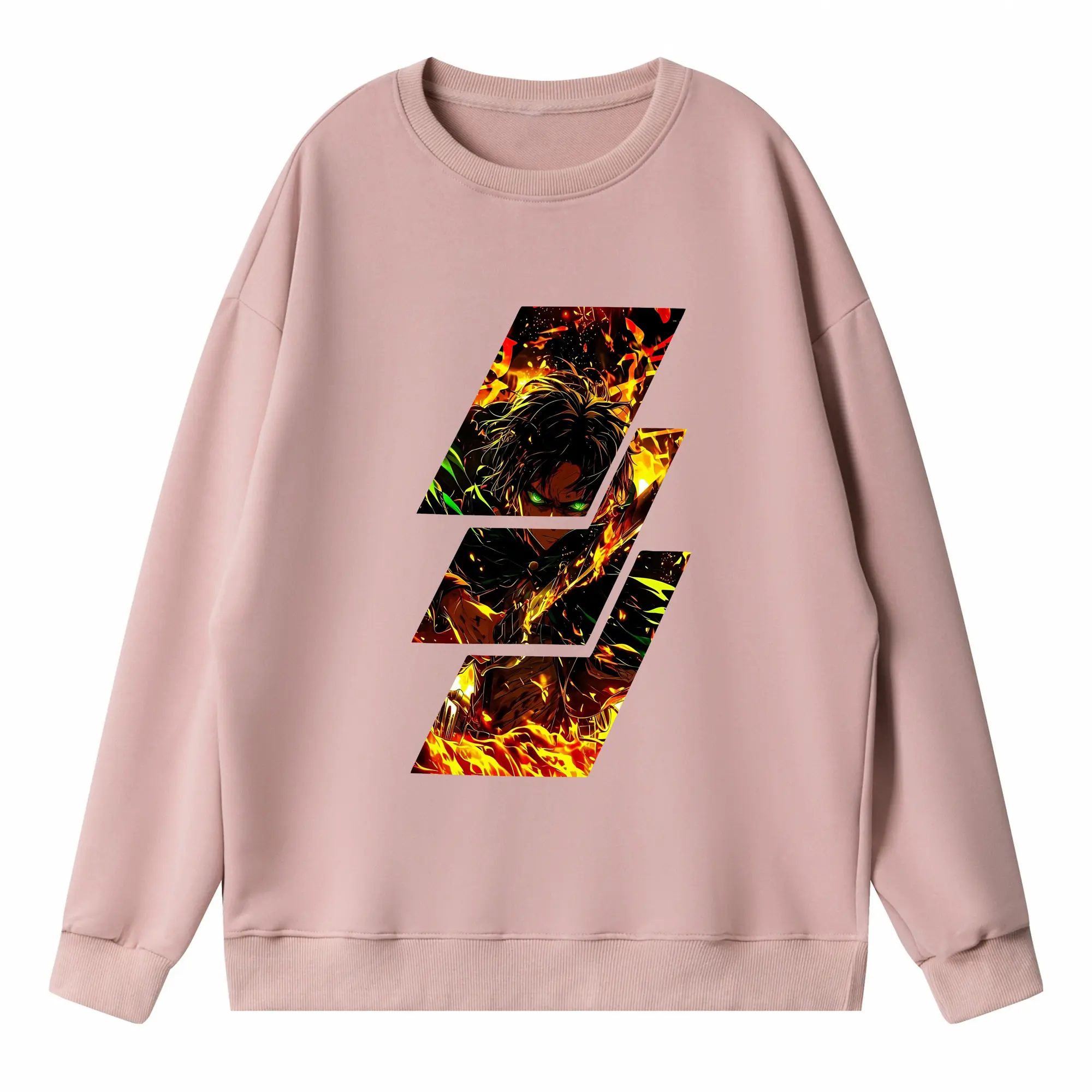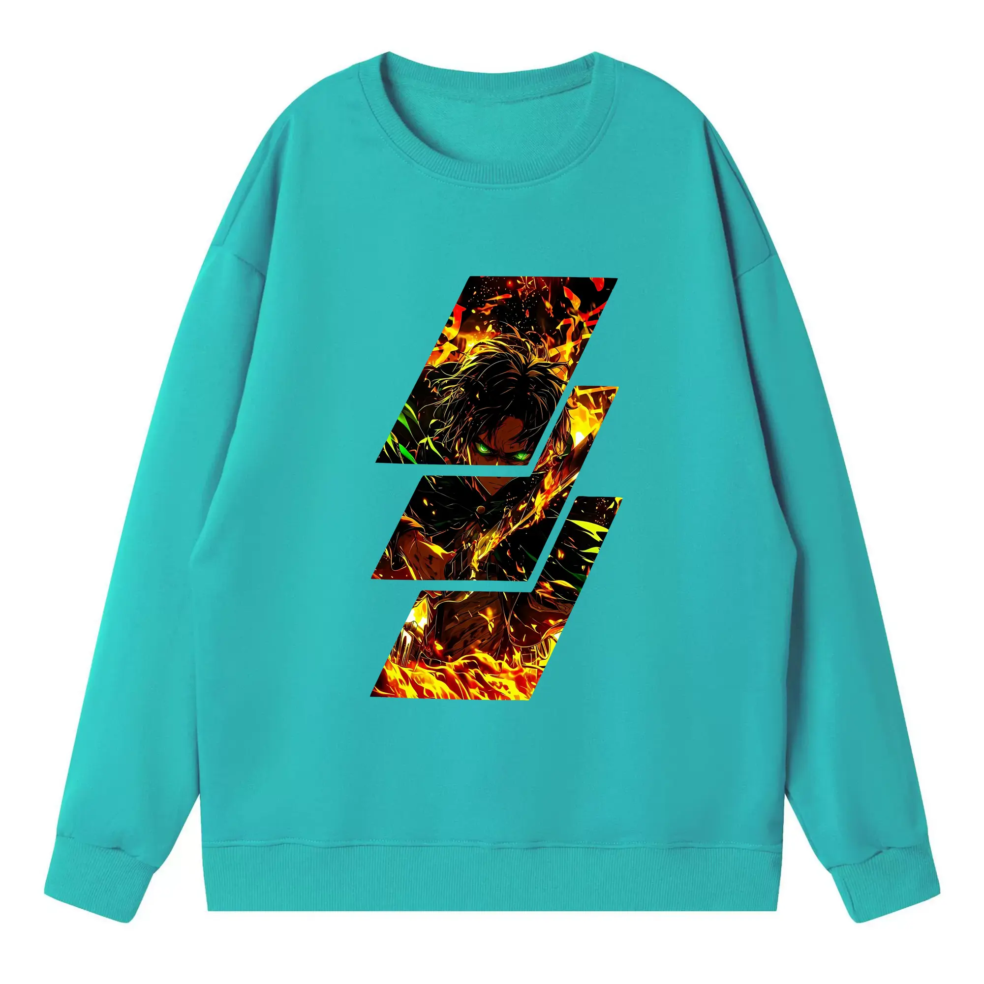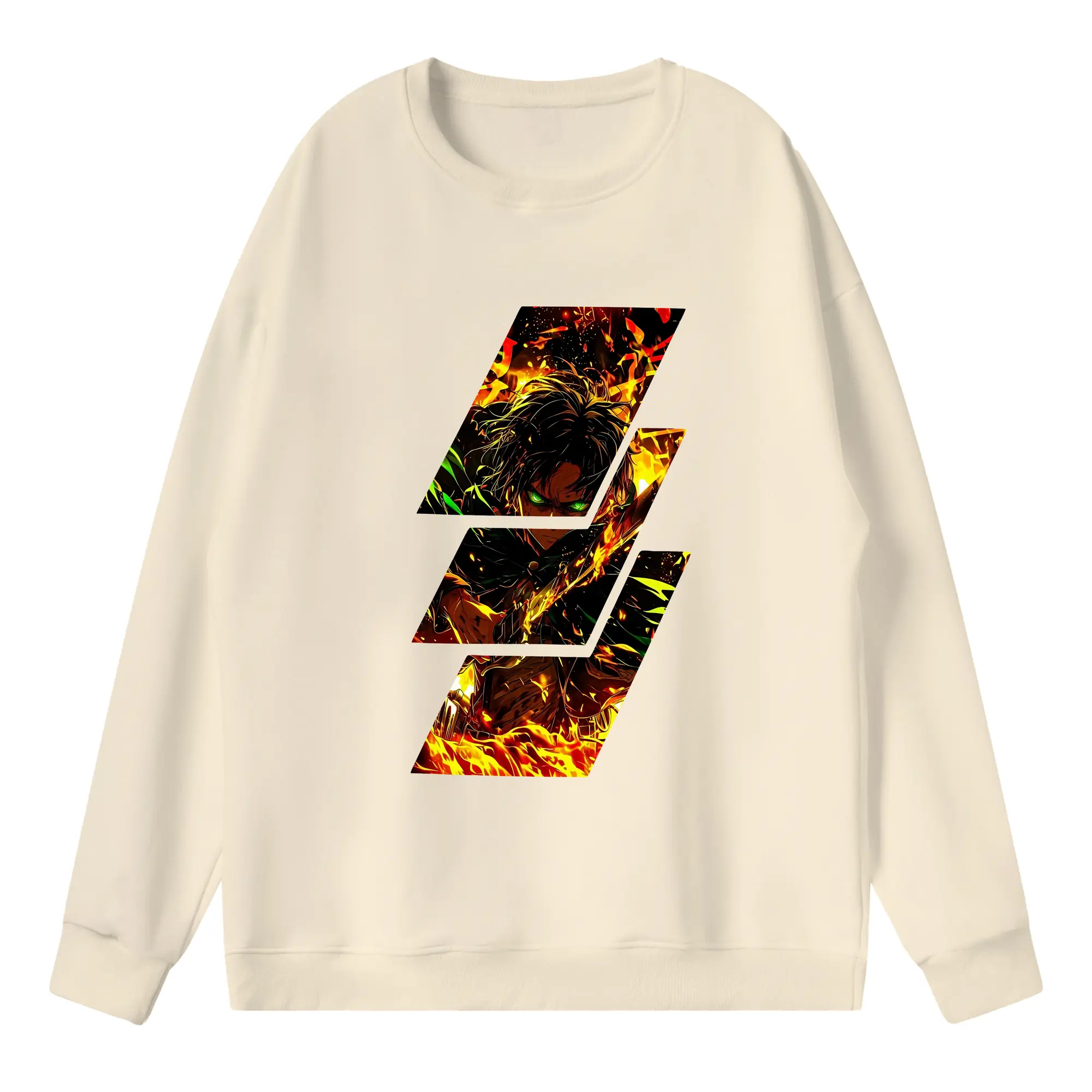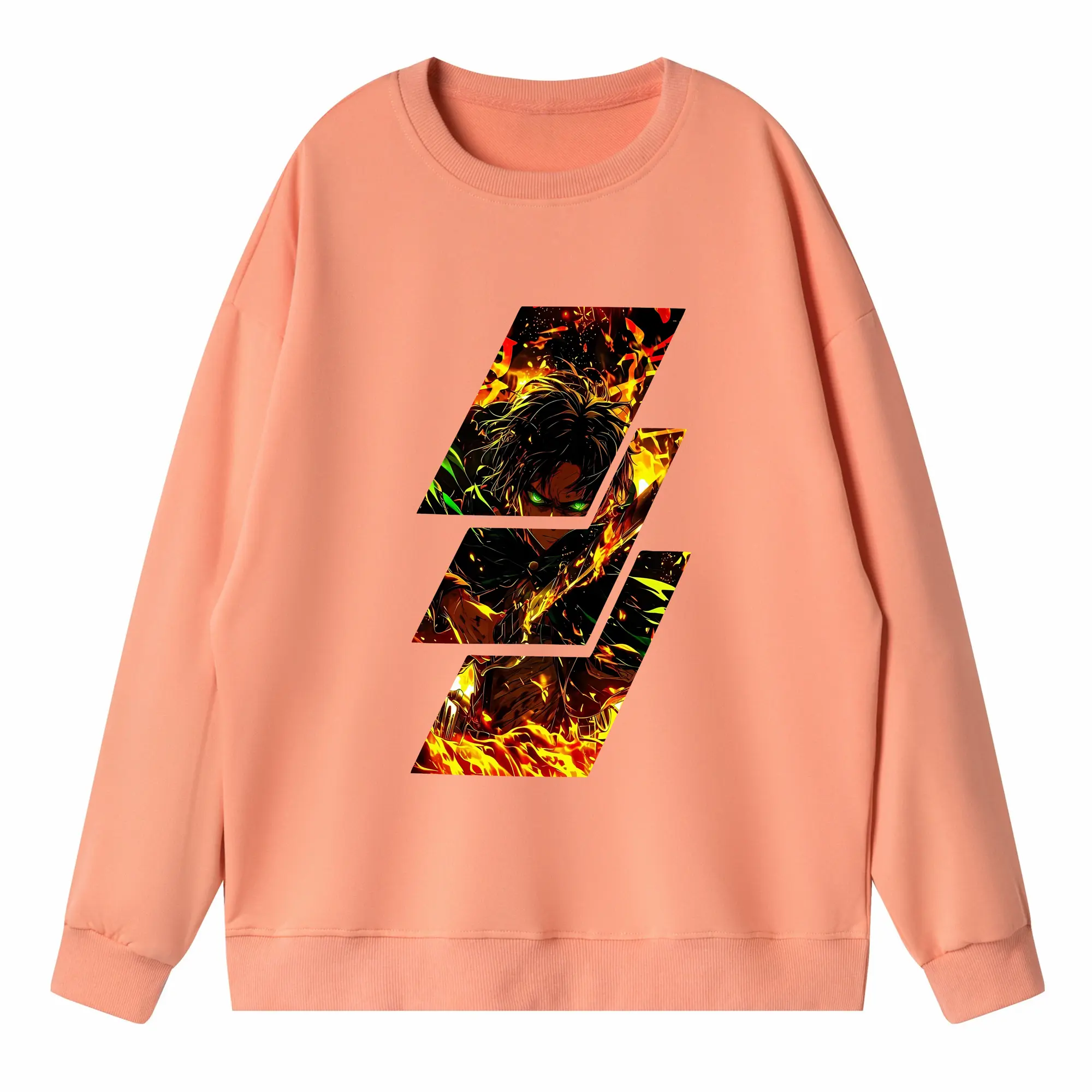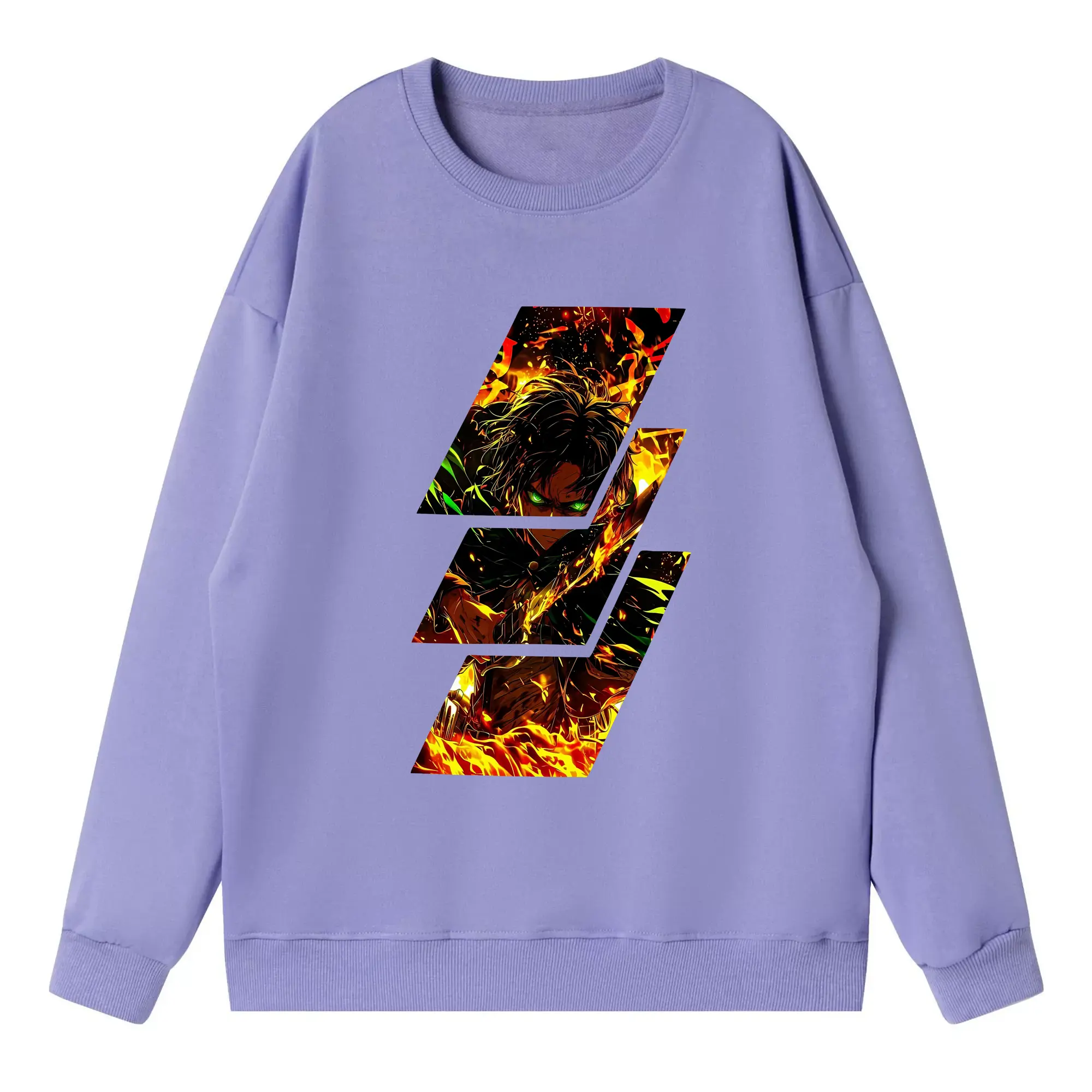 進撃の巨人 グッズ エレン・イェーガー - 高品質 クルーネック スウェット ・ コットン59% ポリエステル41% ・ ユニセックス 長袖 トレーナー ・ カジュアル デイリー スポーツ 散歩用