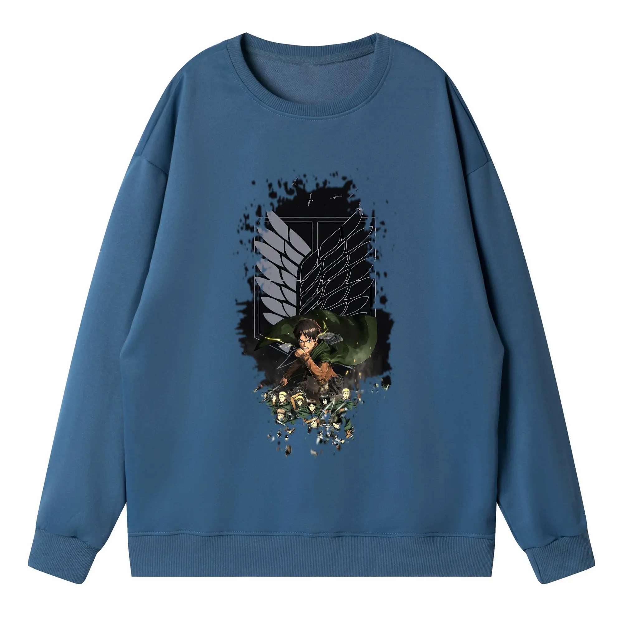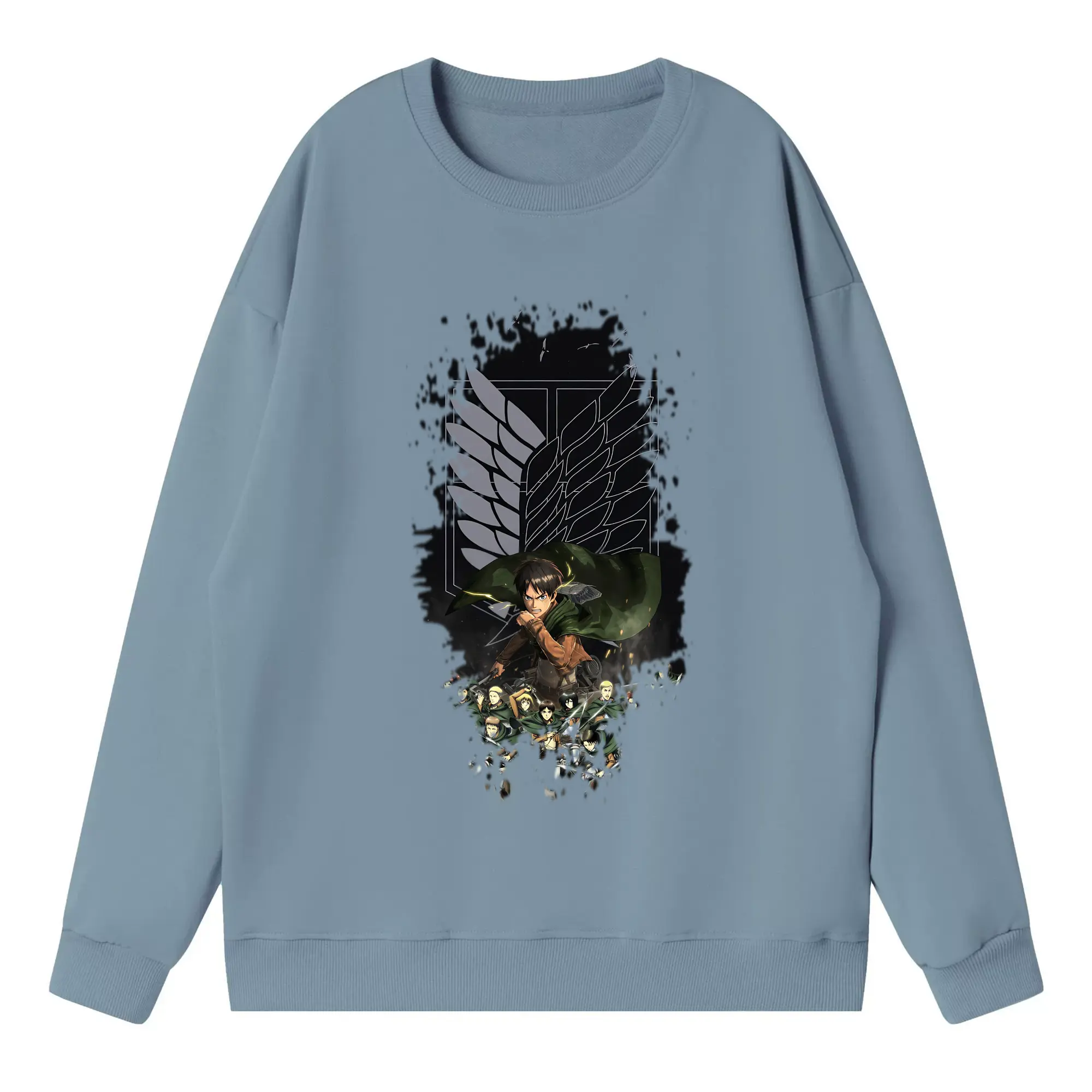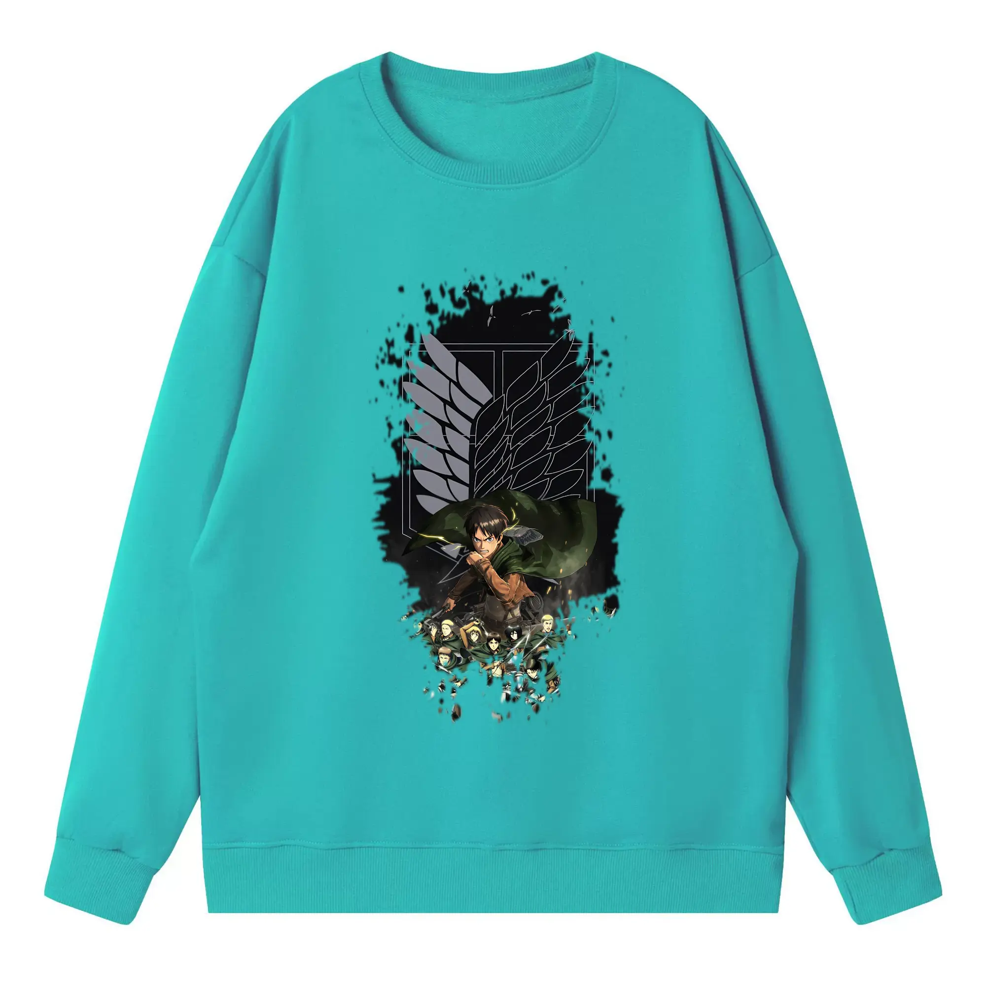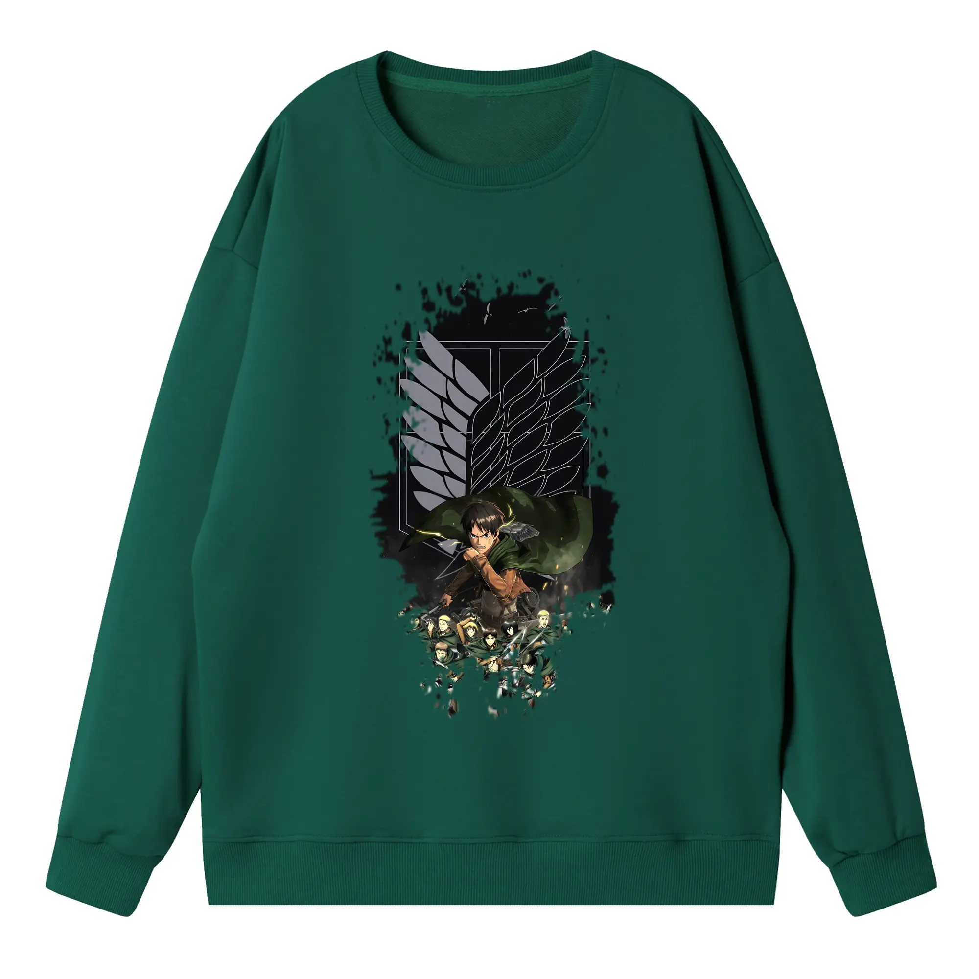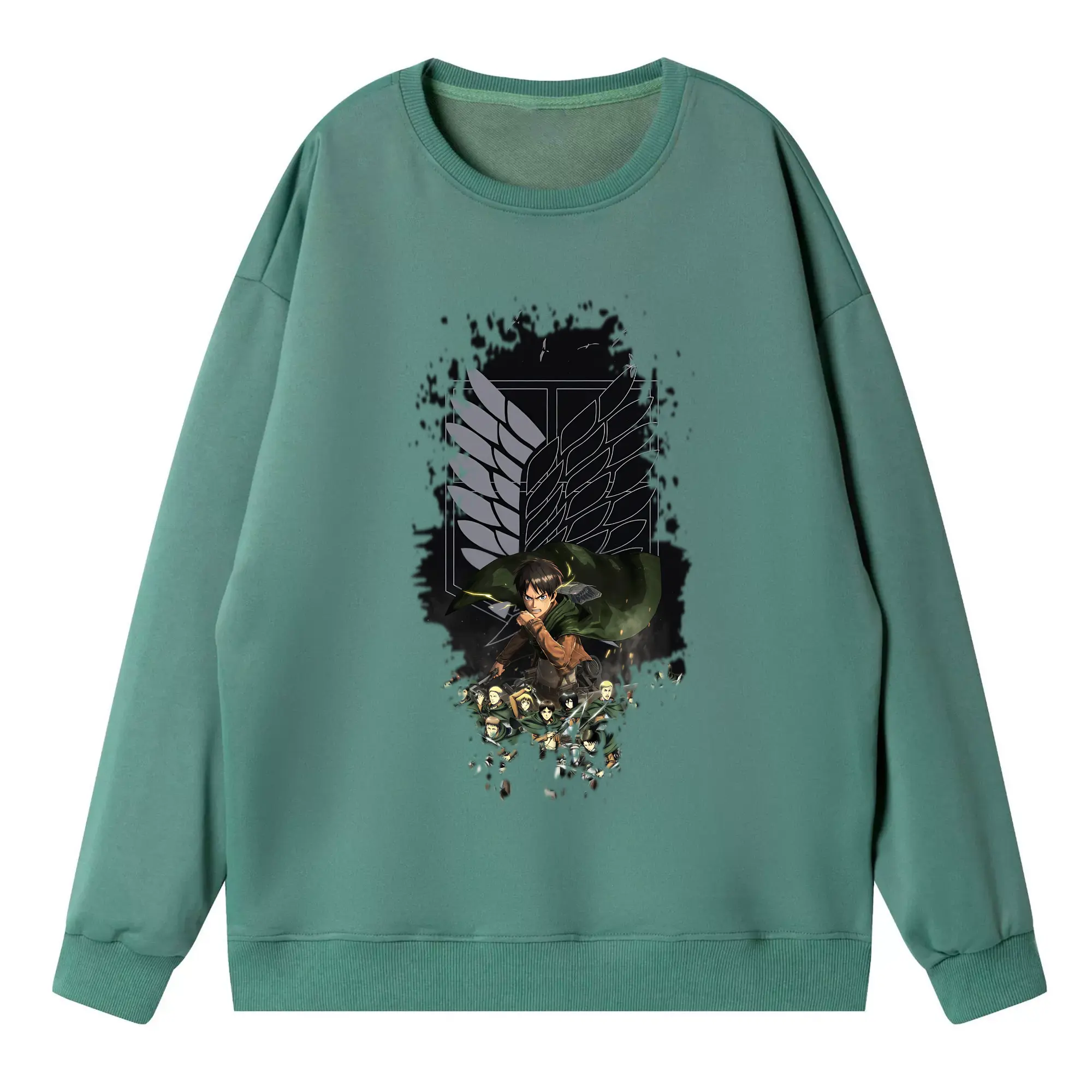 進撃の巨人 グッズ エレン・イェーガー - 高品質 クルーネック スウェット ・ コットン59% ポリエステル41% ・ ユニセックス 長袖 トレーナー ・ カジュアル デイリー スポーツ 散歩用