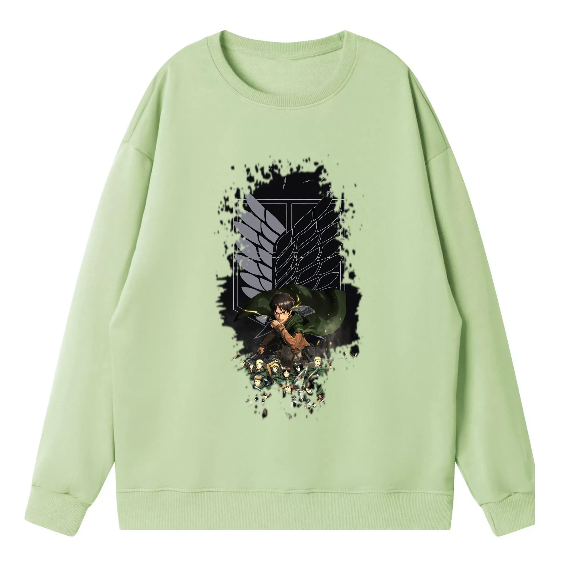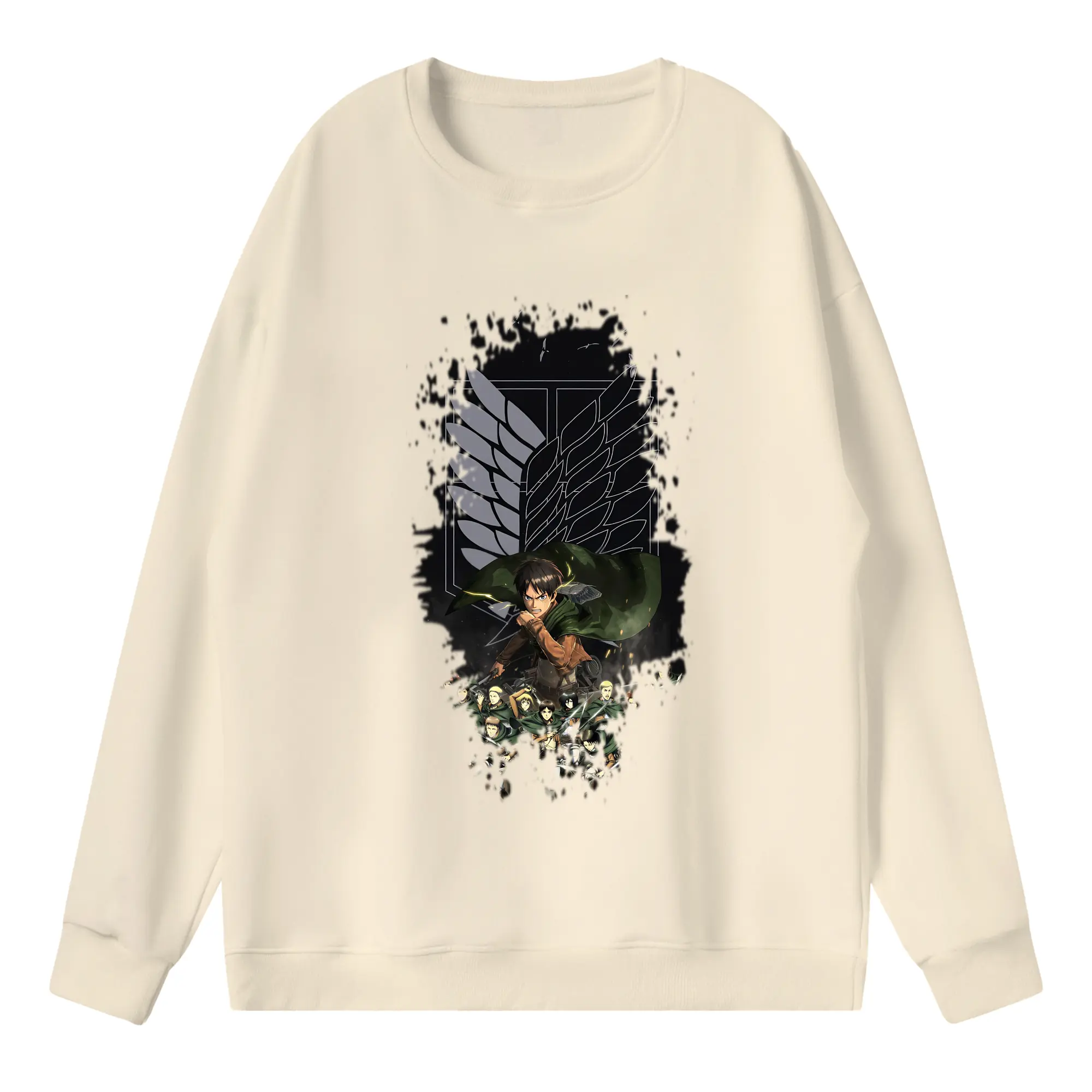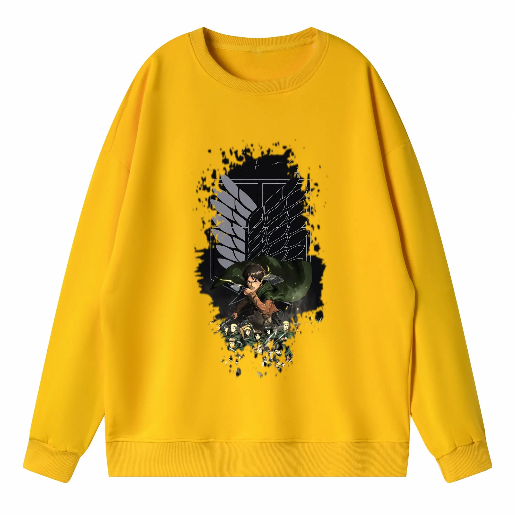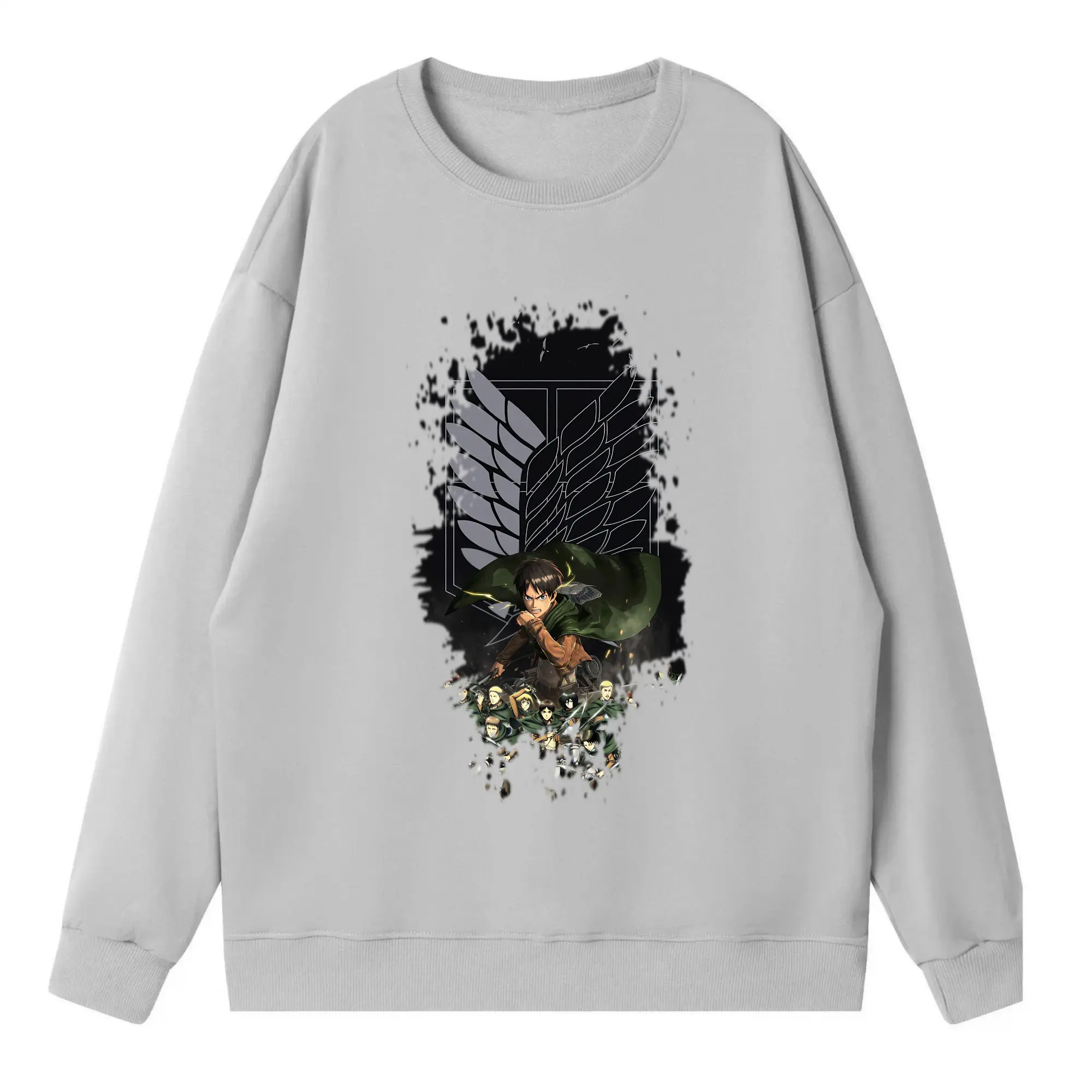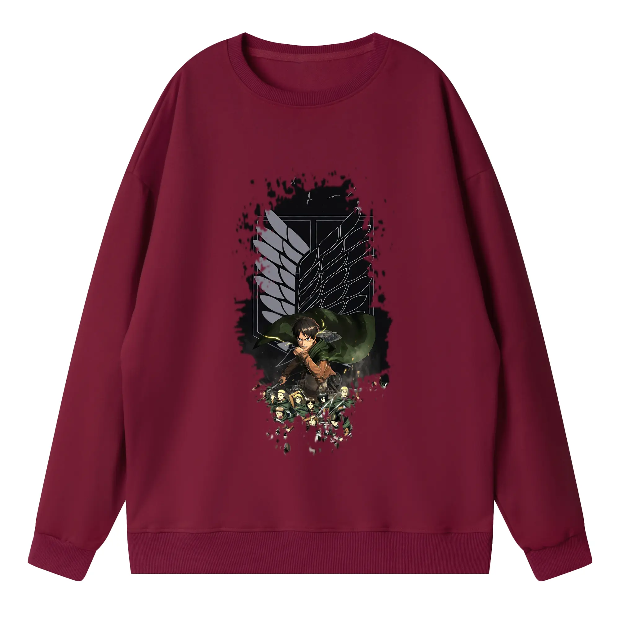 進撃の巨人 グッズ エレン・イェーガー - 高品質 クルーネック スウェット ・ コットン59% ポリエステル41% ・ ユニセックス 長袖 トレーナー ・ カジュアル デイリー スポーツ 散歩用