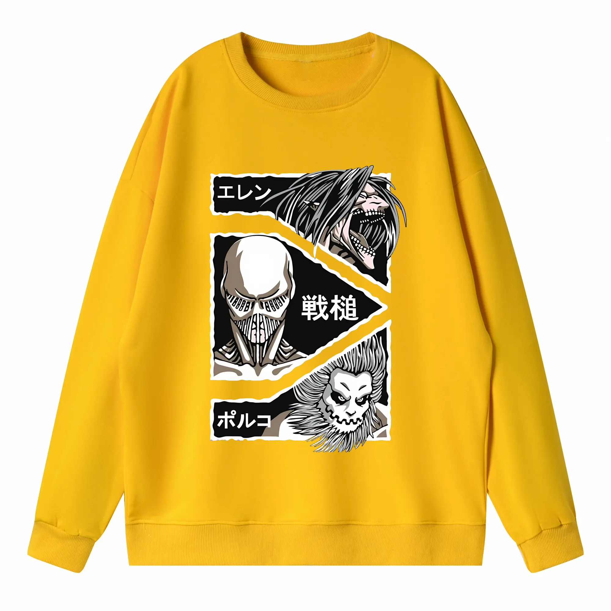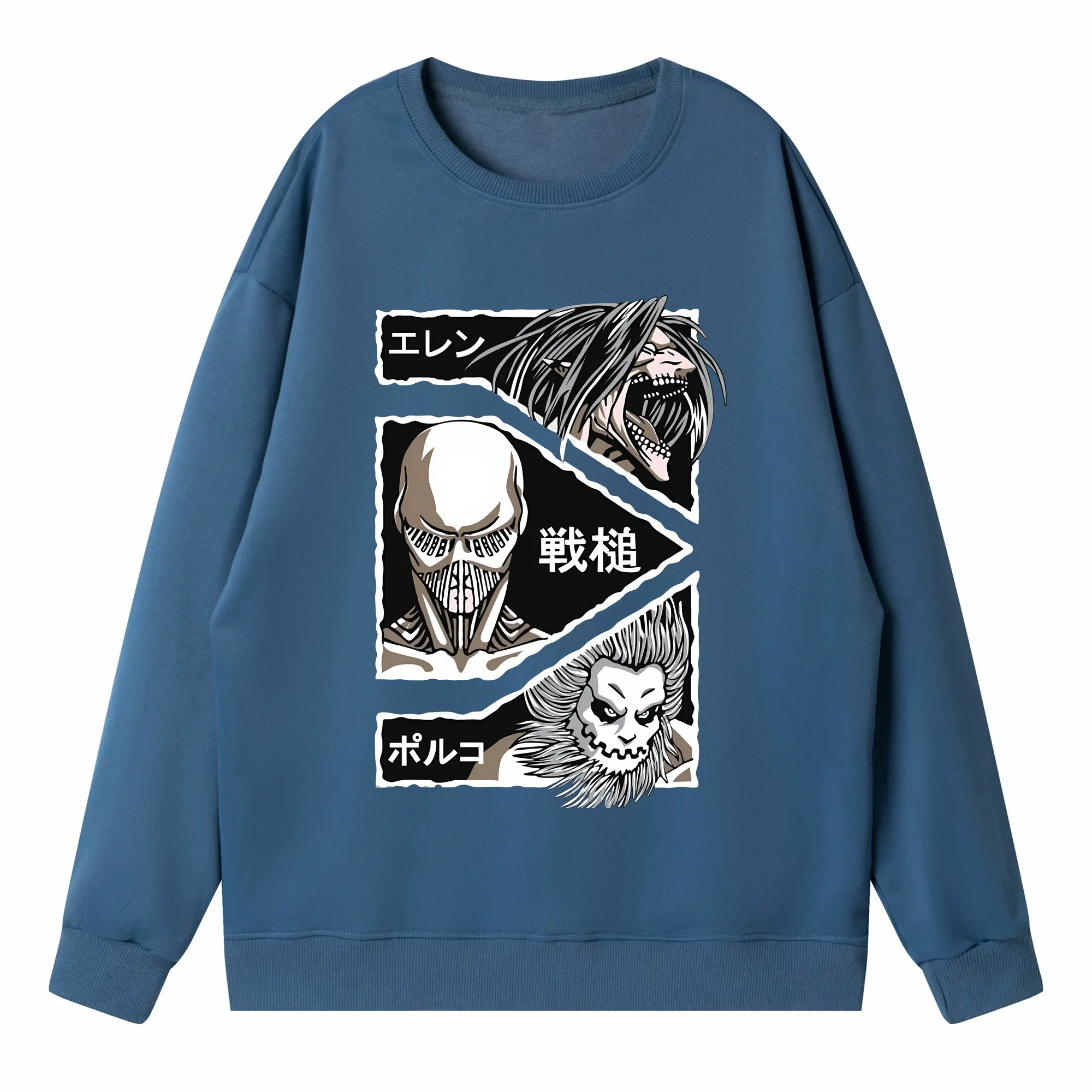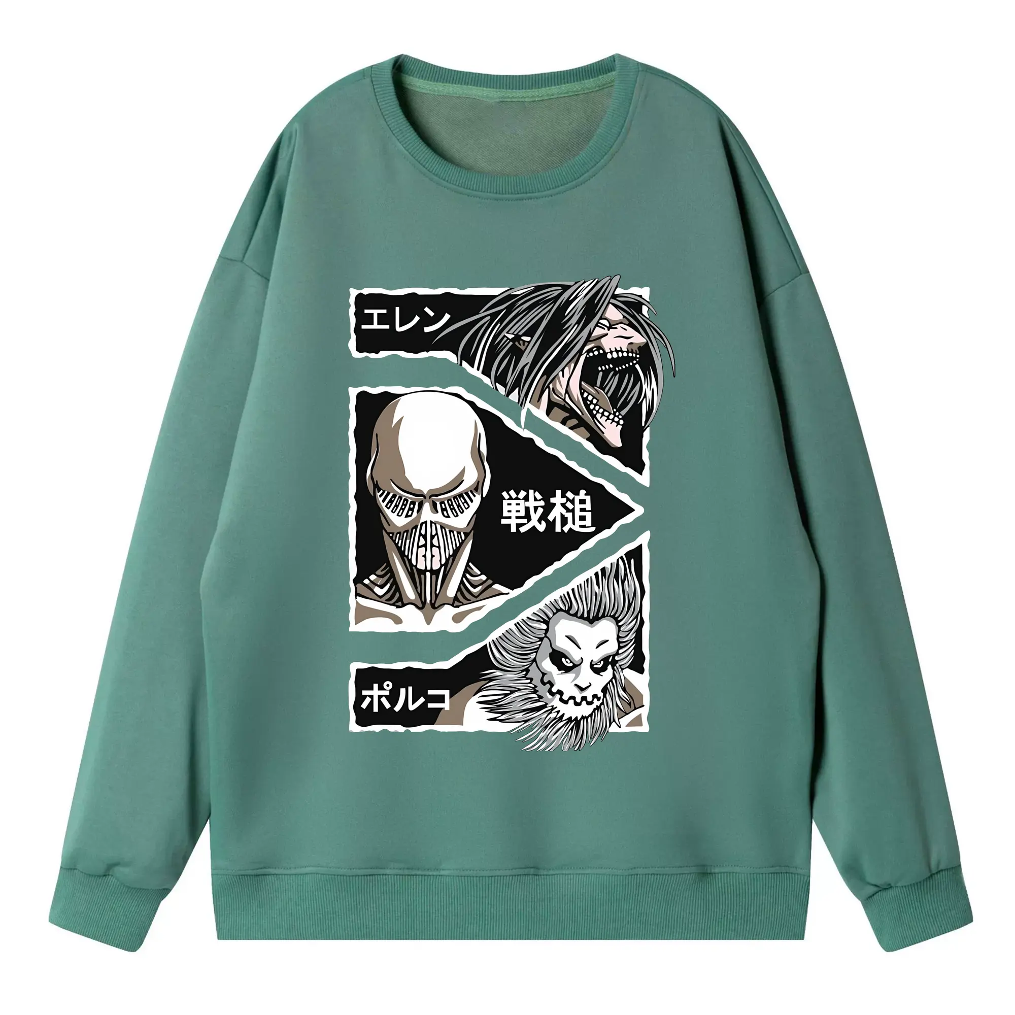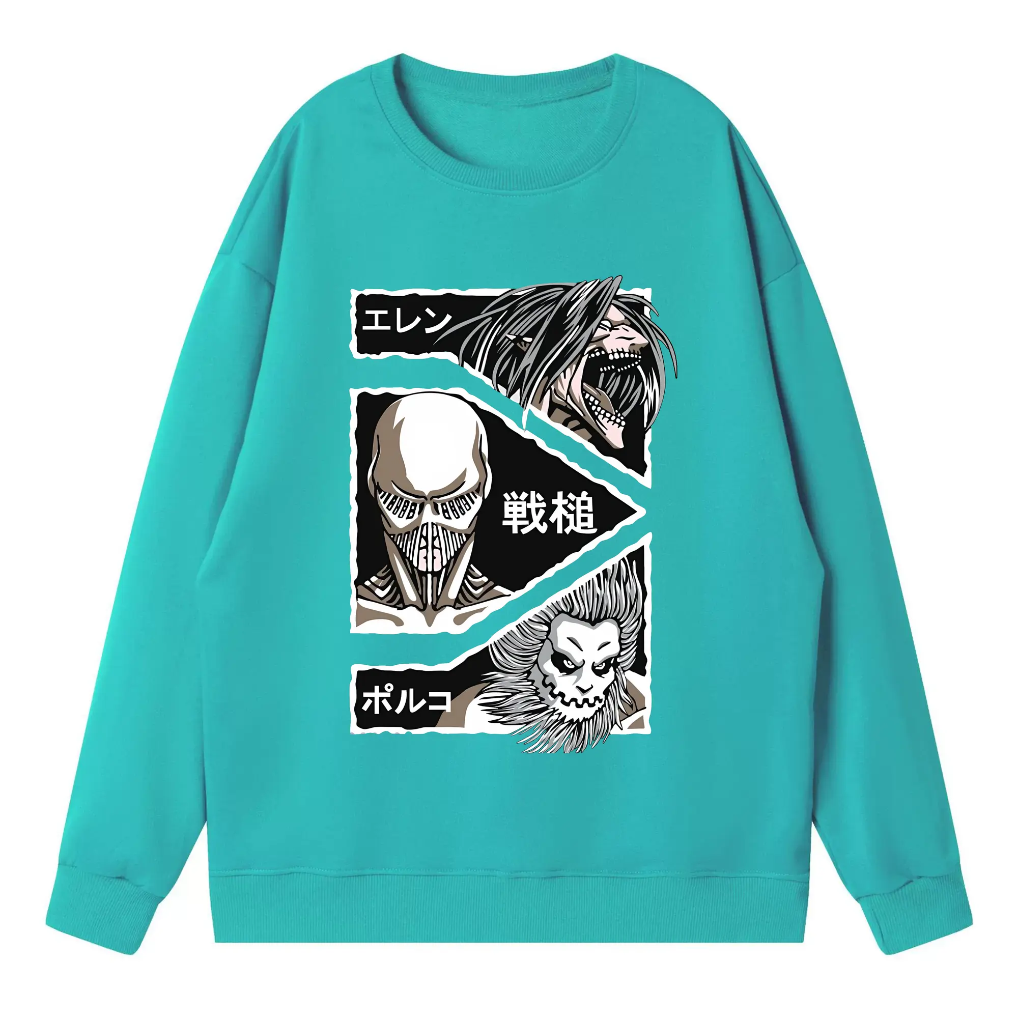 進撃の巨人 グッズ エレン・イェーガー - 高品質 クルーネック スウェット ・ コットン59% ポリエステル41% ・ ユニセックス 長袖 トレーナー ・ カジュアル デイリー スポーツ 散歩用