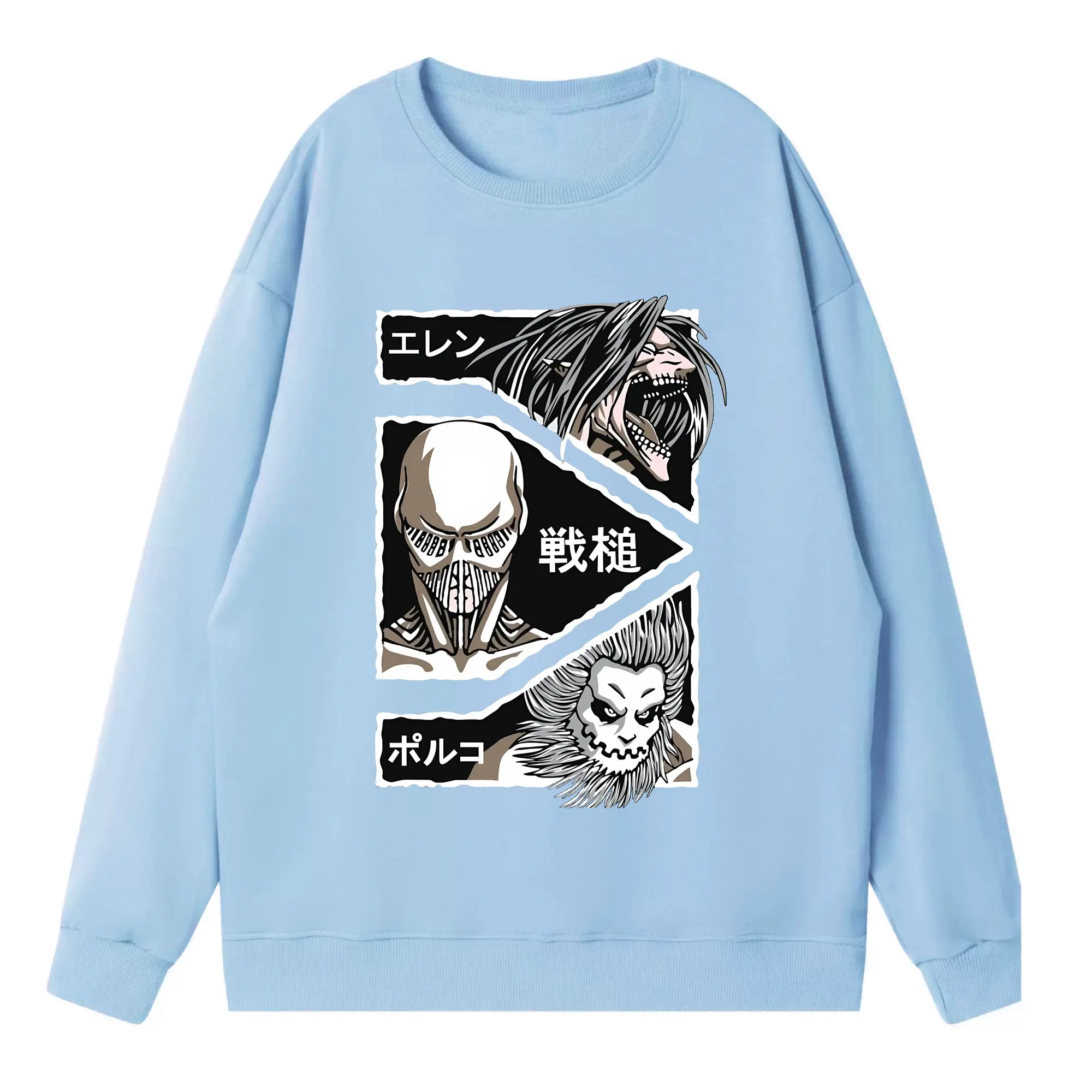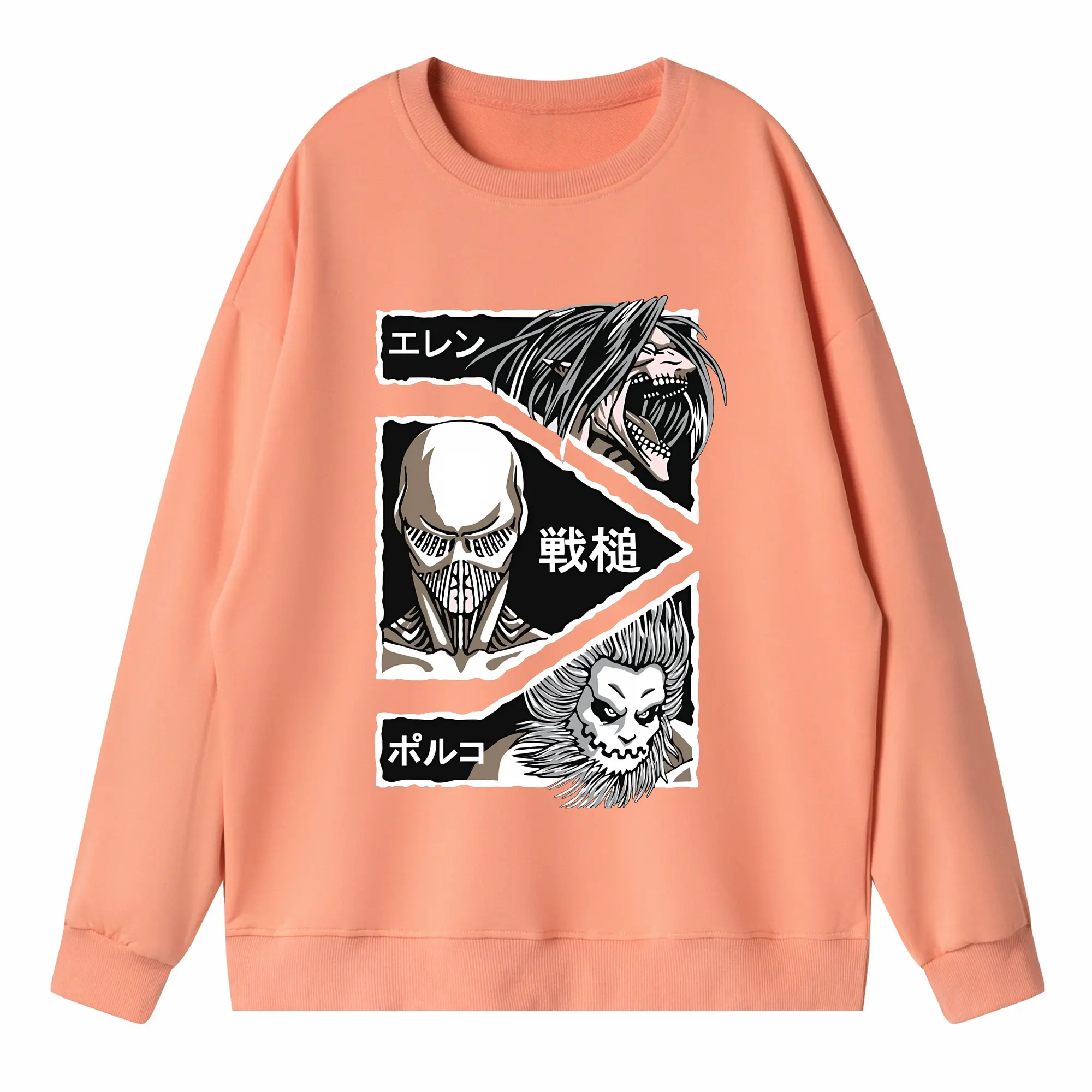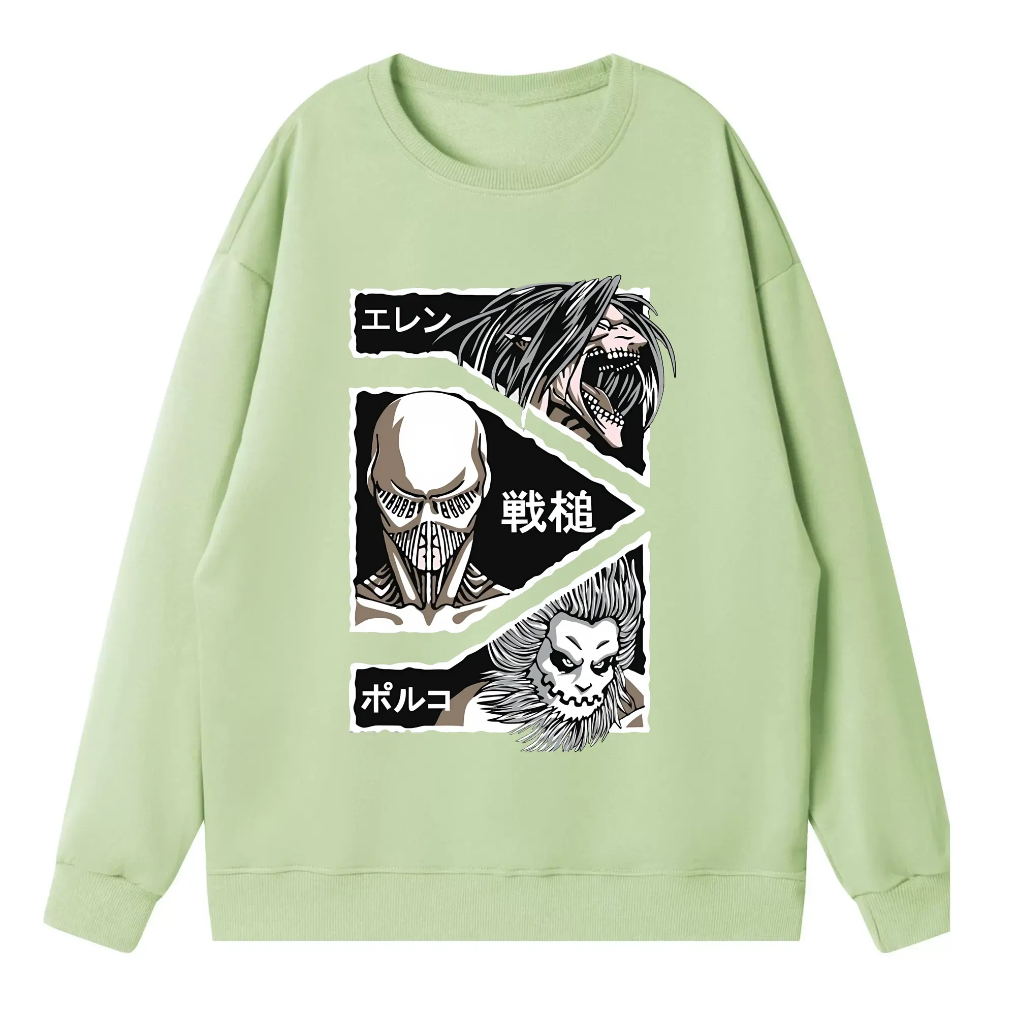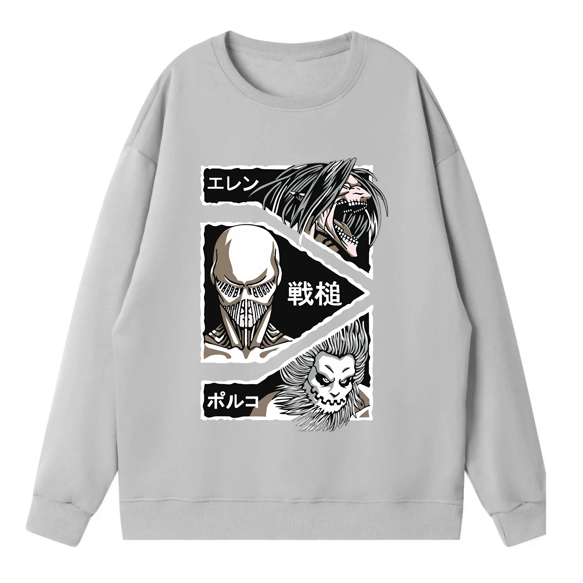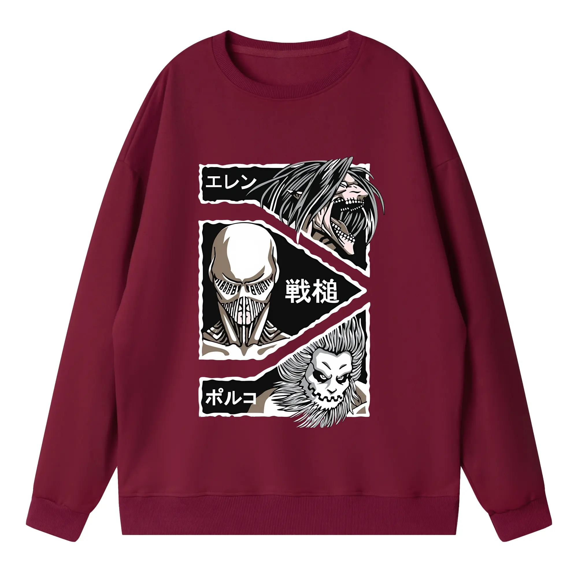 進撃の巨人 グッズ エレン・イェーガー - 高品質 クルーネック スウェット ・ コットン59% ポリエステル41% ・ ユニセックス 長袖 トレーナー ・ カジュアル デイリー スポーツ 散歩用