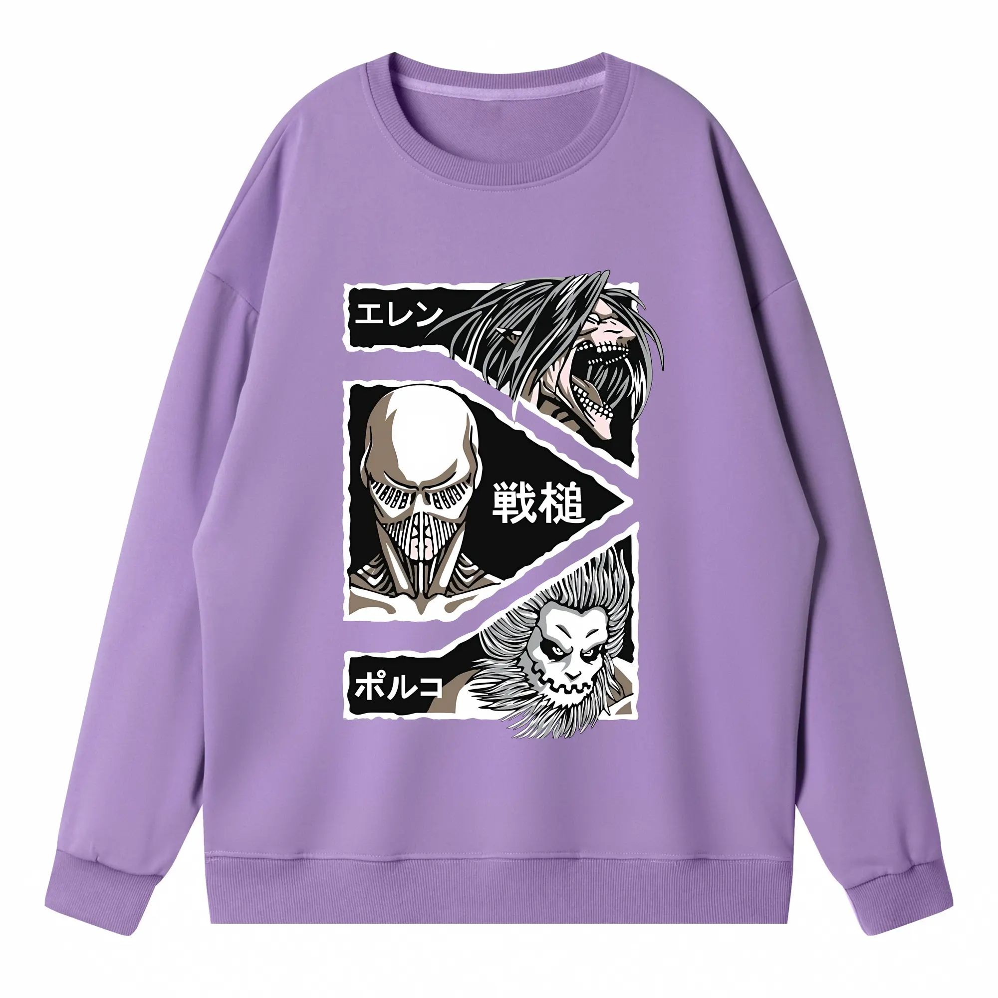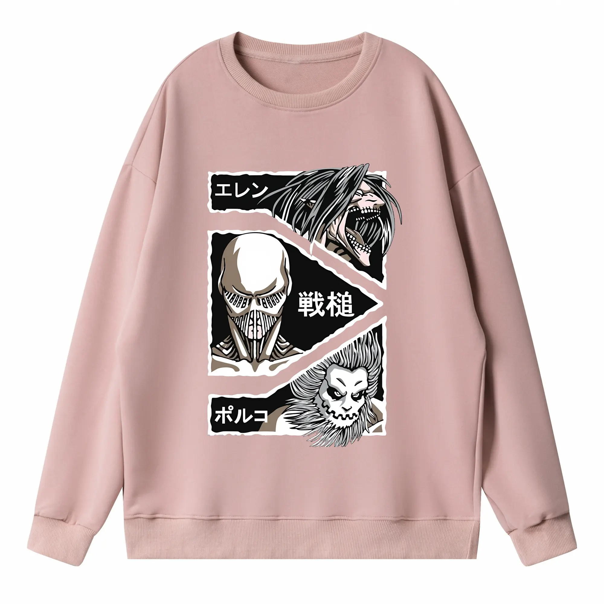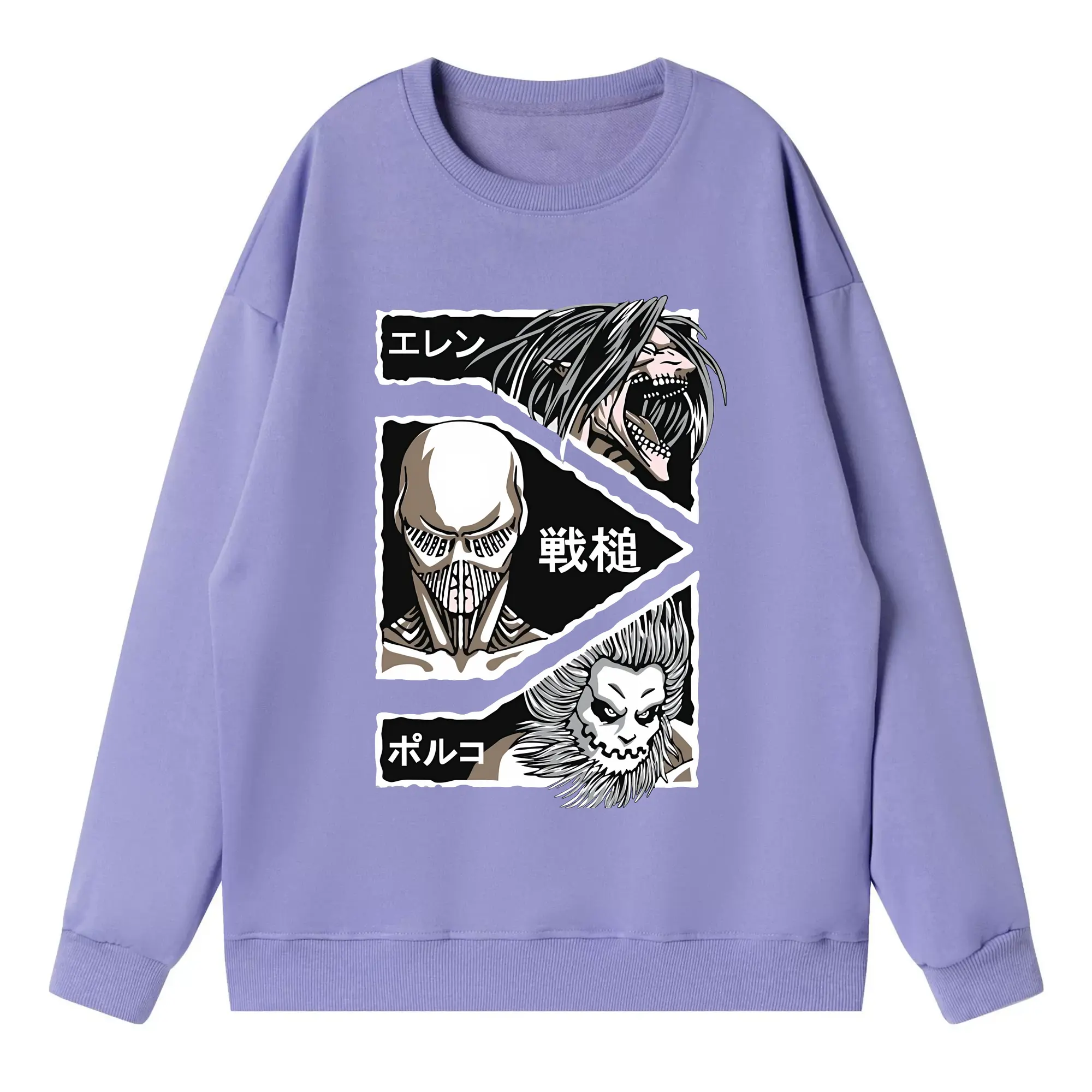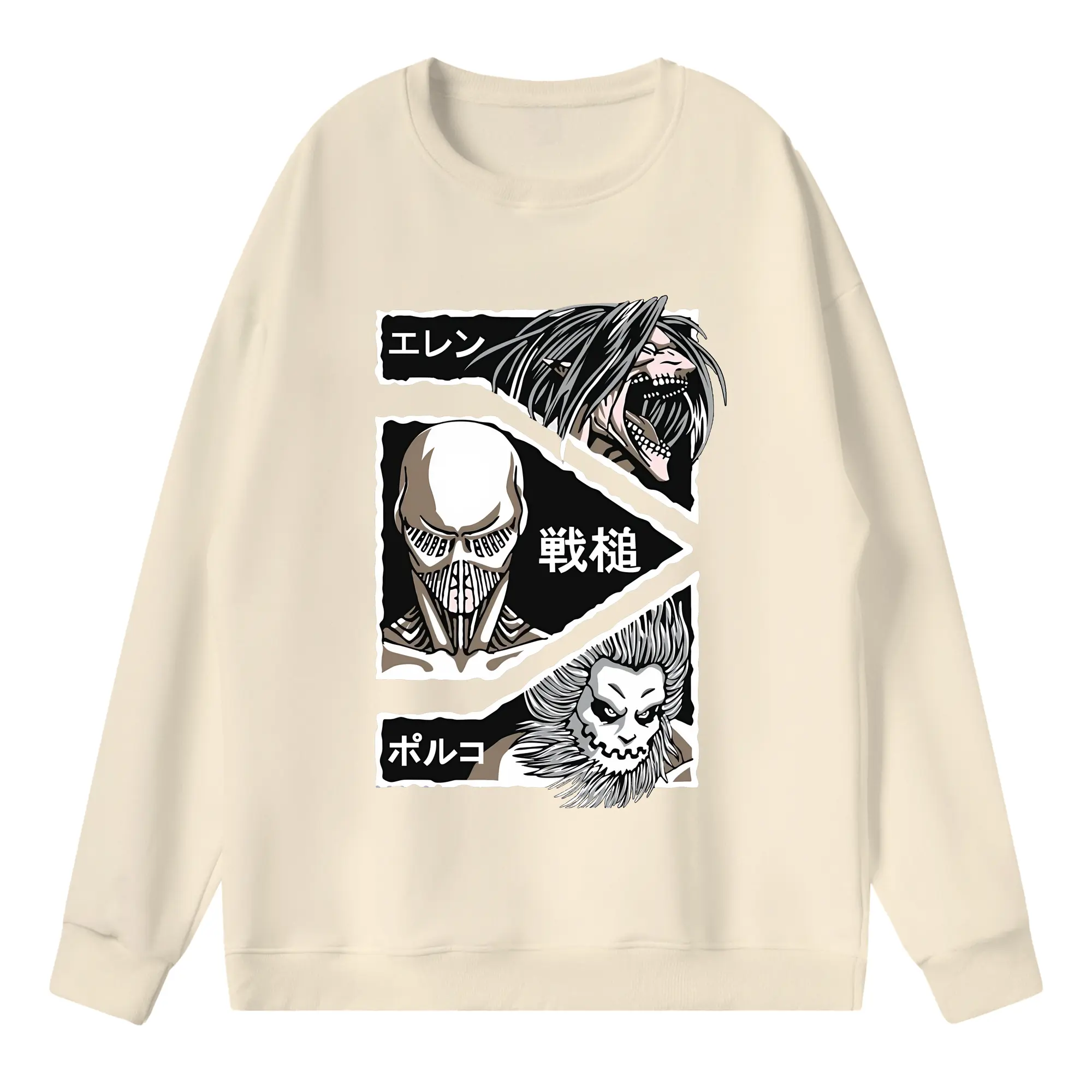 進撃の巨人 グッズ エレン・イェーガー - 高品質 クルーネック スウェット ・ コットン59% ポリエステル41% ・ ユニセックス 長袖 トレーナー ・ カジュアル デイリー スポーツ 散歩用