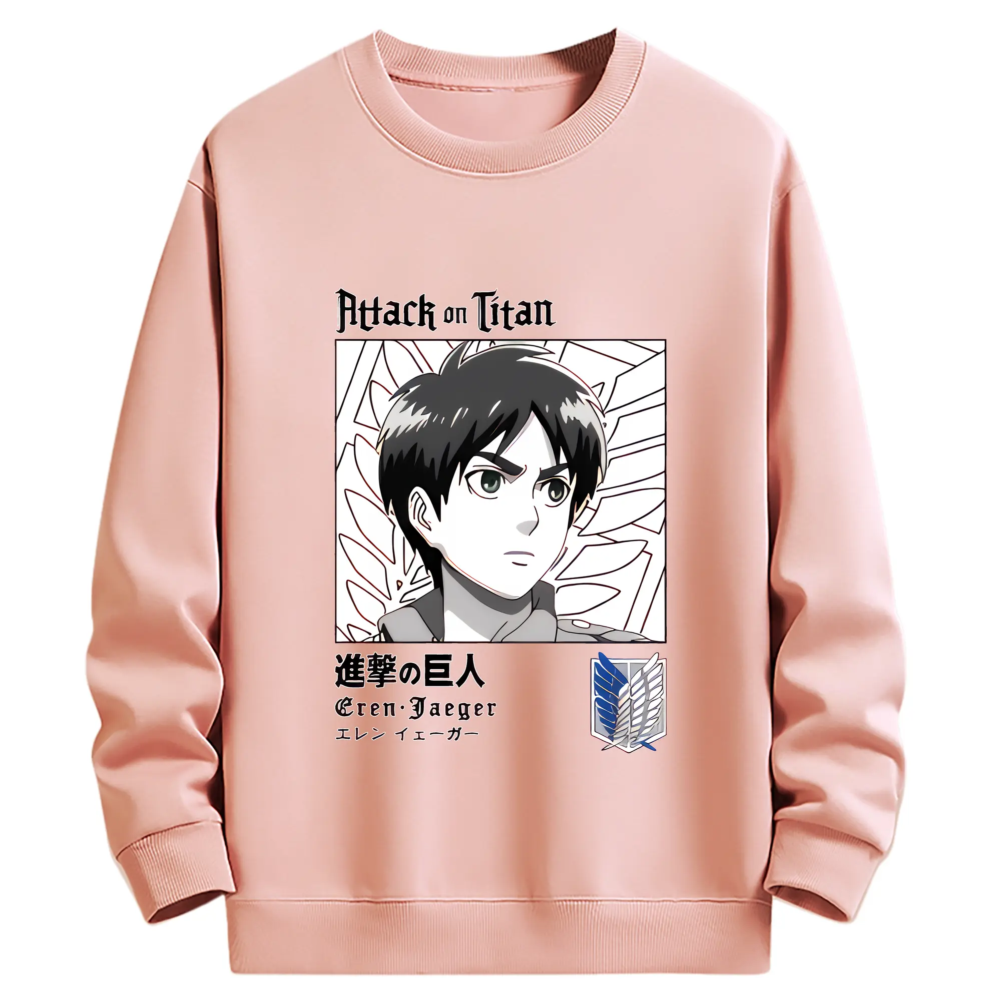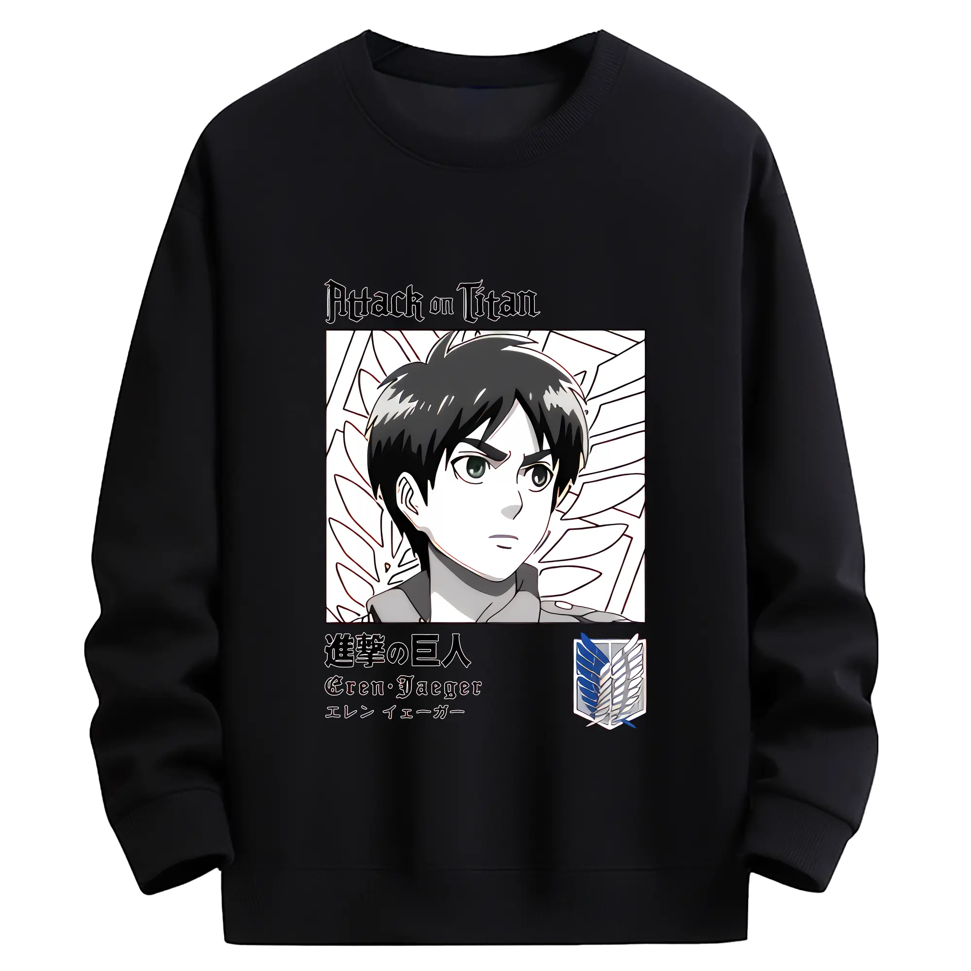 進撃の巨人 グッズ エレン・イェーガー - 薄手 クルーネック スウェット 裏毛260g · ポリエステル 春秋向け カジュアル 男女兼用 · トレーナー デイリー スポーツ 散歩に最適