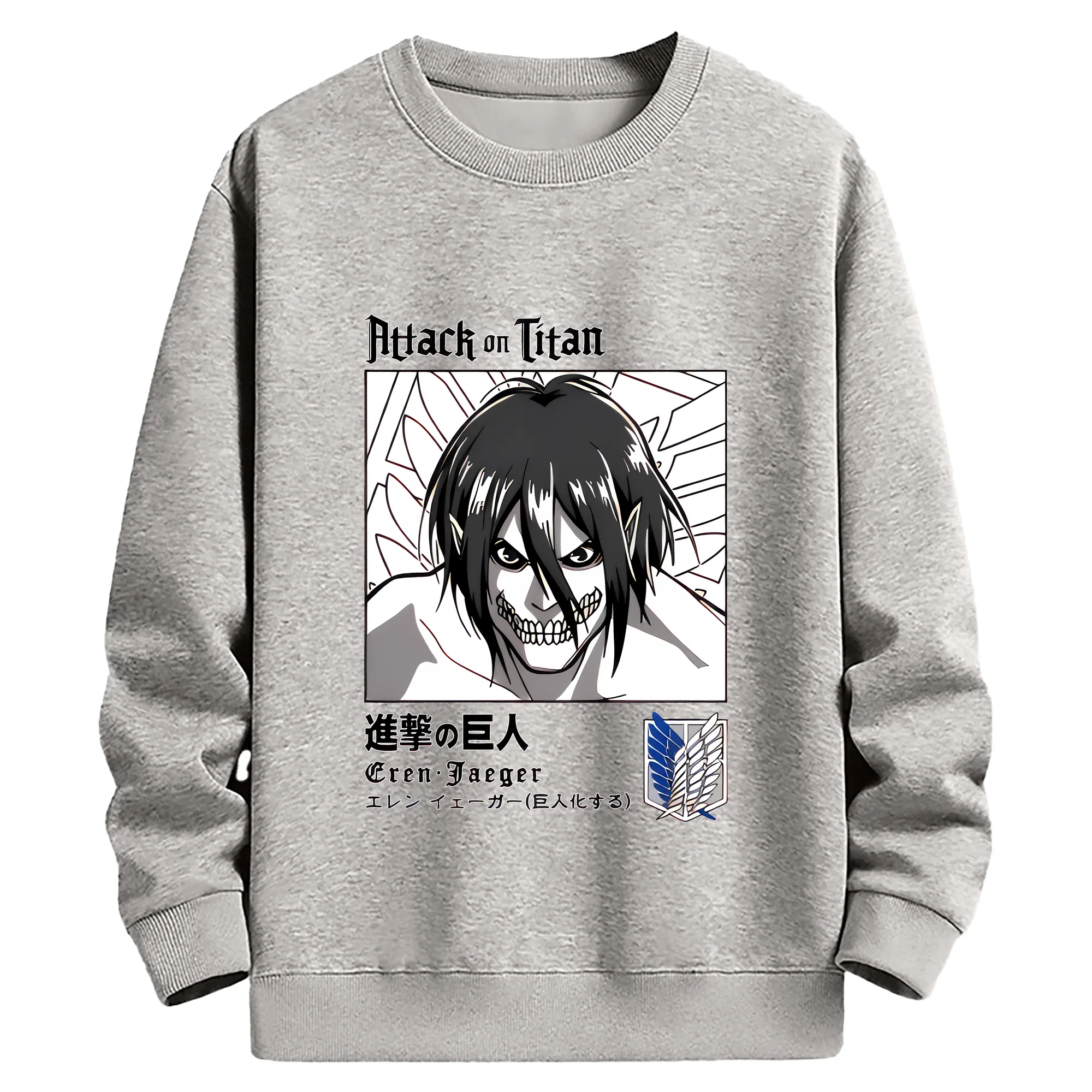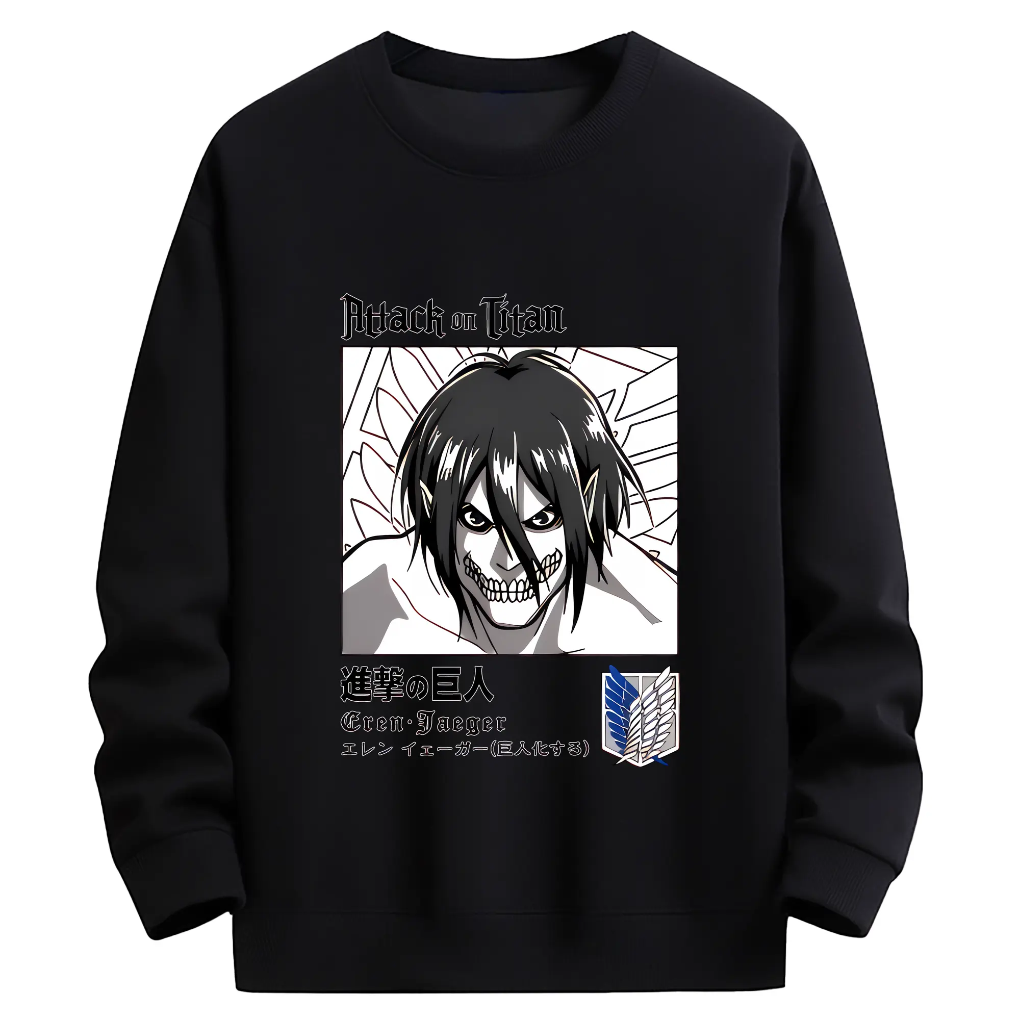 進撃の巨人 グッズ エレン・イェーガー - 薄手 クルーネック スウェット 裏毛260g · ポリエステル 春秋向け カジュアル 男女兼用 · トレーナー デイリー スポーツ 散歩に最適
