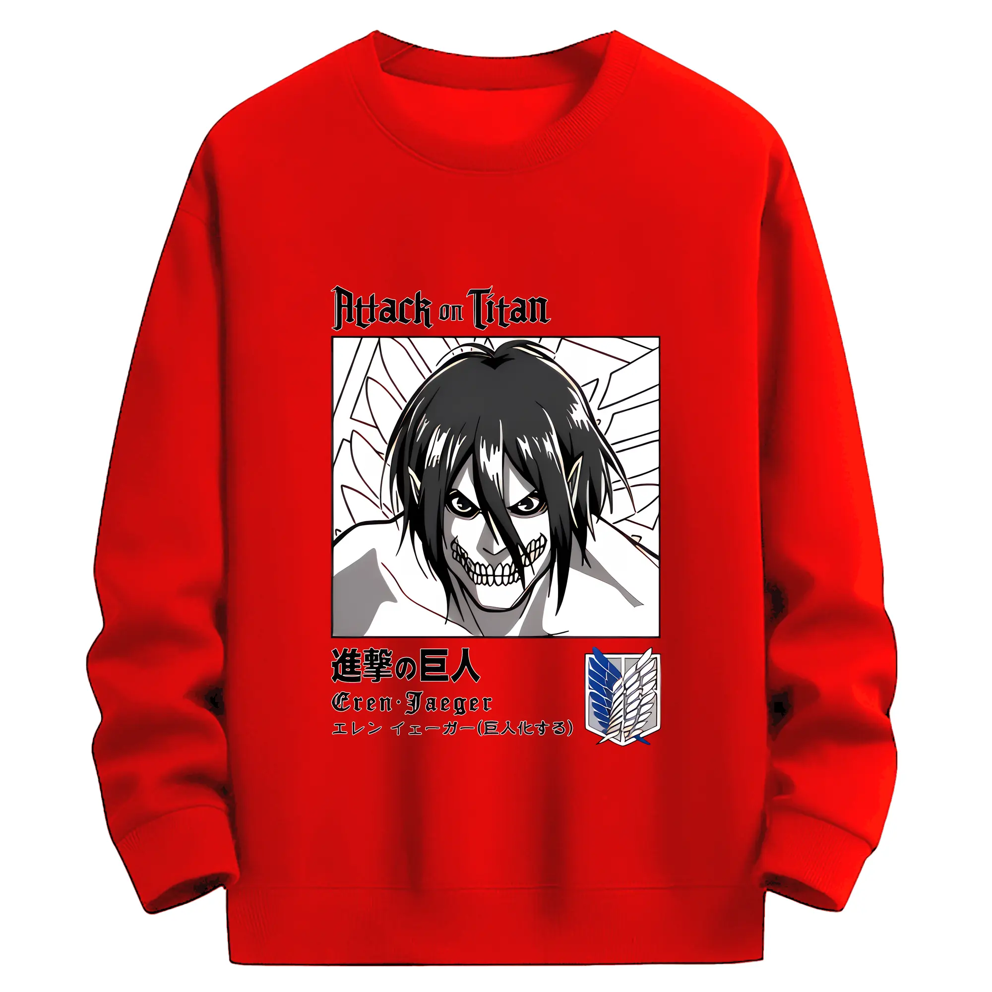 進撃の巨人 グッズ エレン・イェーガー - 高品質 クルーネック スウェット ・ コットン59% ポリエステル41% ・ ユニセックス 長袖 トレーナー ・ カジュアル デイリー スポーツ 散歩用
