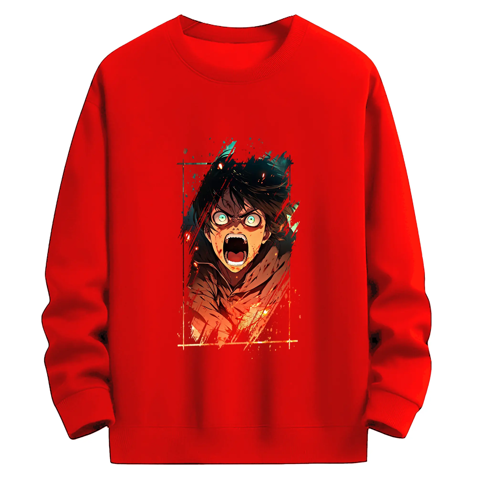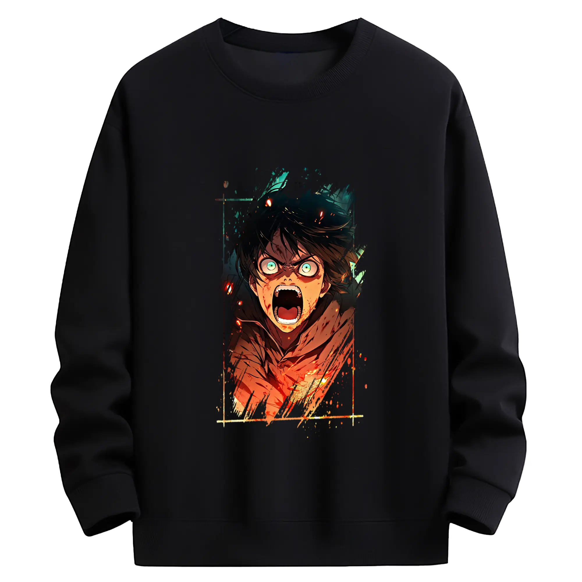 進撃の巨人 グッズ エレン・イェーガー - 高品質 クルーネック スウェット ・ コットン59% ポリエステル41% ・ ユニセックス 長袖 トレーナー ・ カジュアル デイリー スポーツ 散歩用