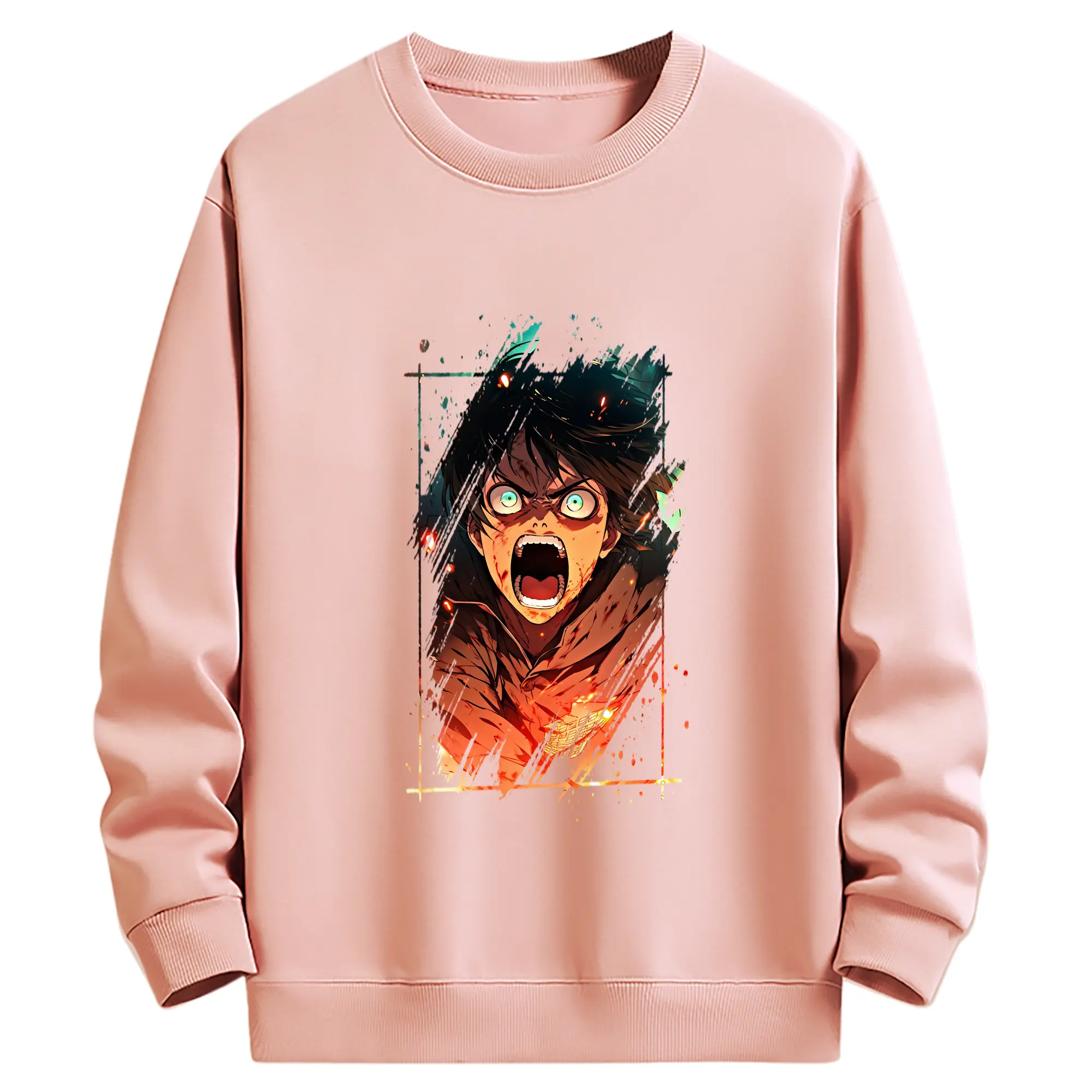 進撃の巨人 グッズ エレン・イェーガー - 薄手 クルーネック スウェット 裏毛260g · ポリエステル 春秋向け カジュアル 男女兼用 · トレーナー デイリー スポーツ 散歩に最適