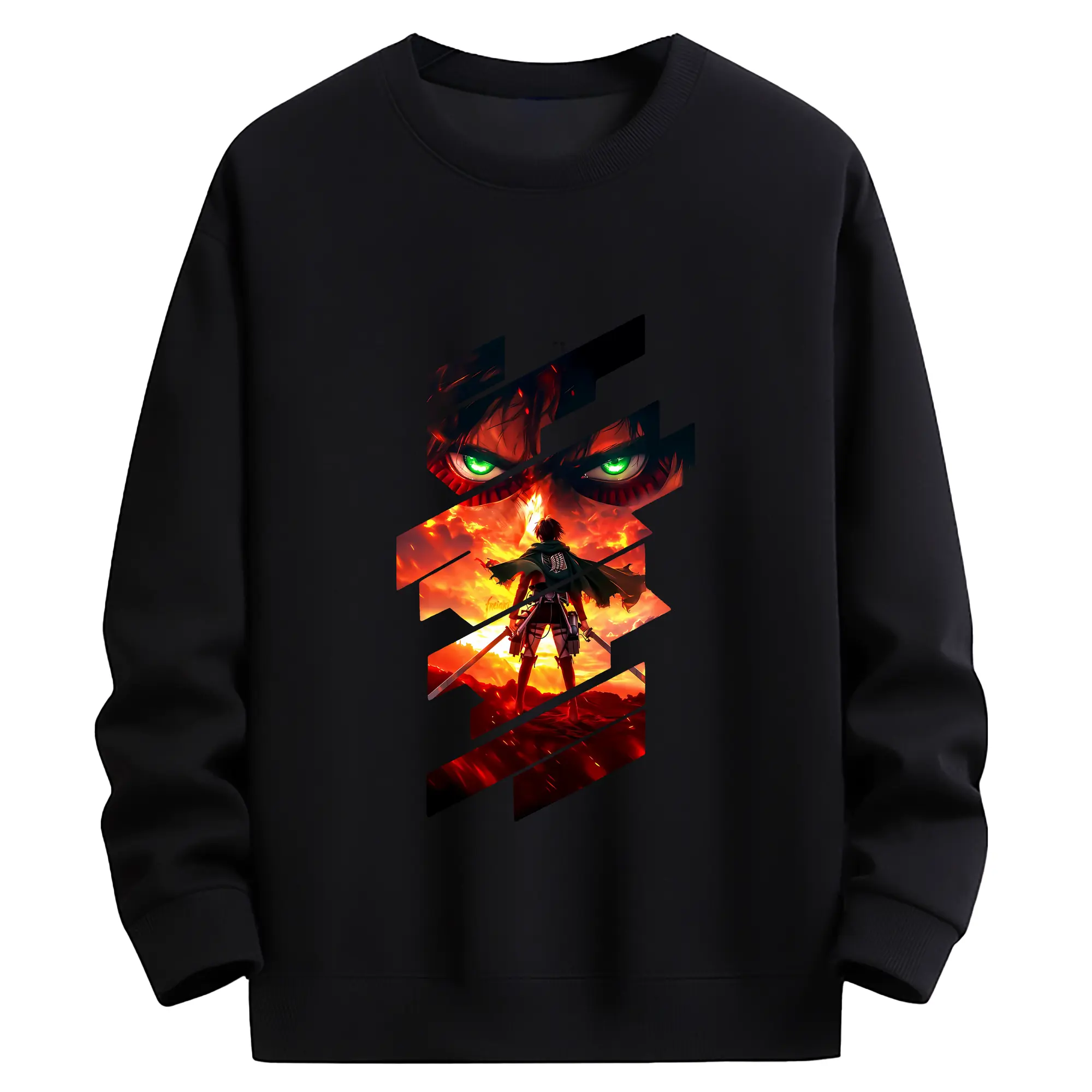 進撃の巨人 グッズ エレン・イェーガー - 高品質 クルーネック スウェット ・ コットン59% ポリエステル41% ・ ユニセックス 長袖 トレーナー ・ カジュアル デイリー スポーツ 散歩用