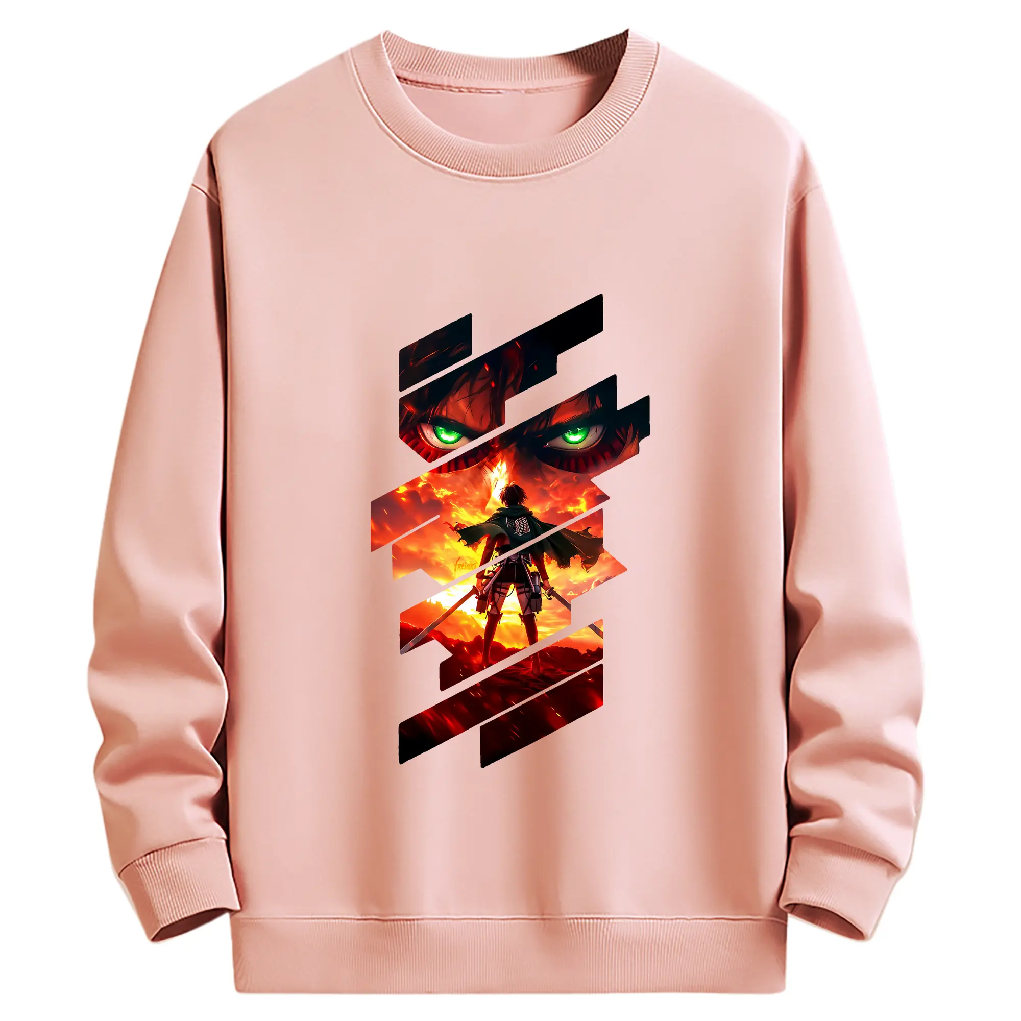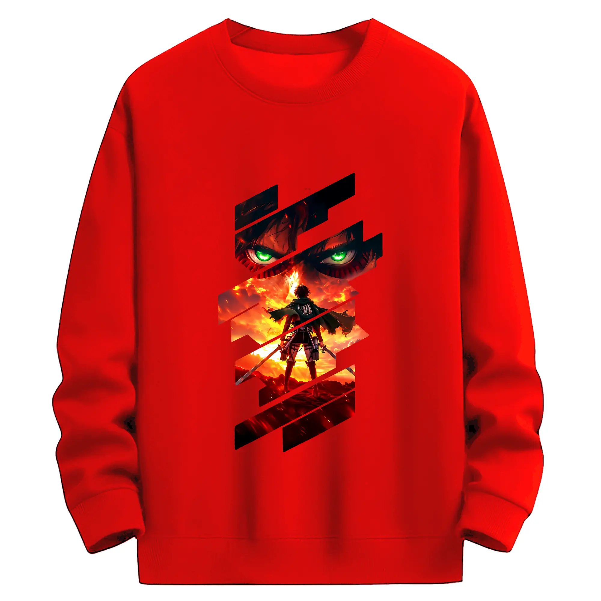進撃の巨人 グッズ エレン・イェーガー - 薄手 クルーネック スウェット 裏毛260g · ポリエステル 春秋向け カジュアル 男女兼用 · トレーナー デイリー スポーツ 散歩に最適