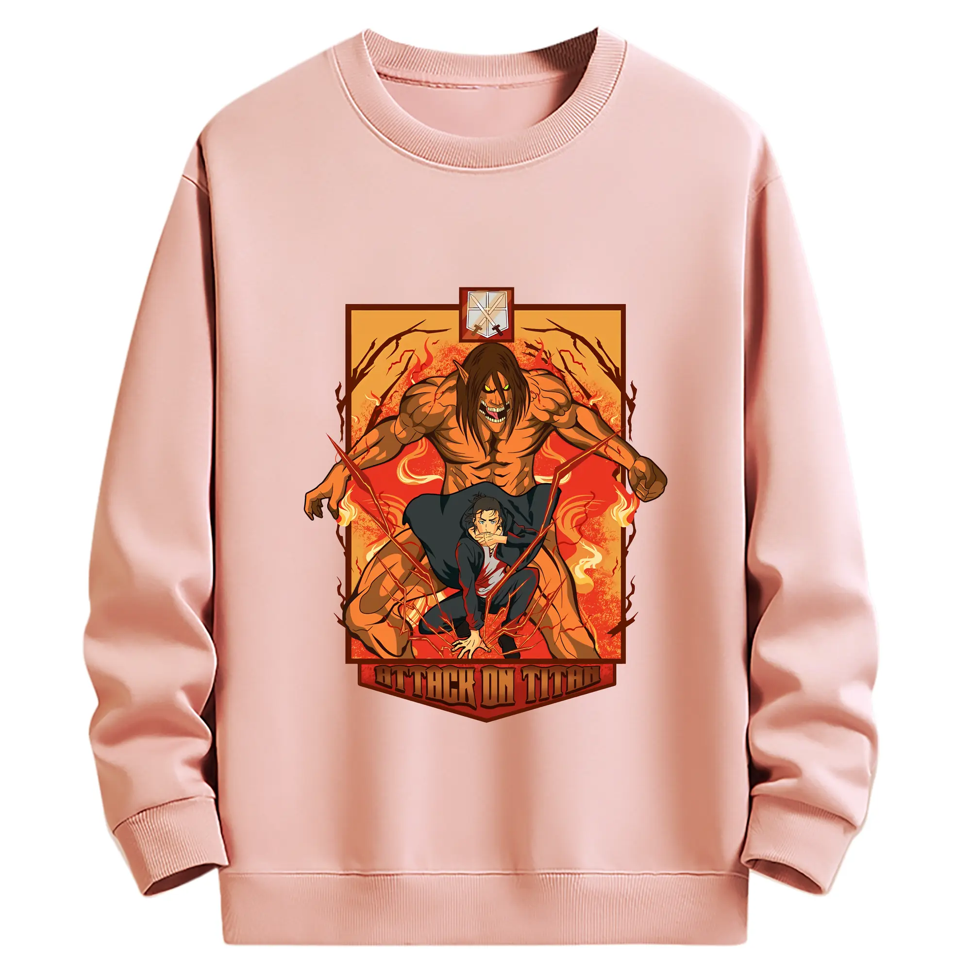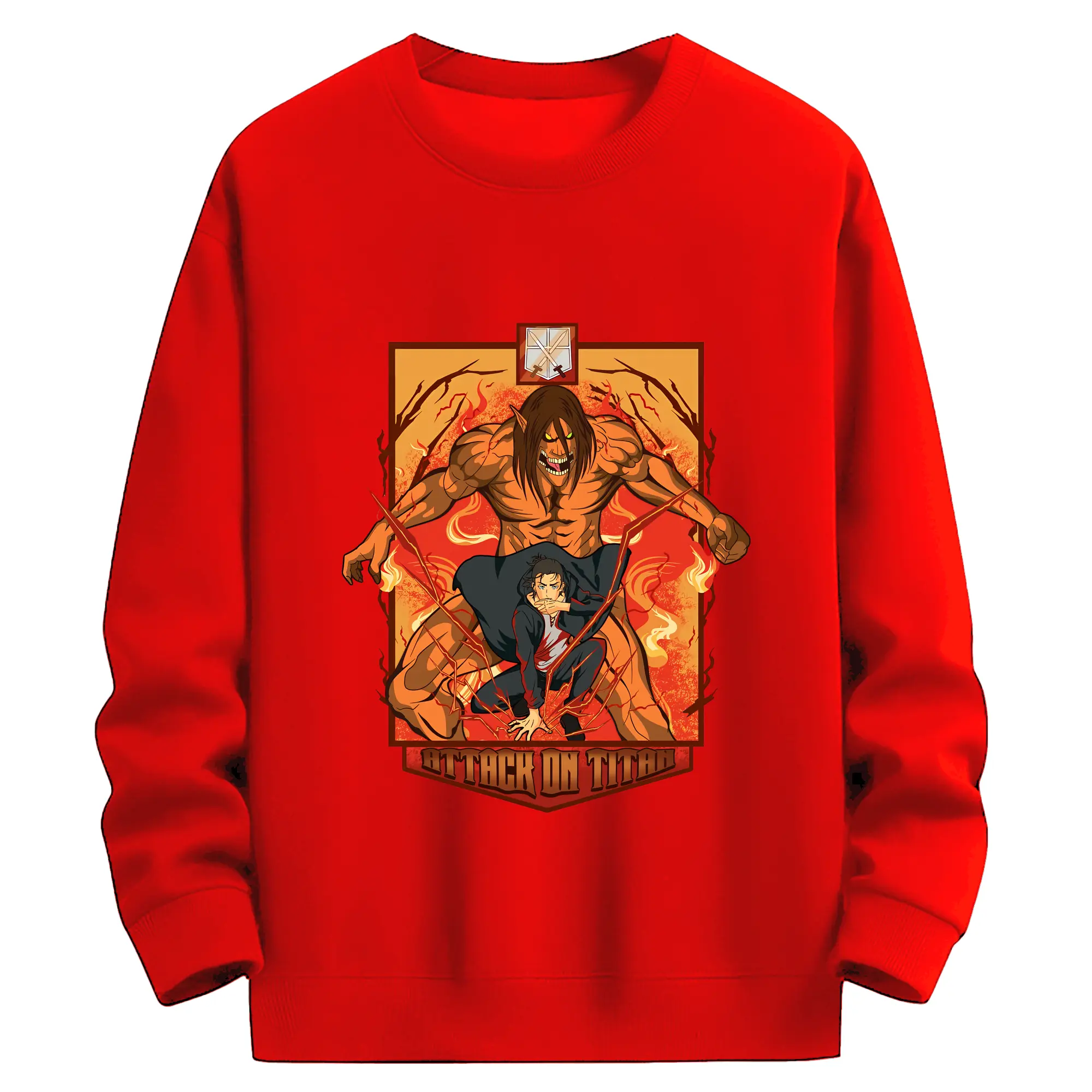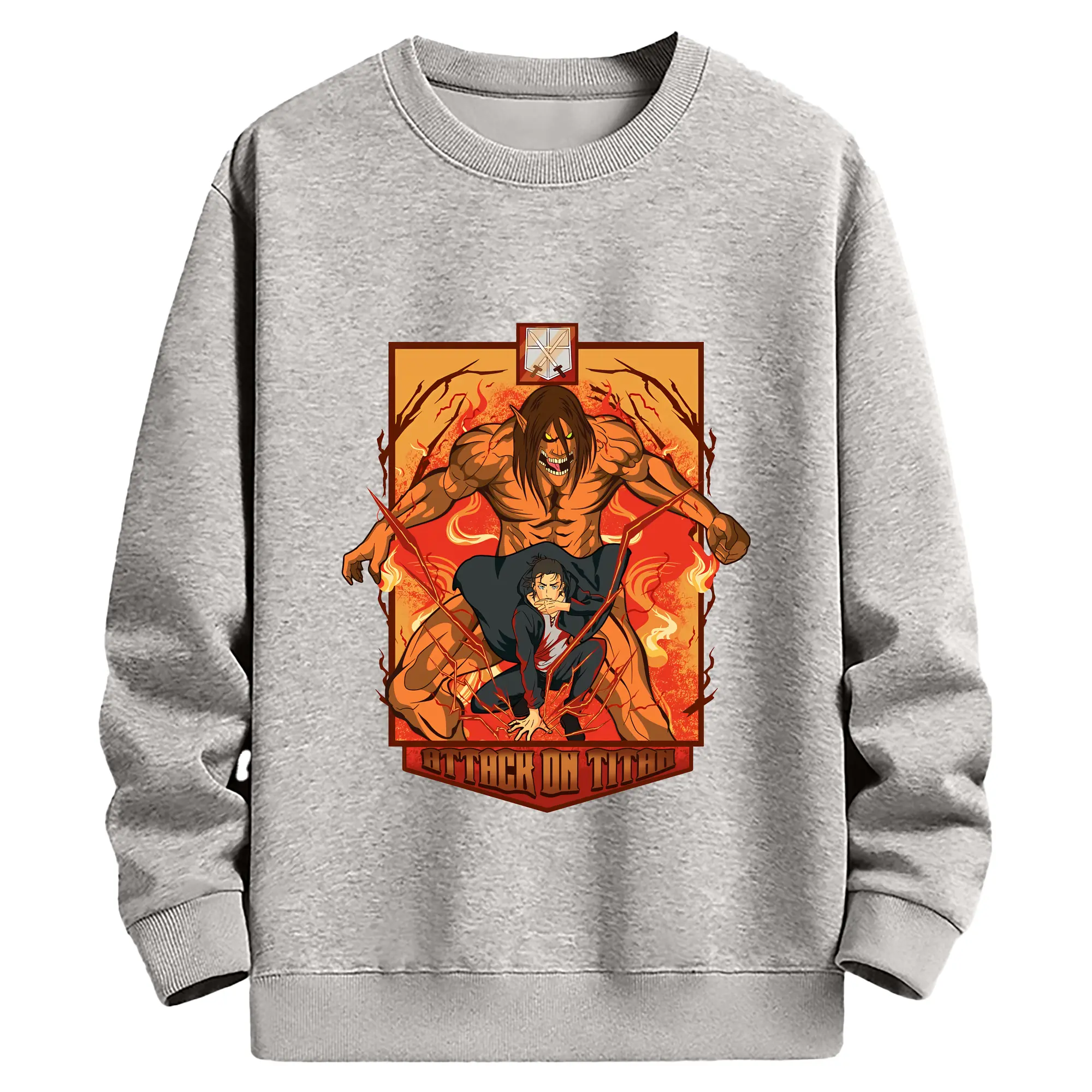進撃の巨人 グッズ エレン・イェーガー - 薄手 クルーネック スウェット 裏毛260g · ポリエステル 春秋向け カジュアル 男女兼用 · トレーナー デイリー スポーツ 散歩に最適