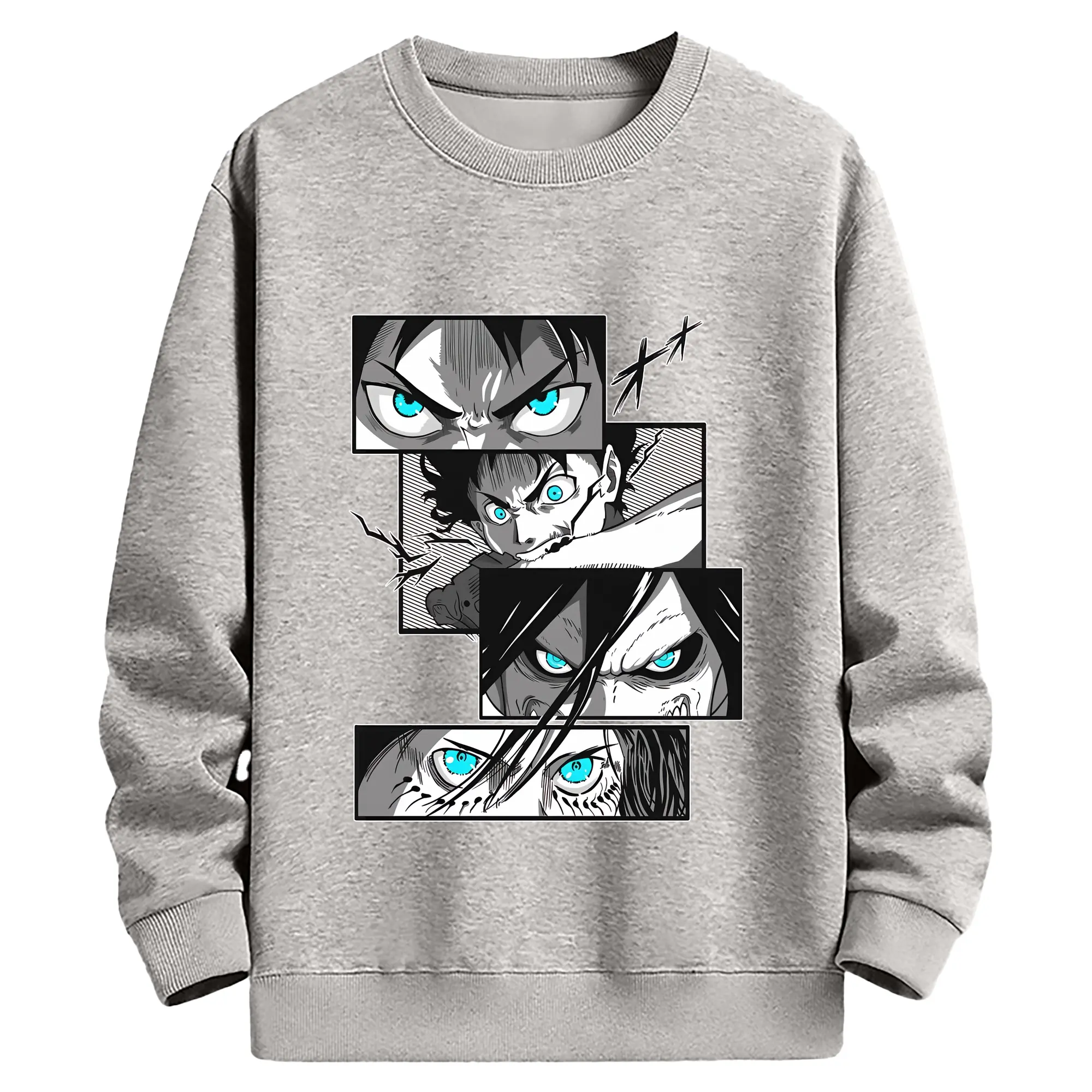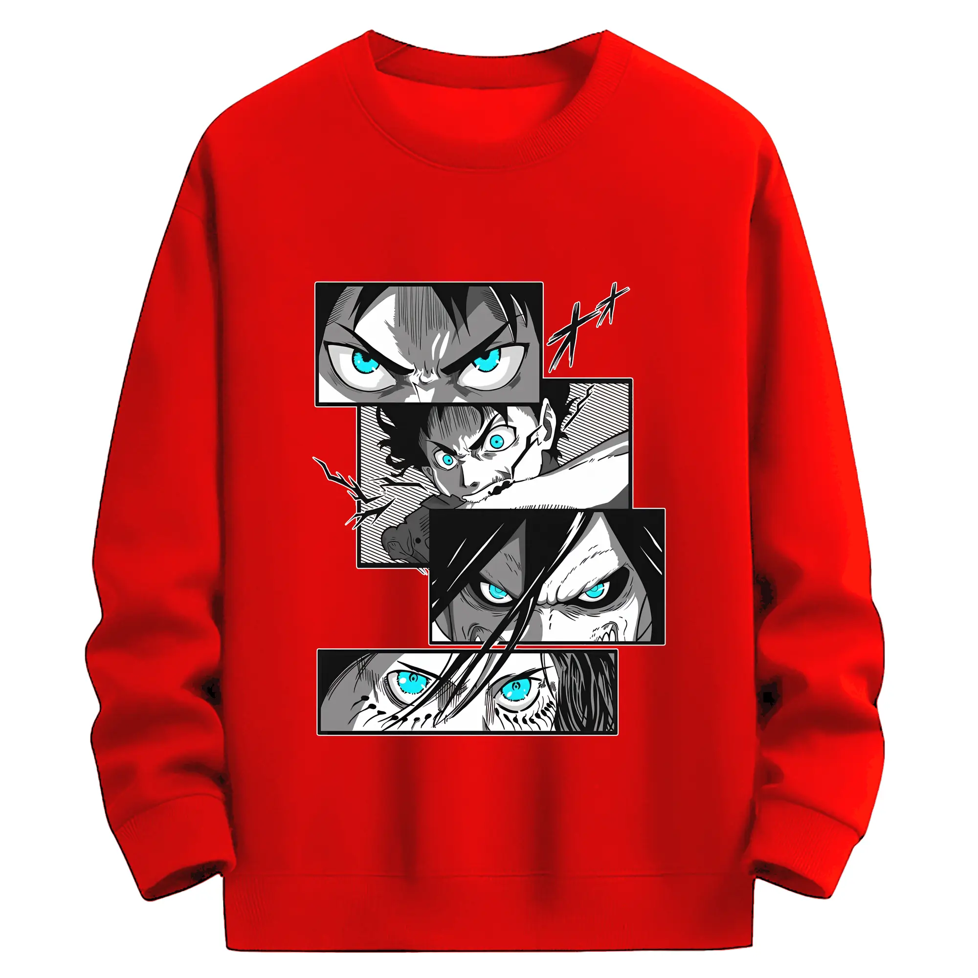 進撃の巨人 グッズ エレン・イェーガー - 高品質 クルーネック スウェット ・ コットン59% ポリエステル41% ・ ユニセックス 長袖 トレーナー ・ カジュアル デイリー スポーツ 散歩用