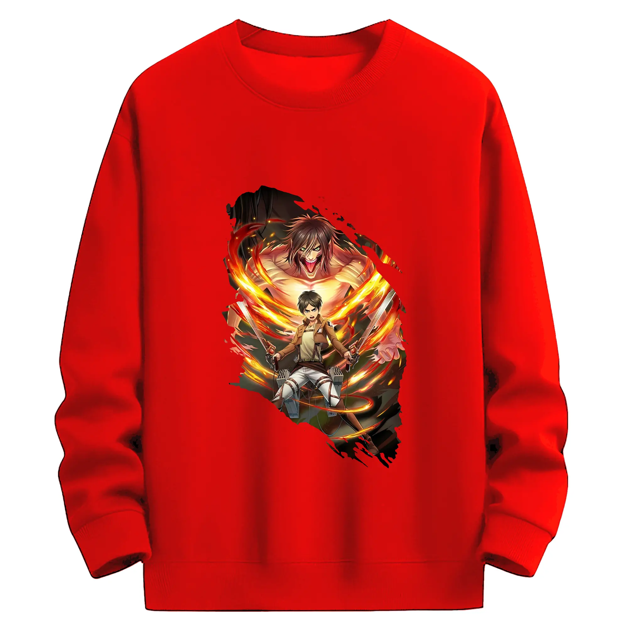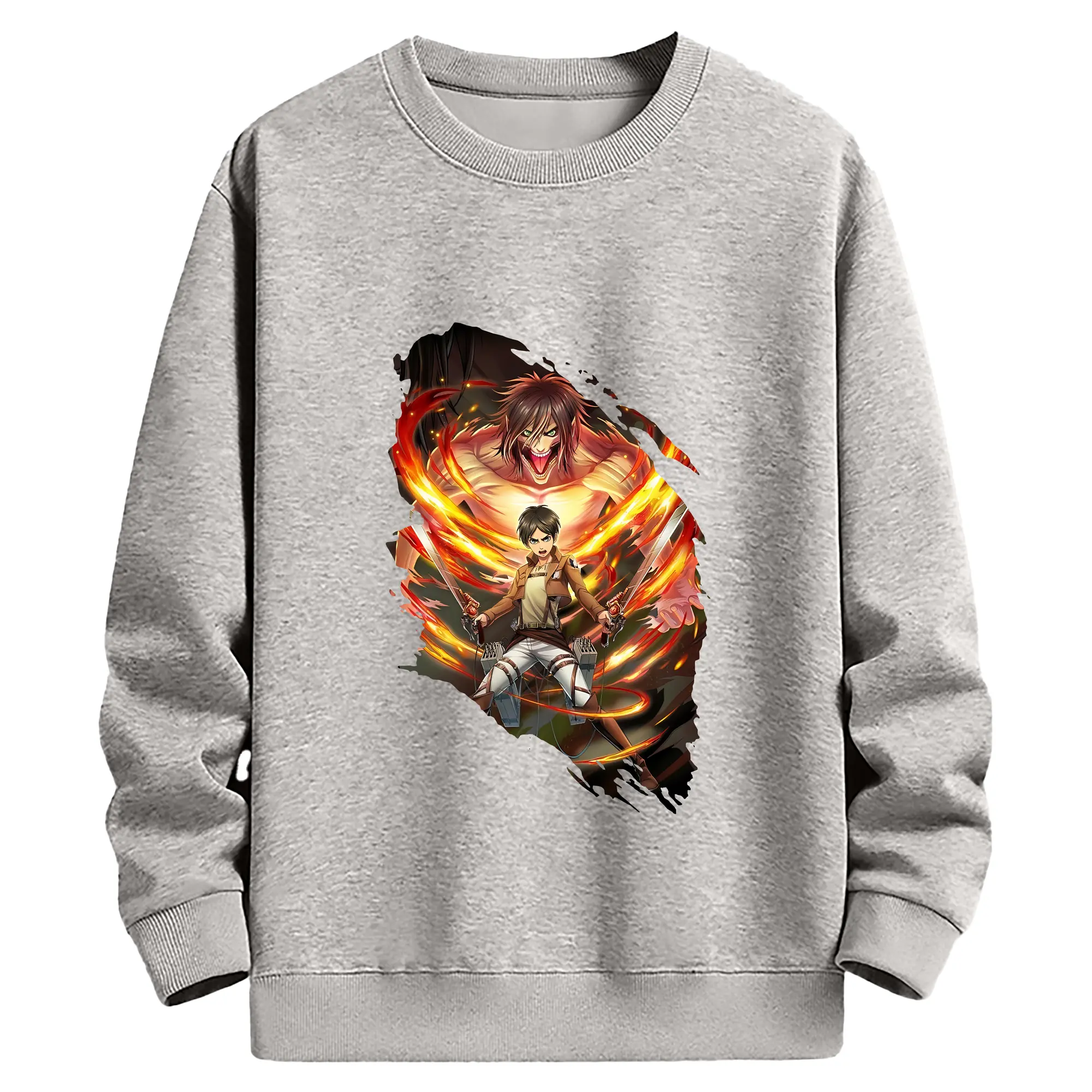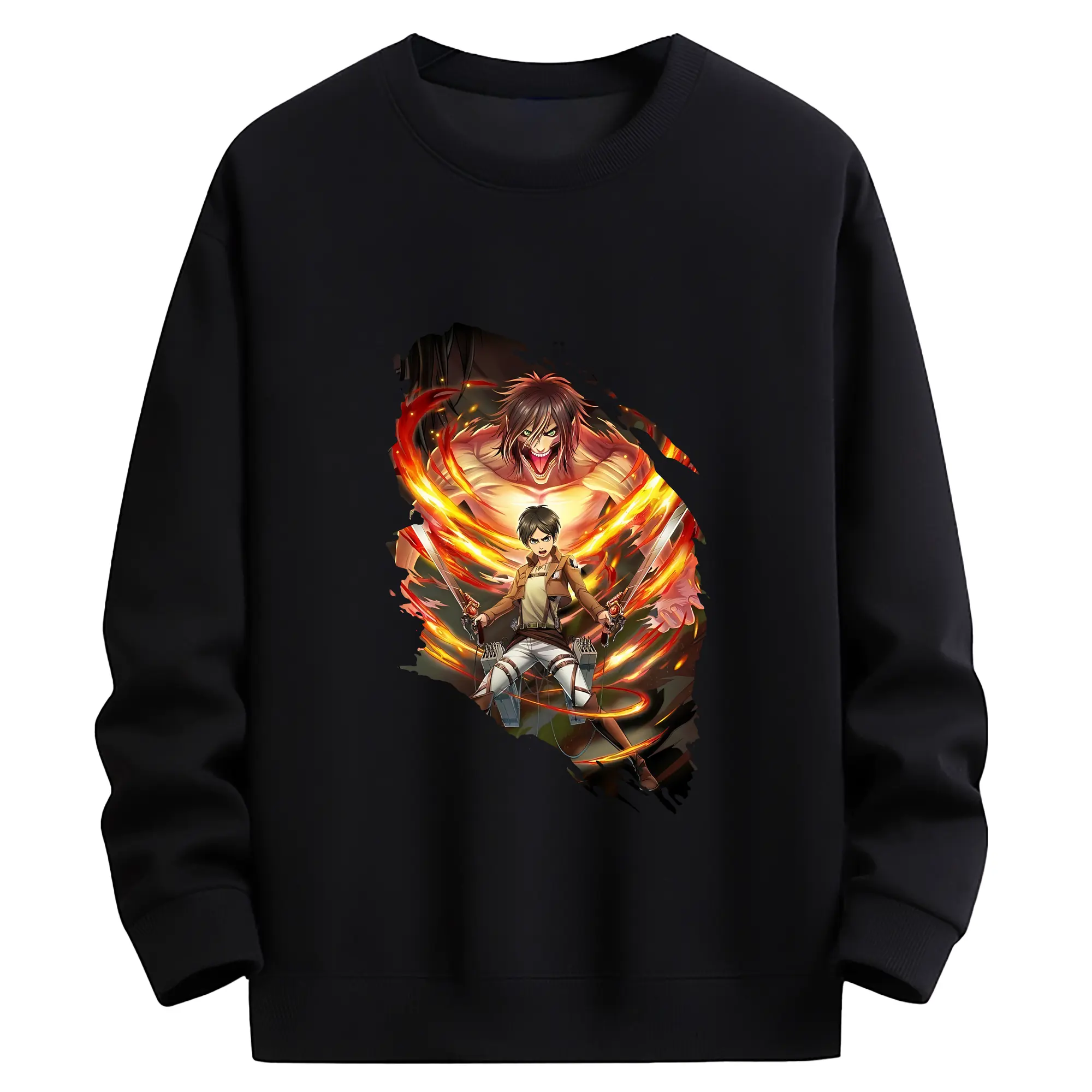 進撃の巨人 グッズ エレン・イェーガー - 薄手 クルーネック スウェット 裏毛260g · ポリエステル 春秋向け カジュアル 男女兼用 · トレーナー デイリー スポーツ 散歩に最適