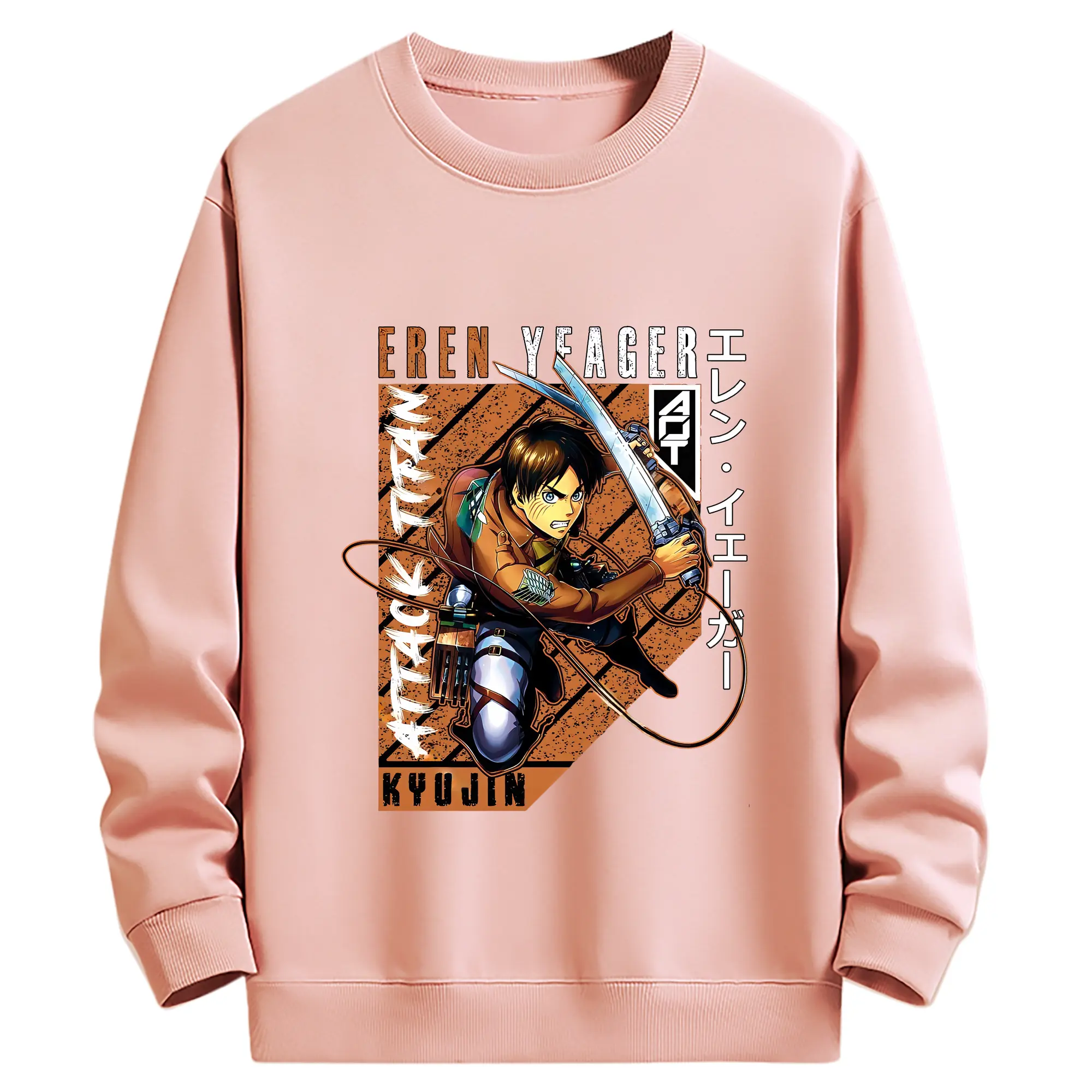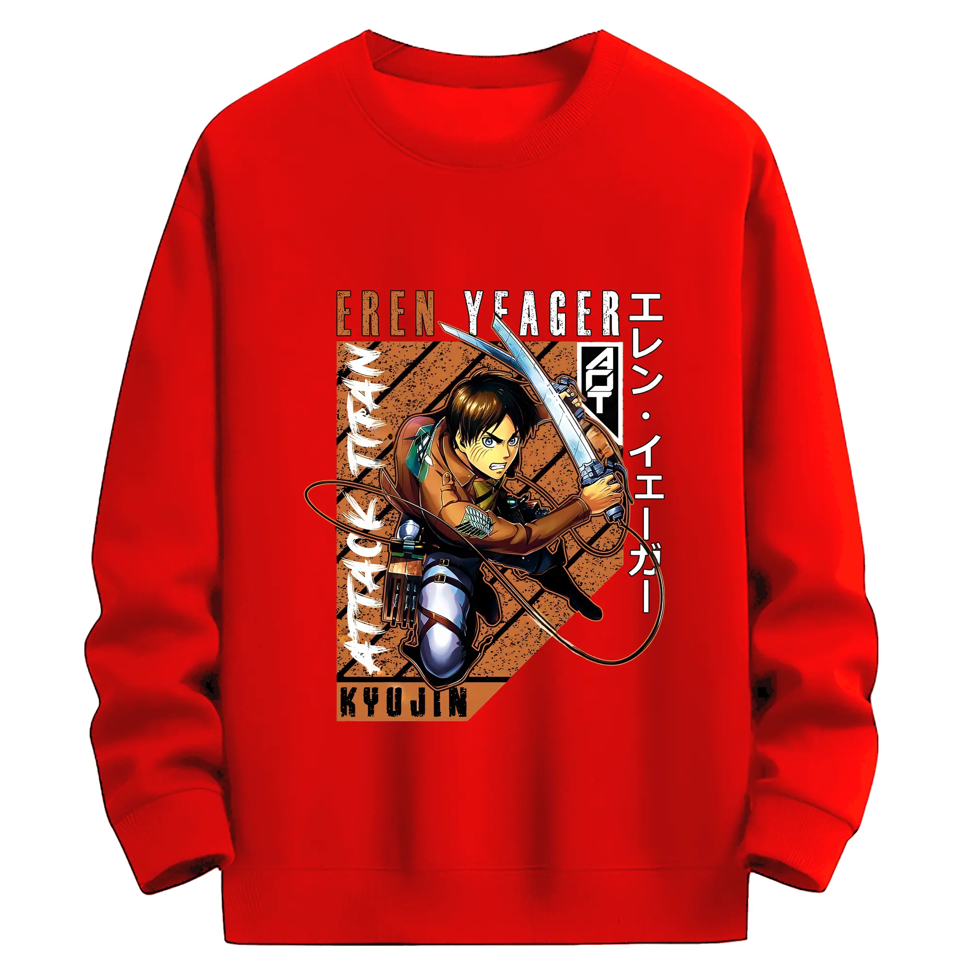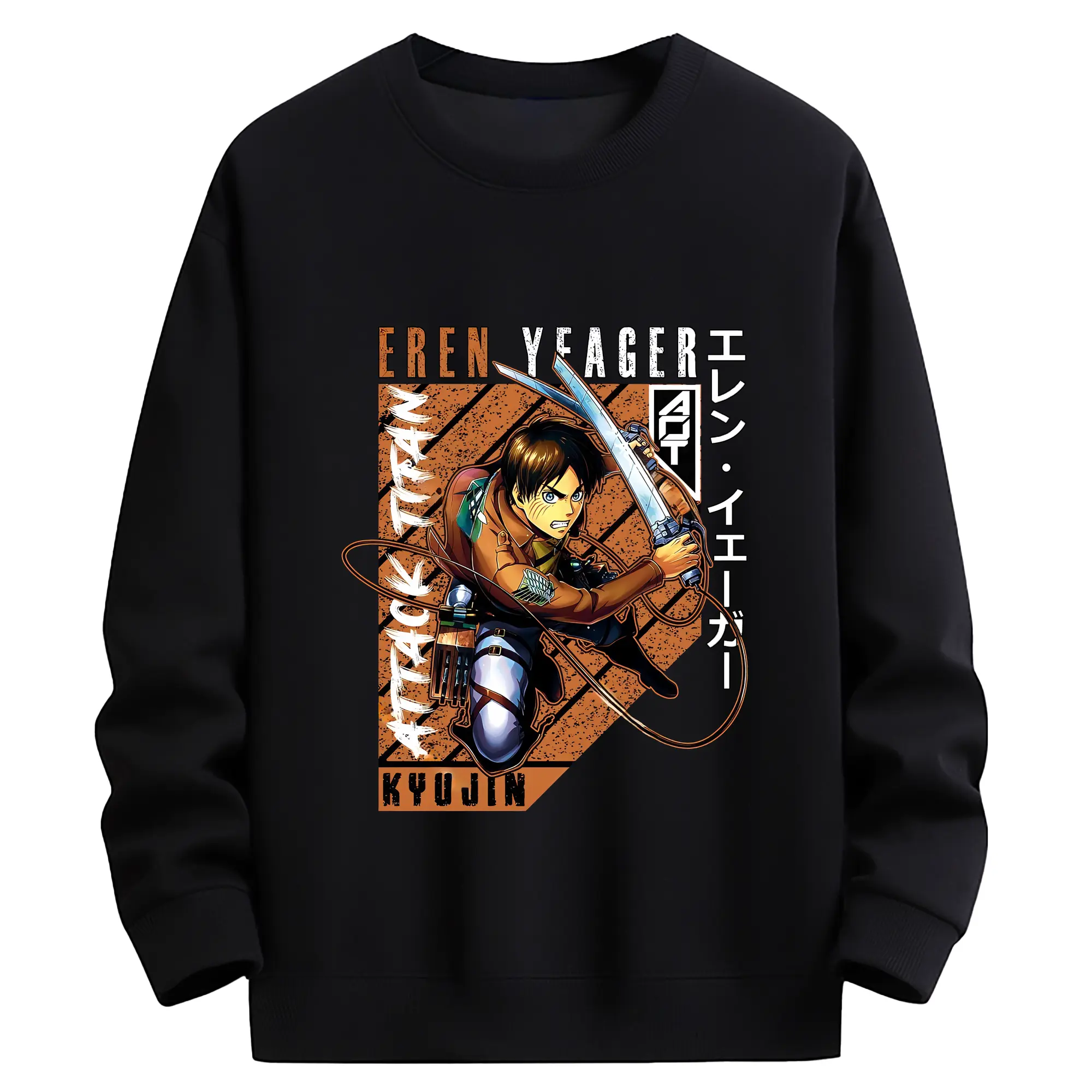 進撃の巨人 グッズ エレン・イェーガー - 薄手 クルーネック スウェット 裏毛260g · ポリエステル 春秋向け カジュアル 男女兼用 · トレーナー デイリー スポーツ 散歩に最適