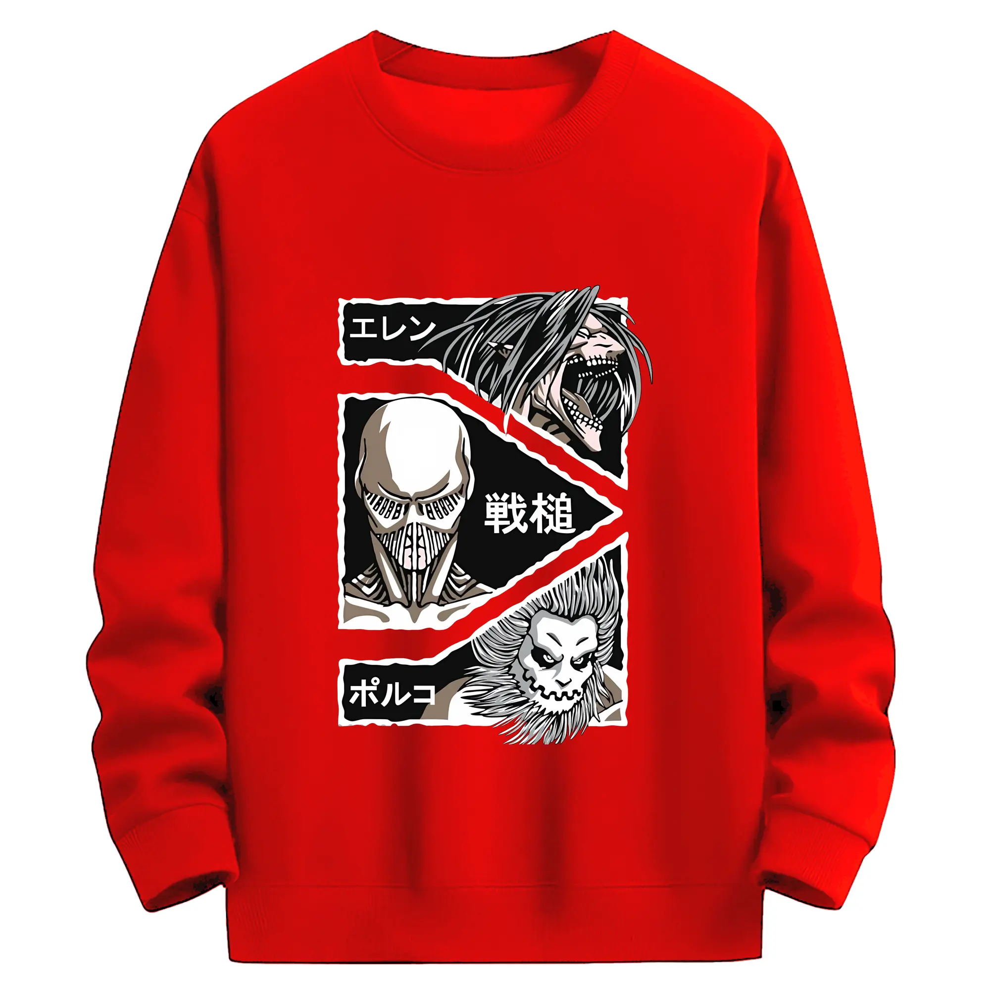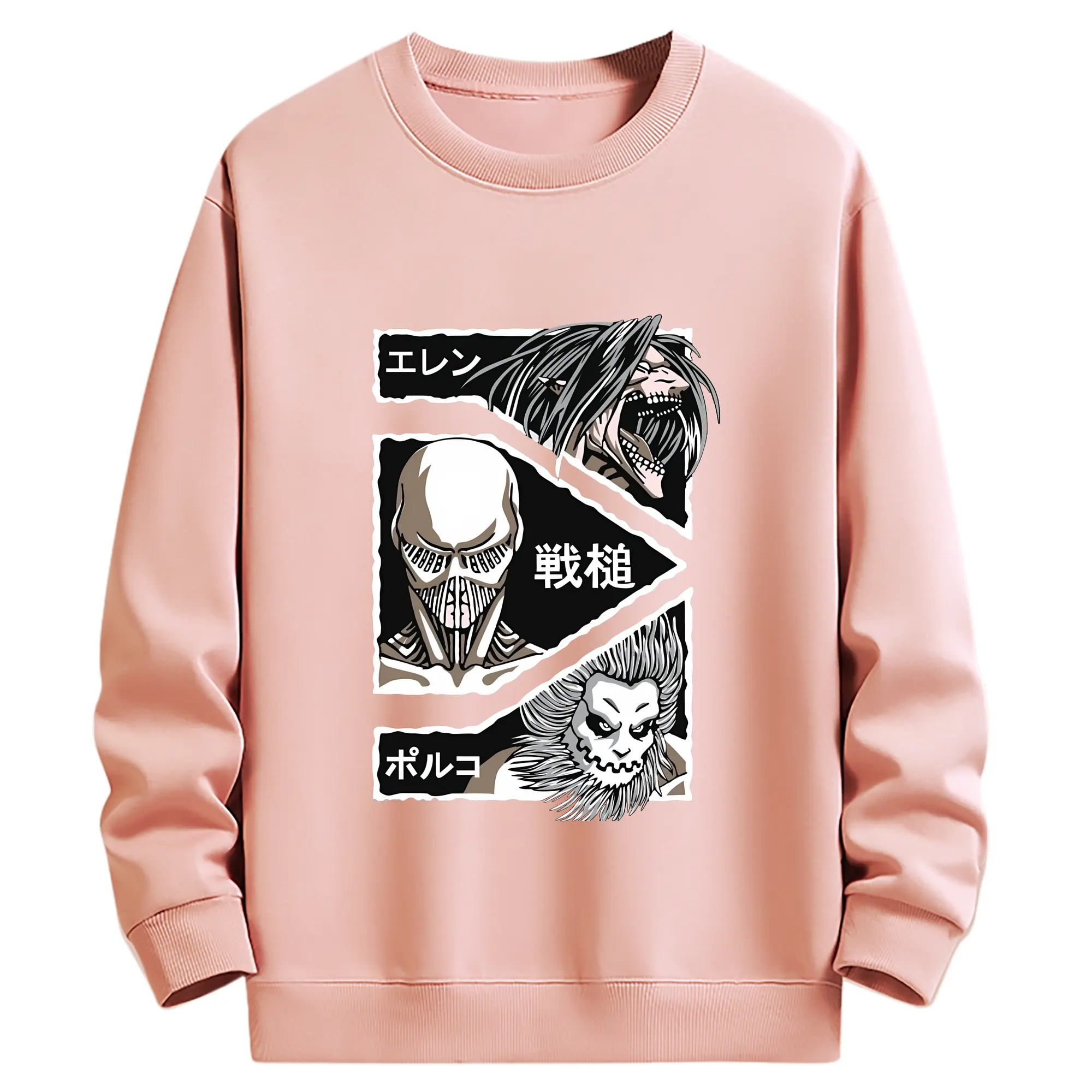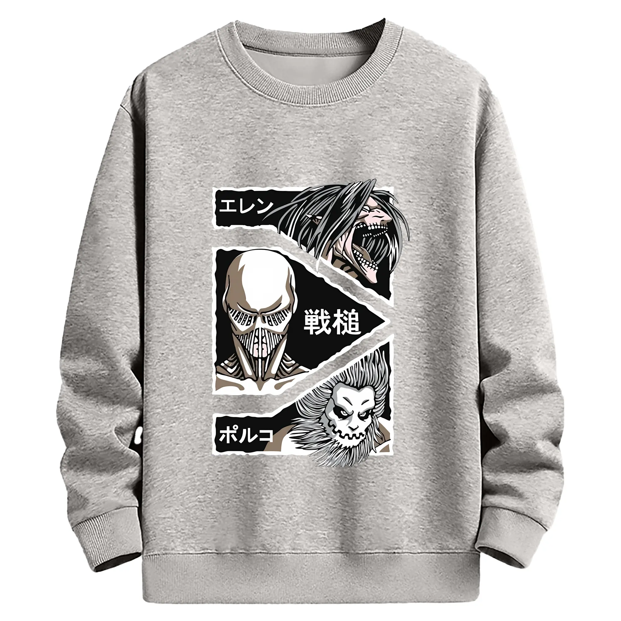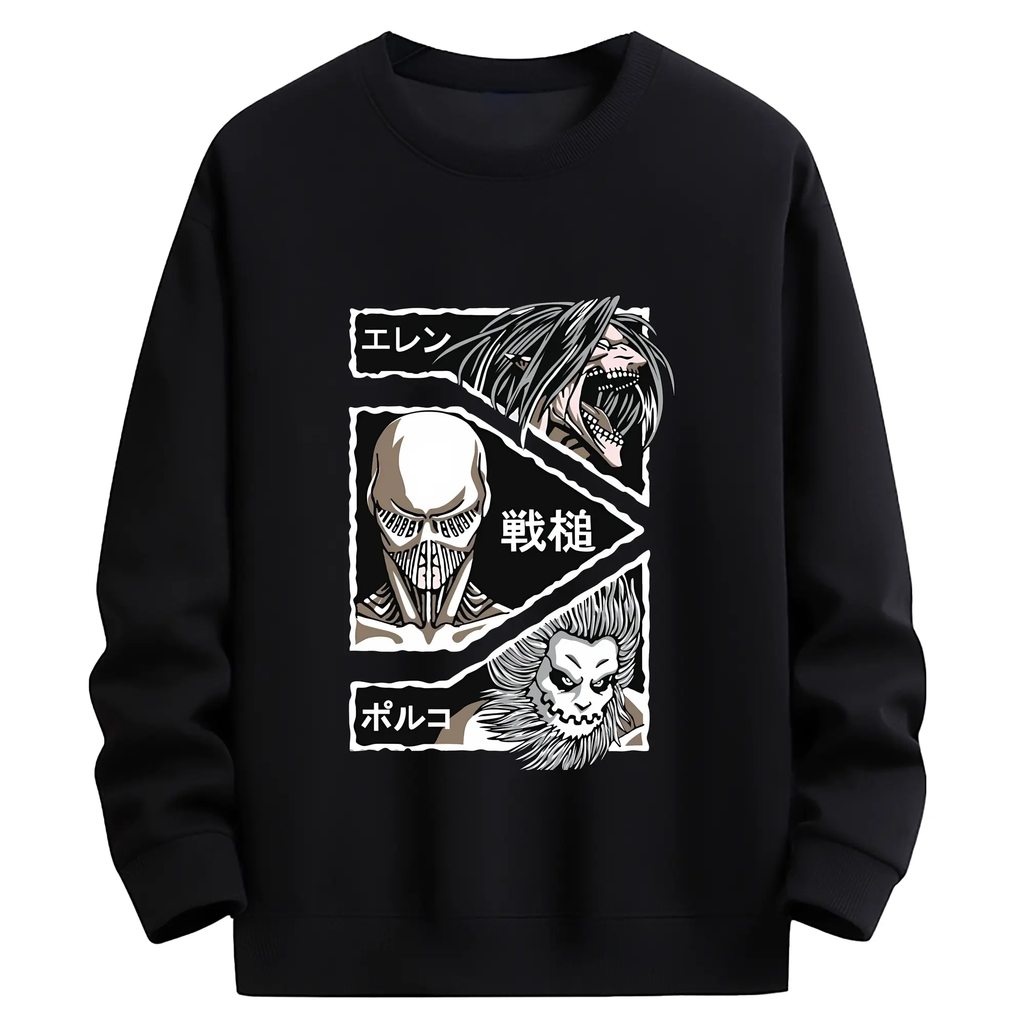 進撃の巨人 グッズ エレン・イェーガー - 高品質 クルーネック スウェット ・ コットン59% ポリエステル41% ・ ユニセックス 長袖 トレーナー ・ カジュアル デイリー スポーツ 散歩用