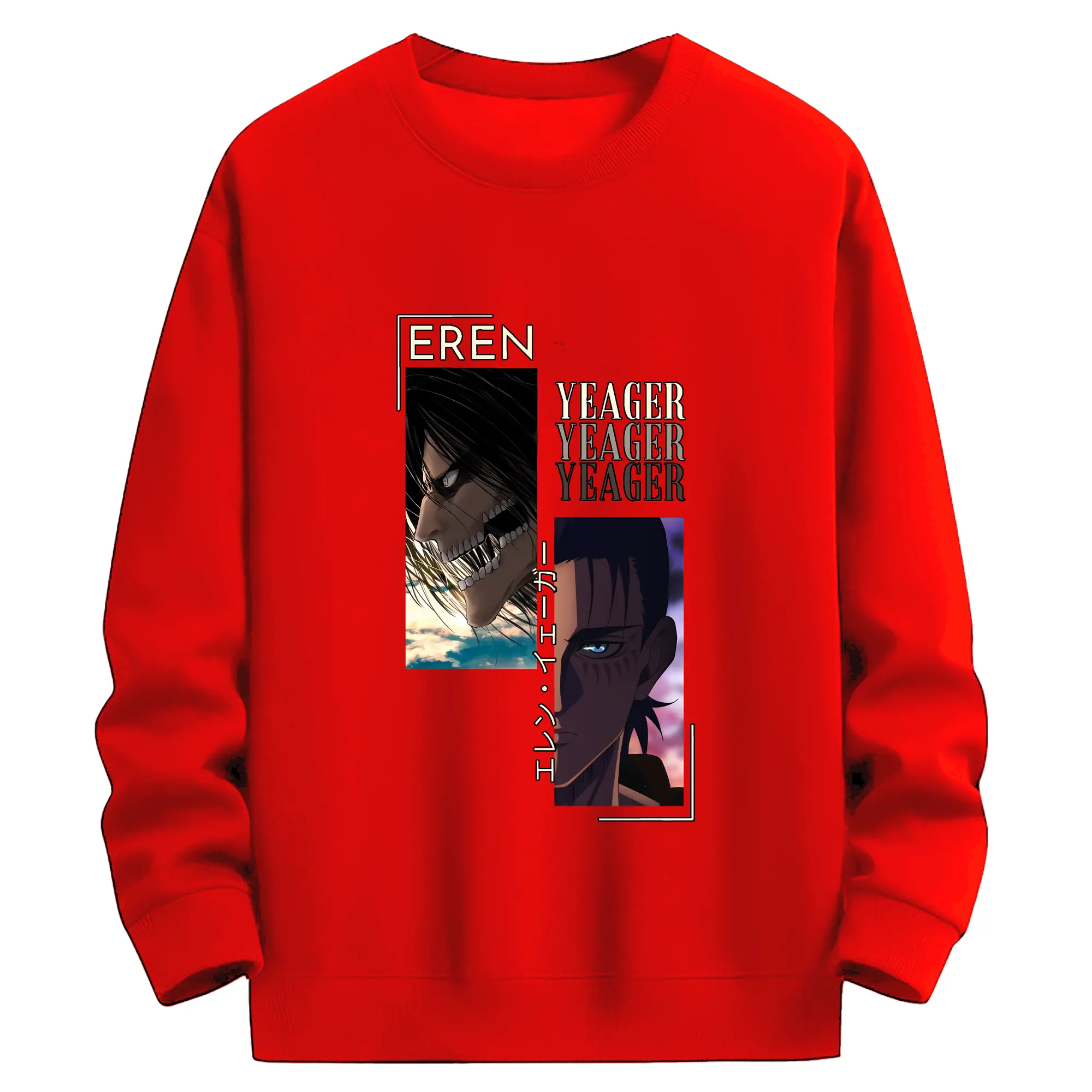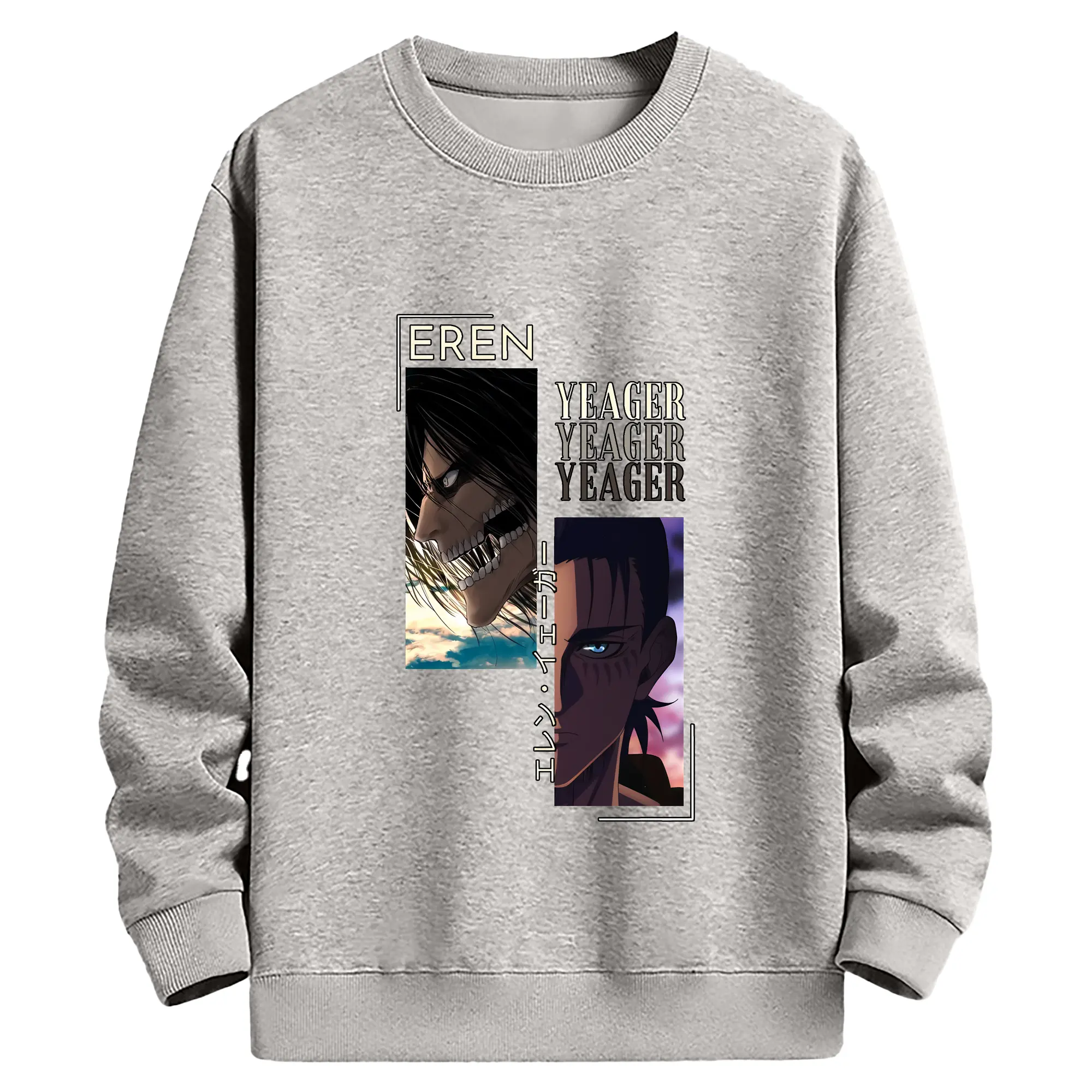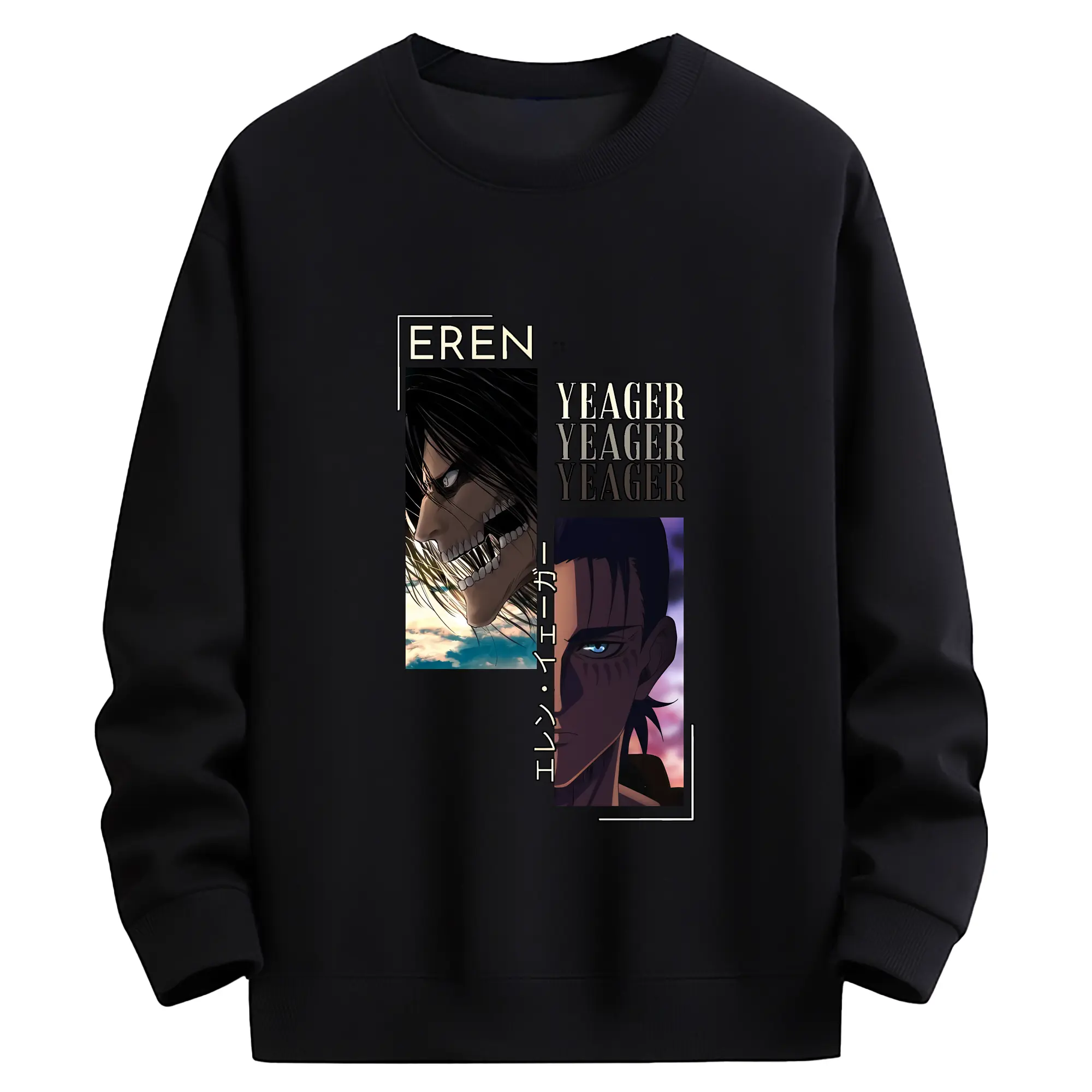 進撃の巨人 グッズ エレン・イェーガー - 薄手 クルーネック スウェット 裏毛260g · ポリエステル 春秋向け カジュアル 男女兼用 · トレーナー デイリー スポーツ 散歩に最適
