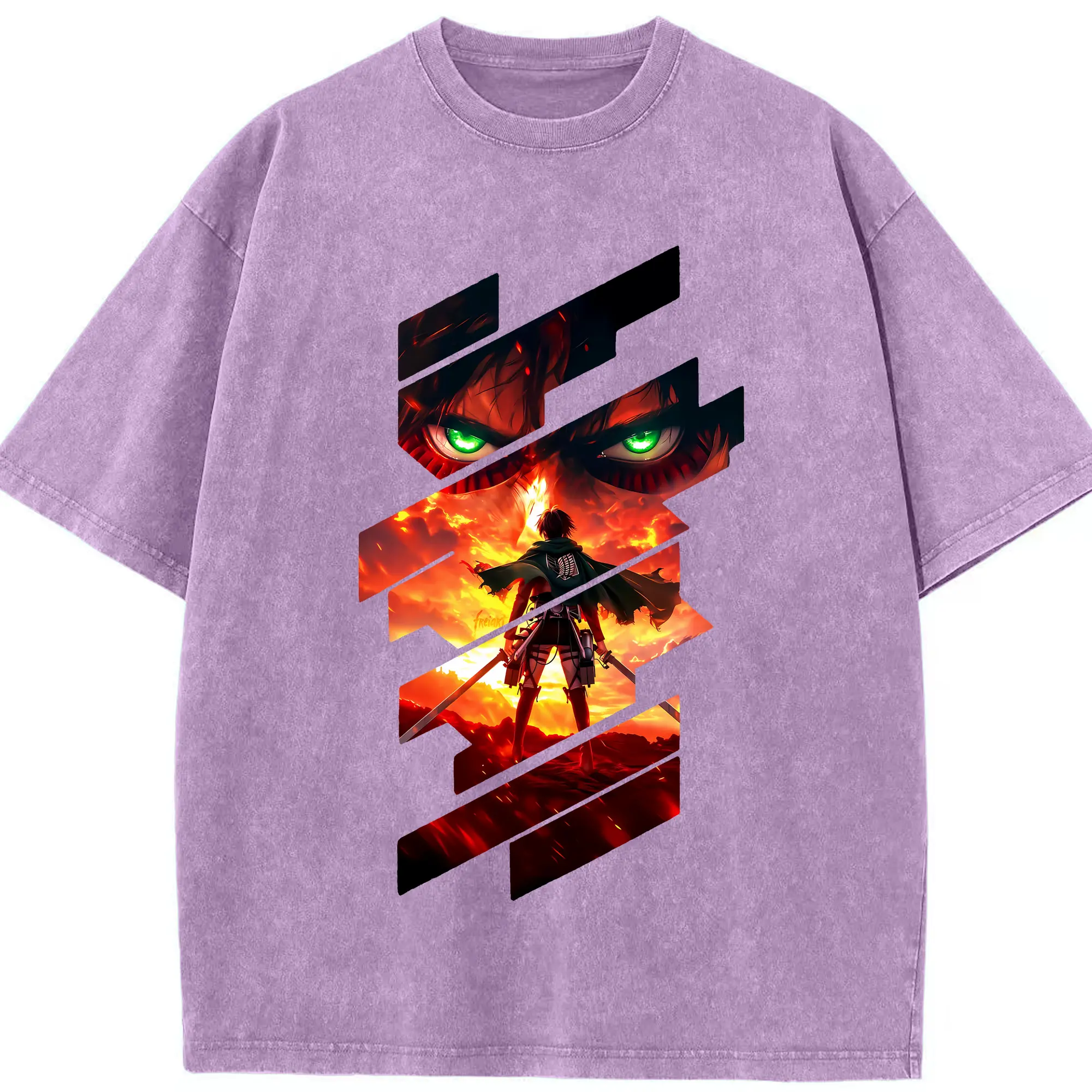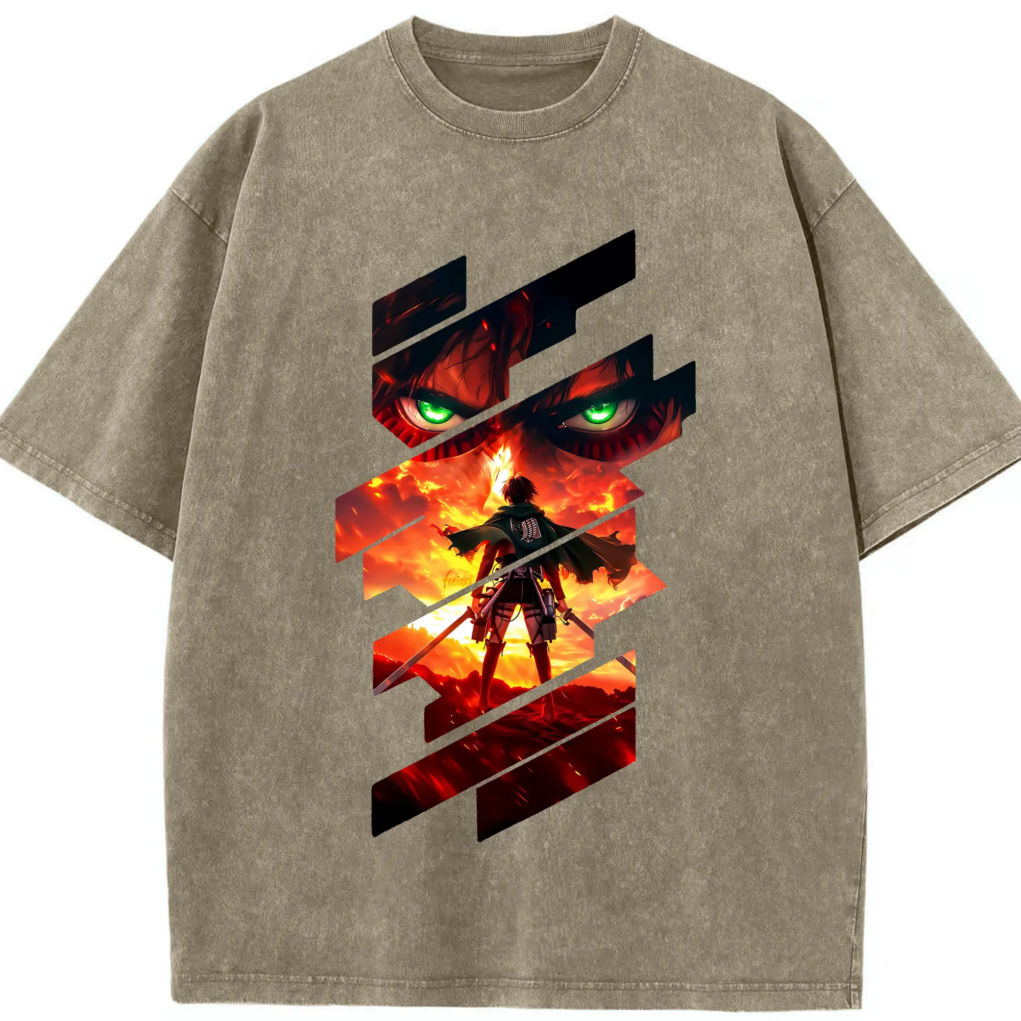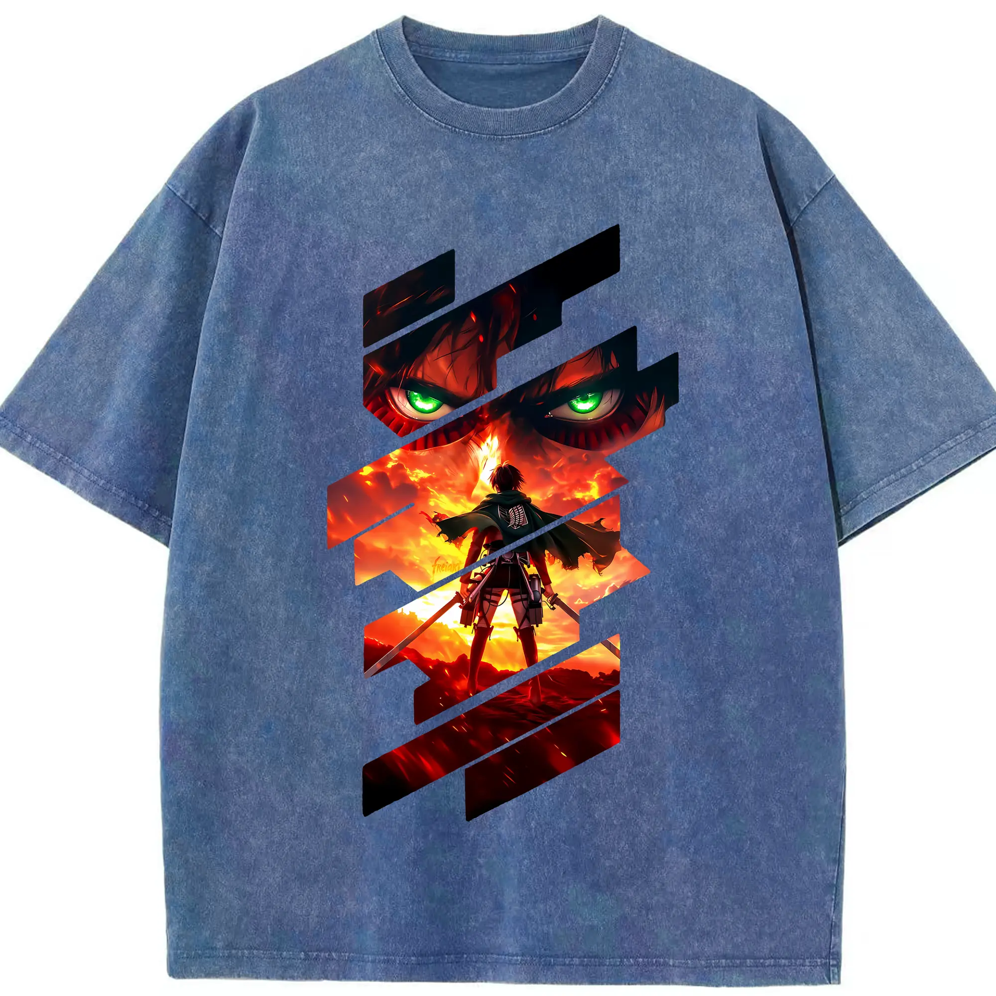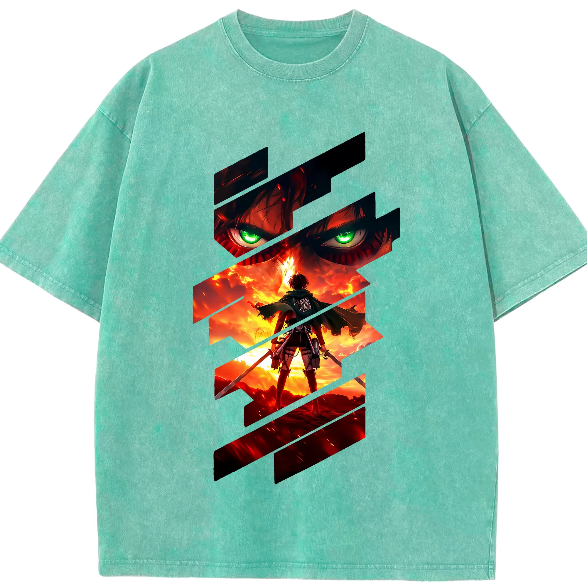 進撃の巨人 グッズ エレン・イェーガー - 綿100% ヴィンテージ風 半袖Tシャツ ・ 背面プリント ・ 柔らか肌触り ・ 通気性 快適 ・ スポーツ カジュアル 外出用