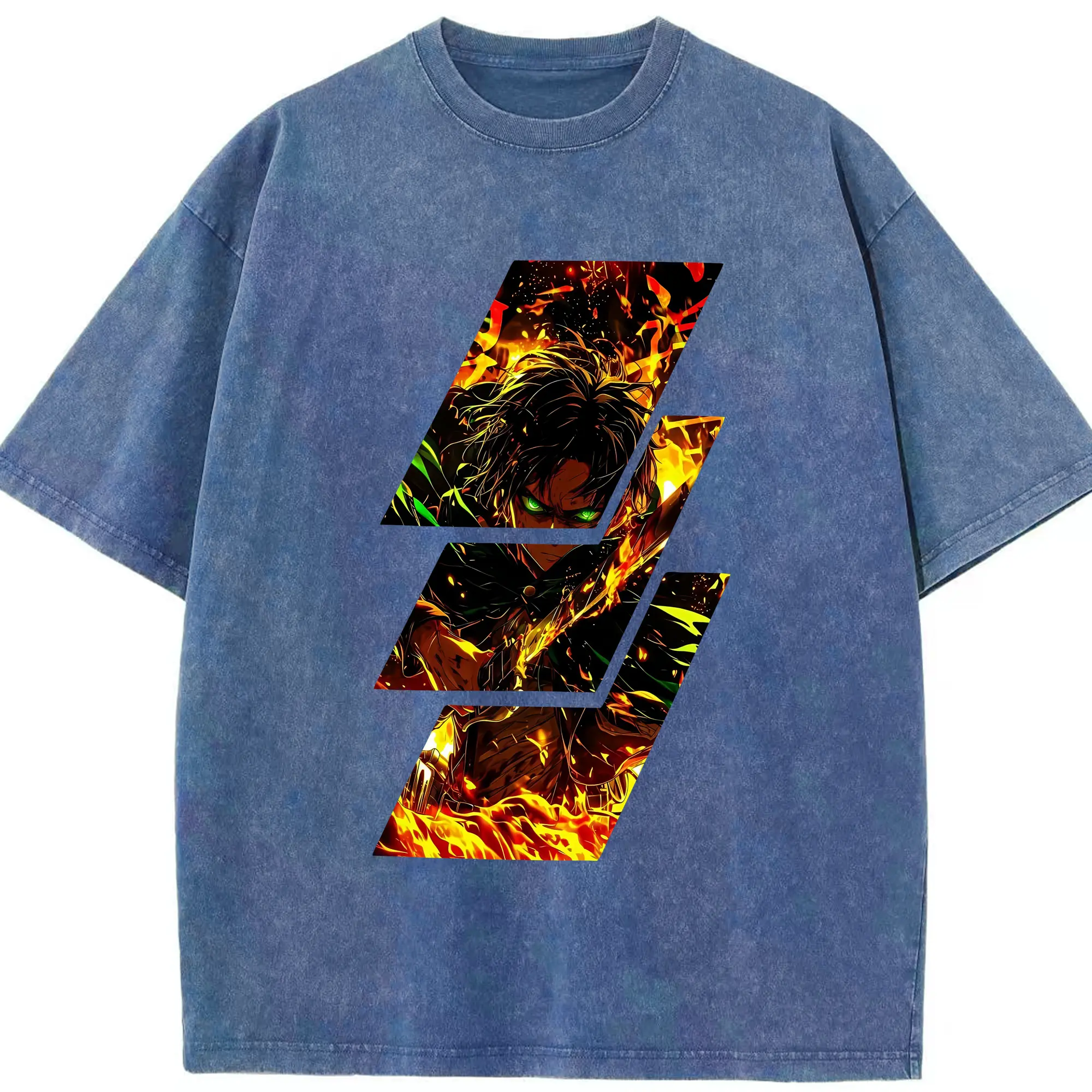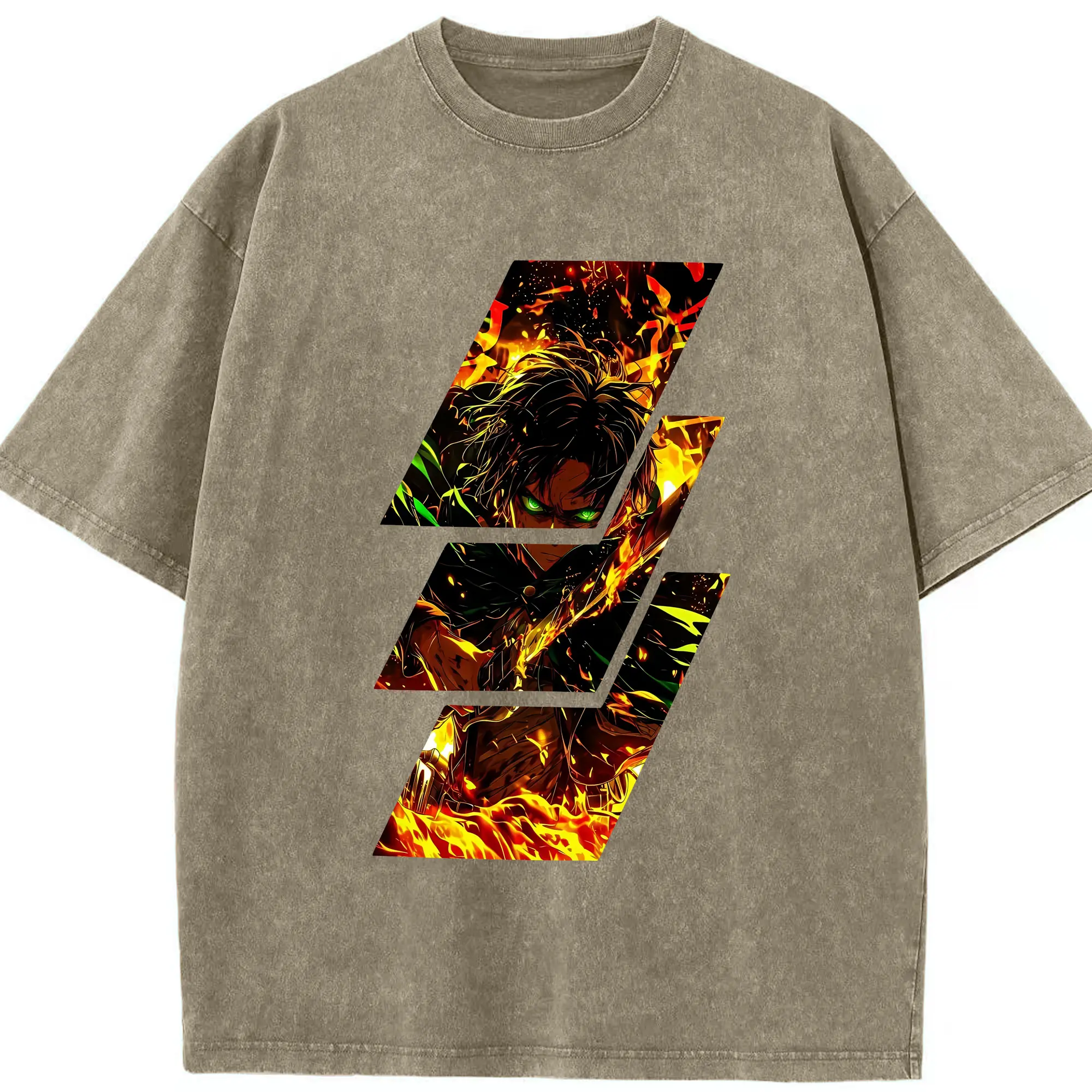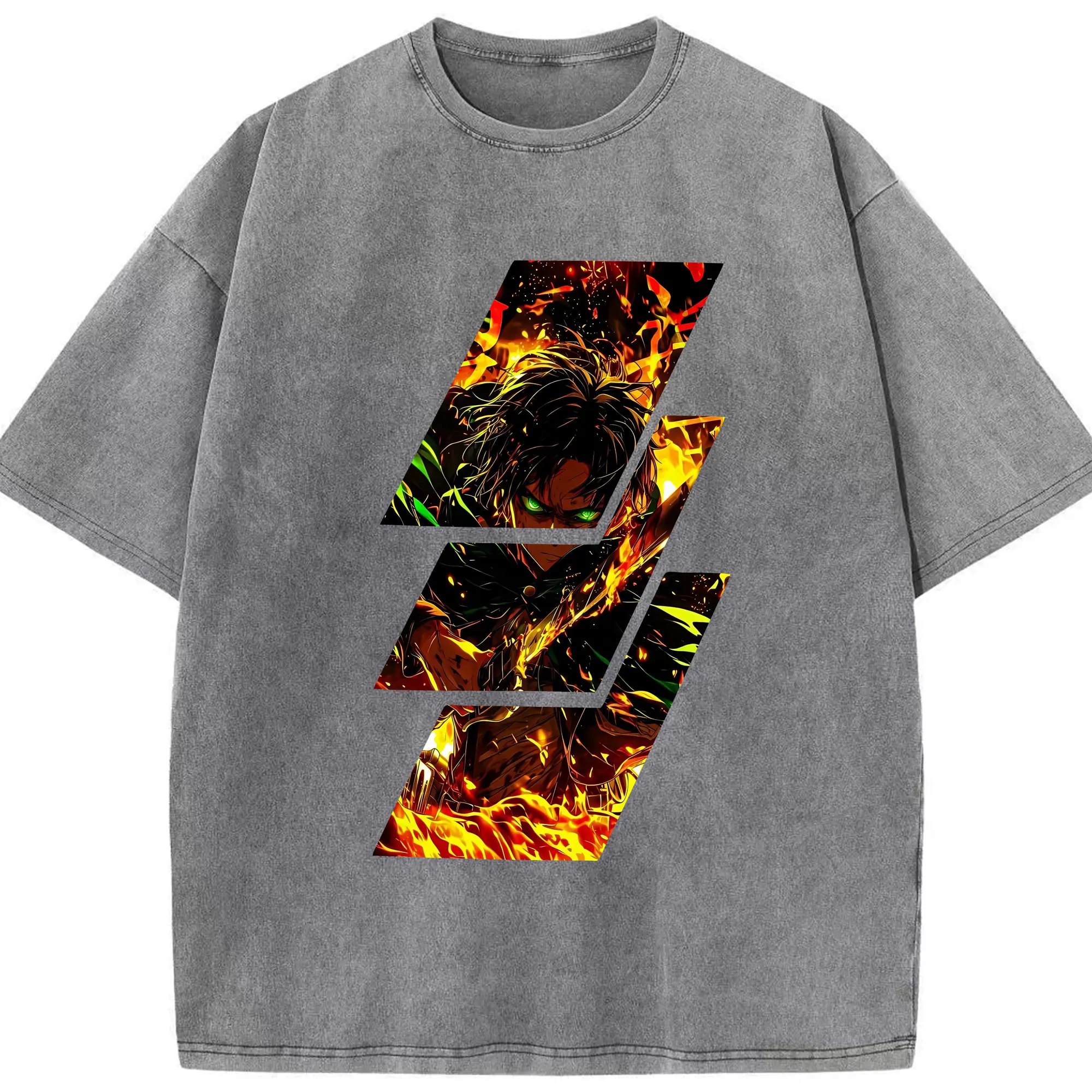 進撃の巨人 グッズ エレン・イェーガー - 綿100% ヴィンテージ風 半袖Tシャツ ・ 背面プリント ・ 柔らか肌触り ・ 通気性 快適 ・ スポーツ カジュアル 外出用