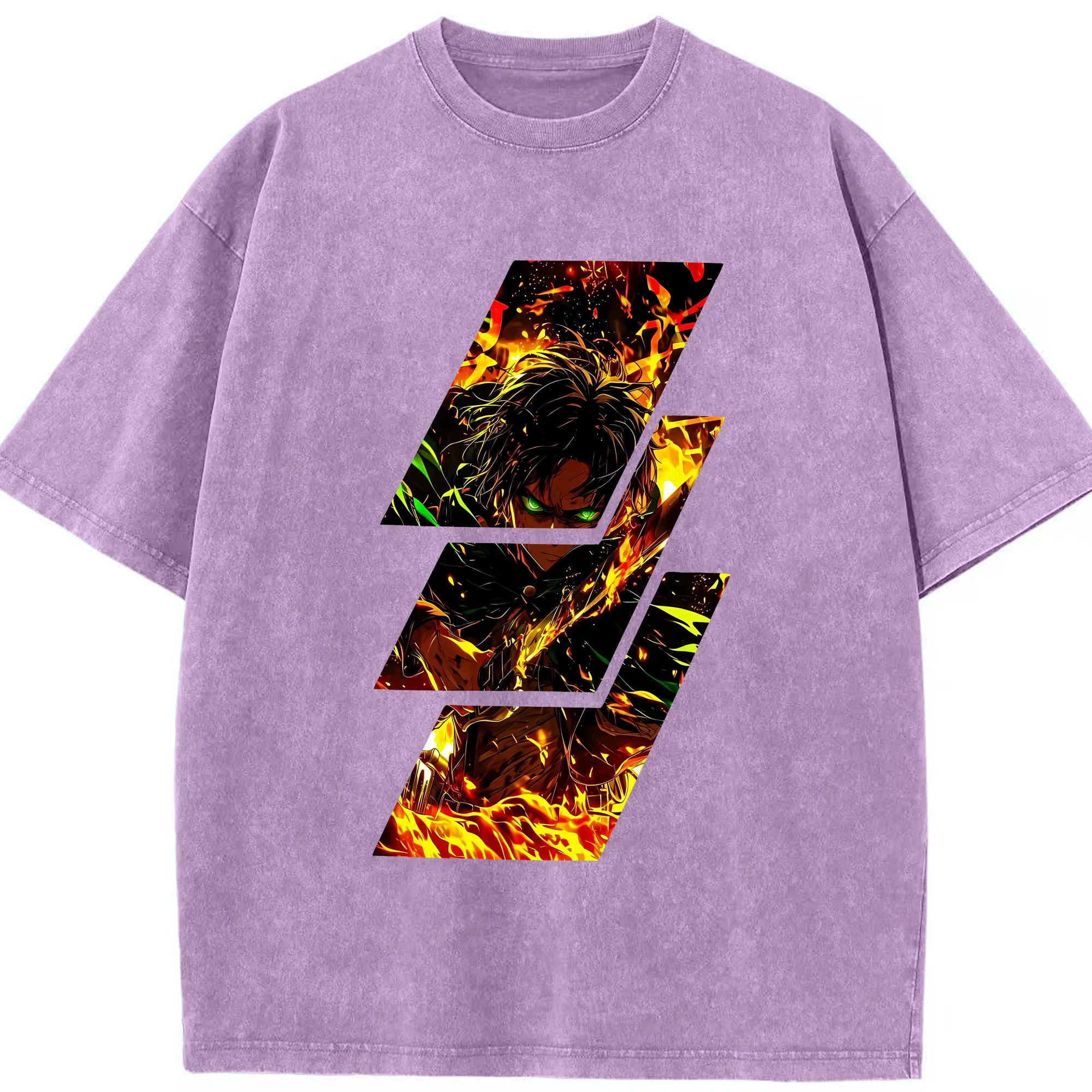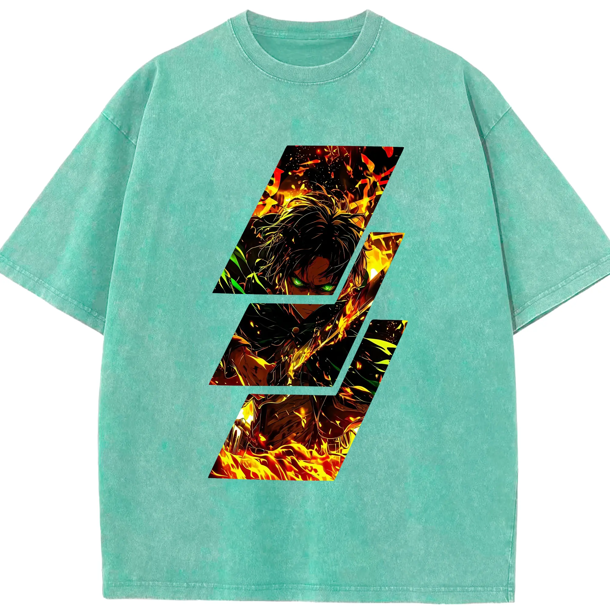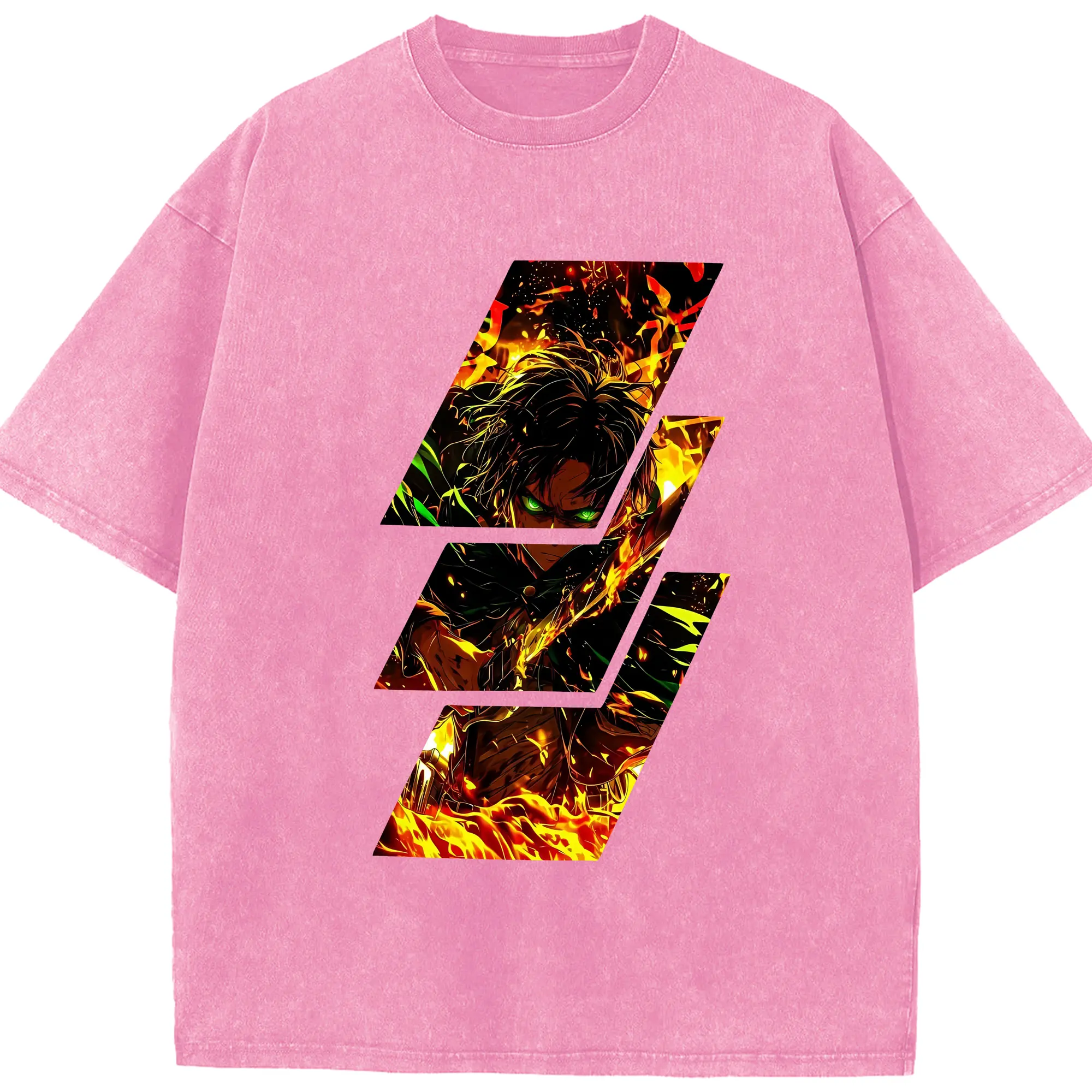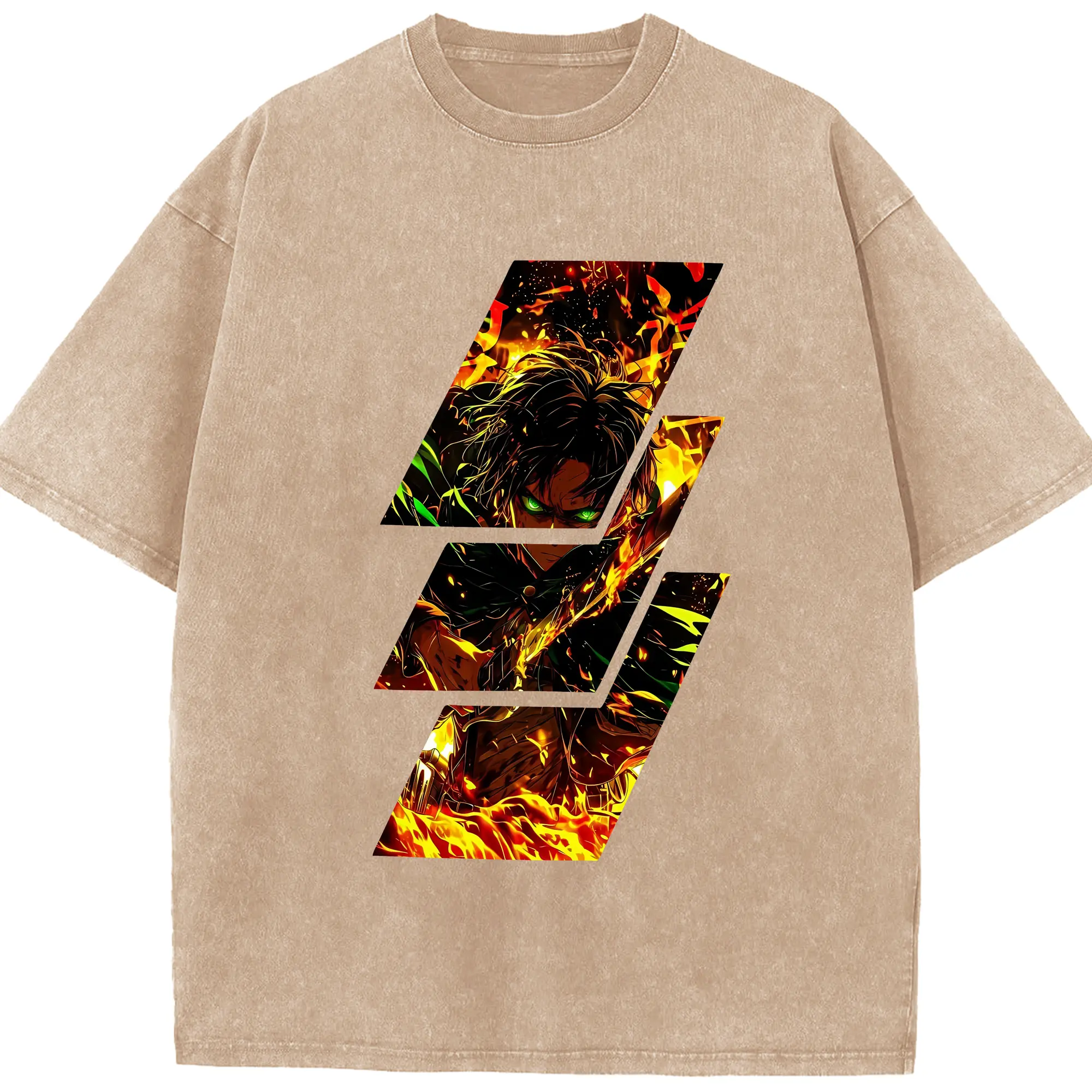 進撃の巨人 グッズ エレン・イェーガー - 綿100% ヴィンテージ風 半袖Tシャツ ・ 背面プリント ・ 柔らか肌触り ・ 通気性 快適 ・ スポーツ カジュアル 外出用