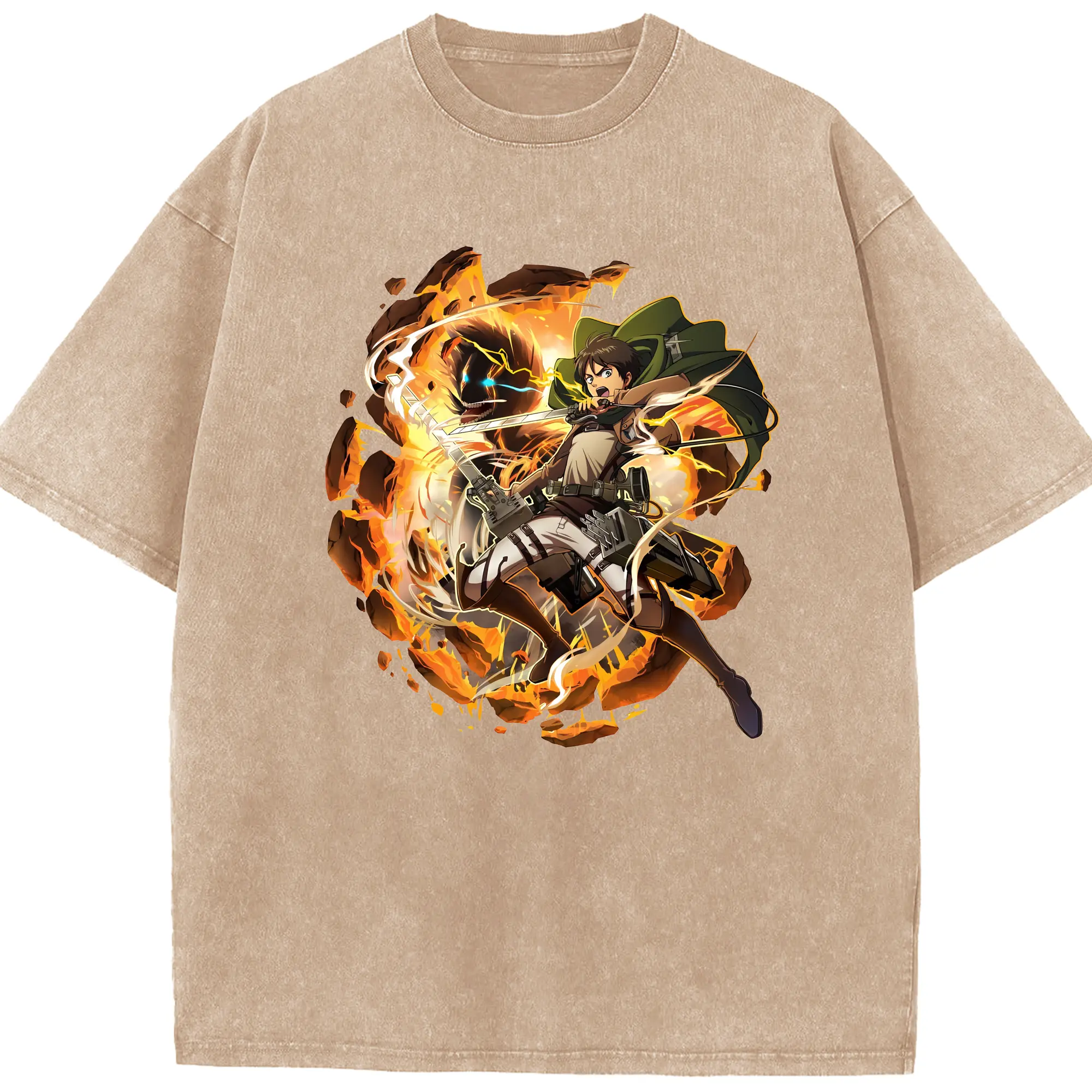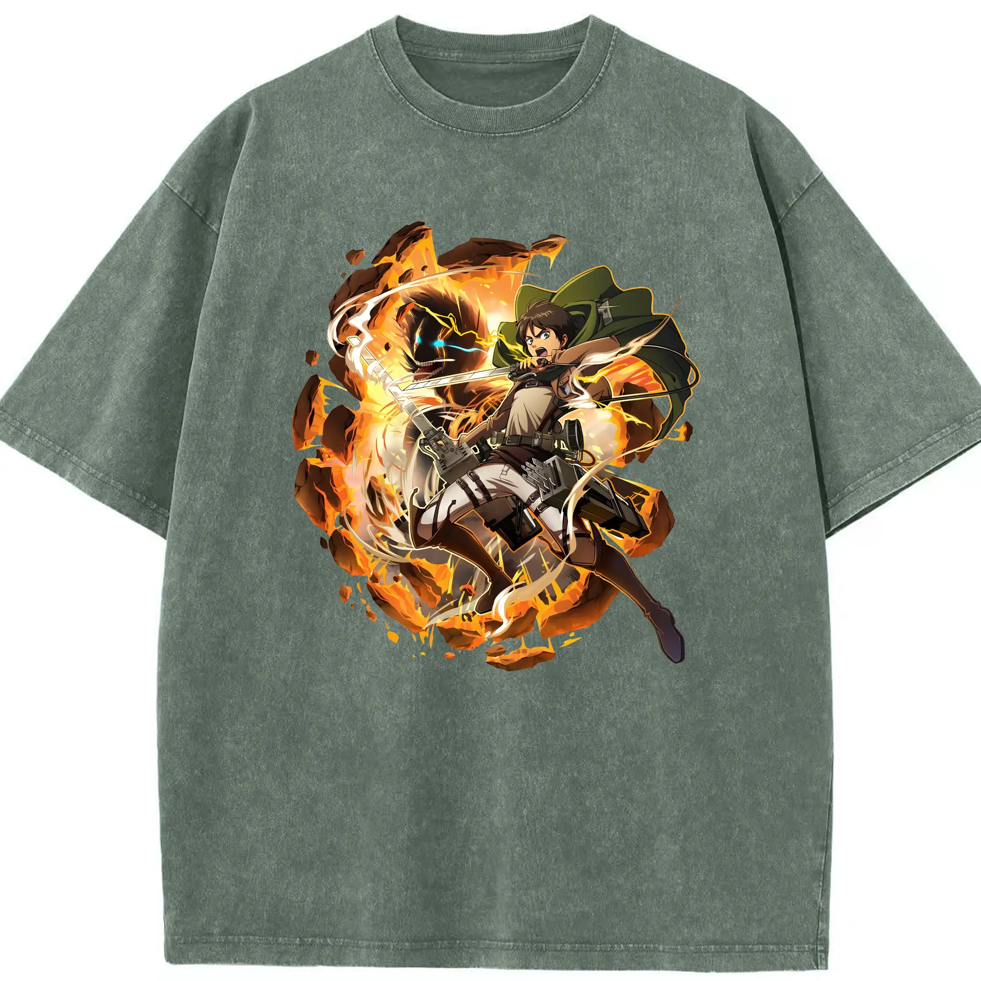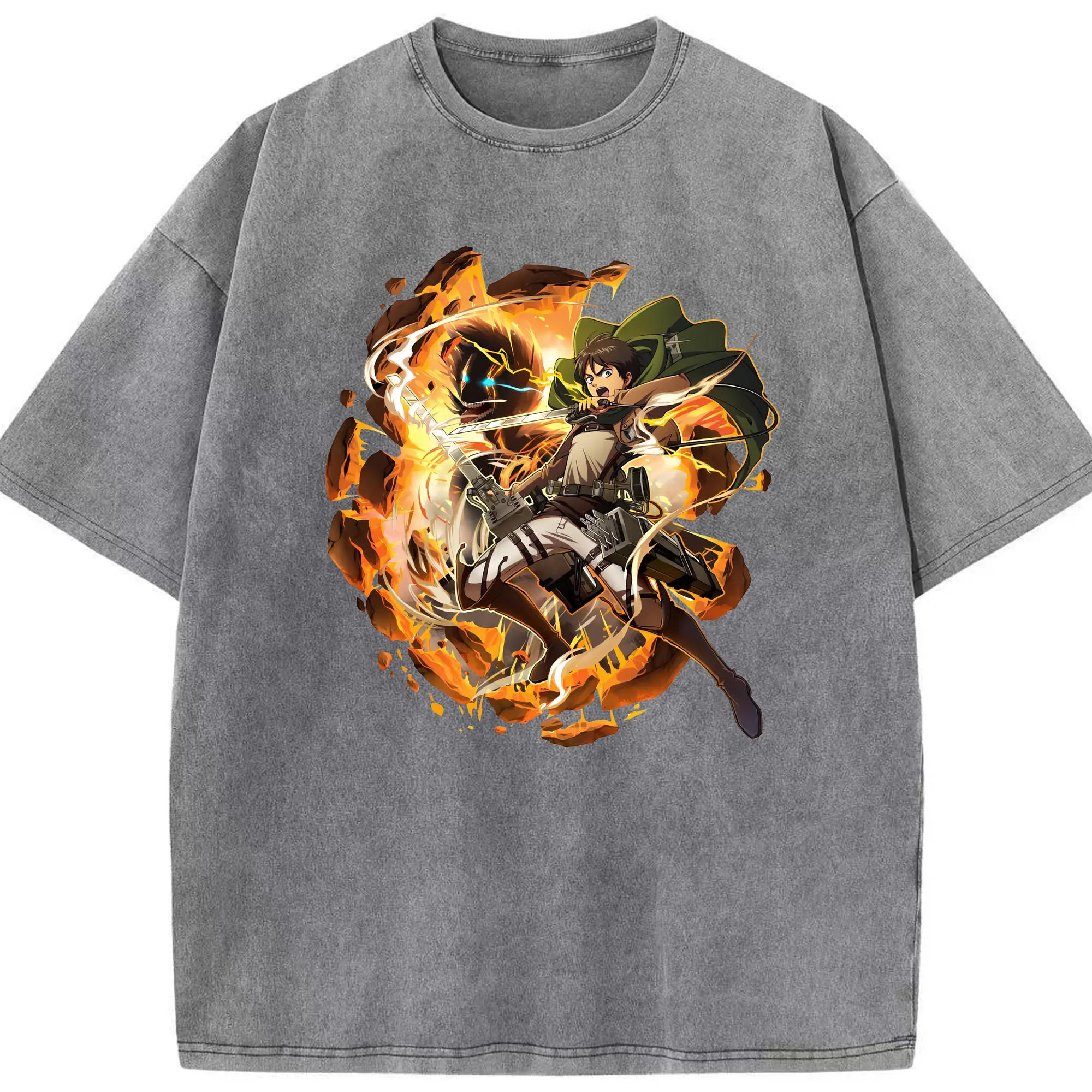進撃の巨人 グッズ エレン・イェーガー - 綿100% ヴィンテージ風 半袖Tシャツ ・ 背面プリント ・ 柔らか肌触り ・ 通気性 快適 ・ スポーツ カジュアル 外出用