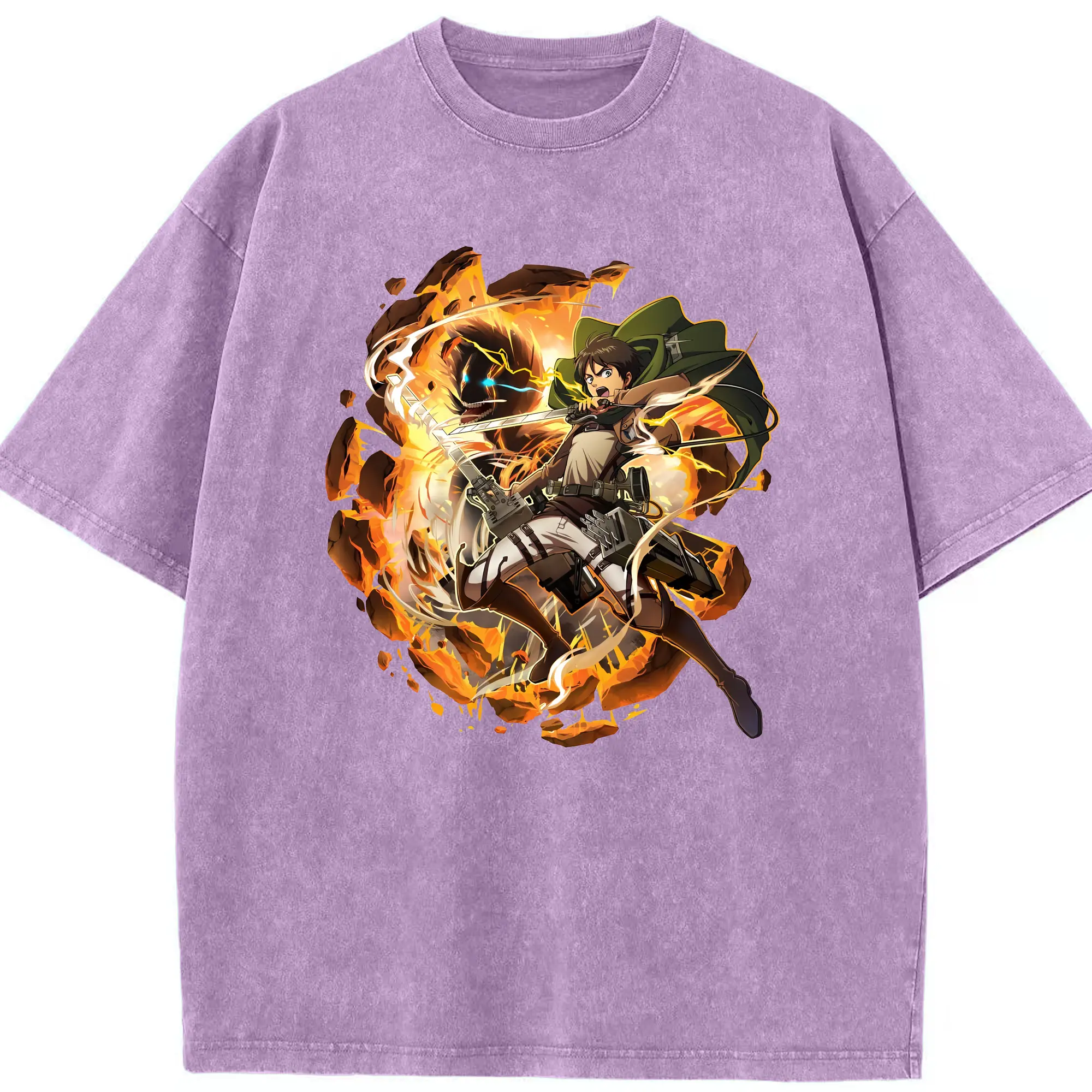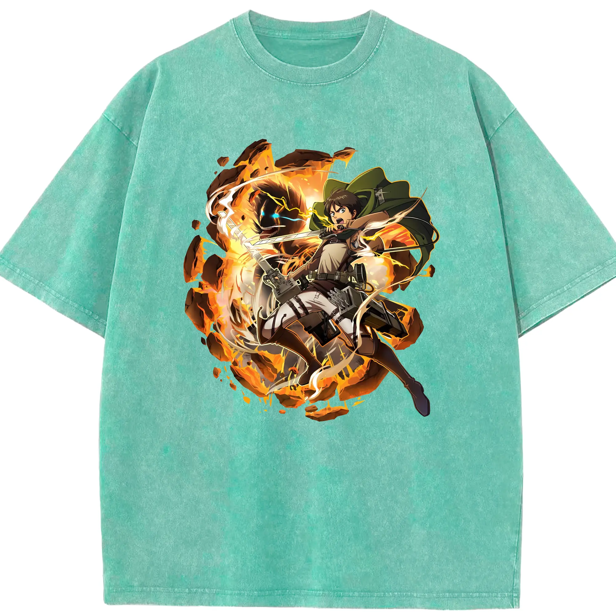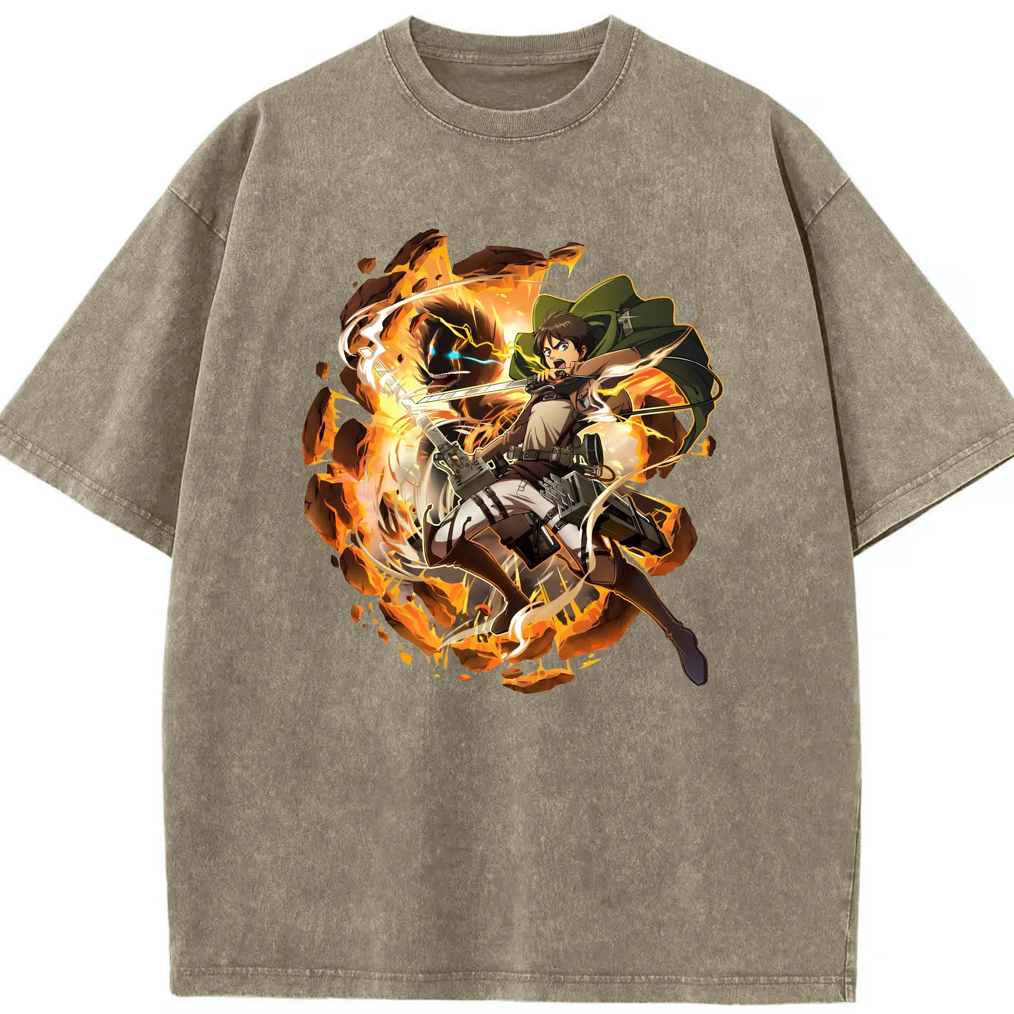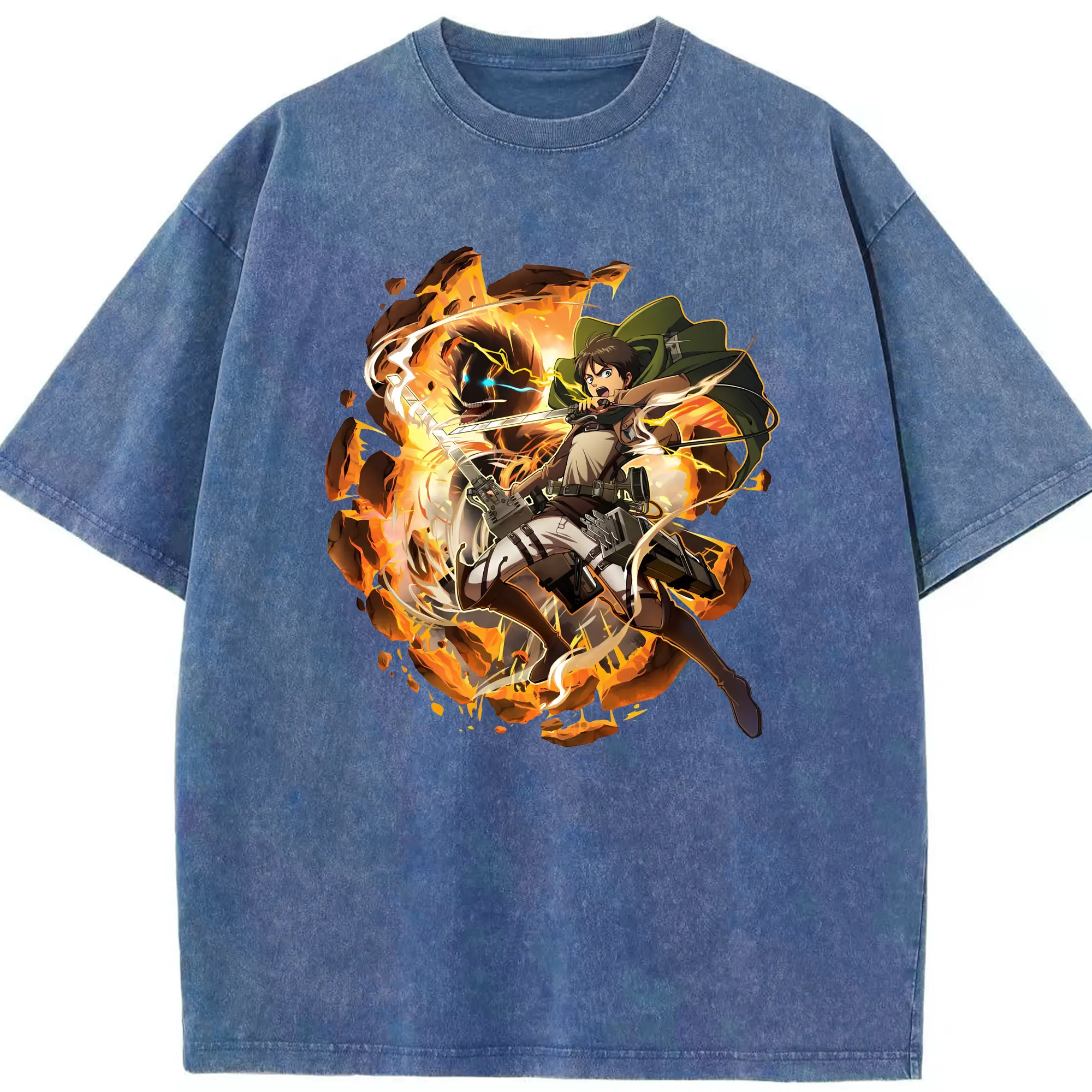 進撃の巨人 グッズ エレン・イェーガー - 綿100% ヴィンテージ風 半袖Tシャツ ・ 背面プリント ・ 柔らか肌触り ・ 通気性 快適 ・ スポーツ カジュアル 外出用