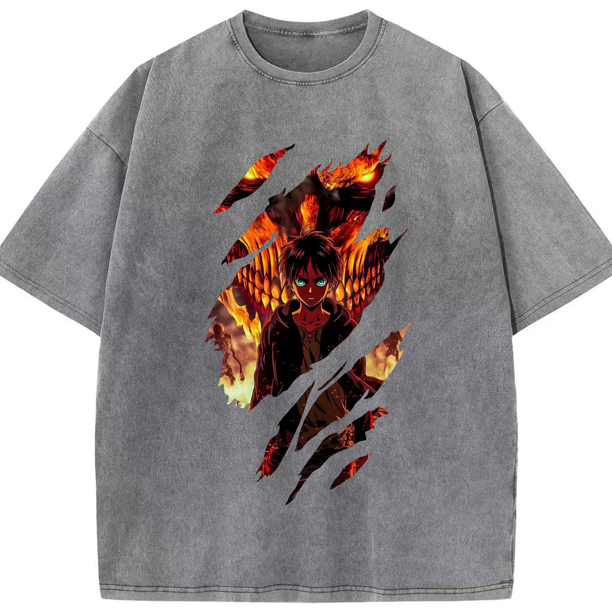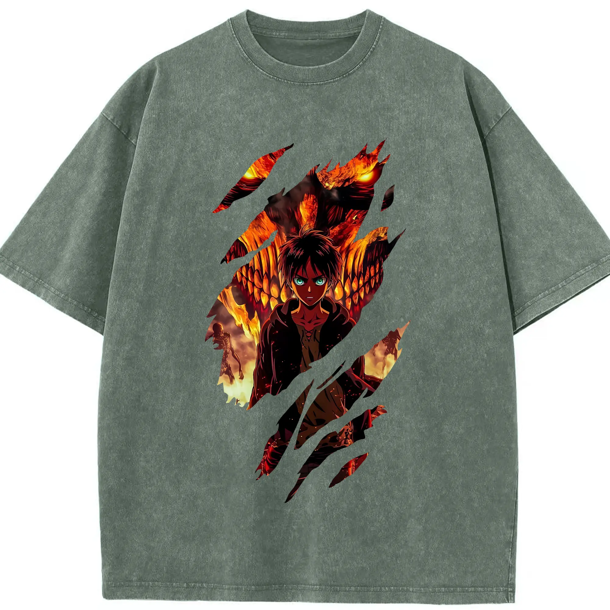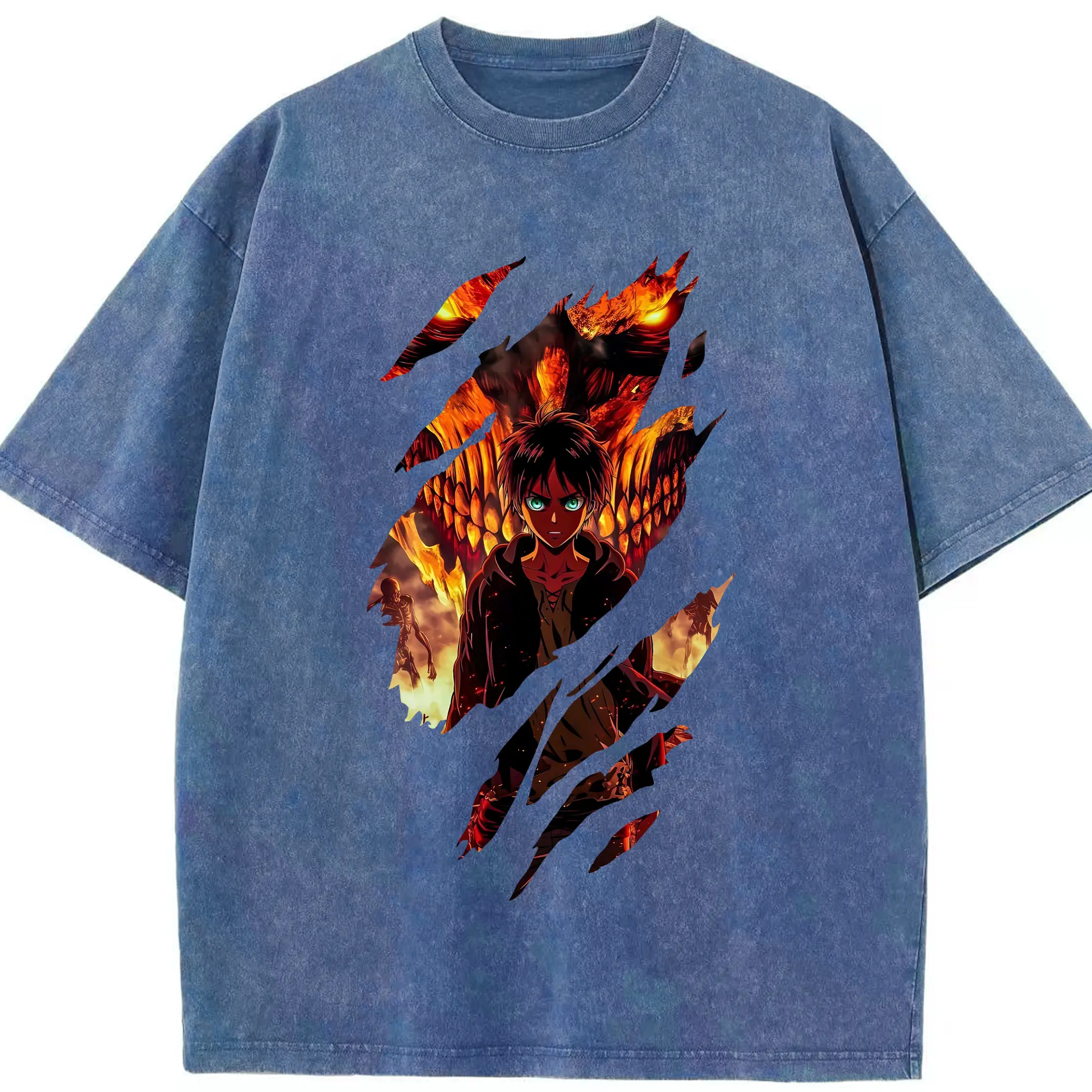 進撃の巨人 グッズ エレン・イェーガー - 綿100% ヴィンテージ風 半袖Tシャツ ・ 背面プリント ・ 柔らか肌触り ・ 通気性 快適 ・ スポーツ カジュアル 外出用