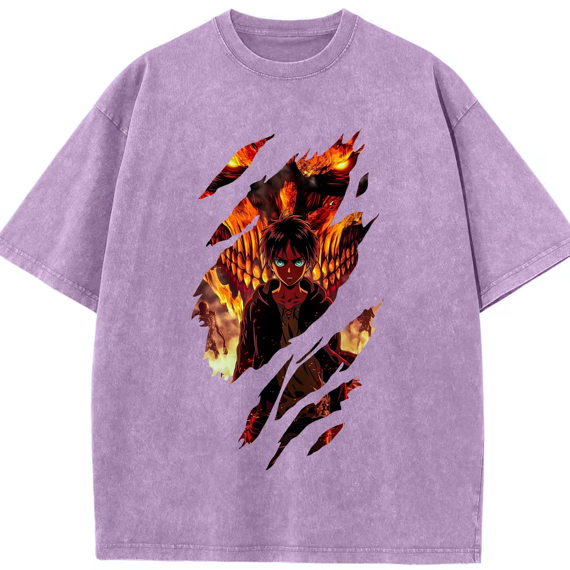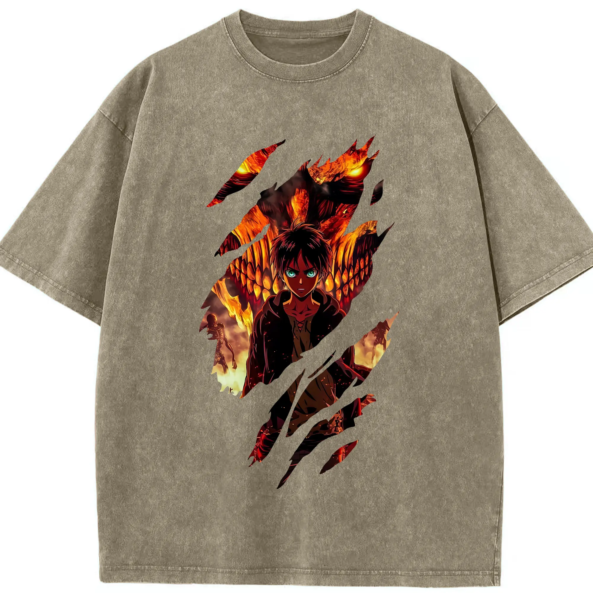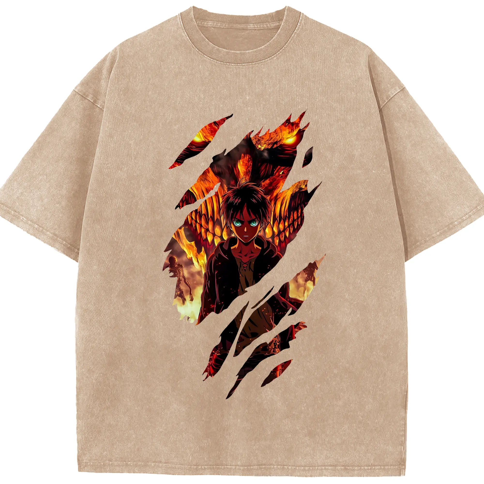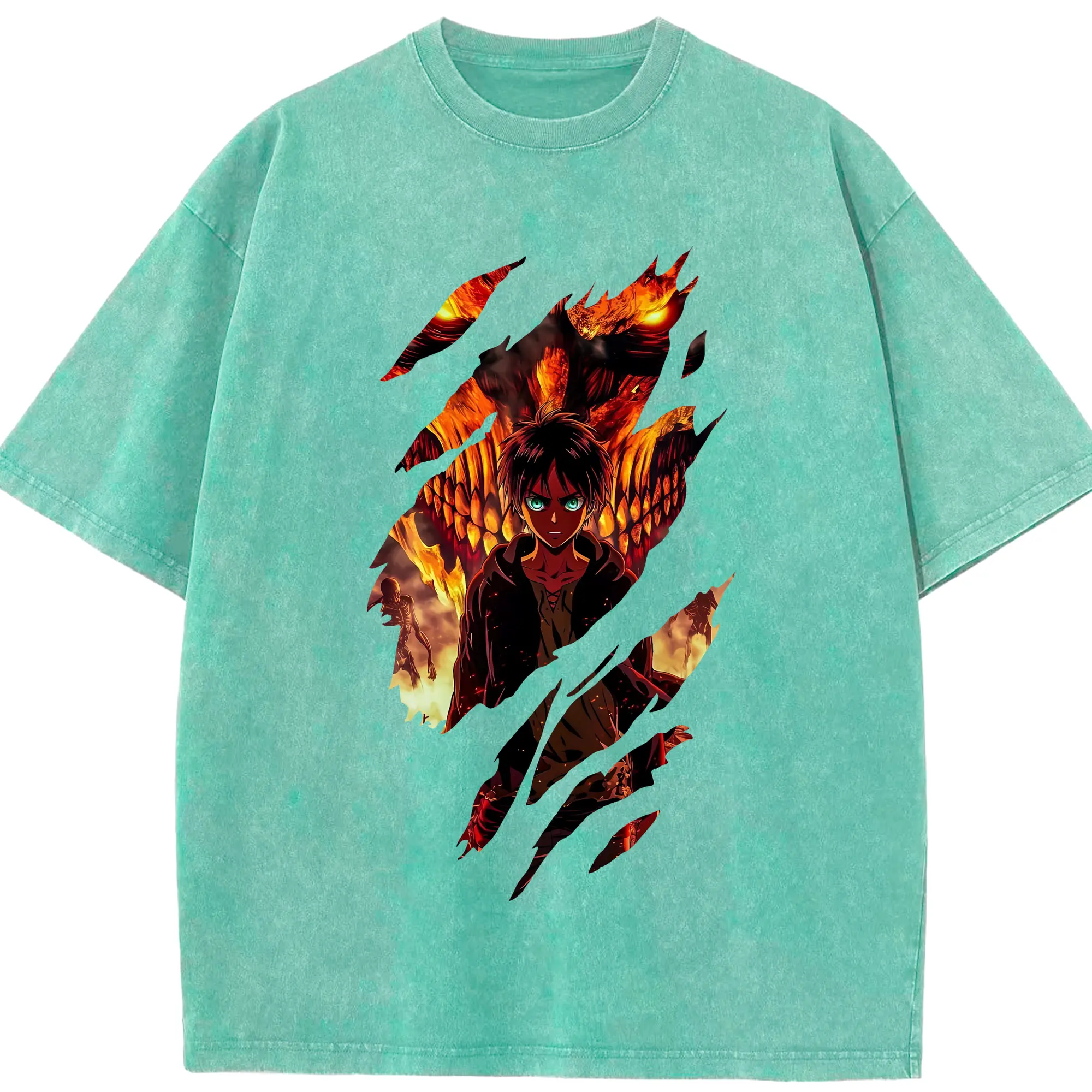 進撃の巨人 グッズ エレン・イェーガー - 綿100% ヴィンテージ風 半袖Tシャツ ・ 背面プリント ・ 柔らか肌触り ・ 通気性 快適 ・ スポーツ カジュアル 外出用