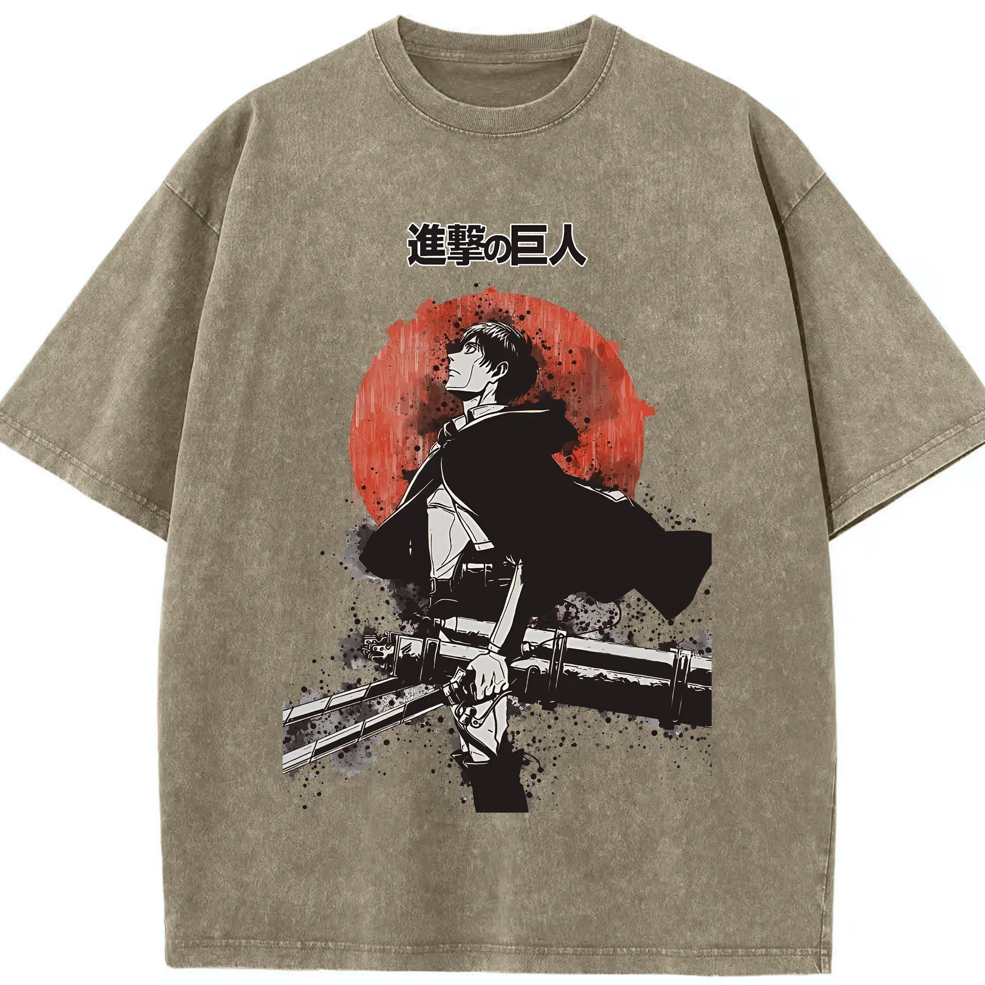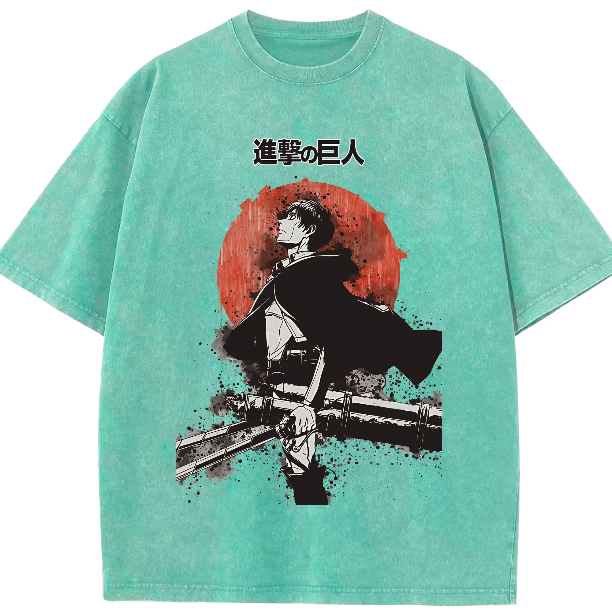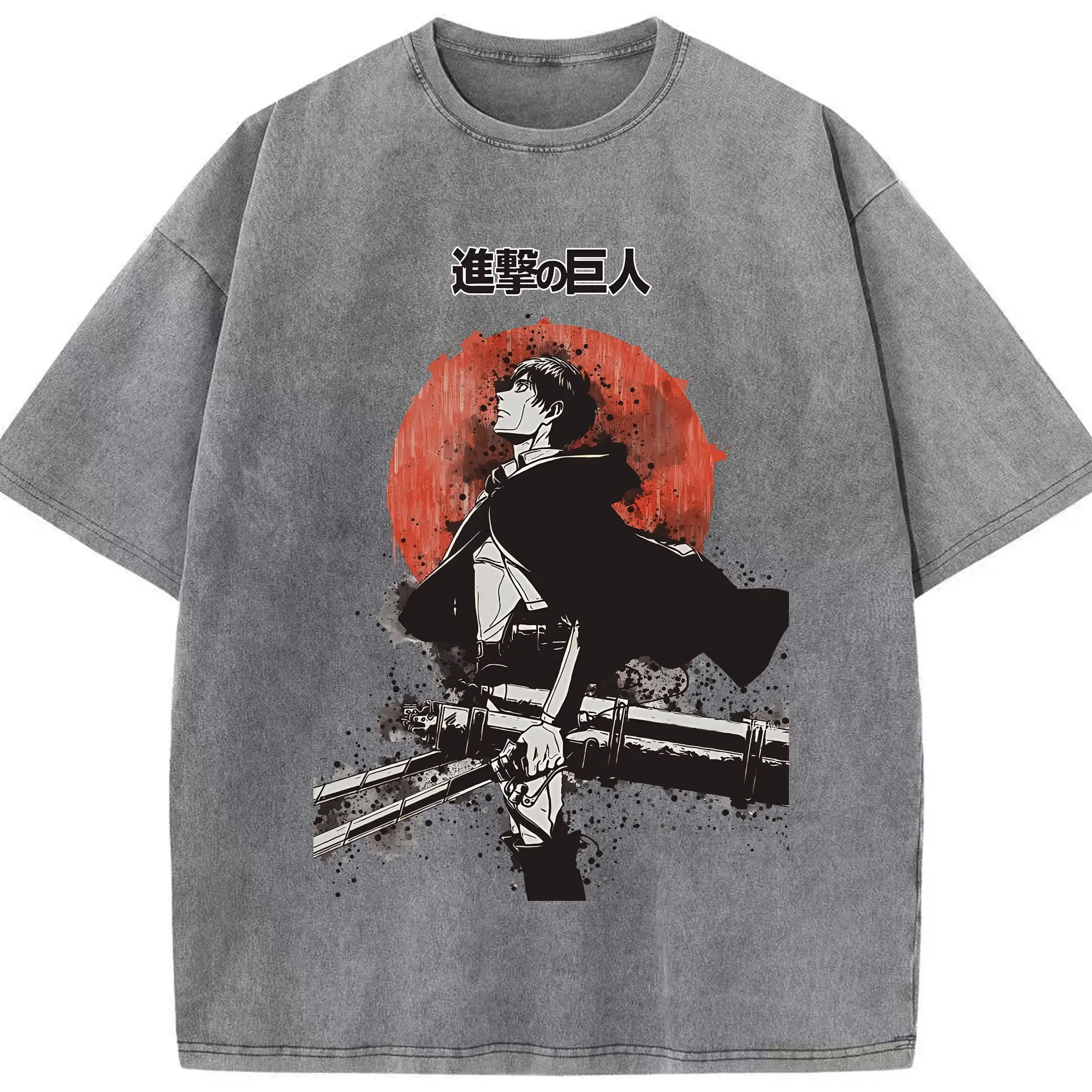 進撃の巨人 グッズ エレン・イェーガー - 綿100% ヴィンテージ風 半袖Tシャツ ・ フロントプリント ・ 柔らか肌触り ・ 通気性 快適 ・ スポーツ カジュアル 外出用