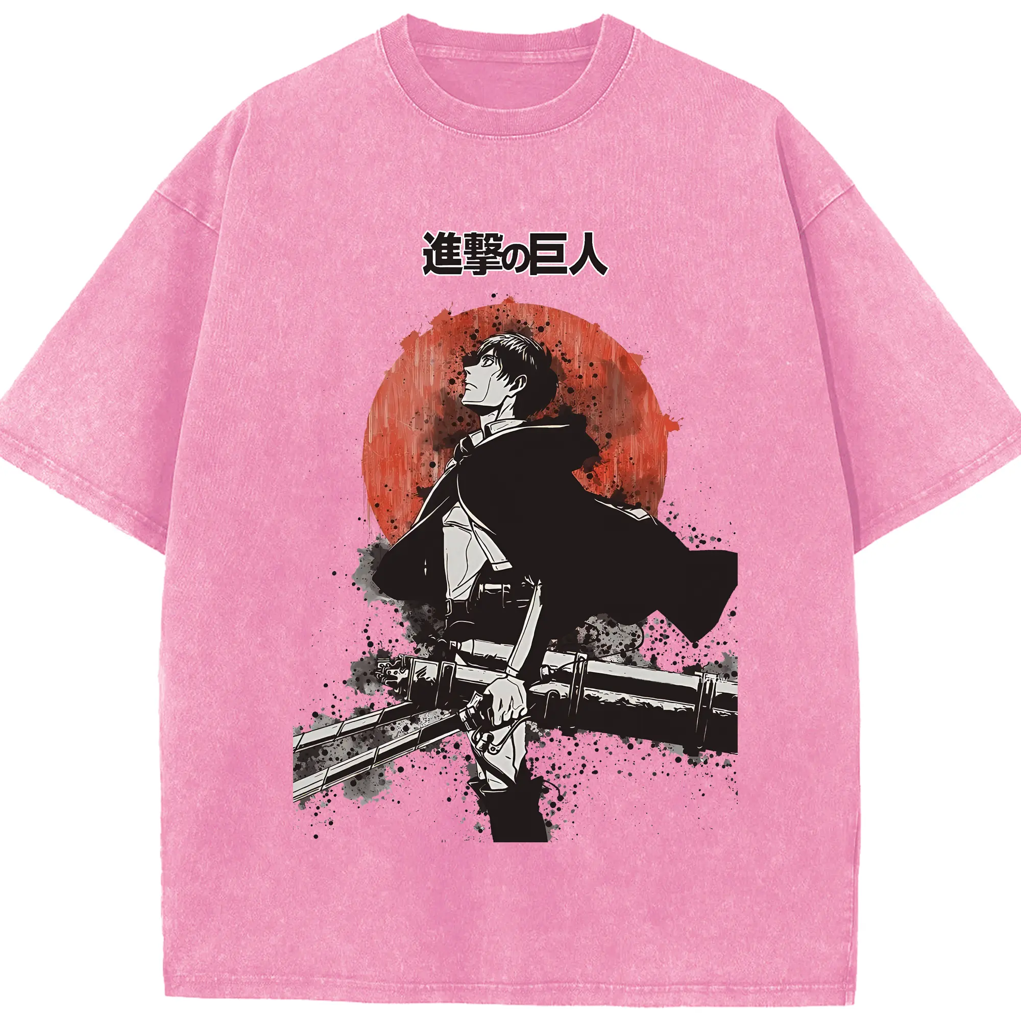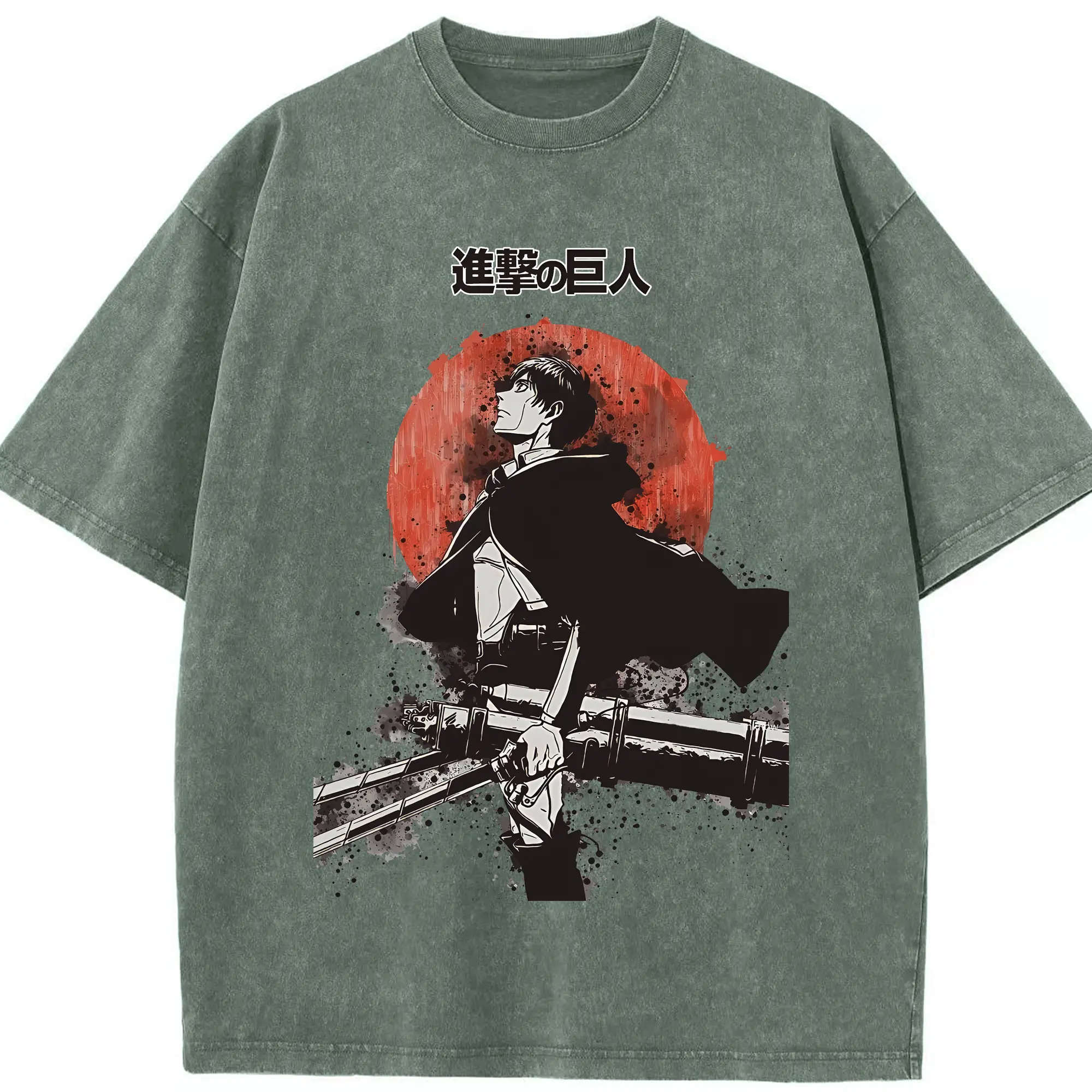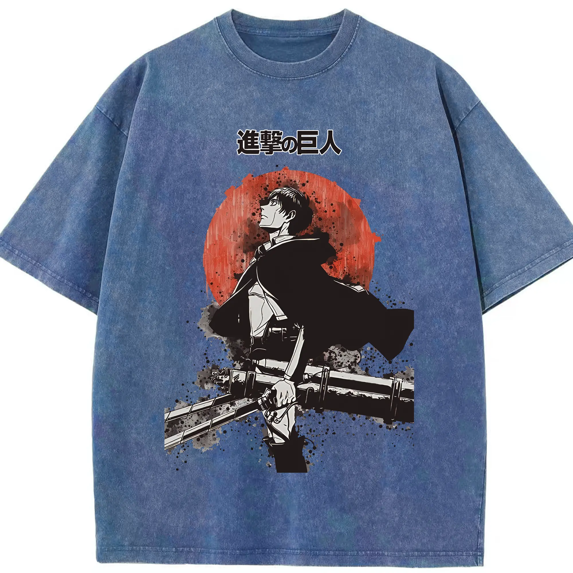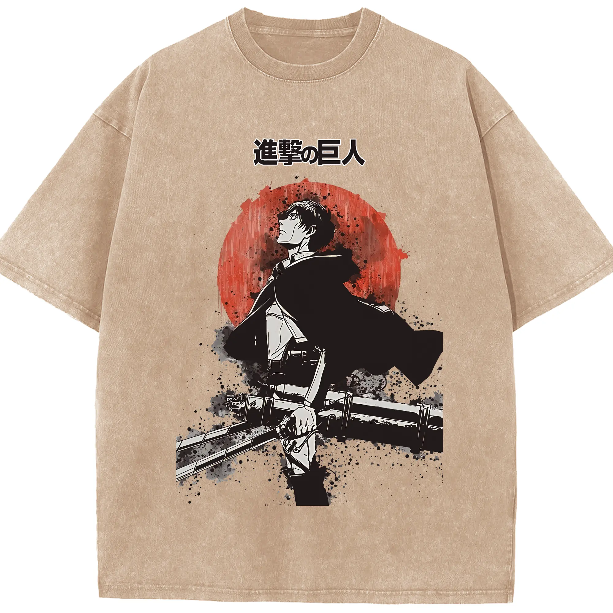 進撃の巨人 グッズ エレン・イェーガー - 綿100% ヴィンテージ風 半袖Tシャツ ・ フロントプリント ・ 柔らか肌触り ・ 通気性 快適 ・ スポーツ カジュアル 外出用