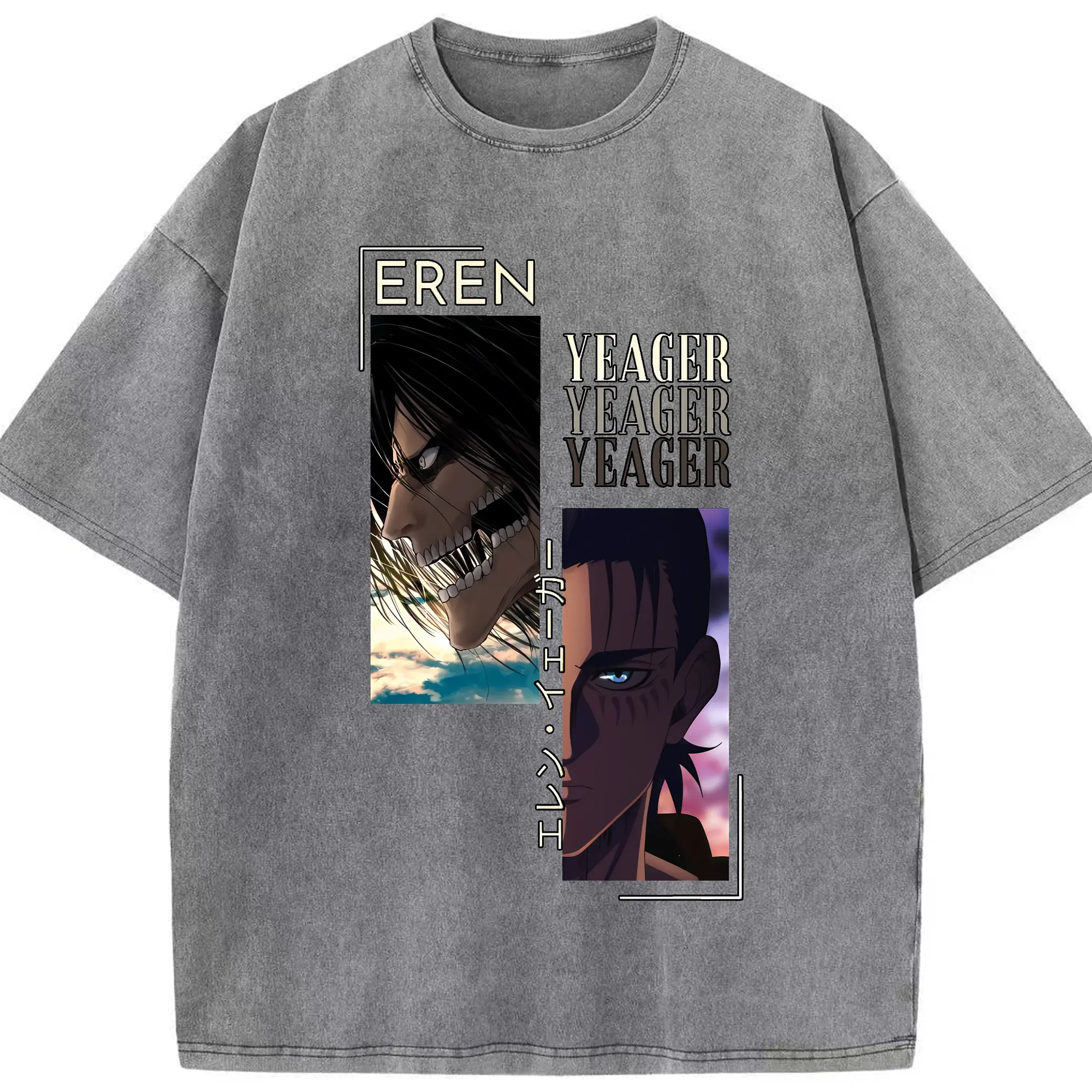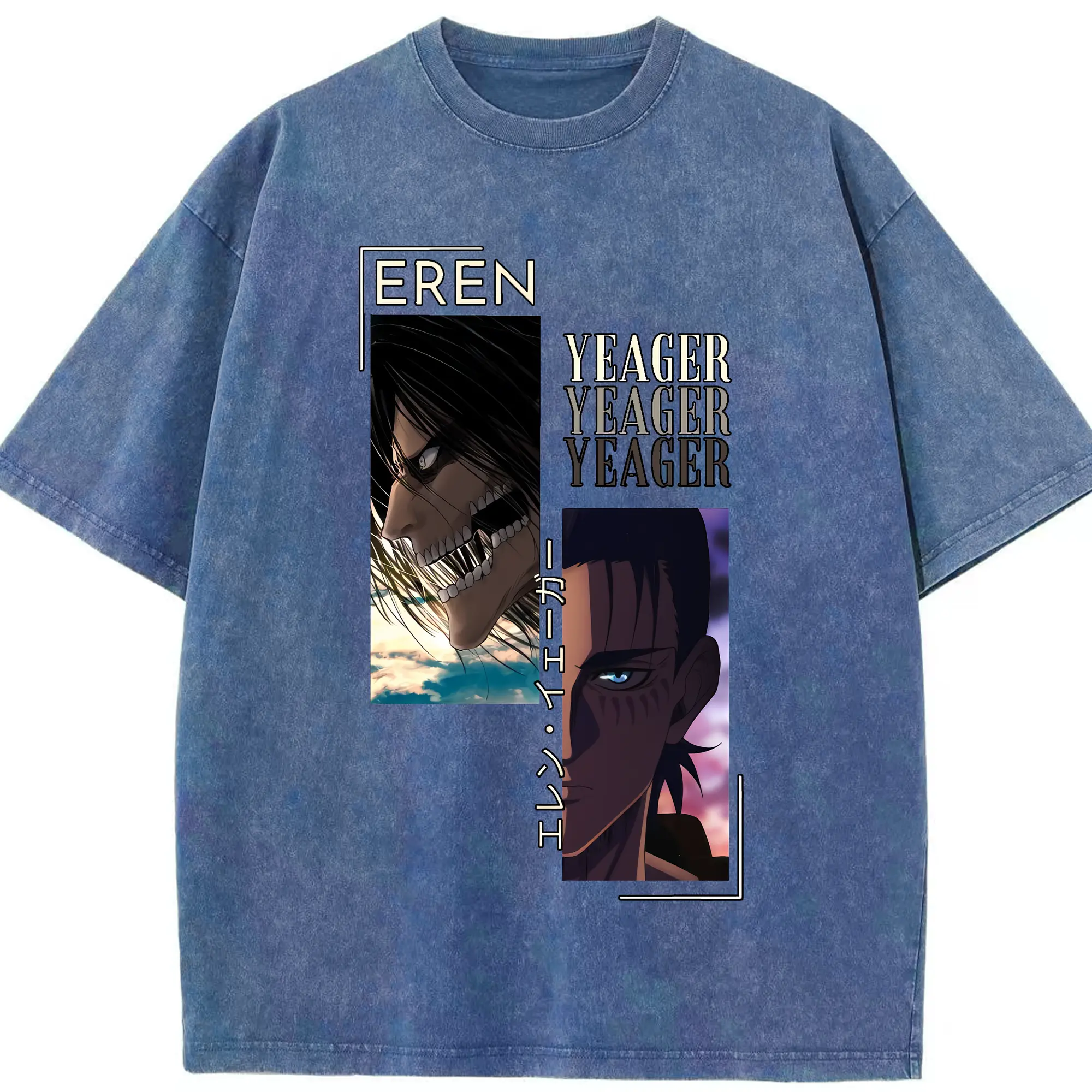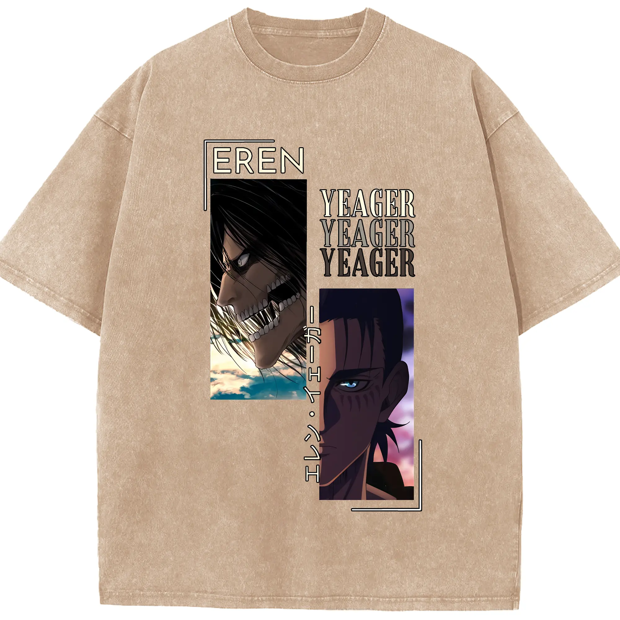 進撃の巨人 グッズ エレン・イェーガー - 綿100% ヴィンテージ風 半袖Tシャツ ・ 背面プリント ・ 柔らか肌触り ・ 通気性 快適 ・ スポーツ カジュアル 外出用