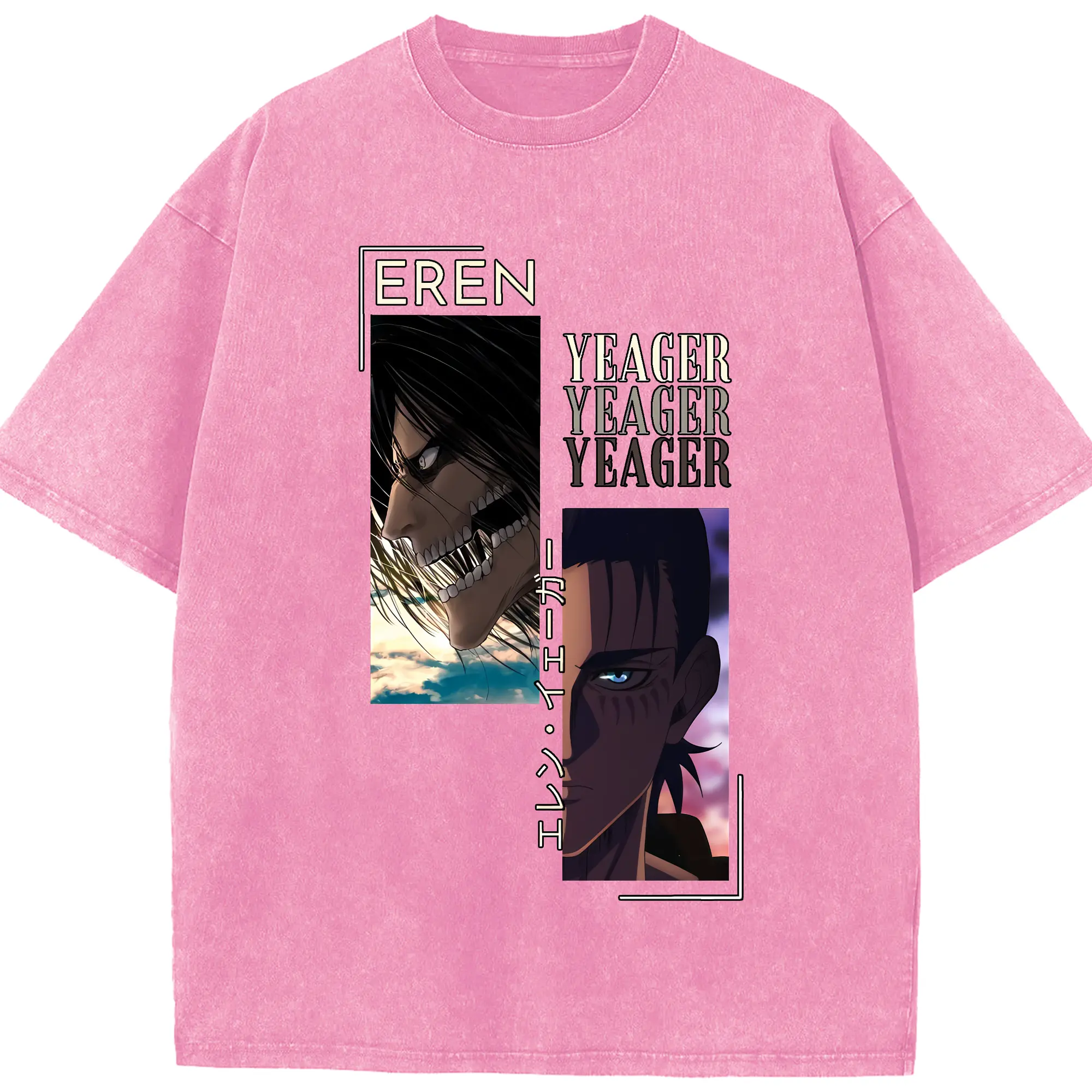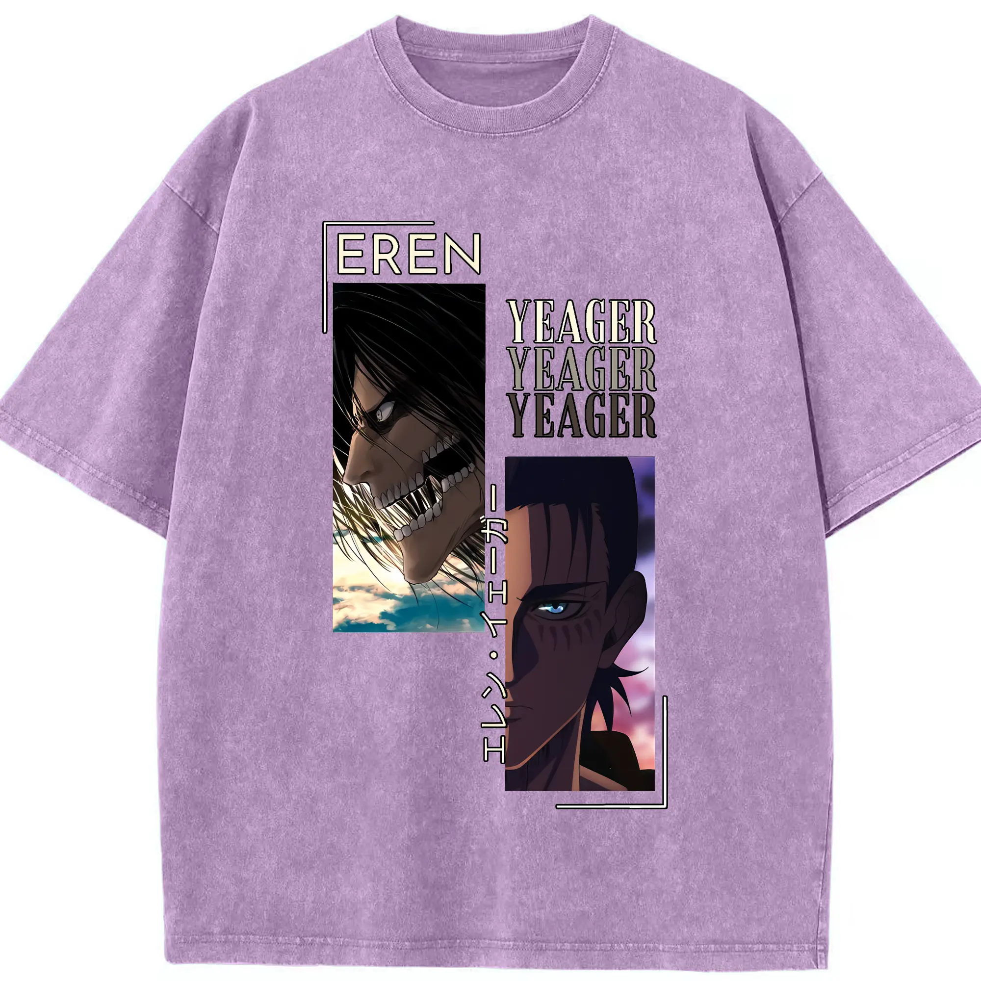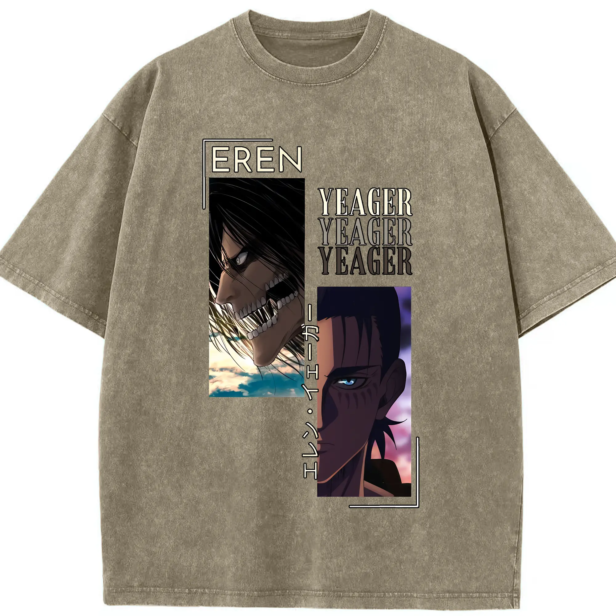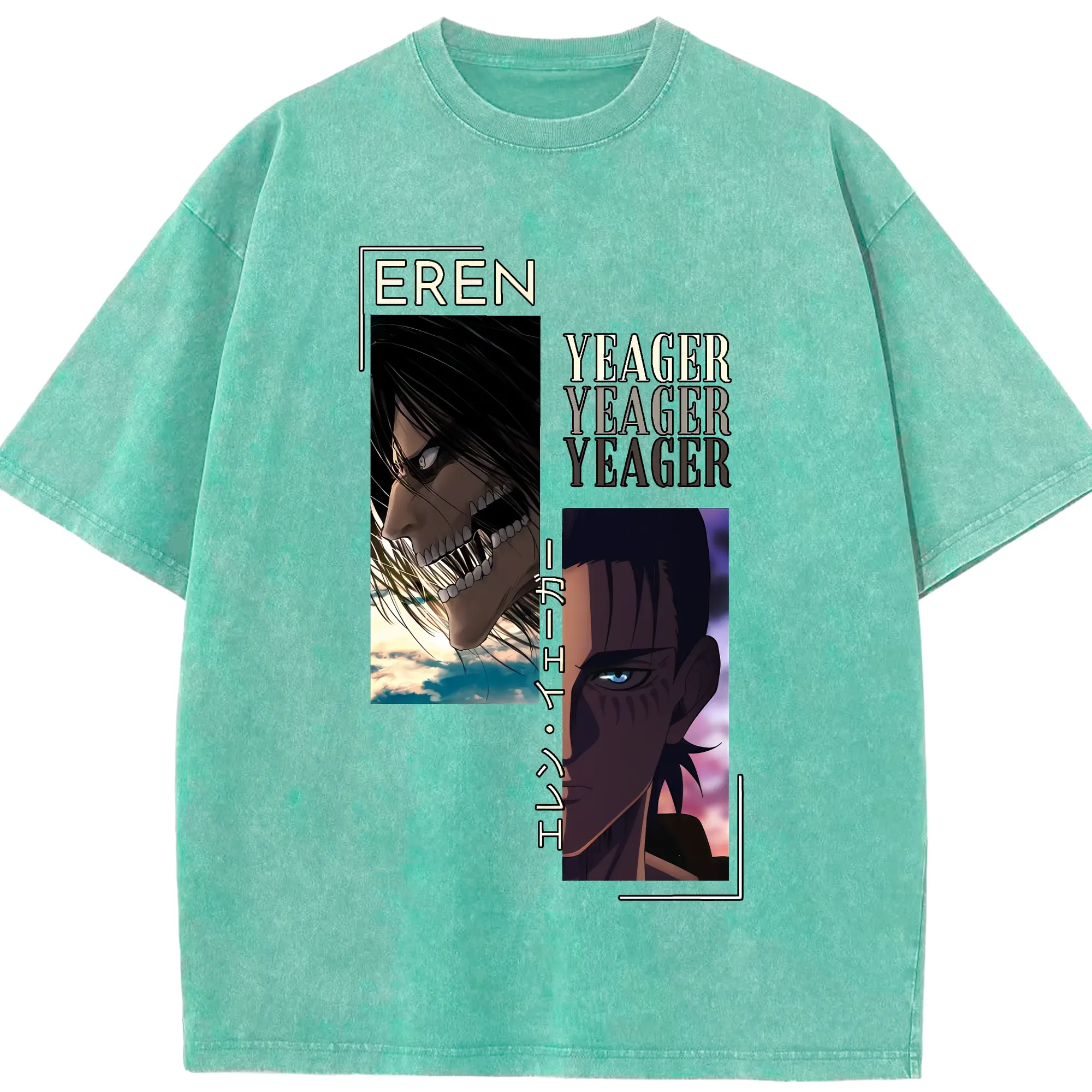 進撃の巨人 グッズ エレン・イェーガー - 綿100% ヴィンテージ風 半袖Tシャツ ・ 背面プリント ・ 柔らか肌触り ・ 通気性 快適 ・ スポーツ カジュアル 外出用