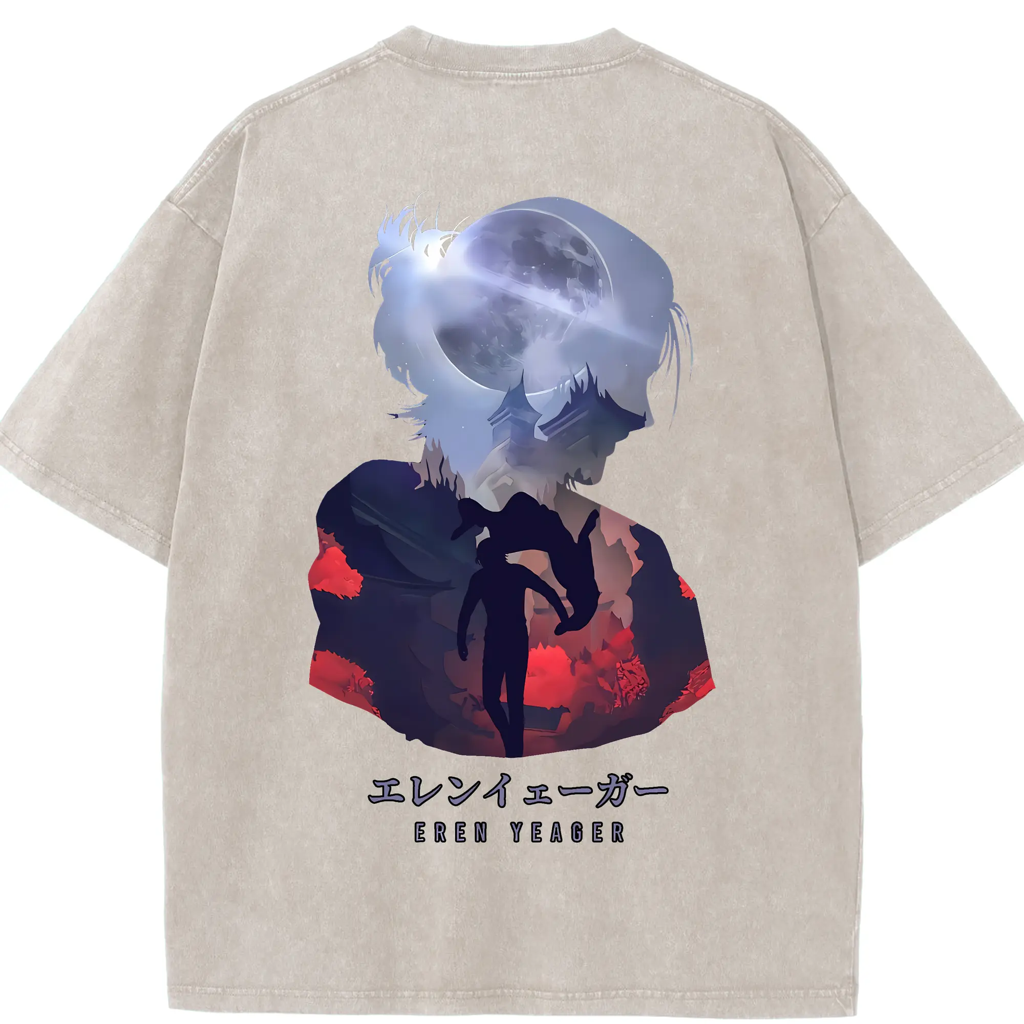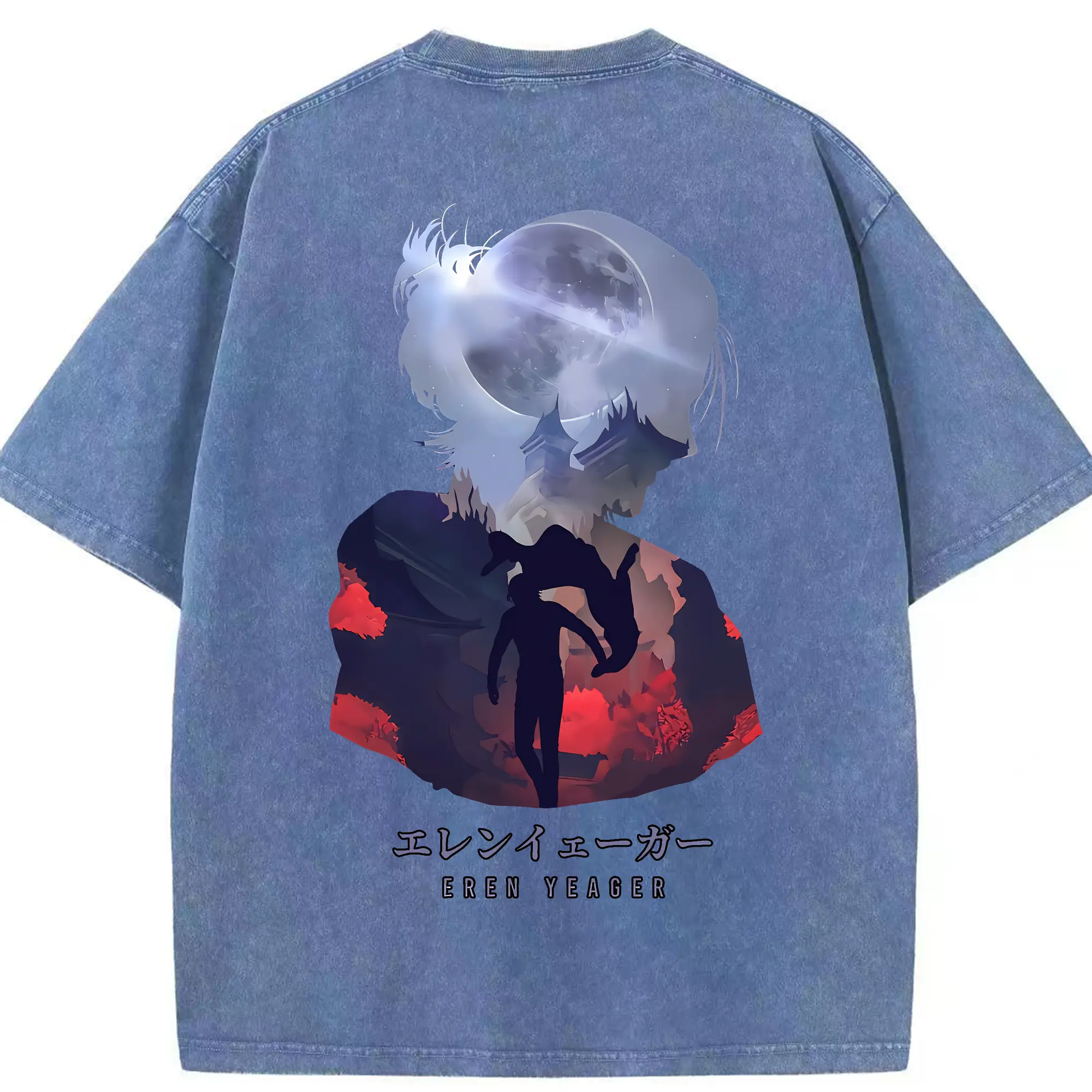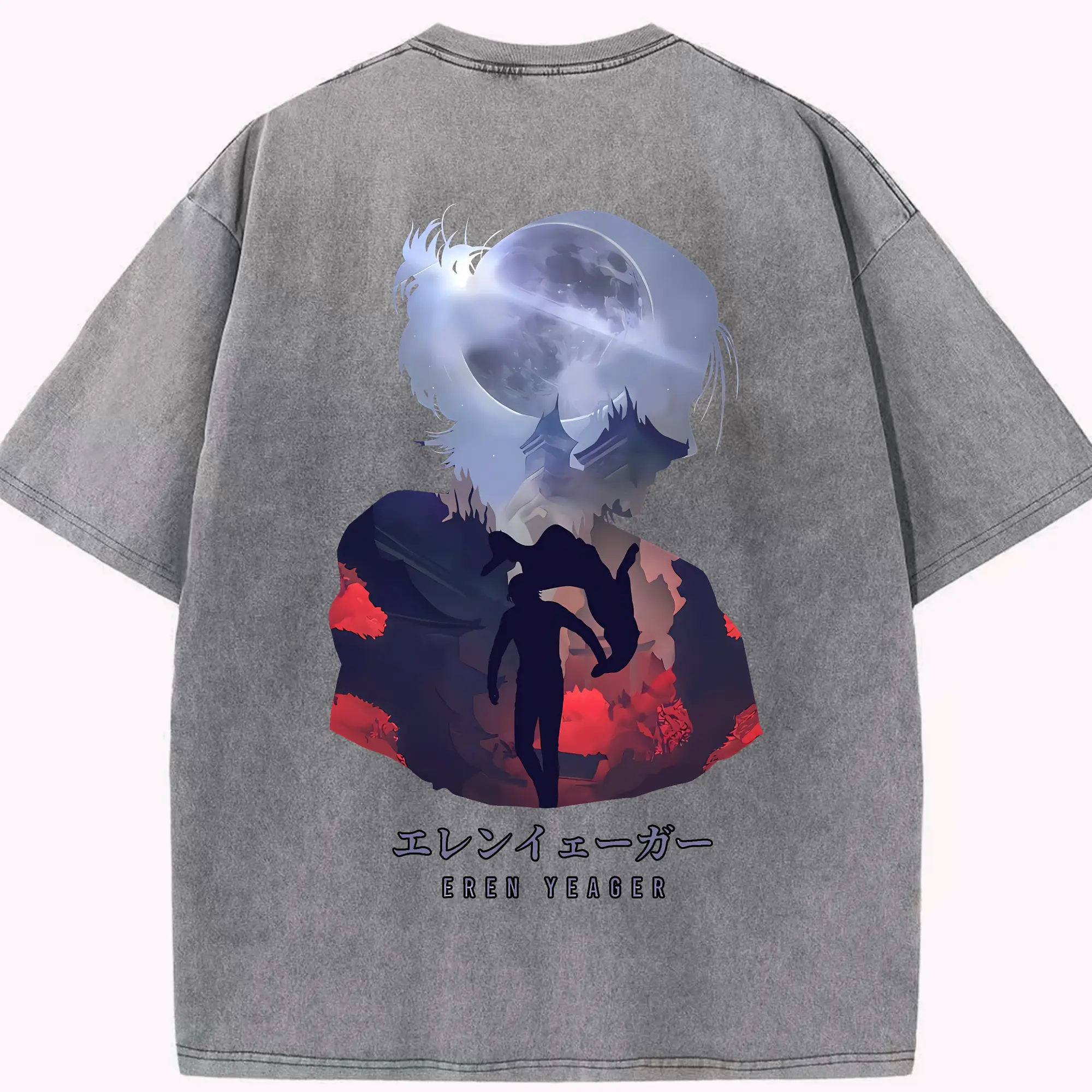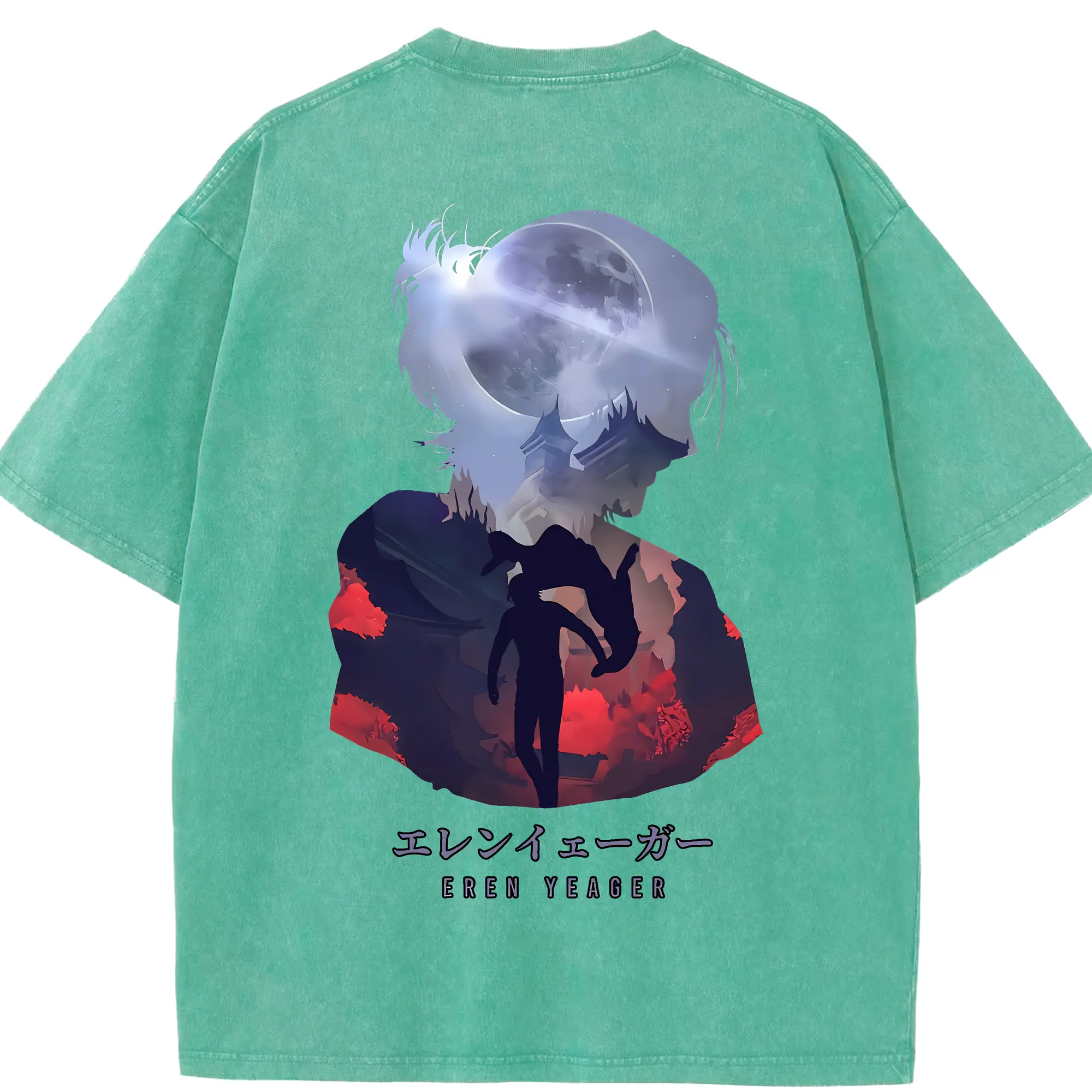 進撃の巨人 グッズ エレン・イェーガー - 綿100% ヴィンテージ風 半袖Tシャツ ・ フロントプリント ・ 柔らか肌触り ・ 通気性 快適 ・ スポーツ カジュアル 外出用
