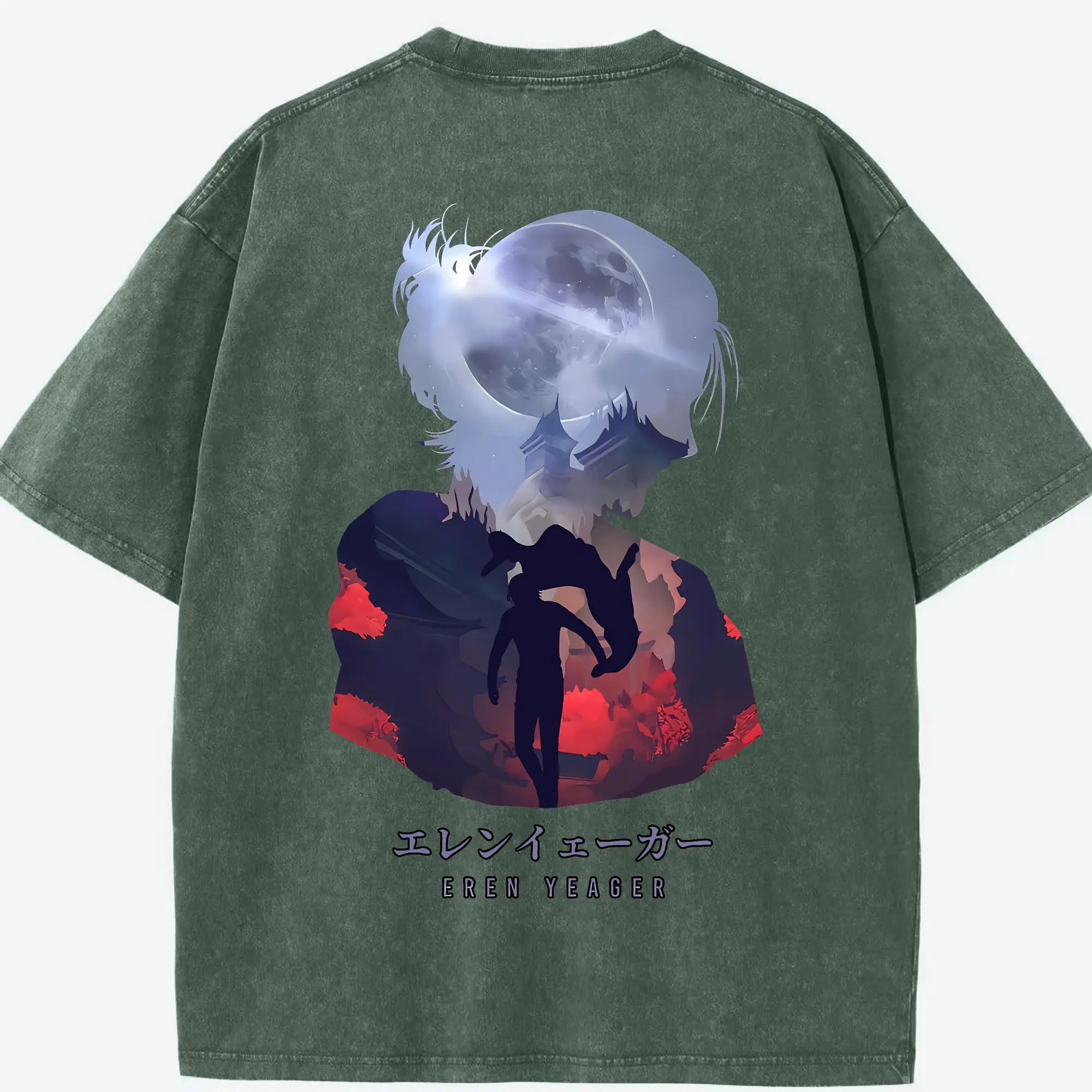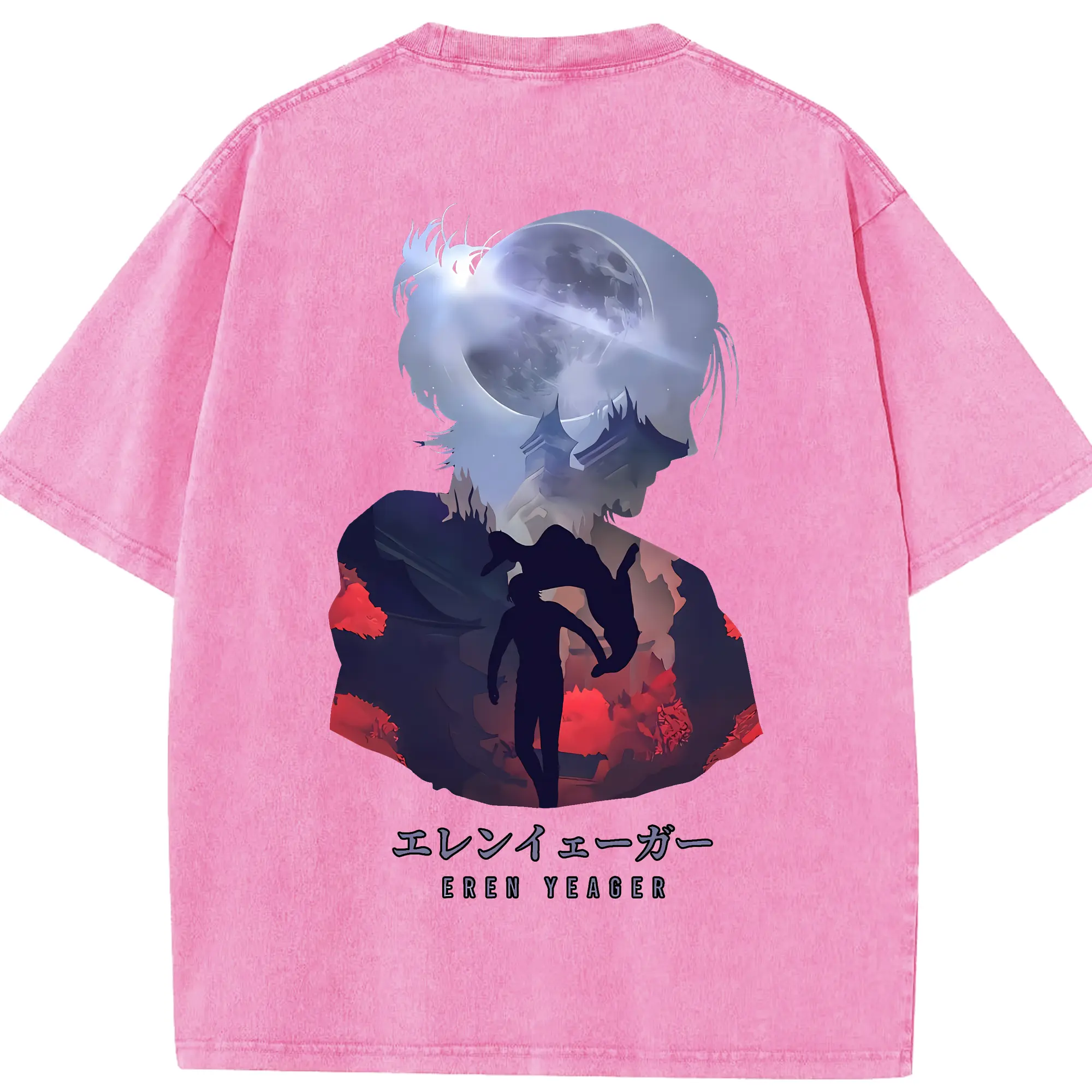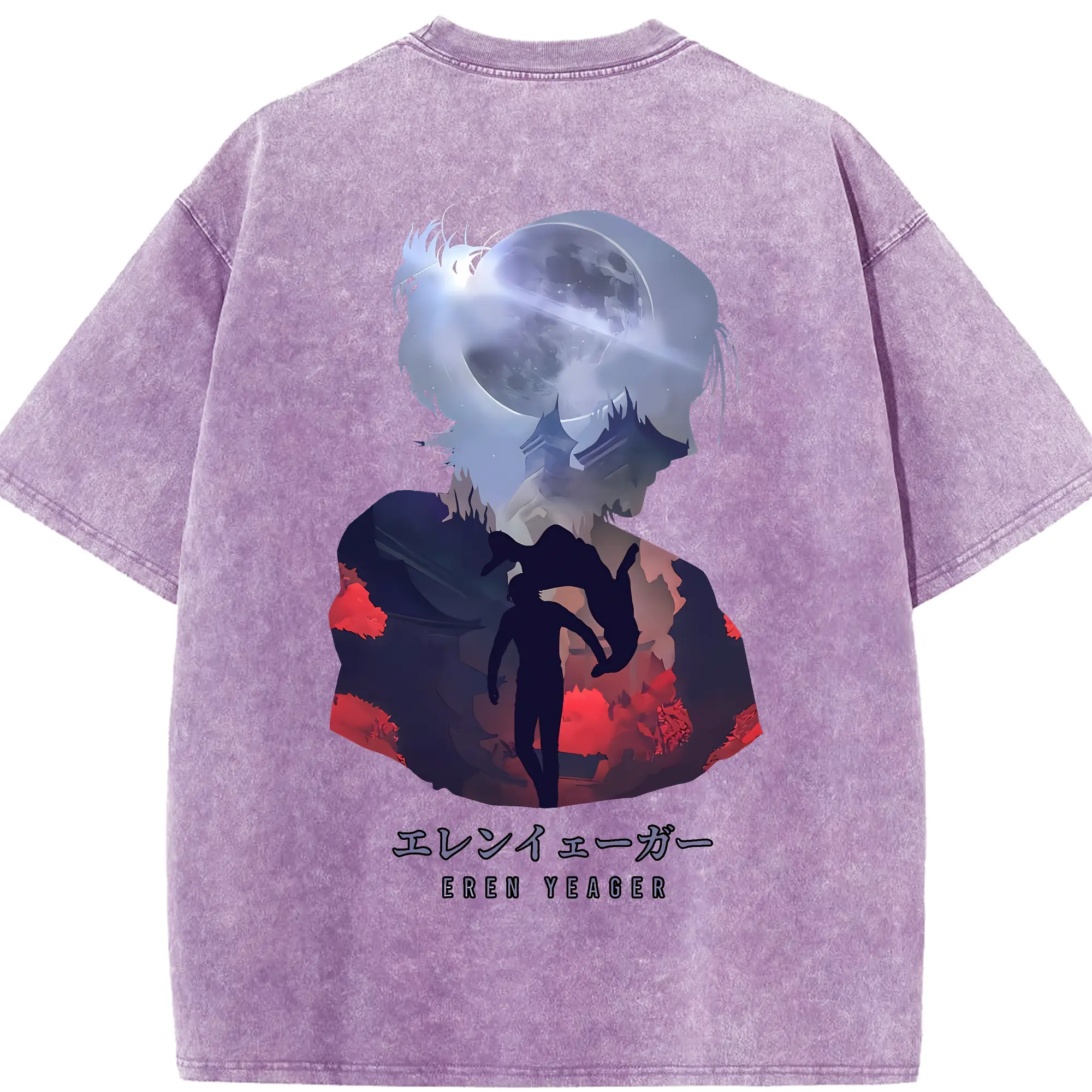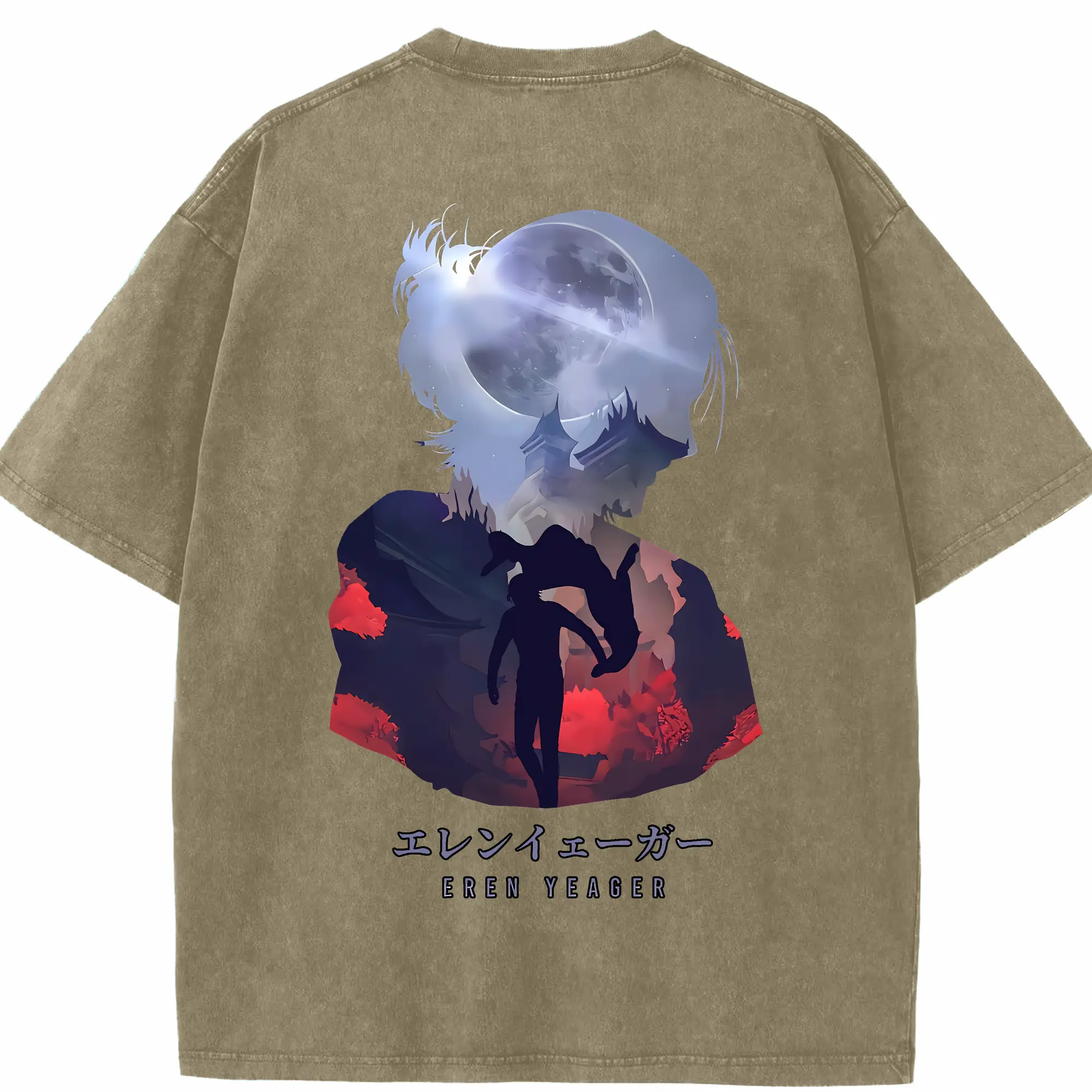 進撃の巨人 グッズ エレン・イェーガー - 綿100% ヴィンテージ風 半袖Tシャツ ・ フロントプリント ・ 柔らか肌触り ・ 通気性 快適 ・ スポーツ カジュアル 外出用