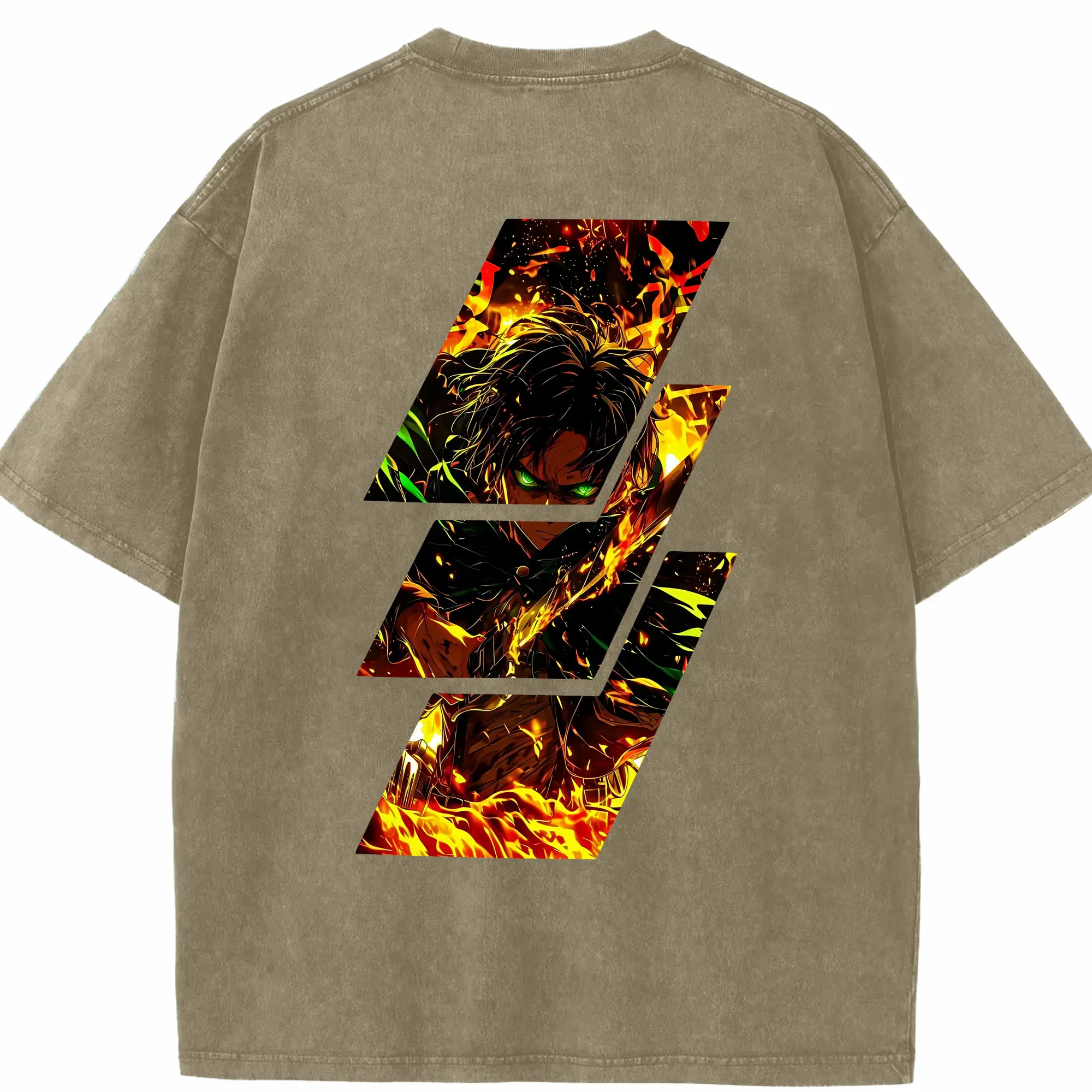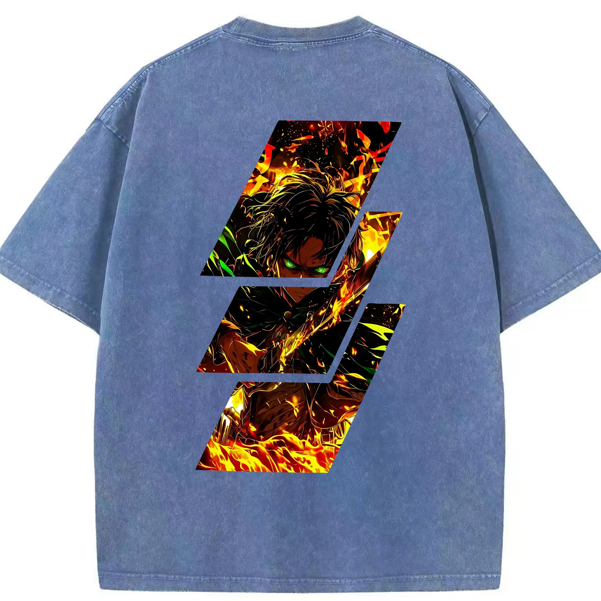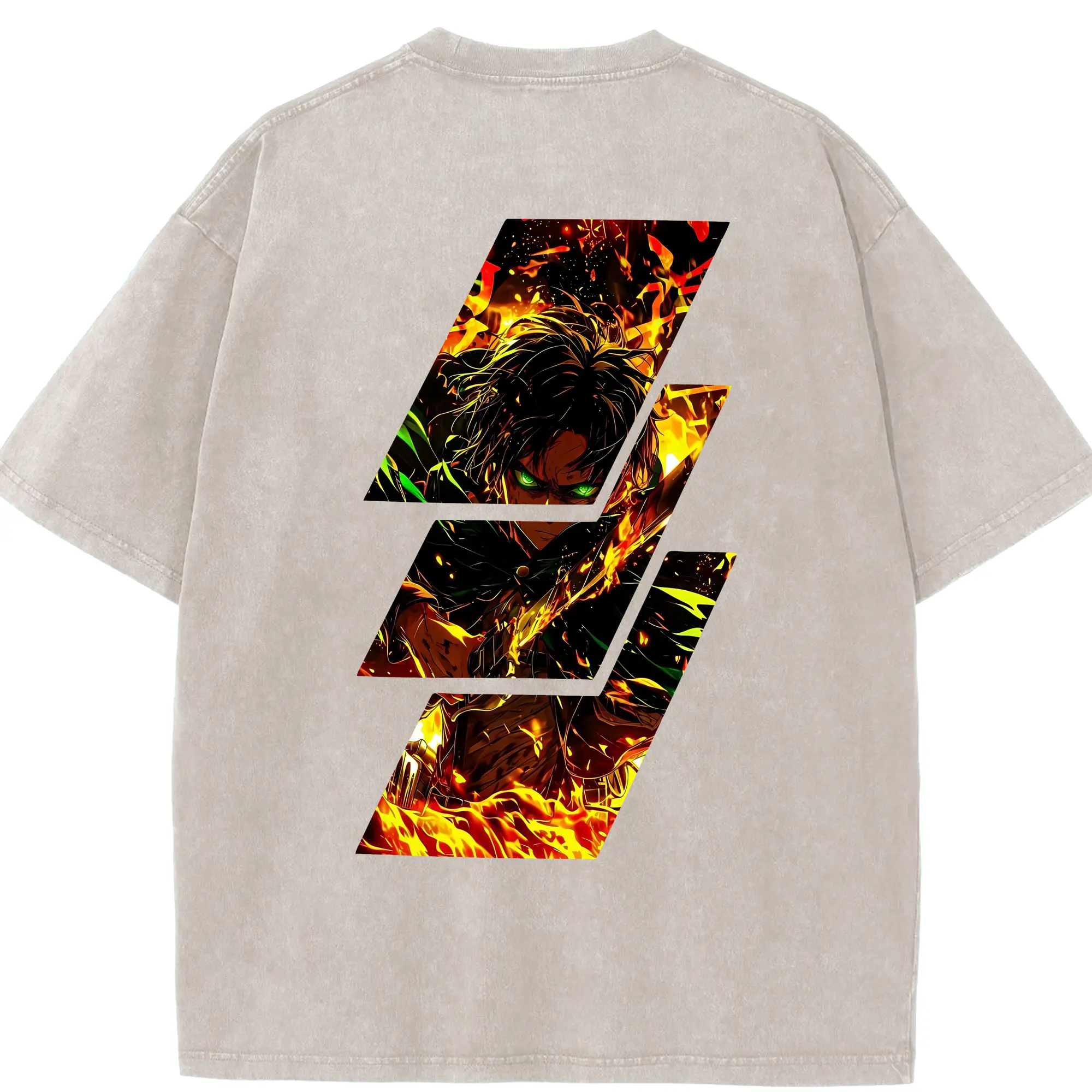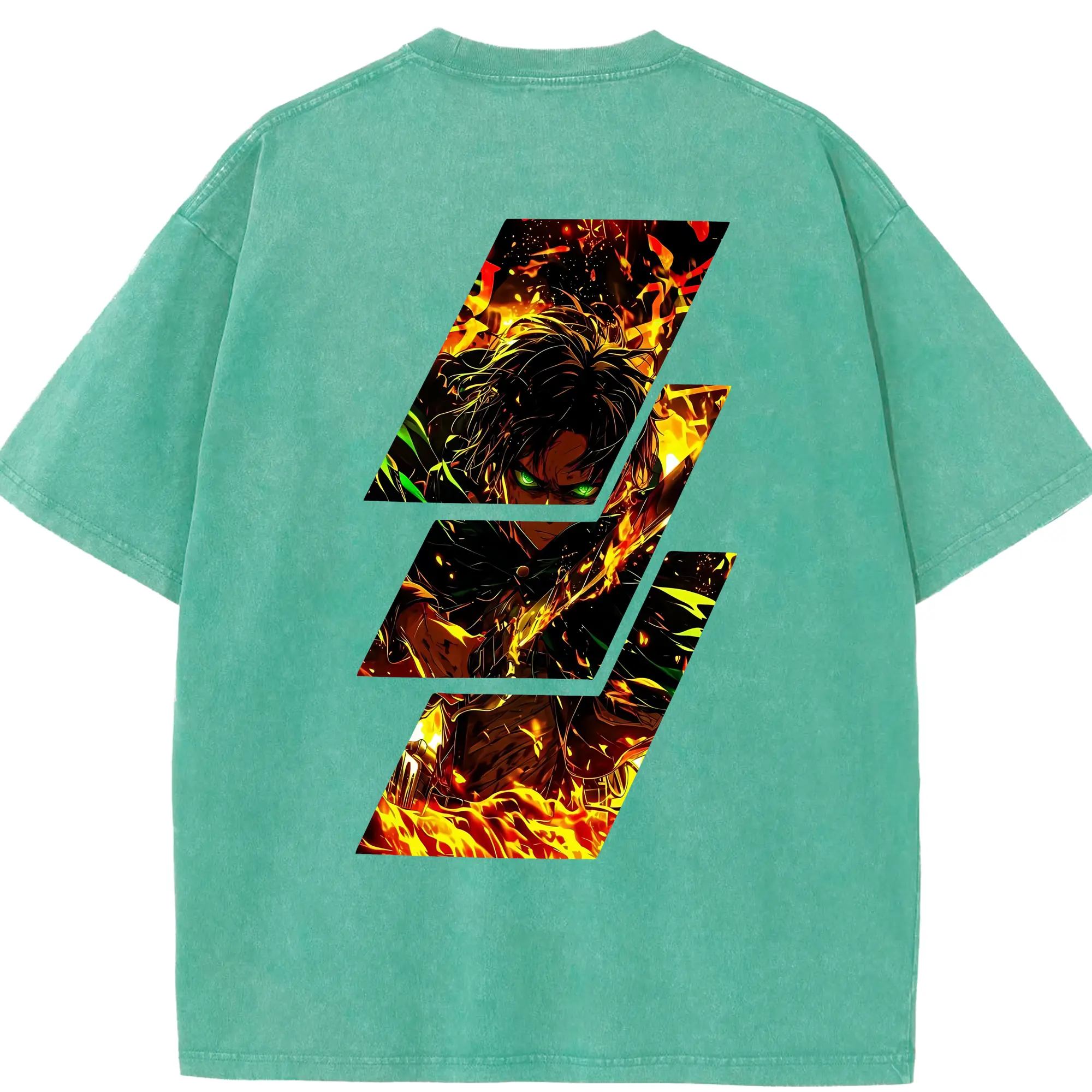 進撃の巨人 グッズ エレン・イェーガー - 綿100% ヴィンテージ風 半袖Tシャツ ・ フロントプリント ・ 柔らか肌触り ・ 通気性 快適 ・ スポーツ カジュアル 外出用