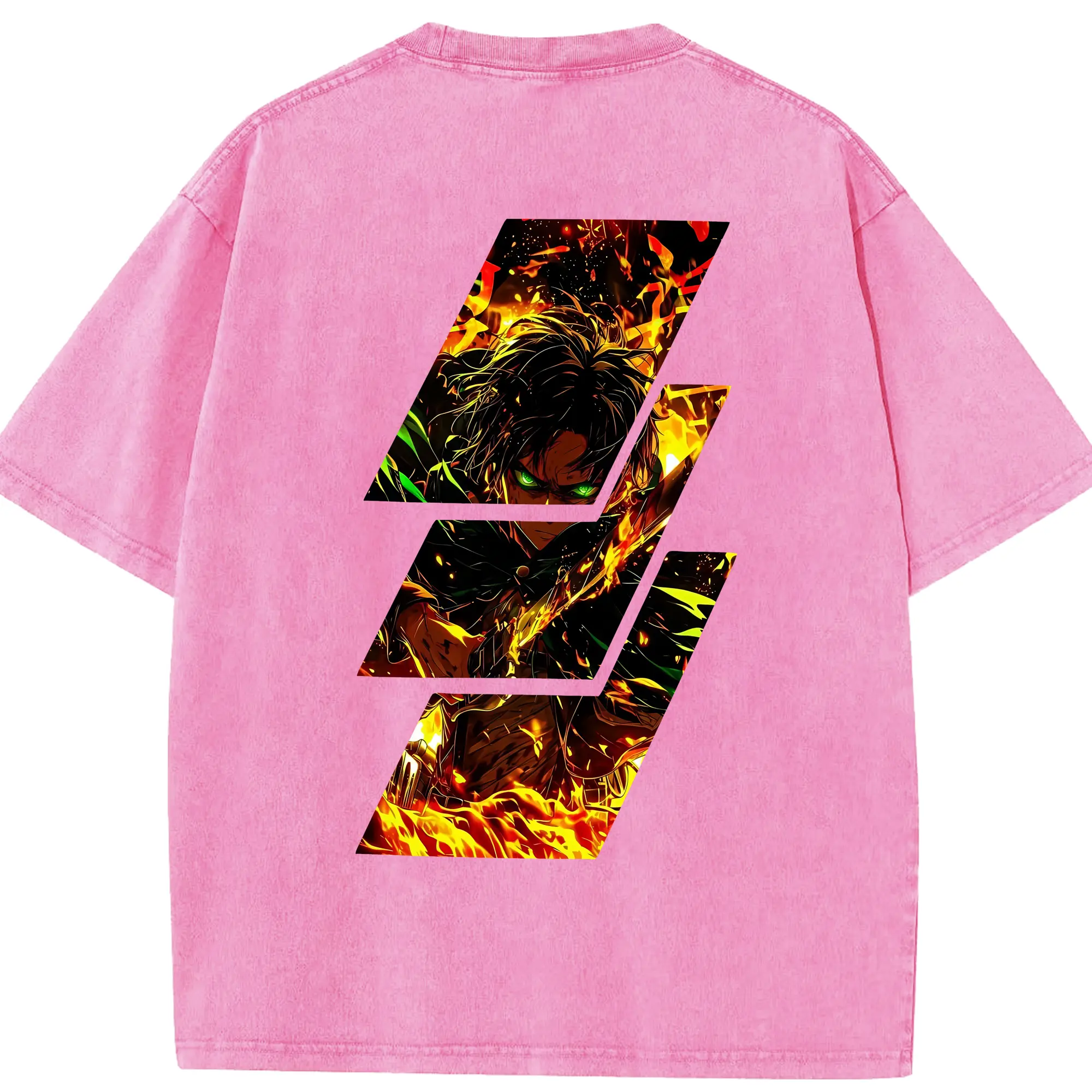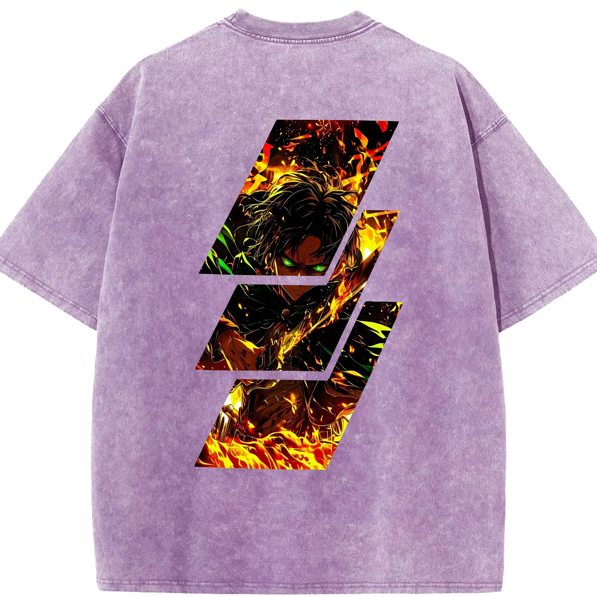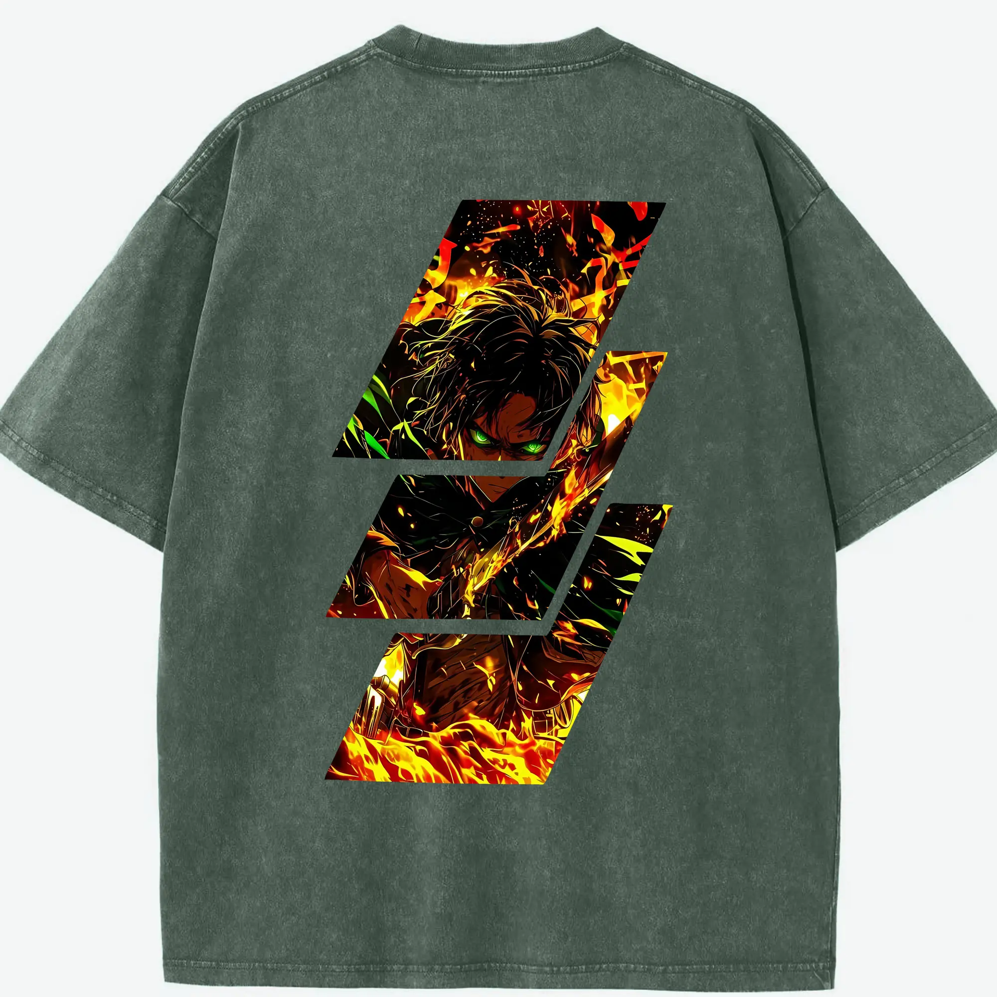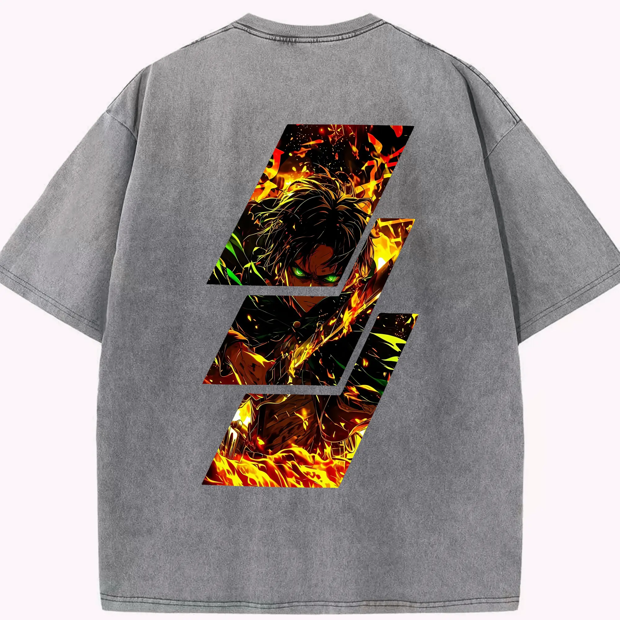 進撃の巨人 グッズ エレン・イェーガー - 綿100% ヴィンテージ風 半袖Tシャツ ・ フロントプリント ・ 柔らか肌触り ・ 通気性 快適 ・ スポーツ カジュアル 外出用