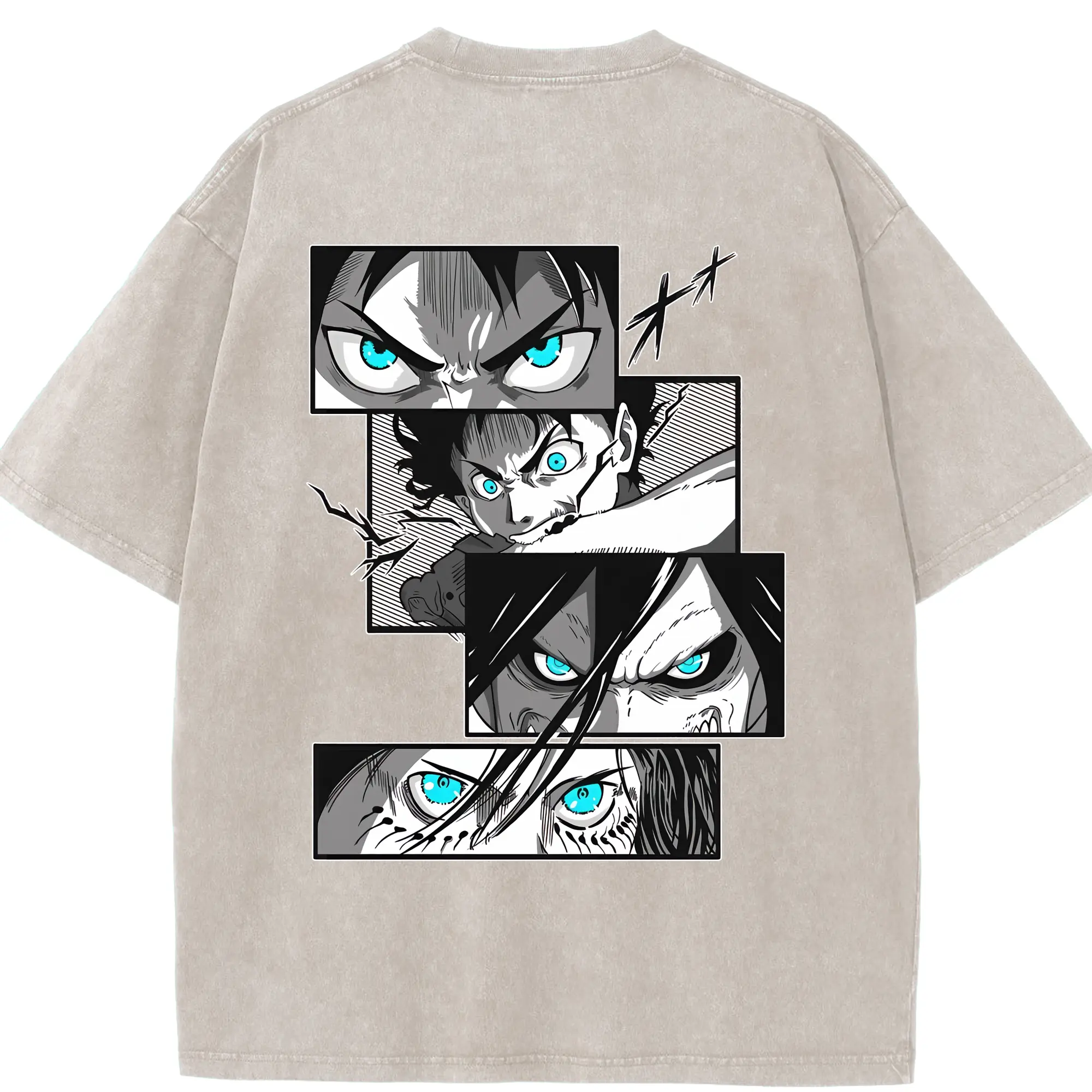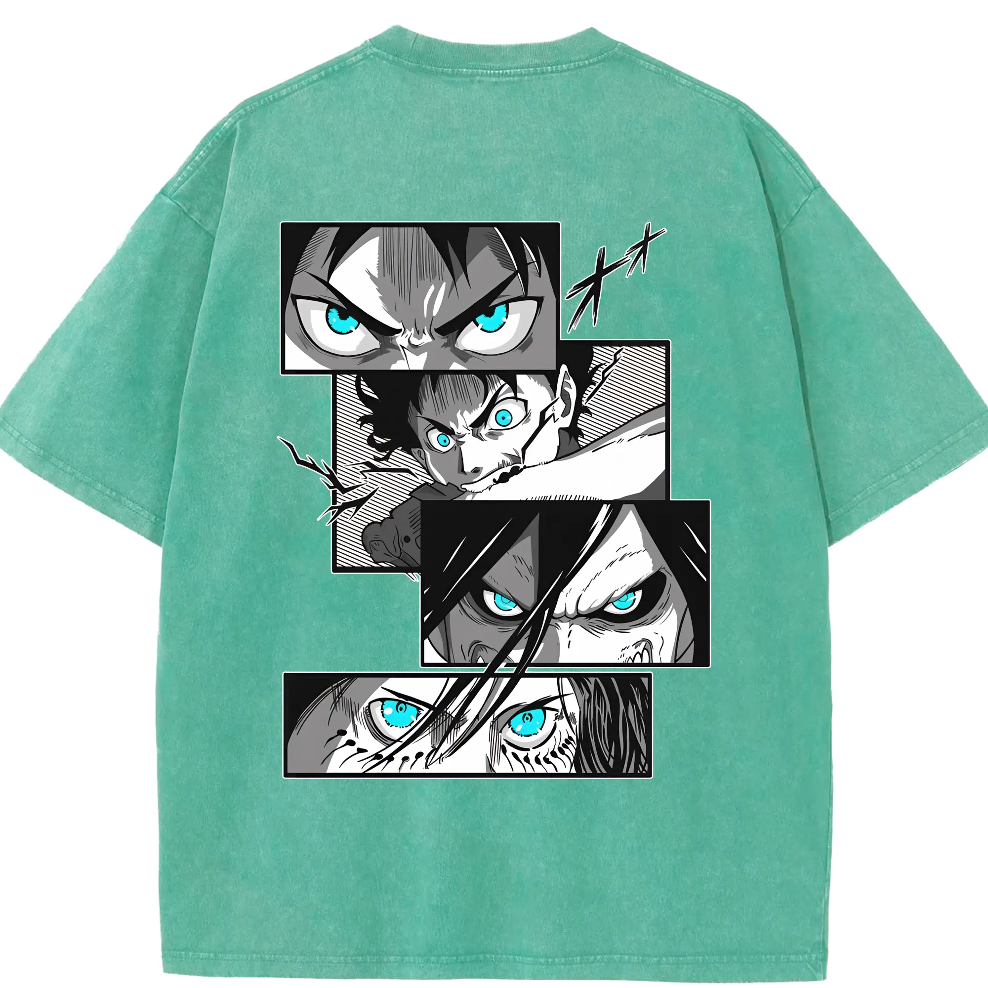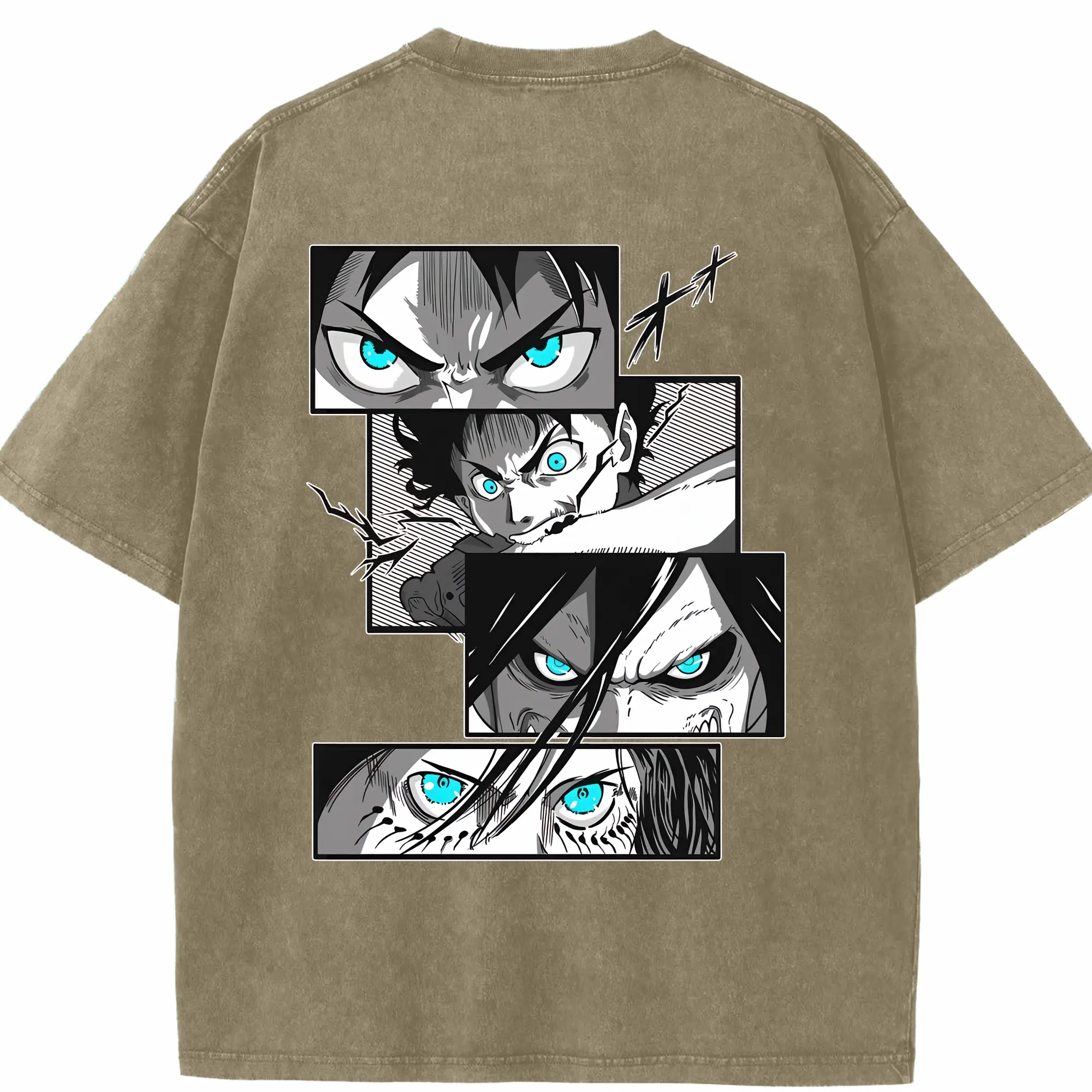 進撃の巨人 グッズ エレン・イェーガー - 綿100% ヴィンテージ風 半袖Tシャツ ・ フロントプリント ・ 柔らか肌触り ・ 通気性 快適 ・ スポーツ カジュアル 外出用